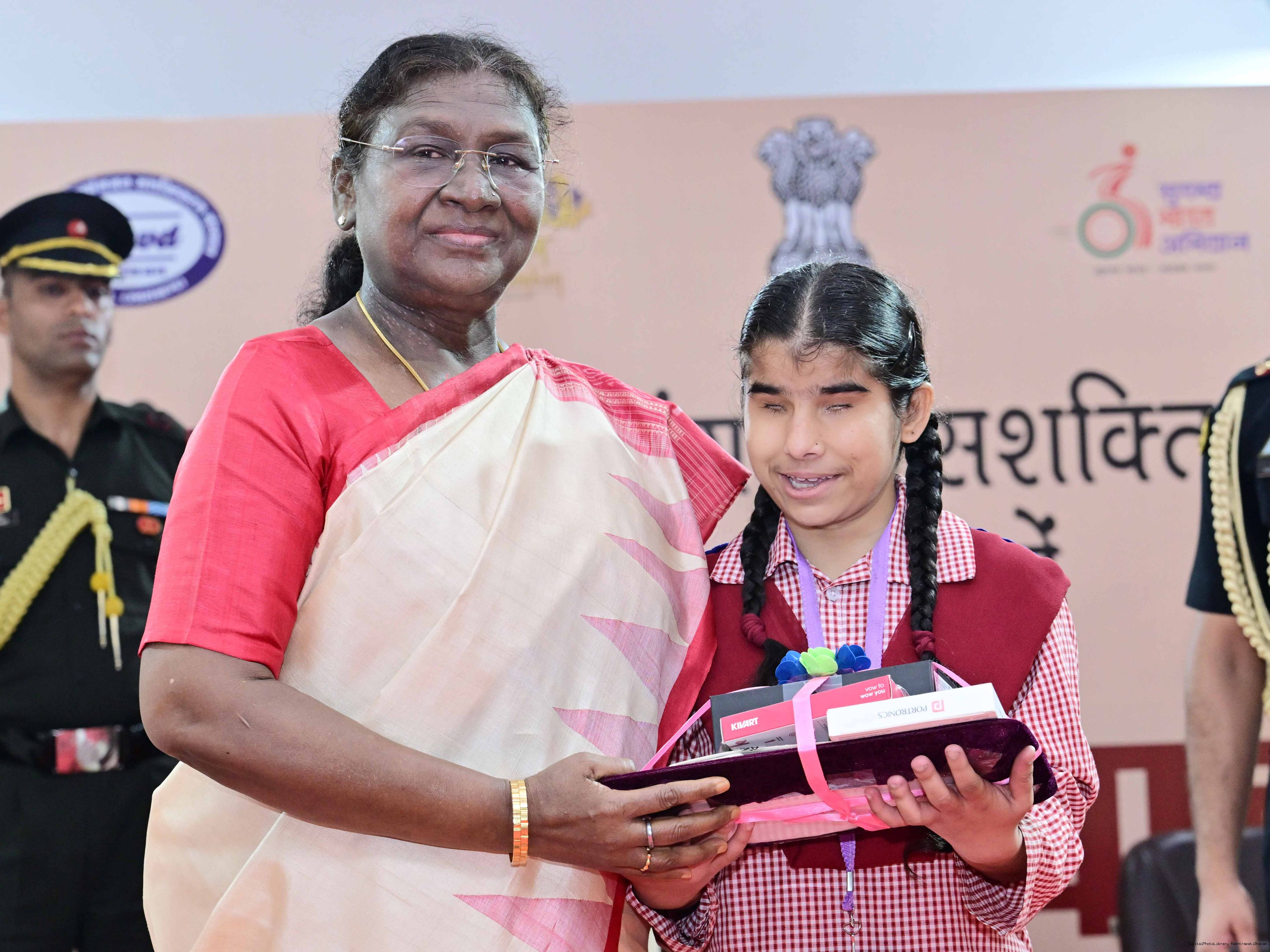 The President of India, Smt Droupadi Murmu addresses the students of National Institute for Empowerment of Persons with Visual Disabilities at Dehradun on June 20, 2025.