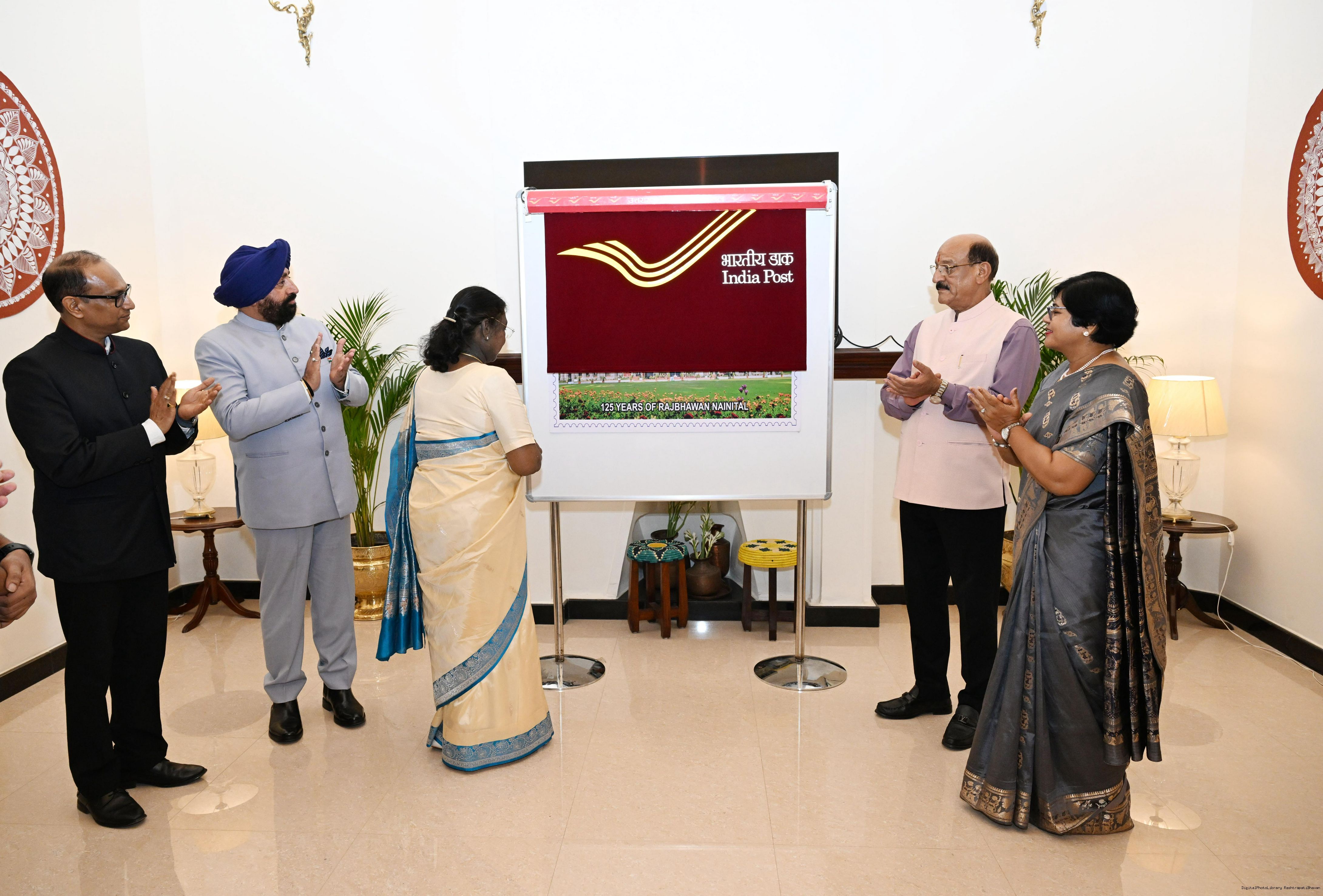 The President of India, Smt Droupadi Murmu released a postage stamp on Raj Bhavan, Nainital, on the completion of its 125 years, at Dehradun on June 20, 2025.