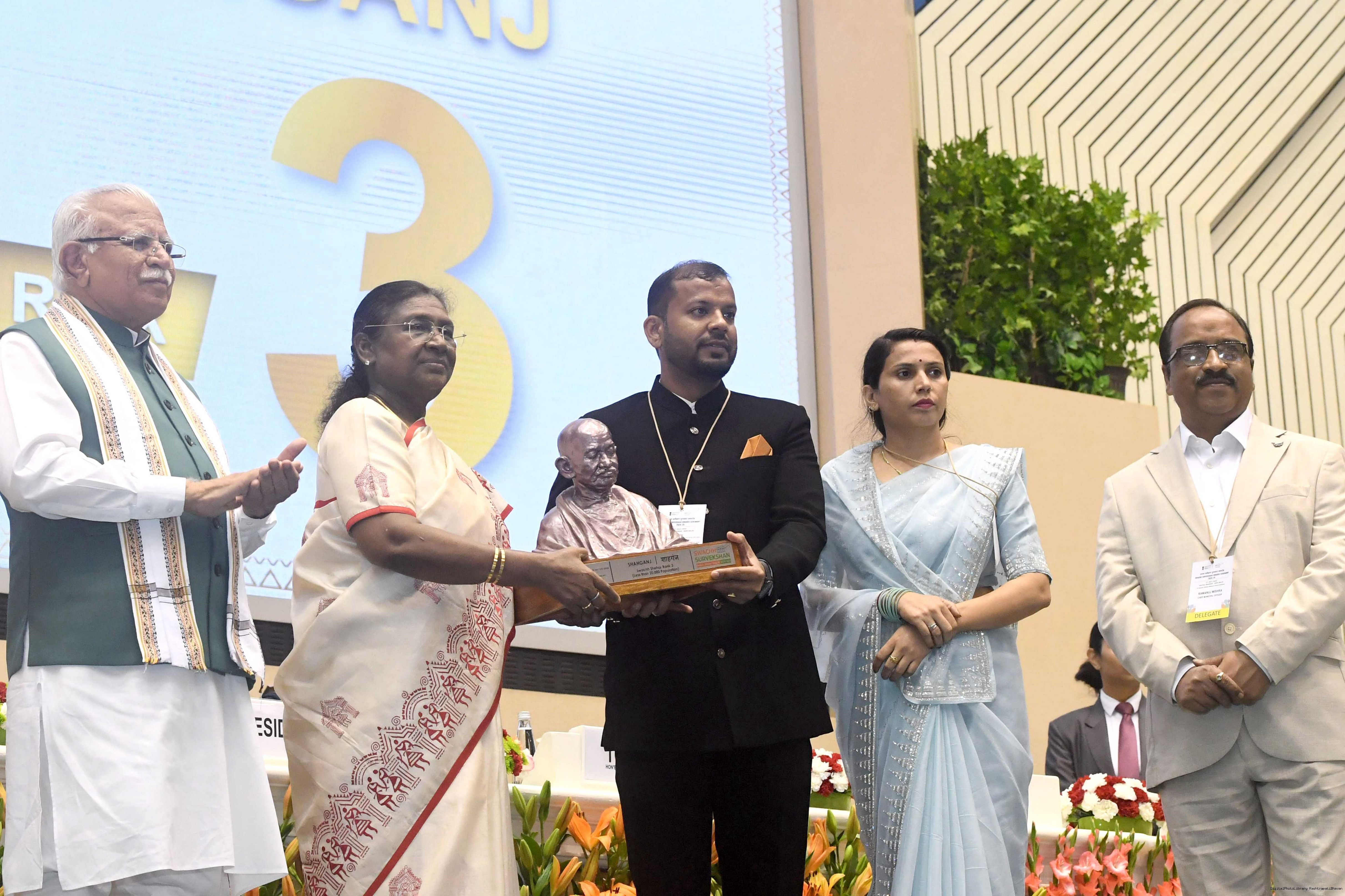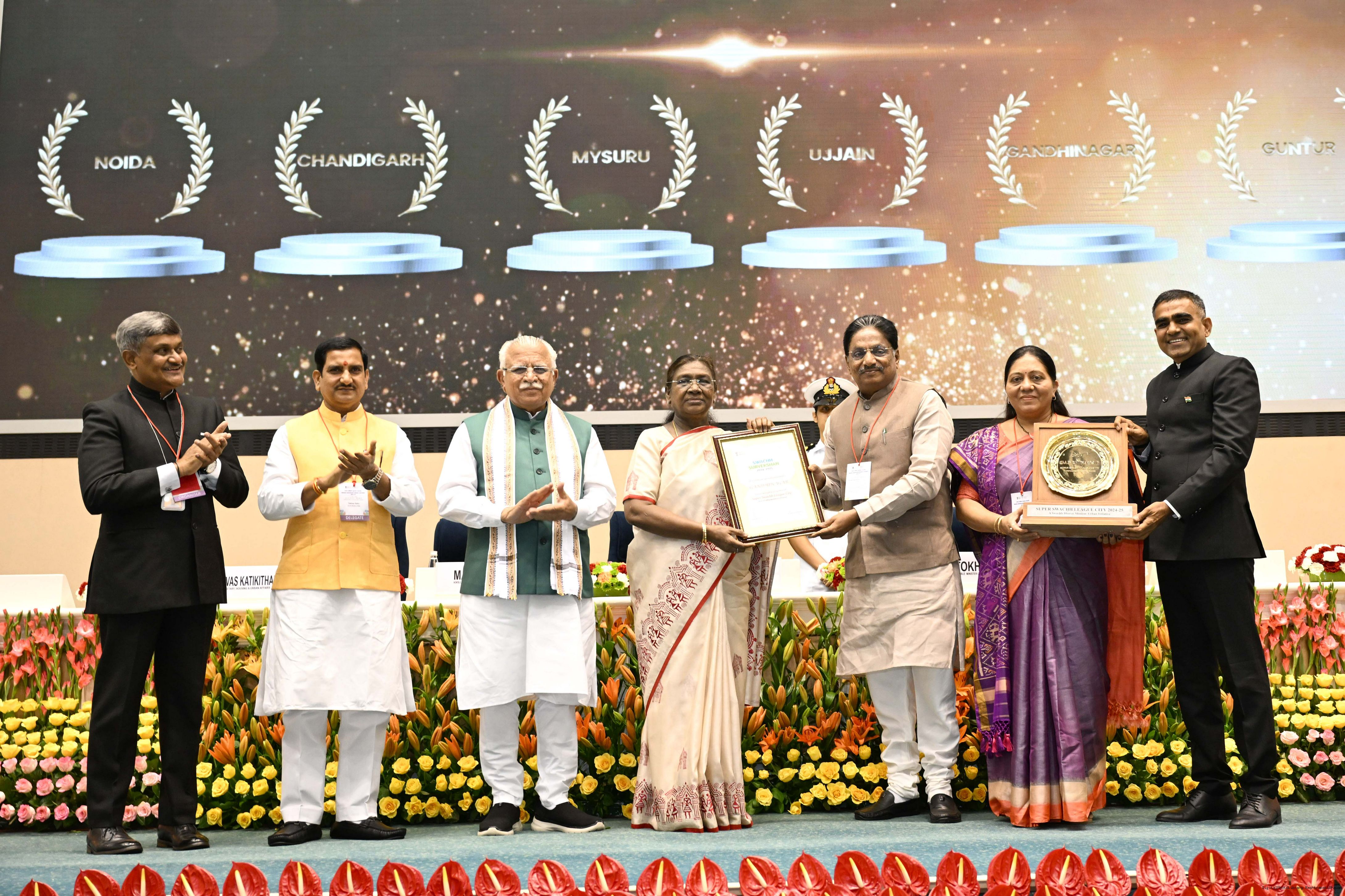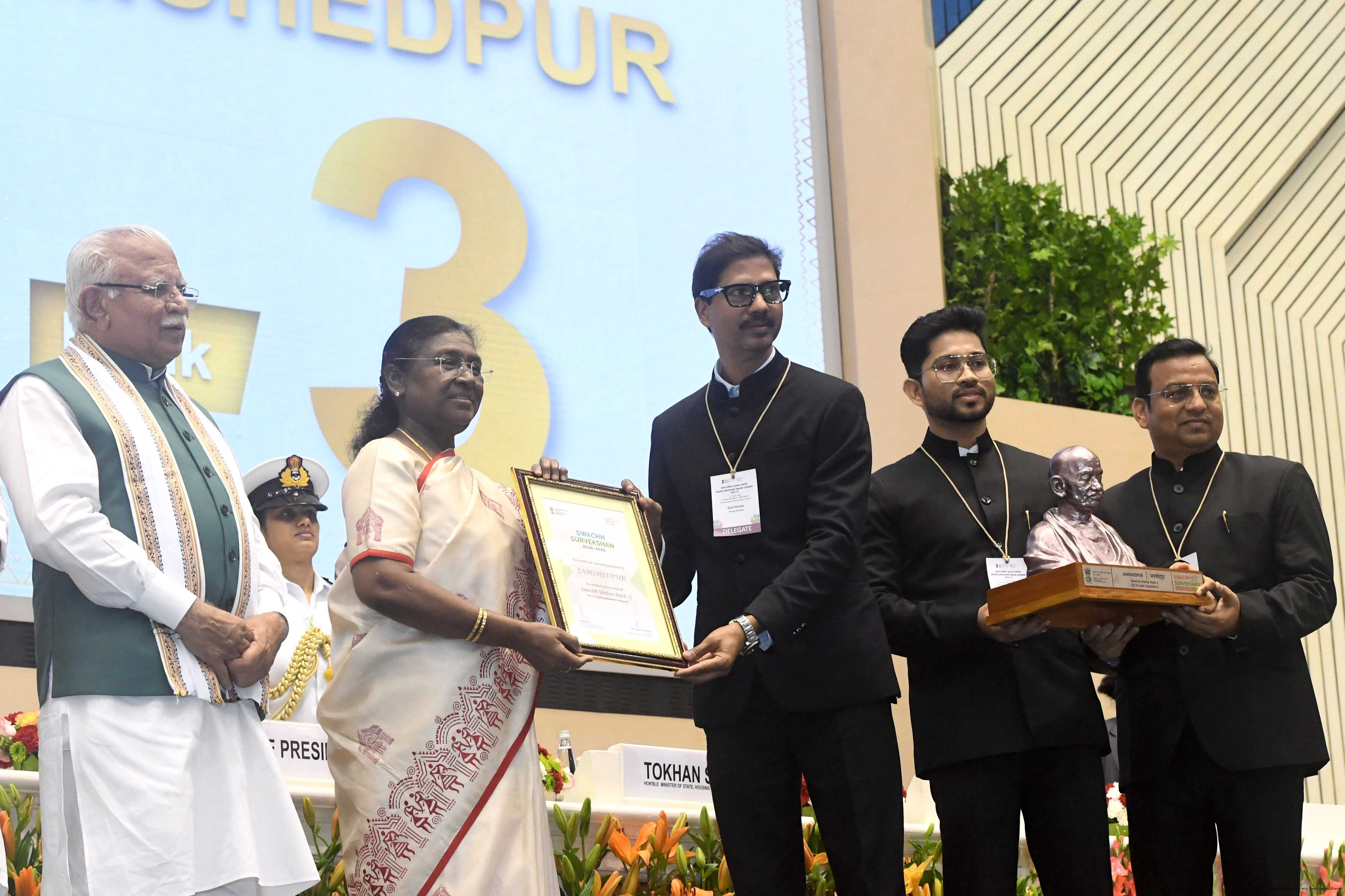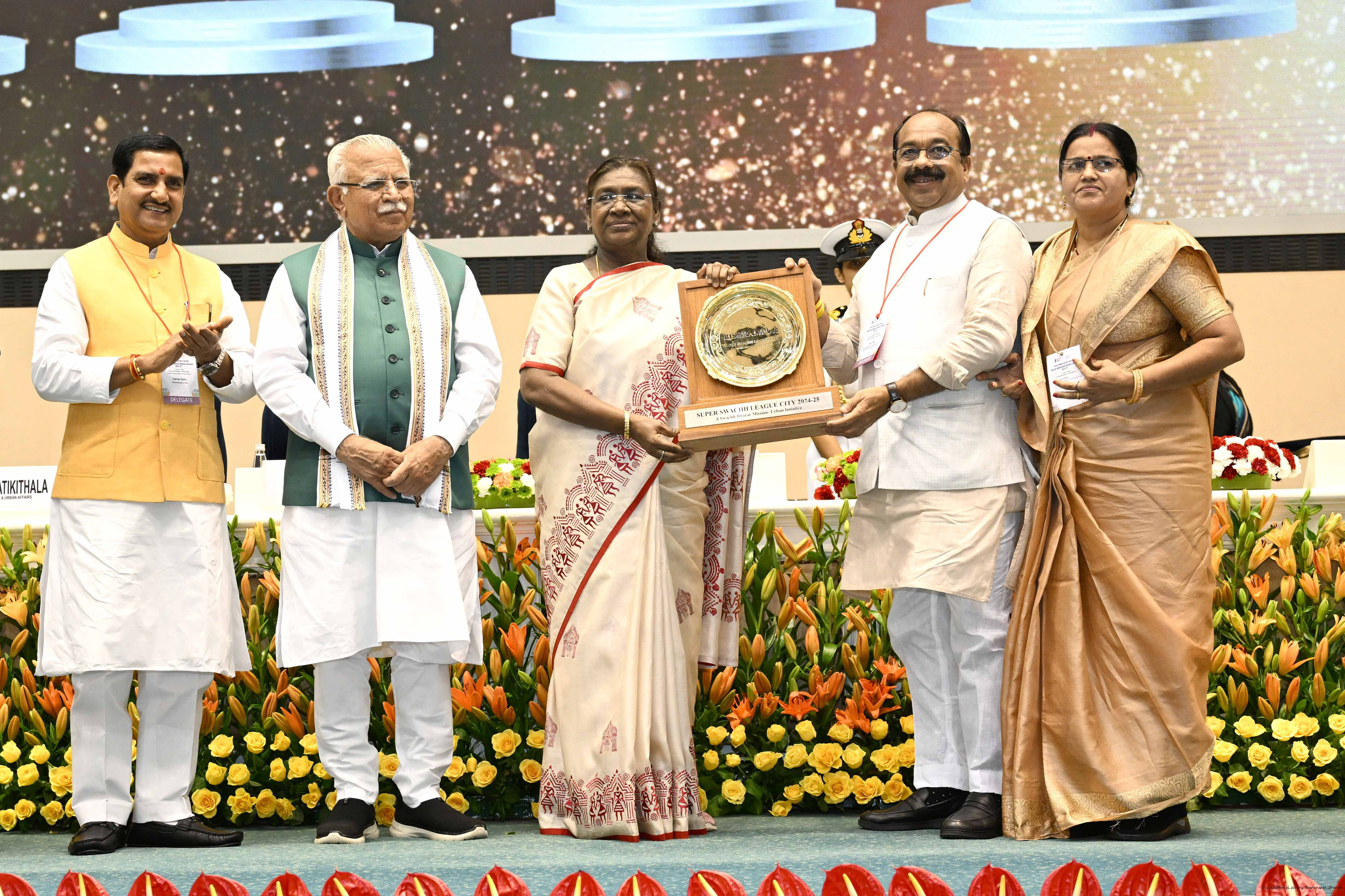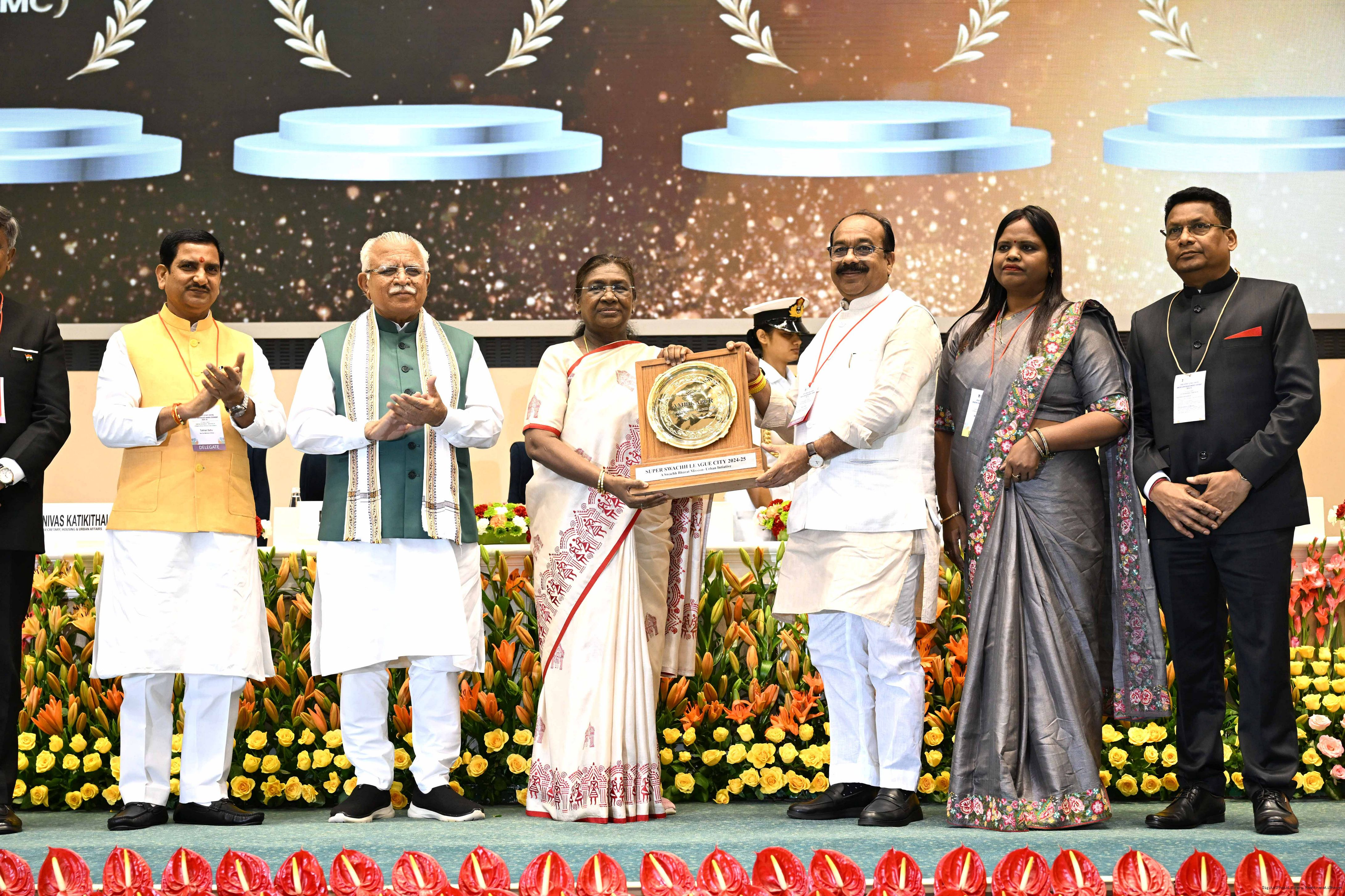 The President of India, Smt Droupadi Murmu, presented Swachh Survekshan awards at a function organized by the Ministry of Housing and Urban Affairs in New Delhi on July 17, 2025.