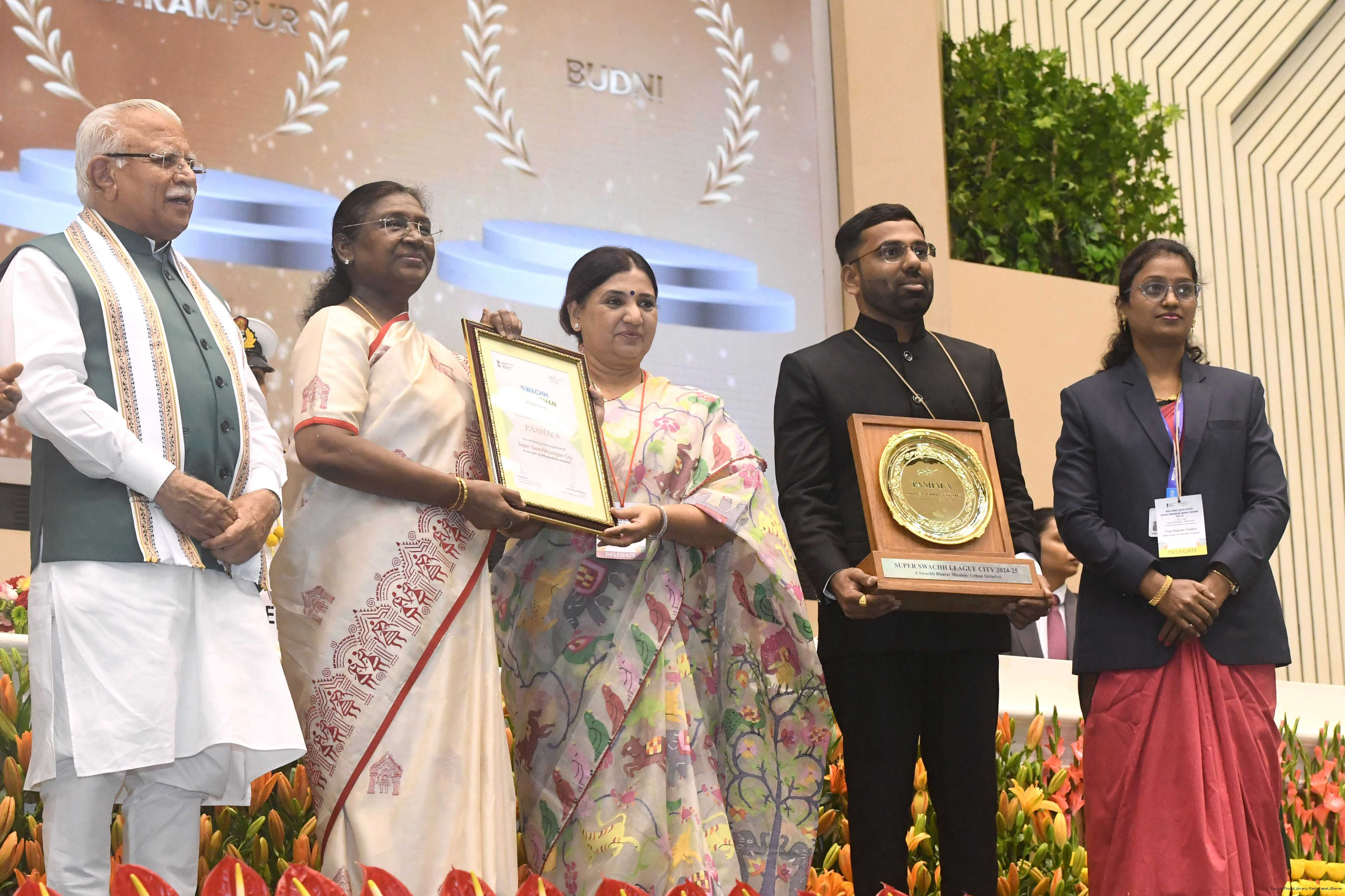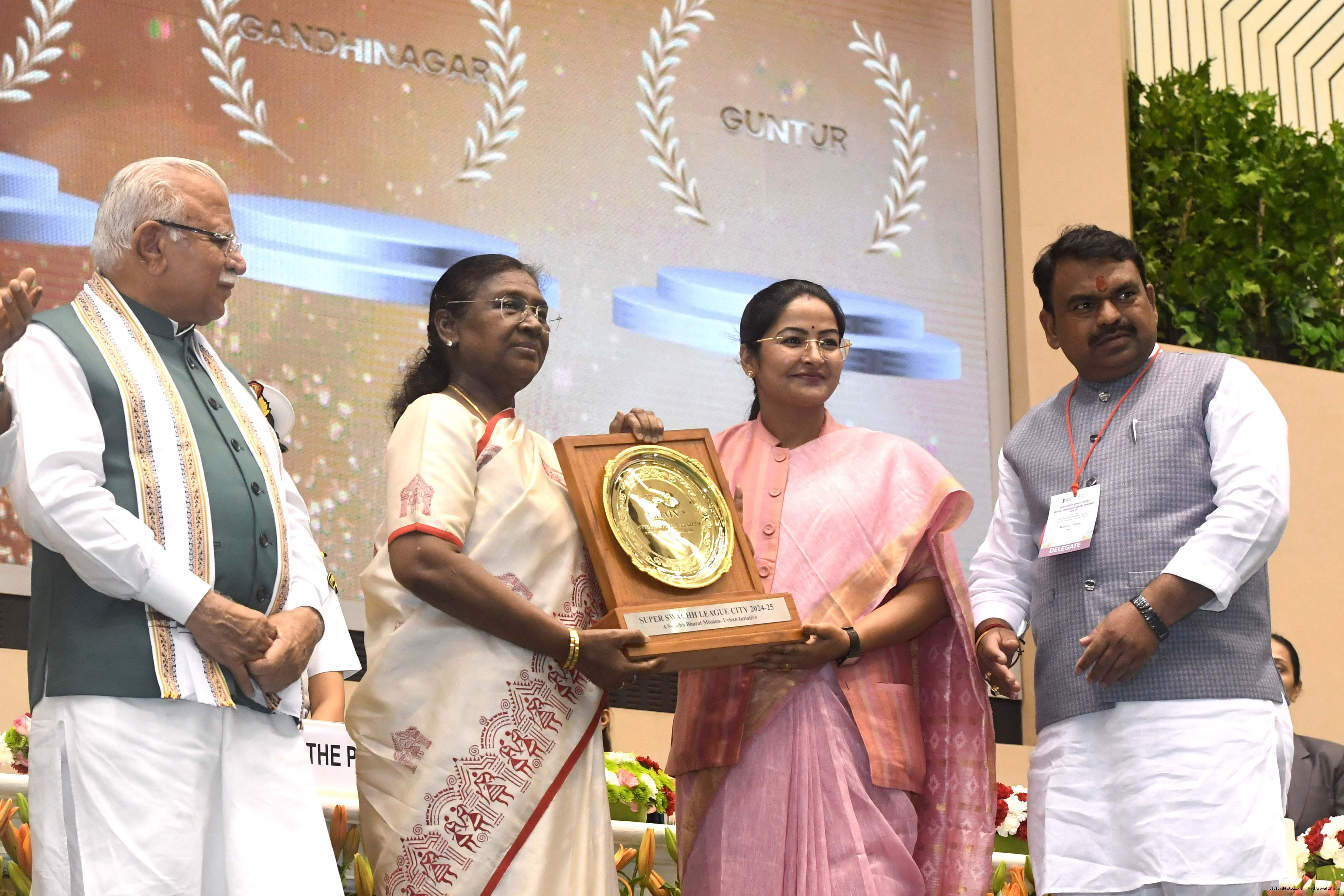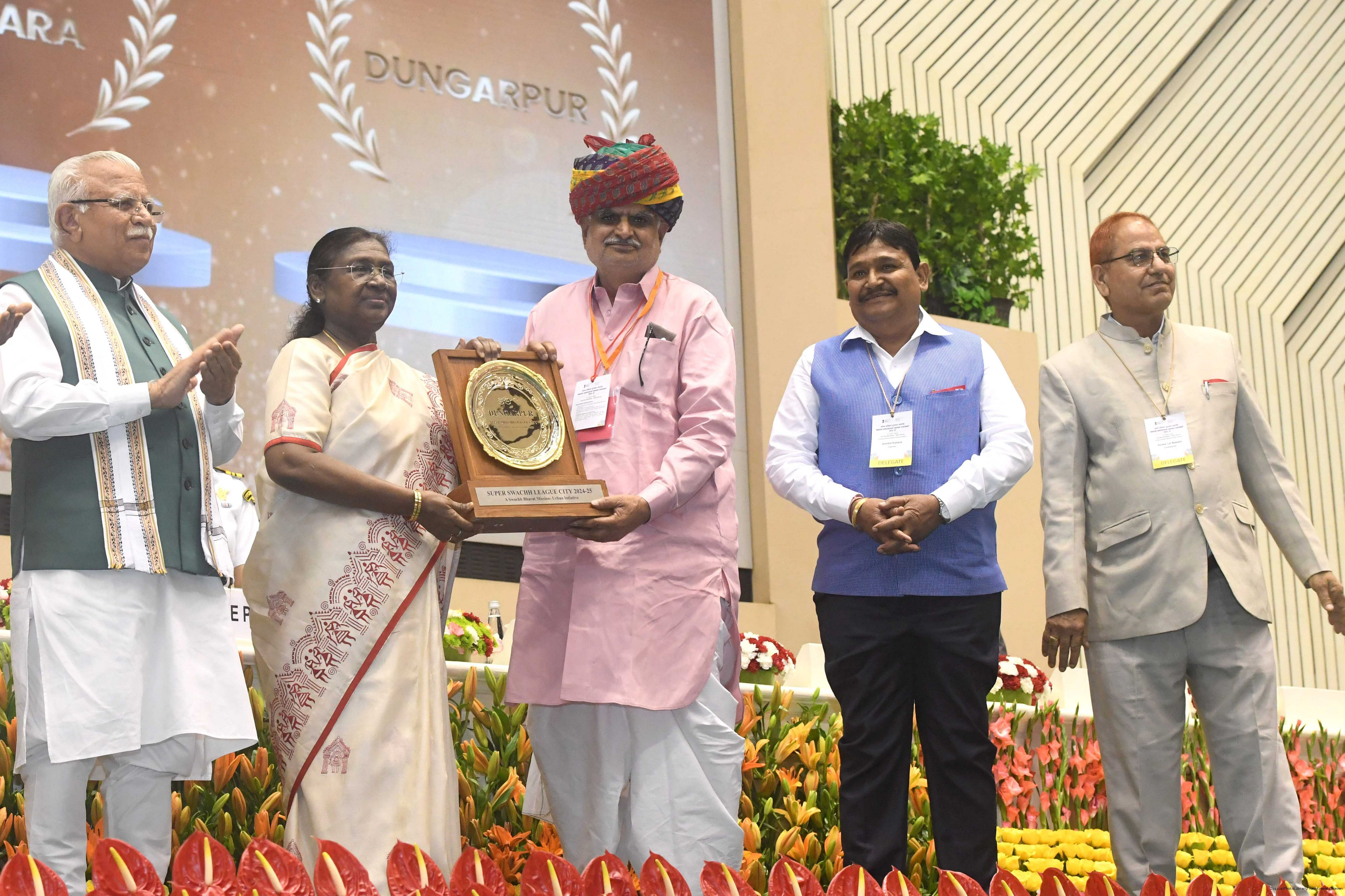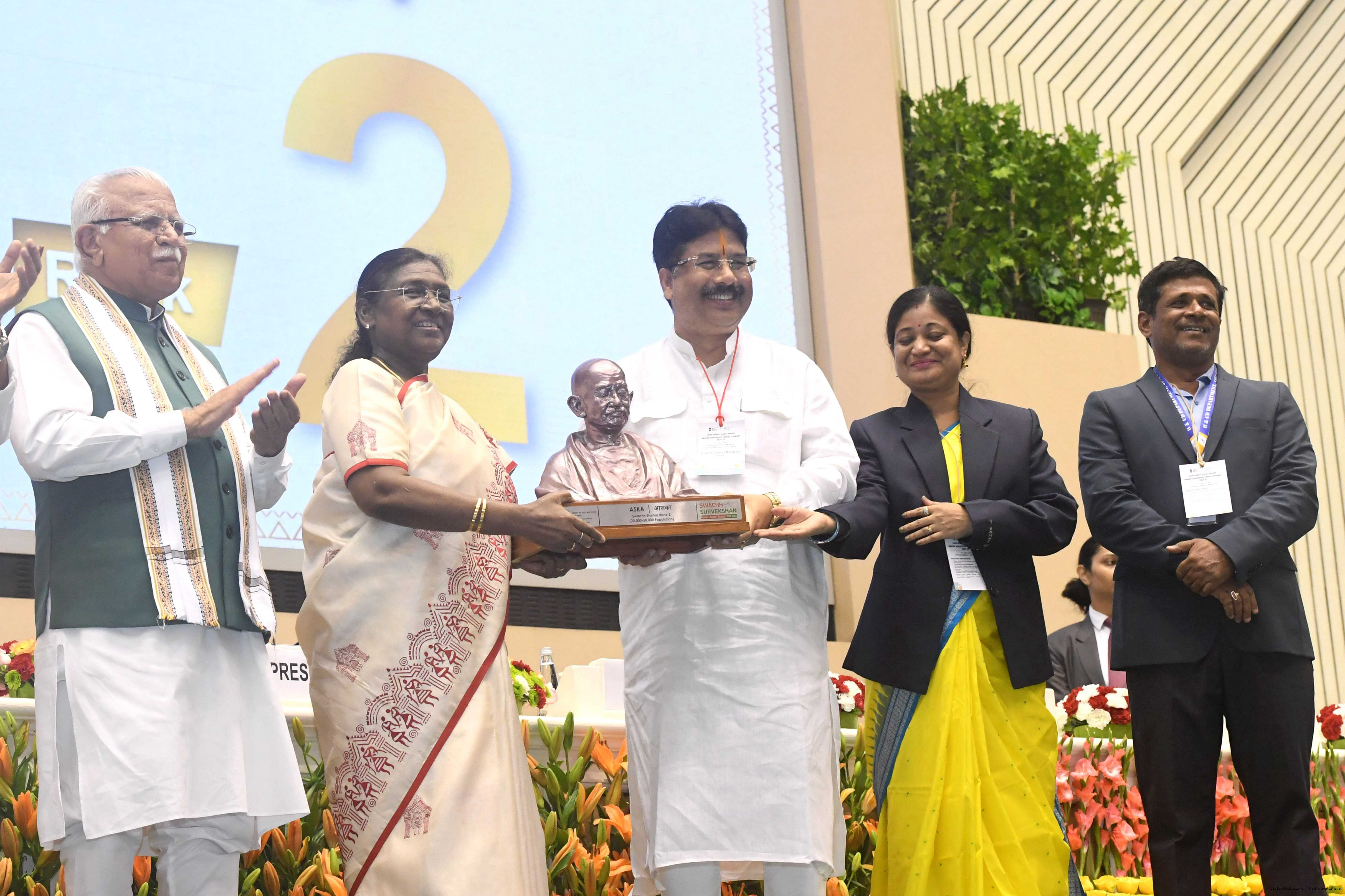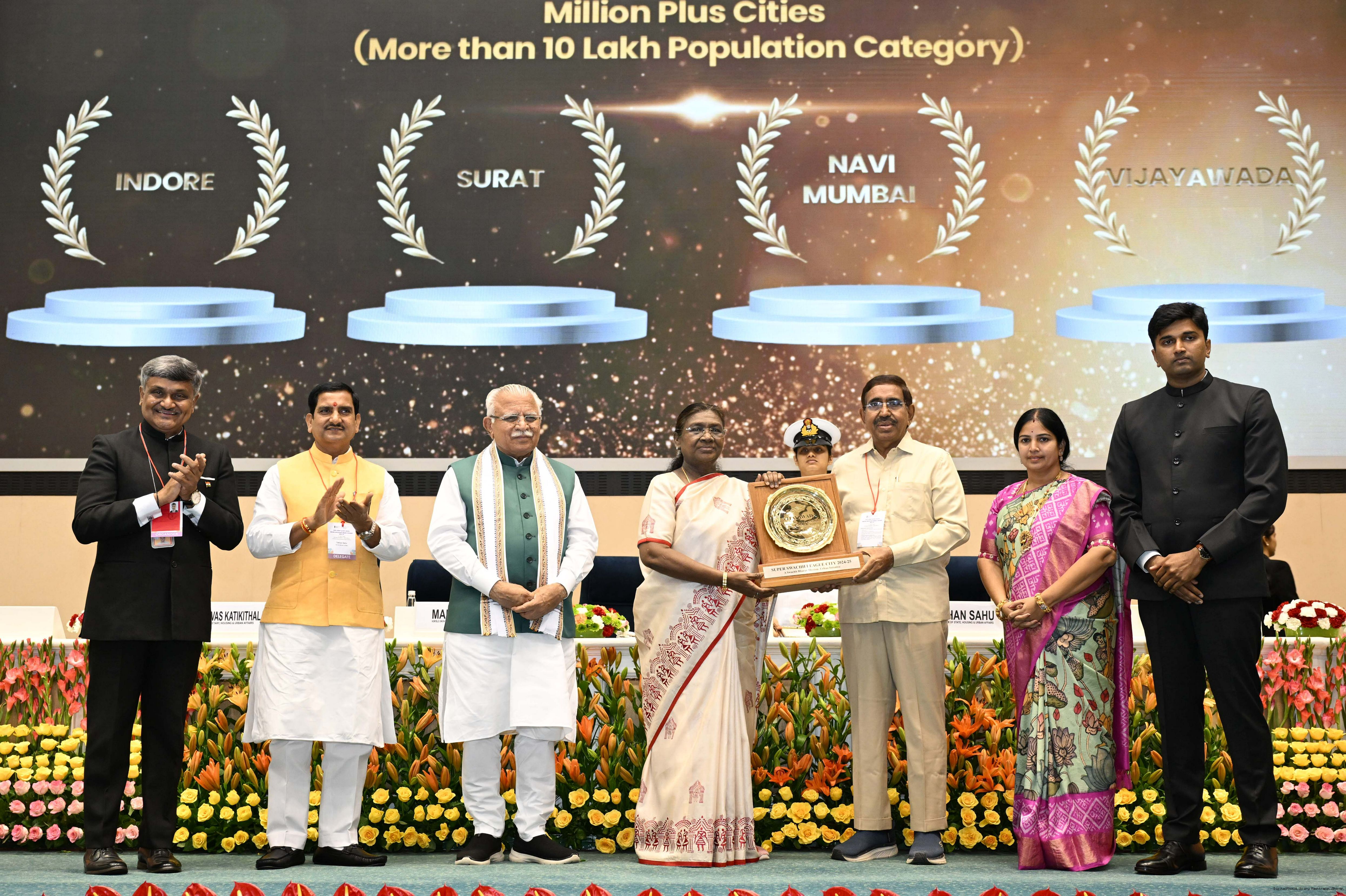 The President of India, Smt Droupadi Murmu, presented Swachh Survekshan awards at a function organized by the Ministry of Housing and Urban Affairs in New Delhi on July 17, 2025.