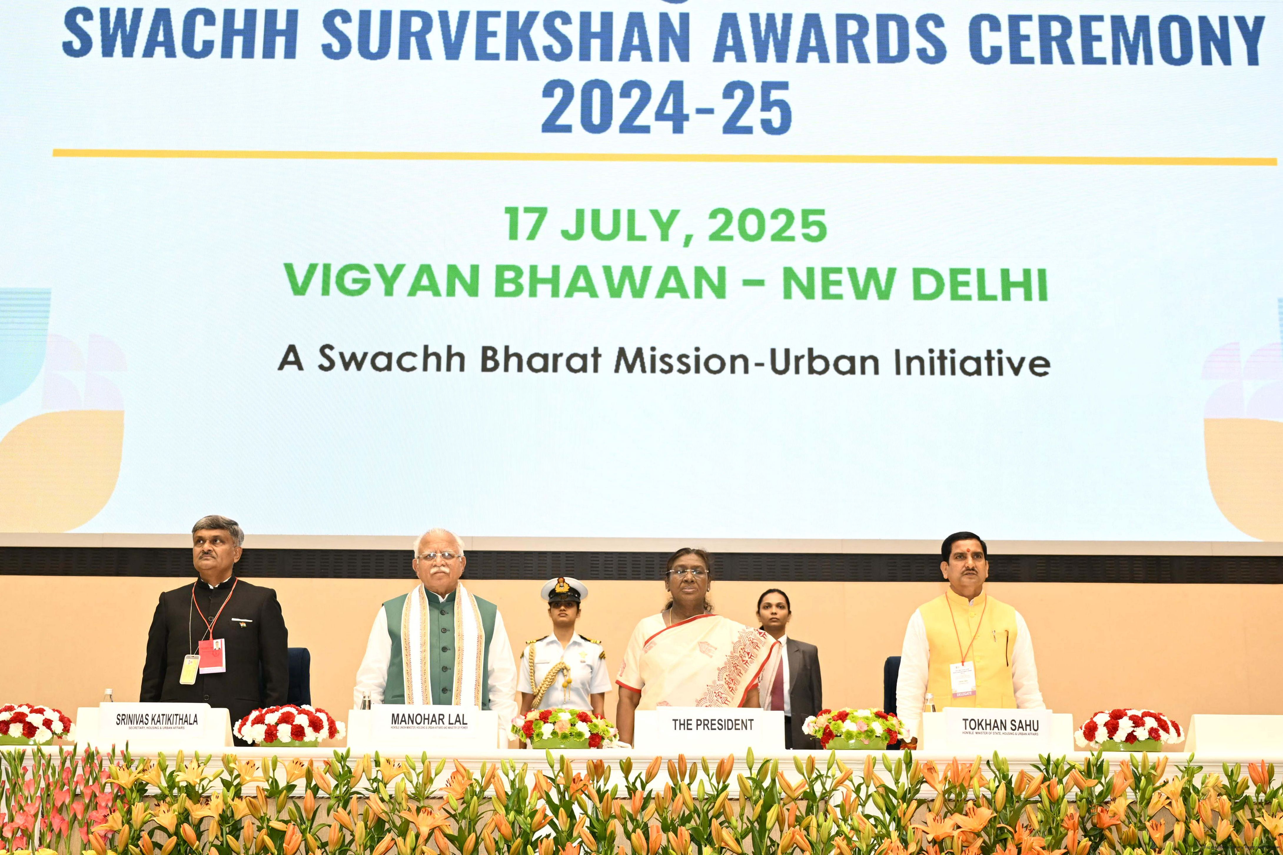 The President presented Swachh Survekshan Awards on July 17, 2025.