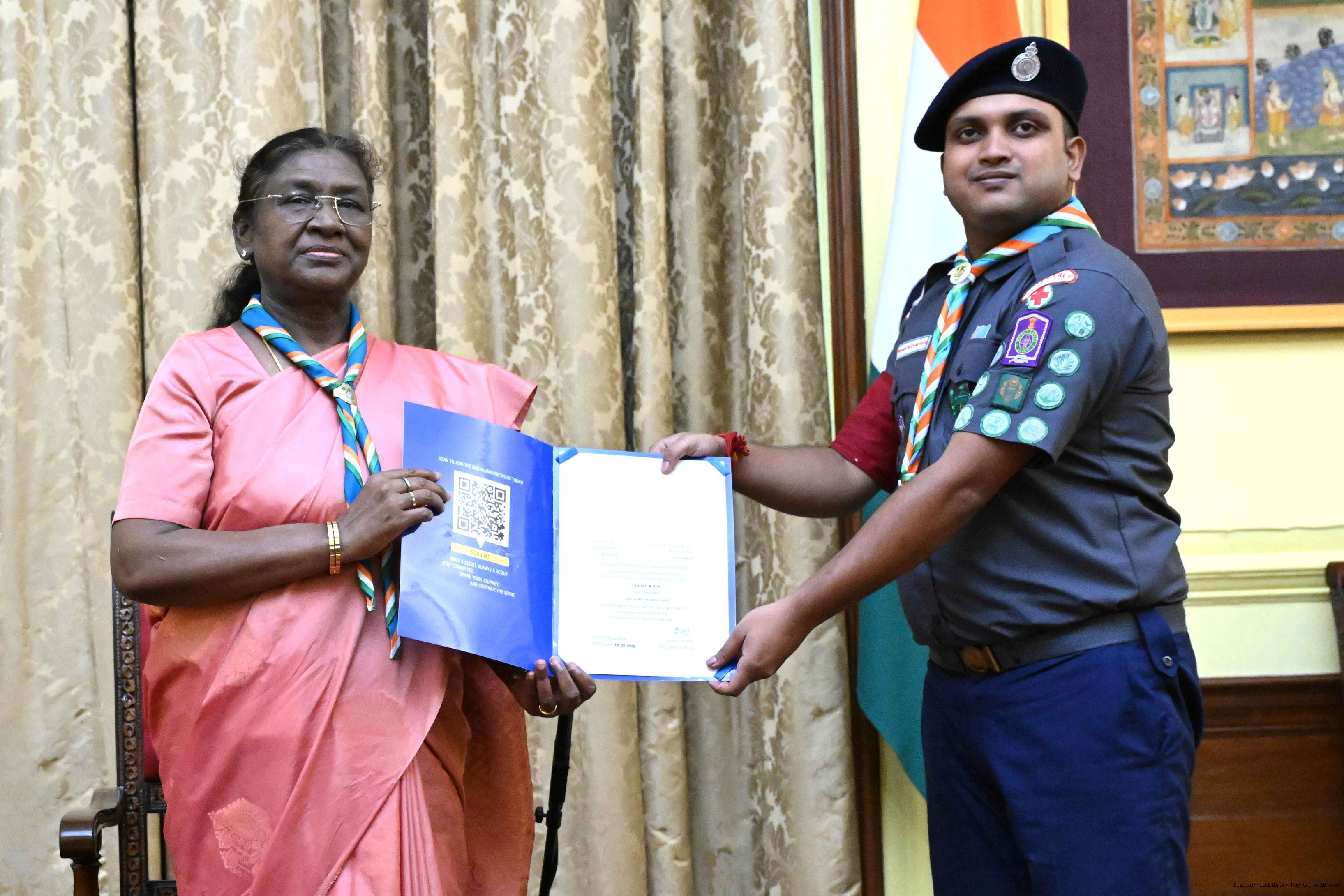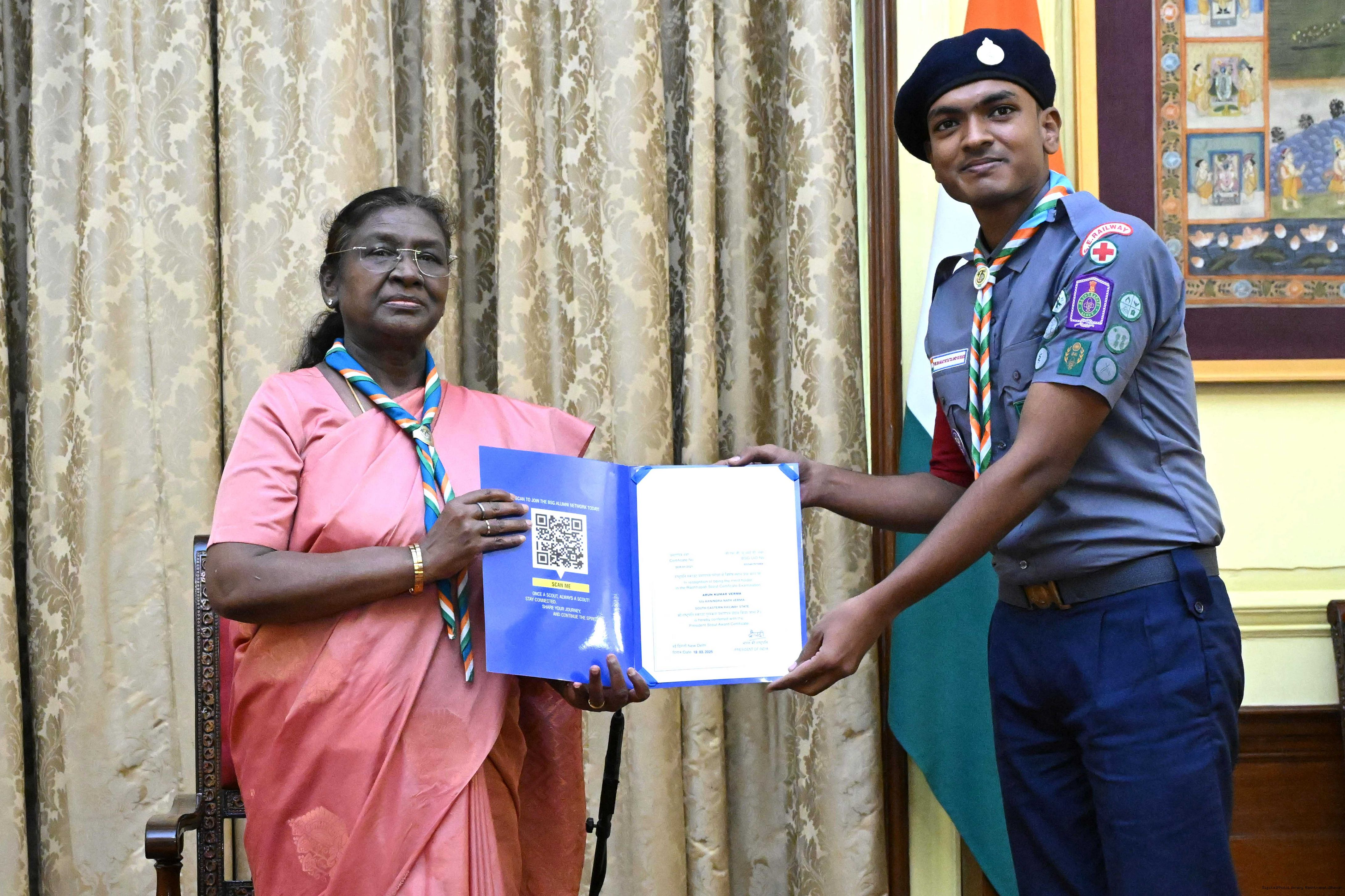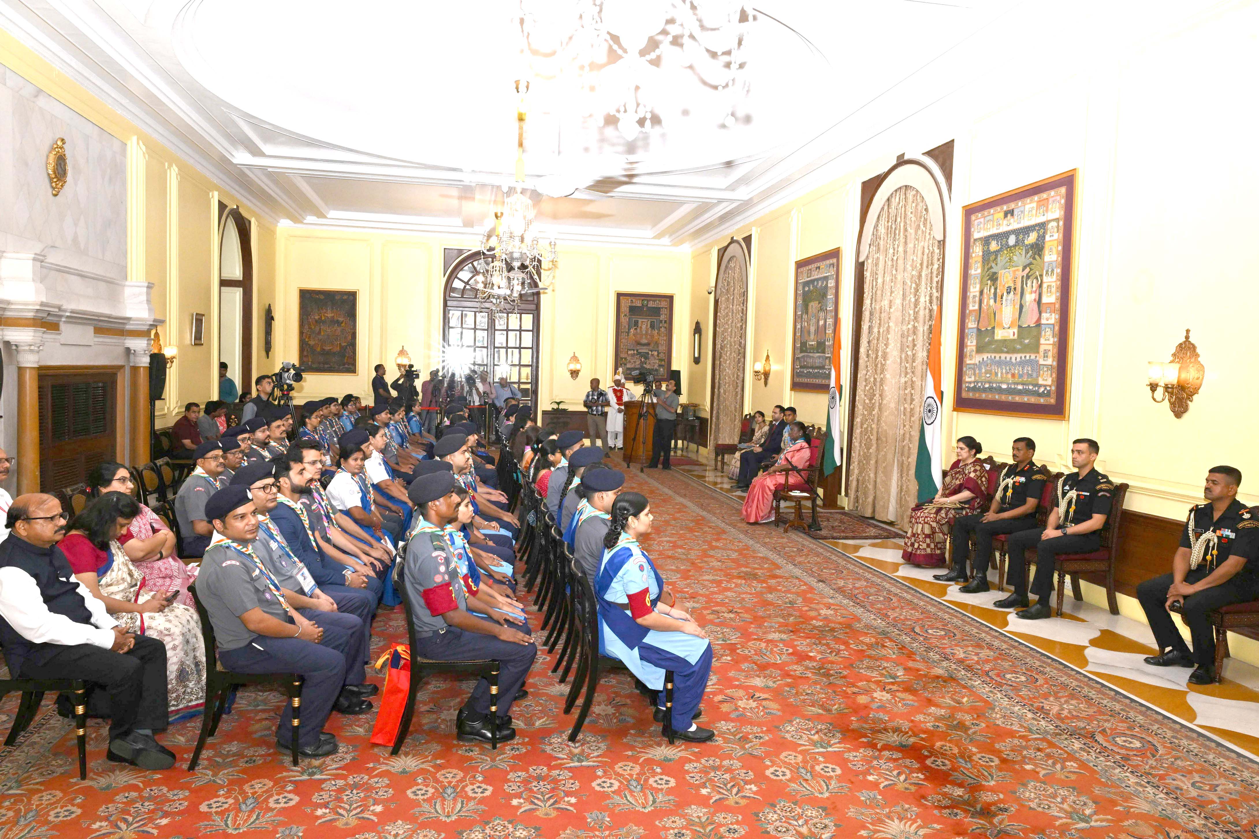 The President of India, Smt. Droupadi Murmu presented the Scouts/Guides/Rovers/Rangers Award Certificates for the years 2018-2021 at a function at Rashtrapati Bhavan on July 22, 2025.