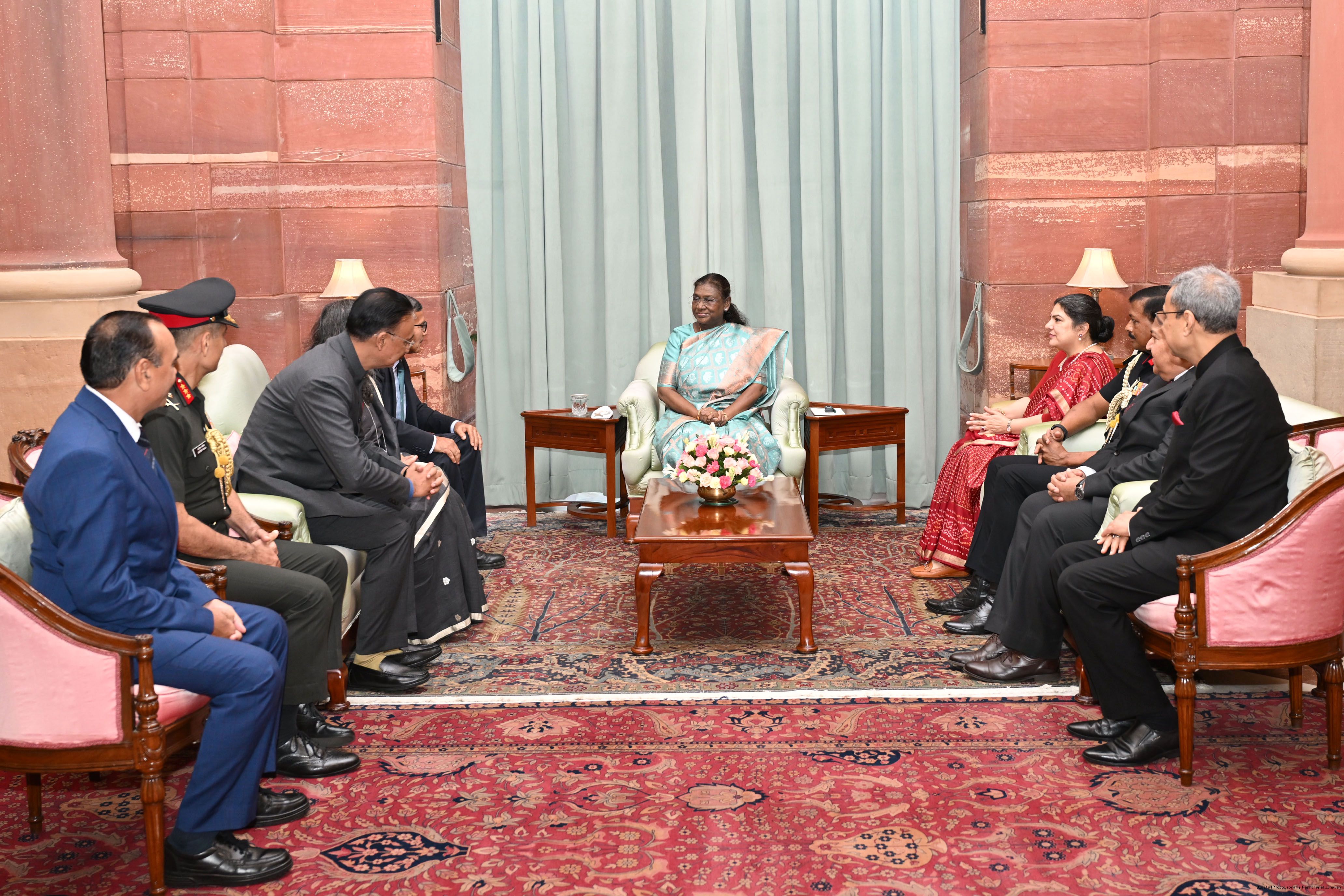 The President met and interacted Indian Defence Estates Service, Military Engineer Services and Central Water Engineering Service on July 23, 2025.