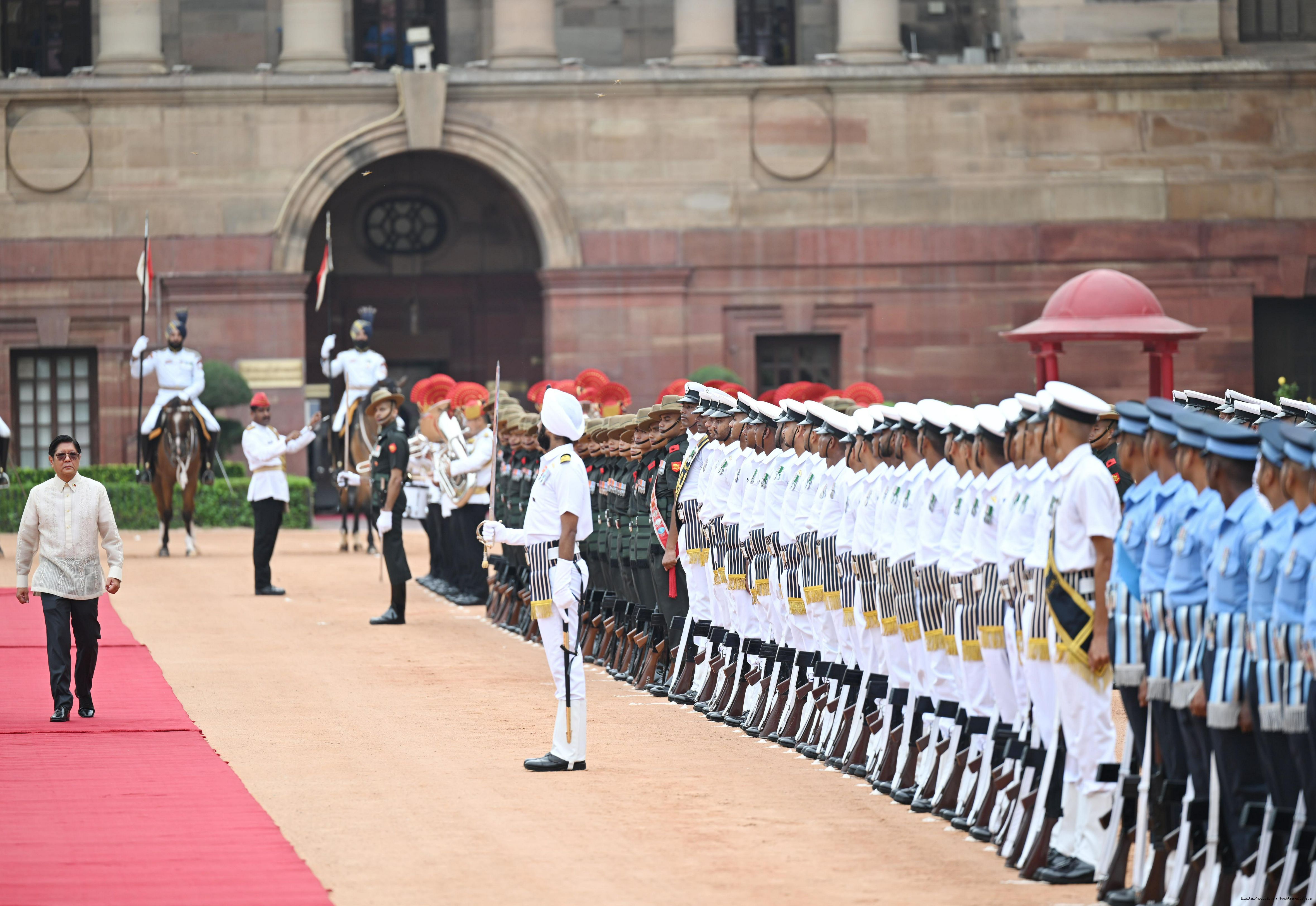 The President of India, Smt. Droupadi Murmu was accorded a ceremonial welcome to H.E. Mr. Ferdinand Romualdez Marcos Jr., President of the Republic of Philippines at Rashtrapati Bhavan on August 4, 2025.
