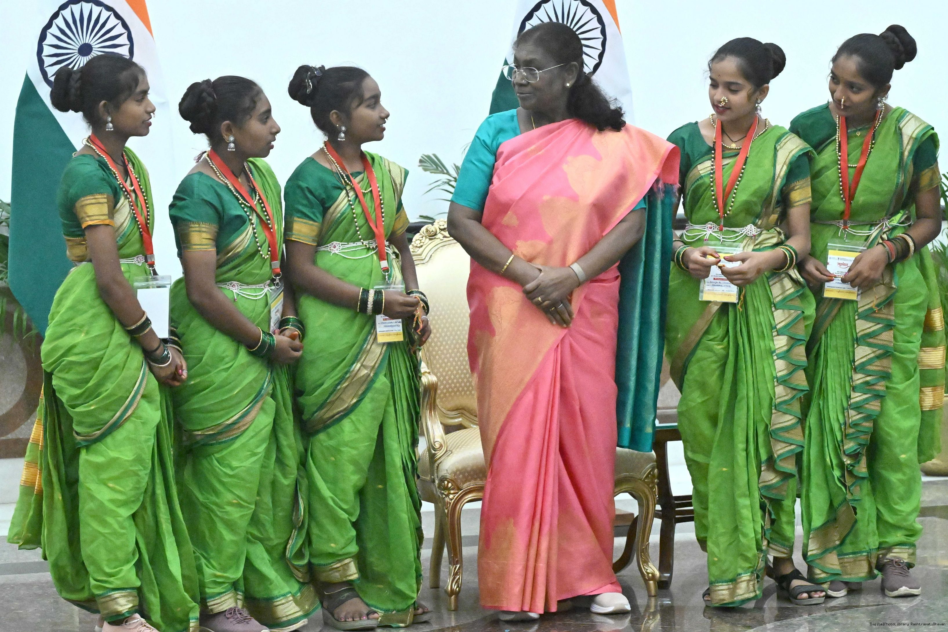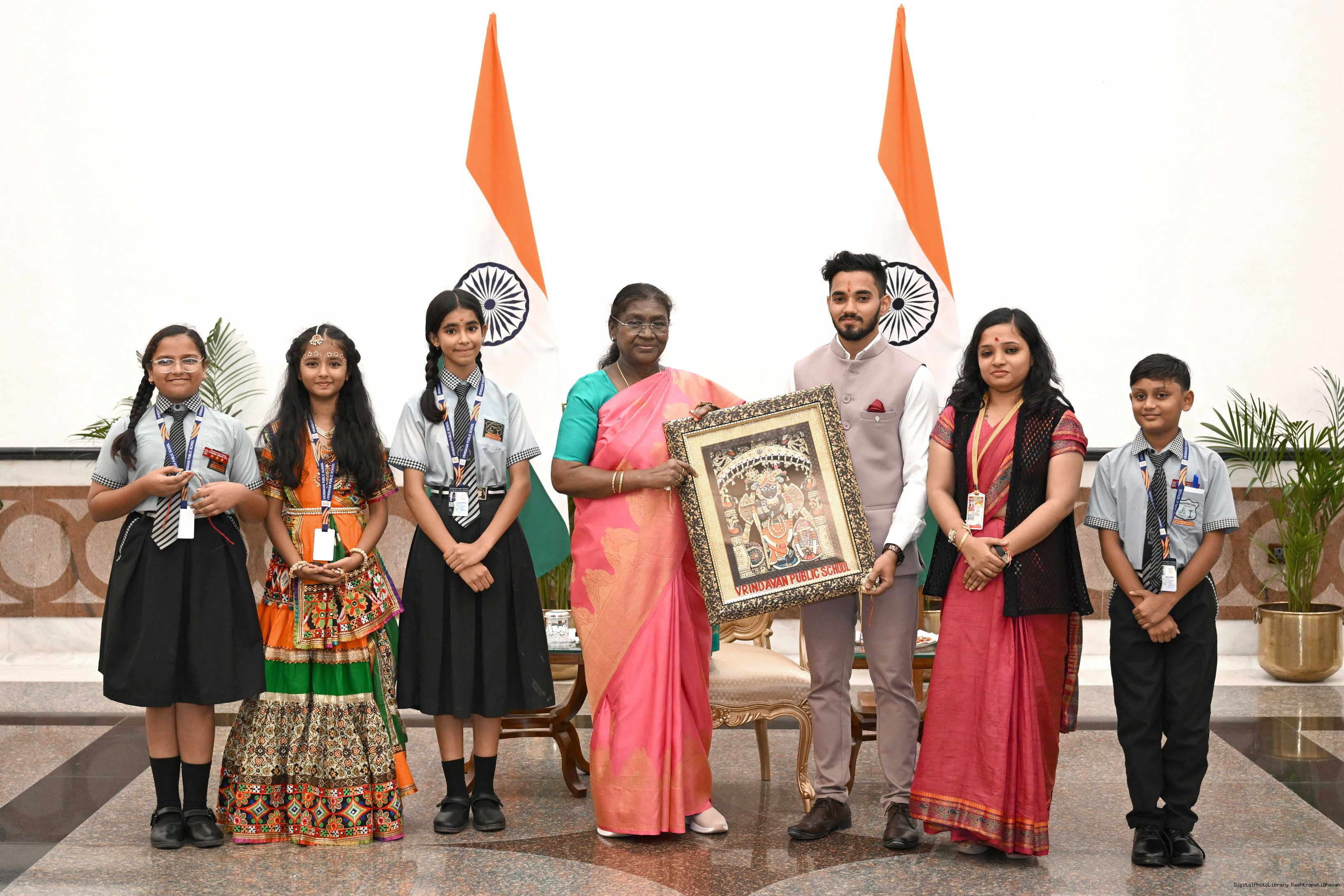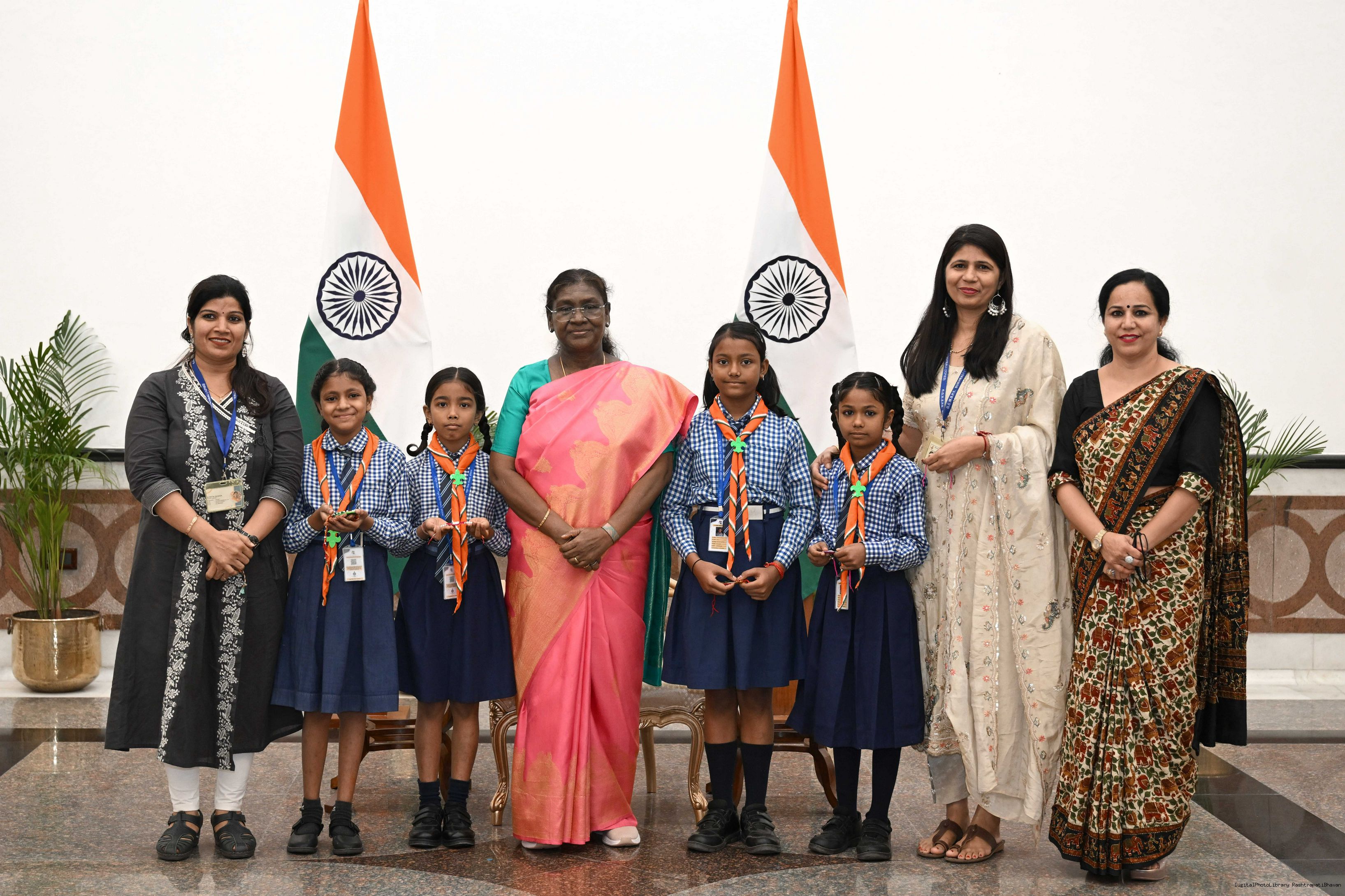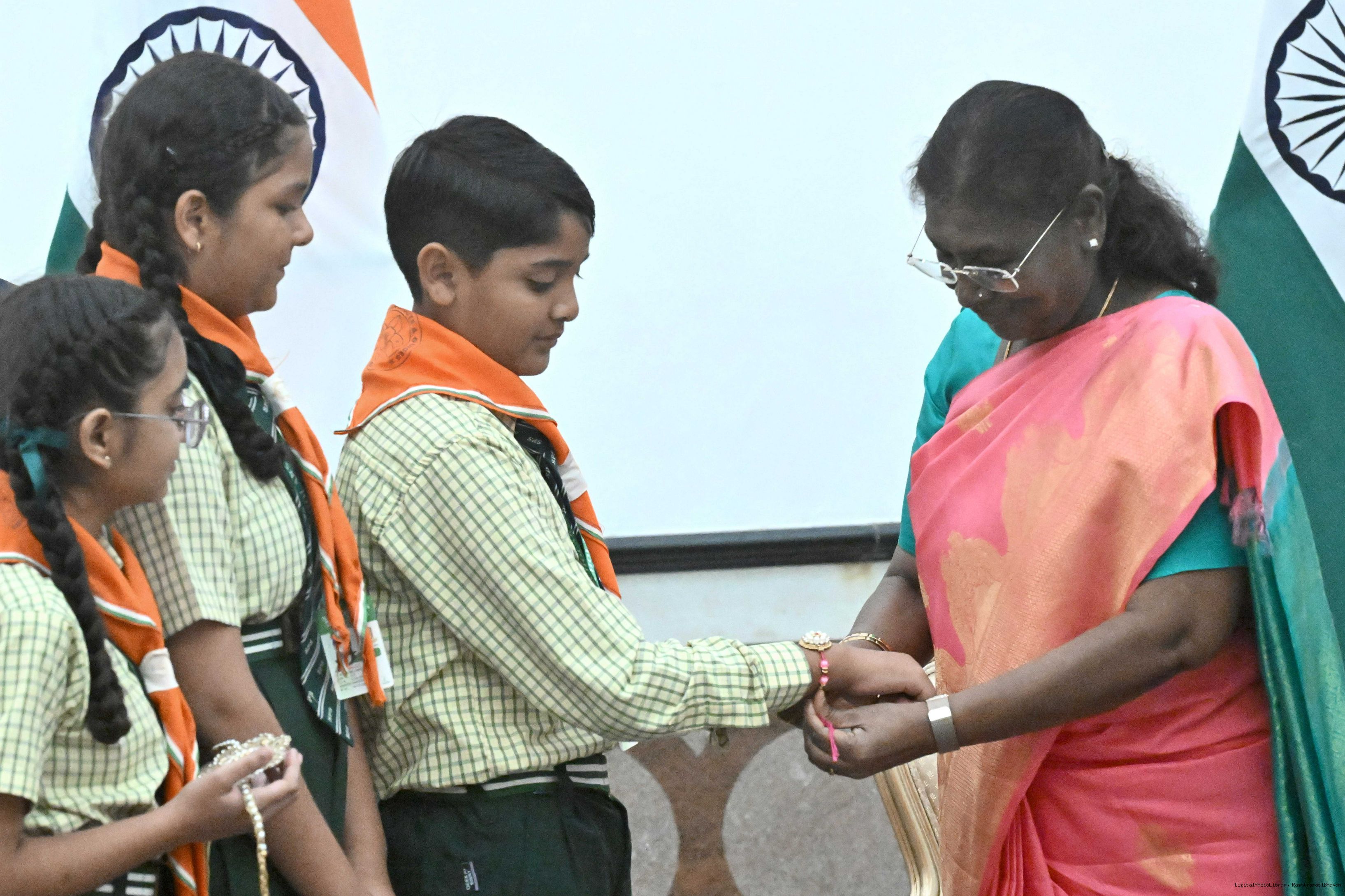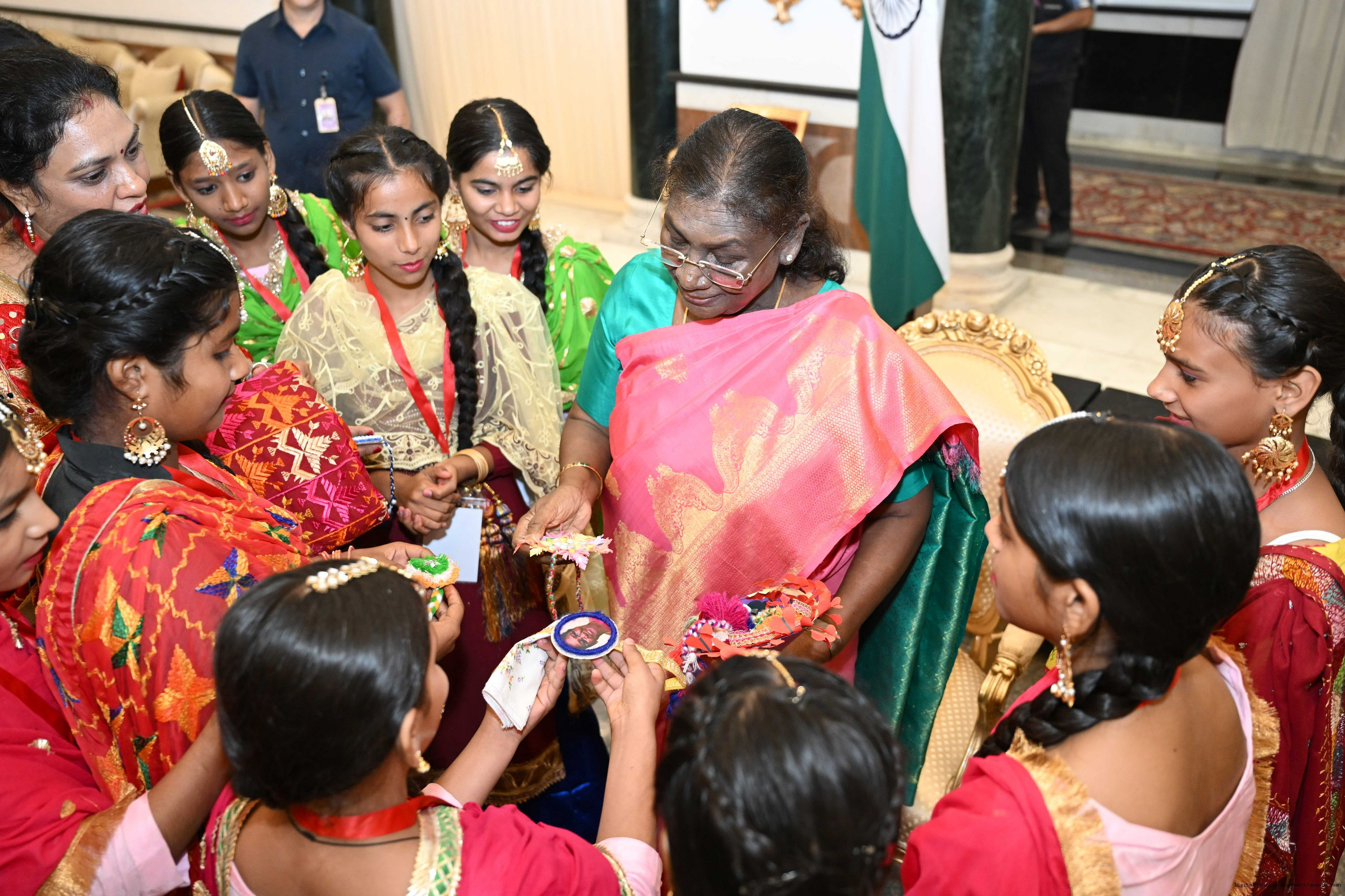 The President of India, Smt. Droupadi Murmu celebrated Raksha Bandhan with children and students at various schools and organizations at Rashtrapati Bhavan on August 9, 2025.
