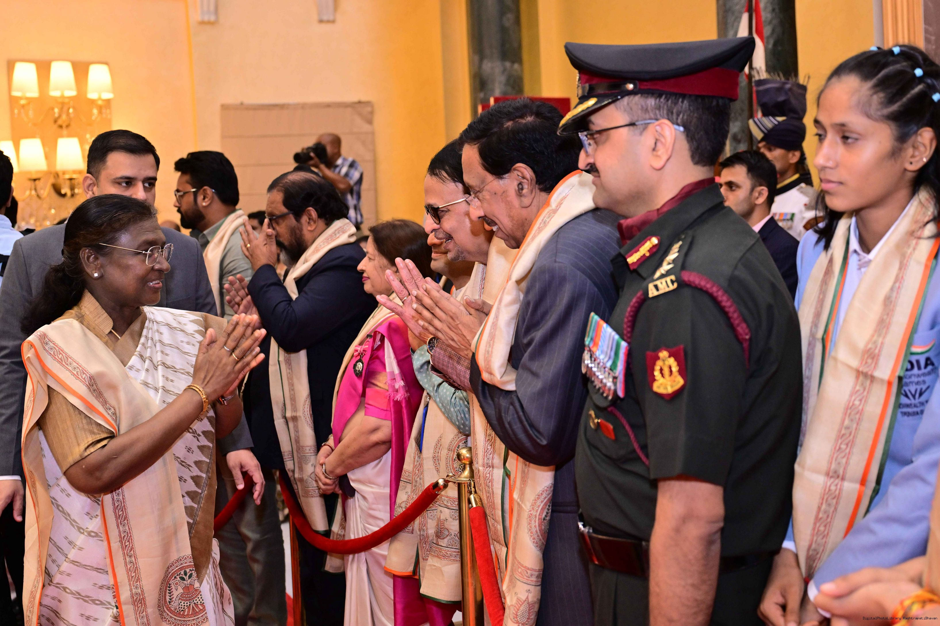 The President of India, Smt Droupadi Murmu hosting 'At Home' Reception on the occasion of 72nd Independence Day, at Rashtrapati Bhavan Cultural Centre on August 15, 2025.
