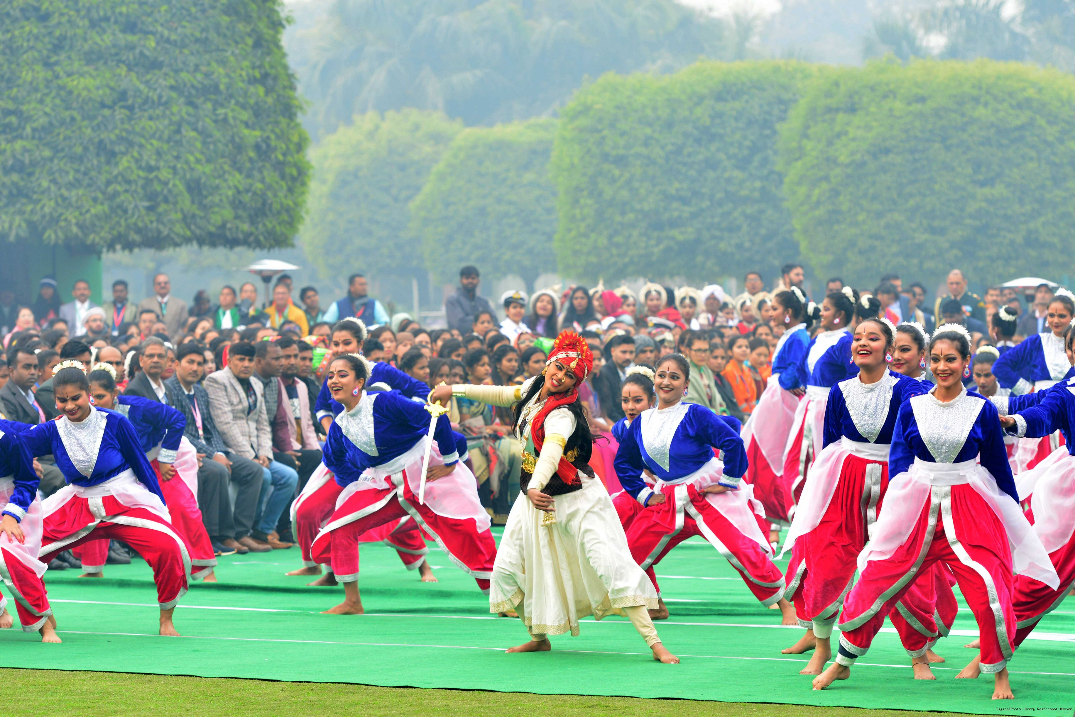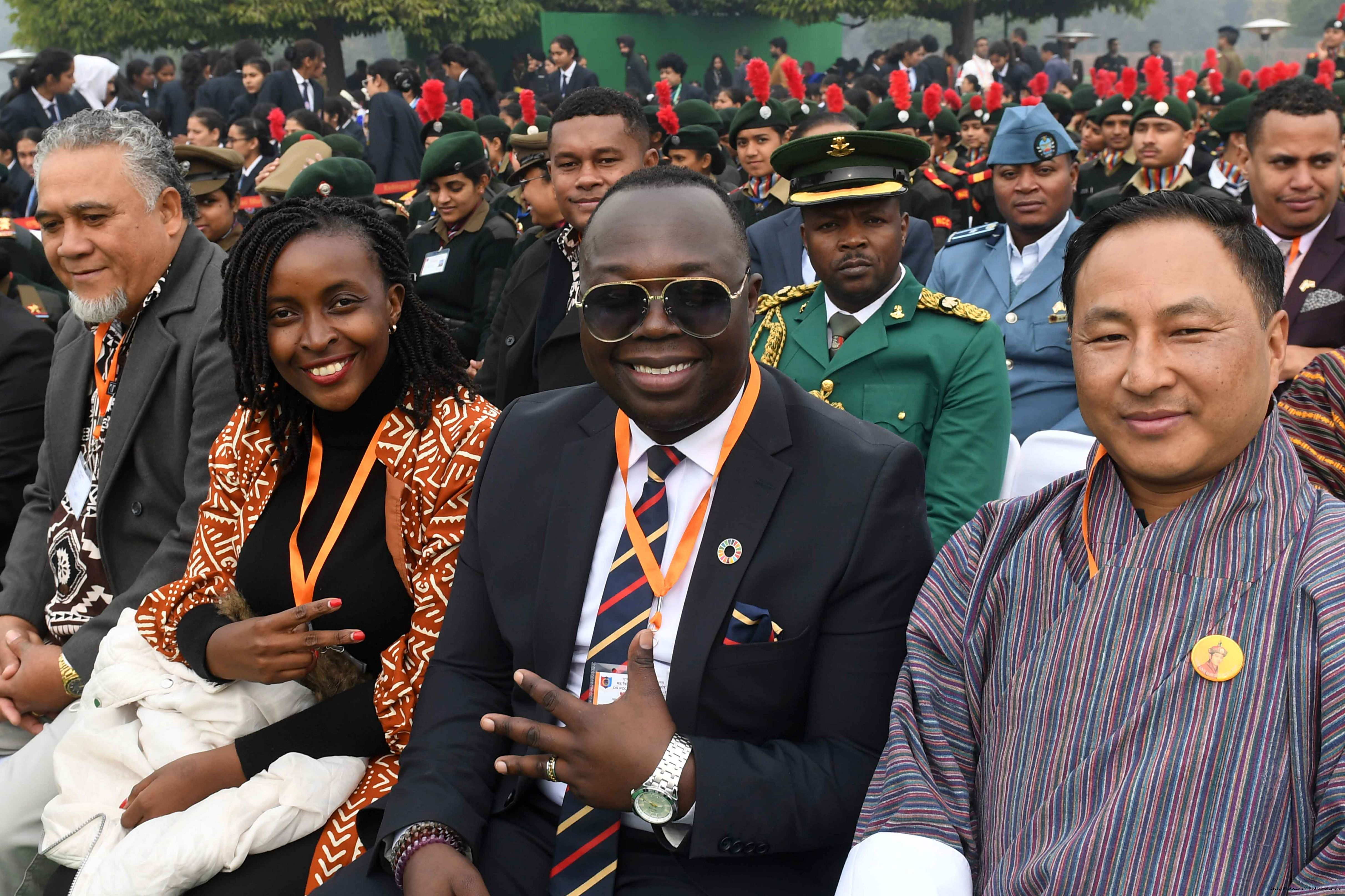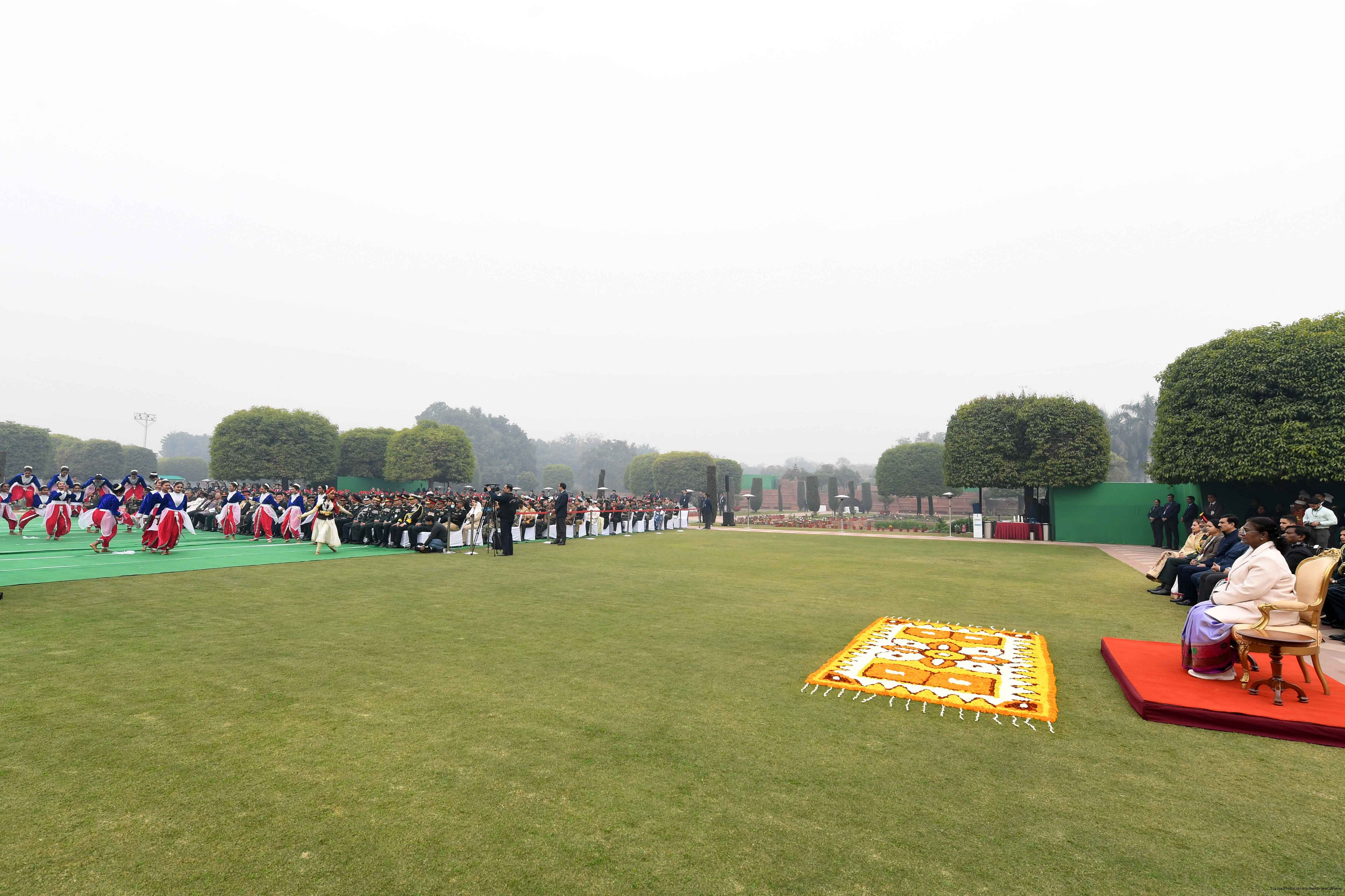 The President met tribal guests, tableaux artistes and tractor drivers, NSS volunteers and NCC cadets on January 28, 2024.