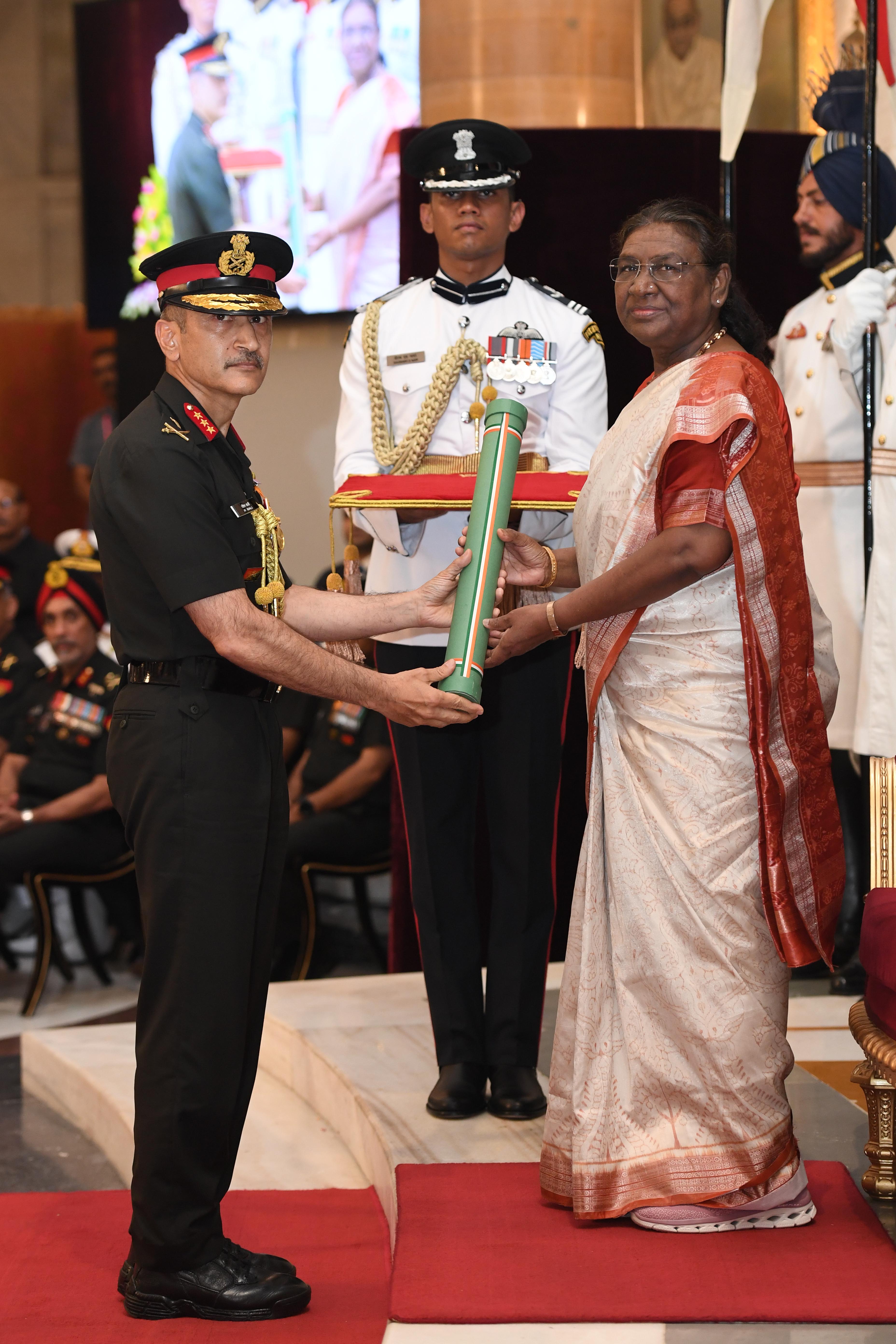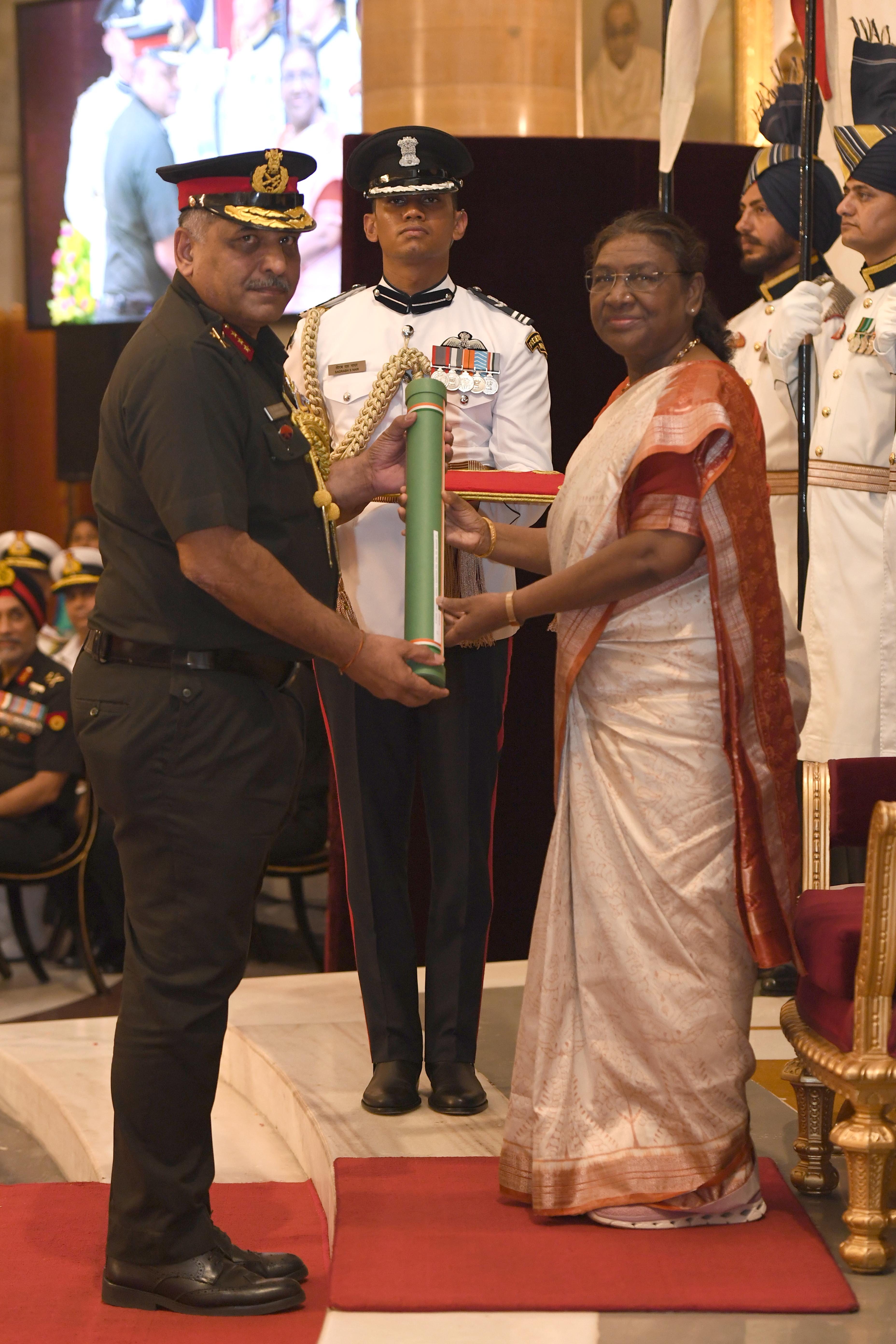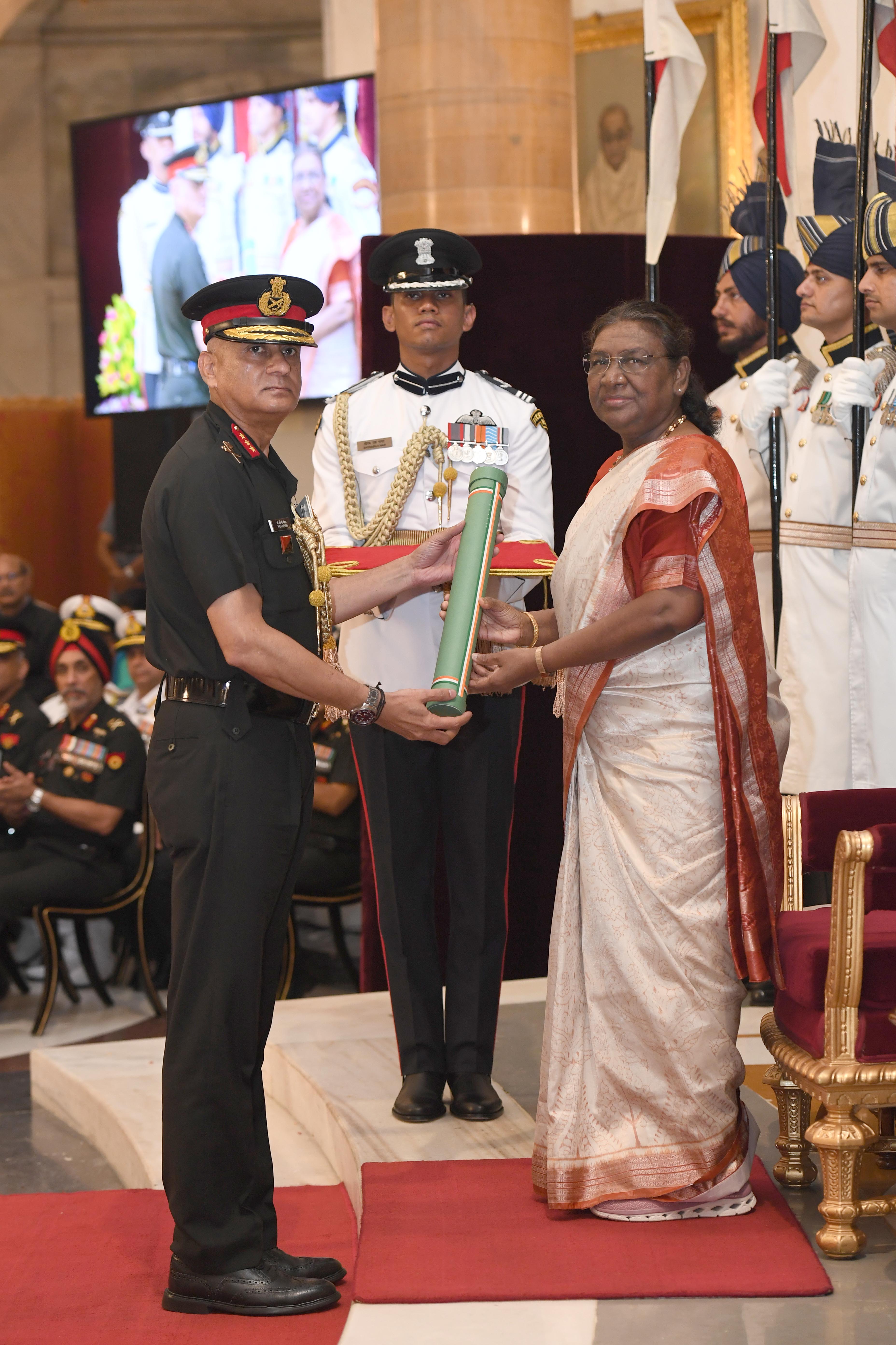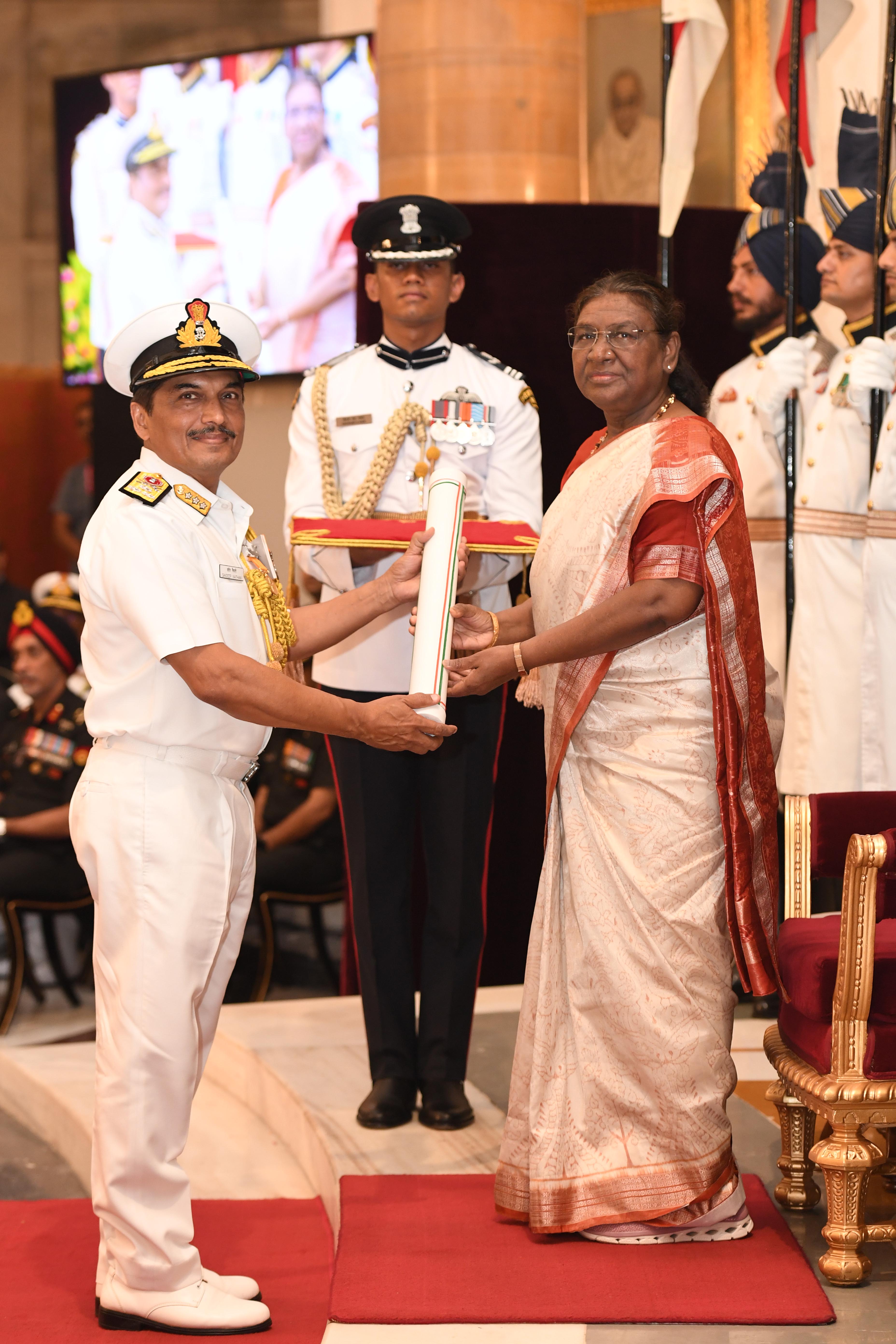 The President of India, Smt Droupadi Murmu presented Distinguished Service Awards at the Defence Investiture Ceremony-2024 (Phase-II) held at Rashtrapati Bhavan on July 19, 2024.