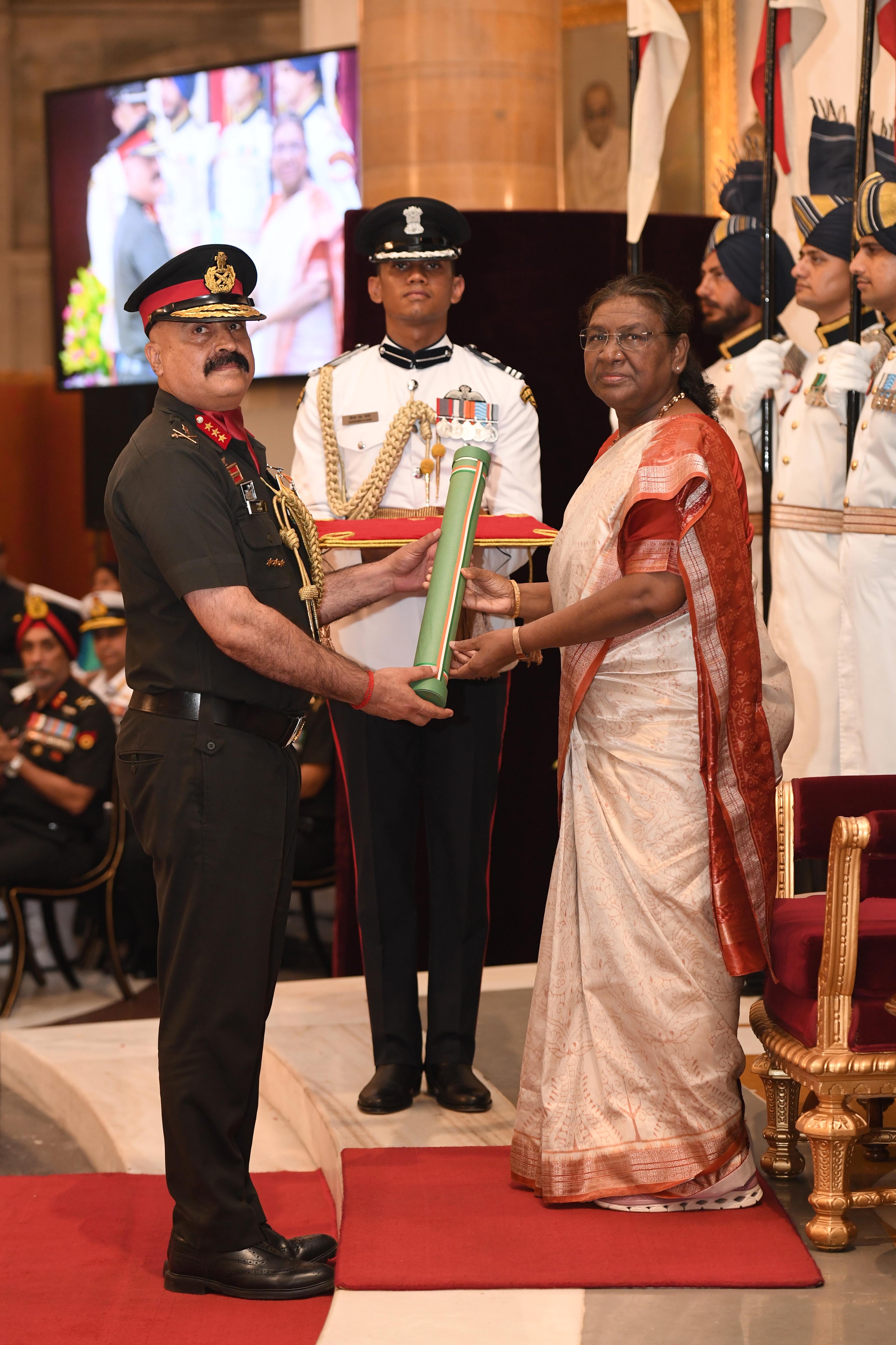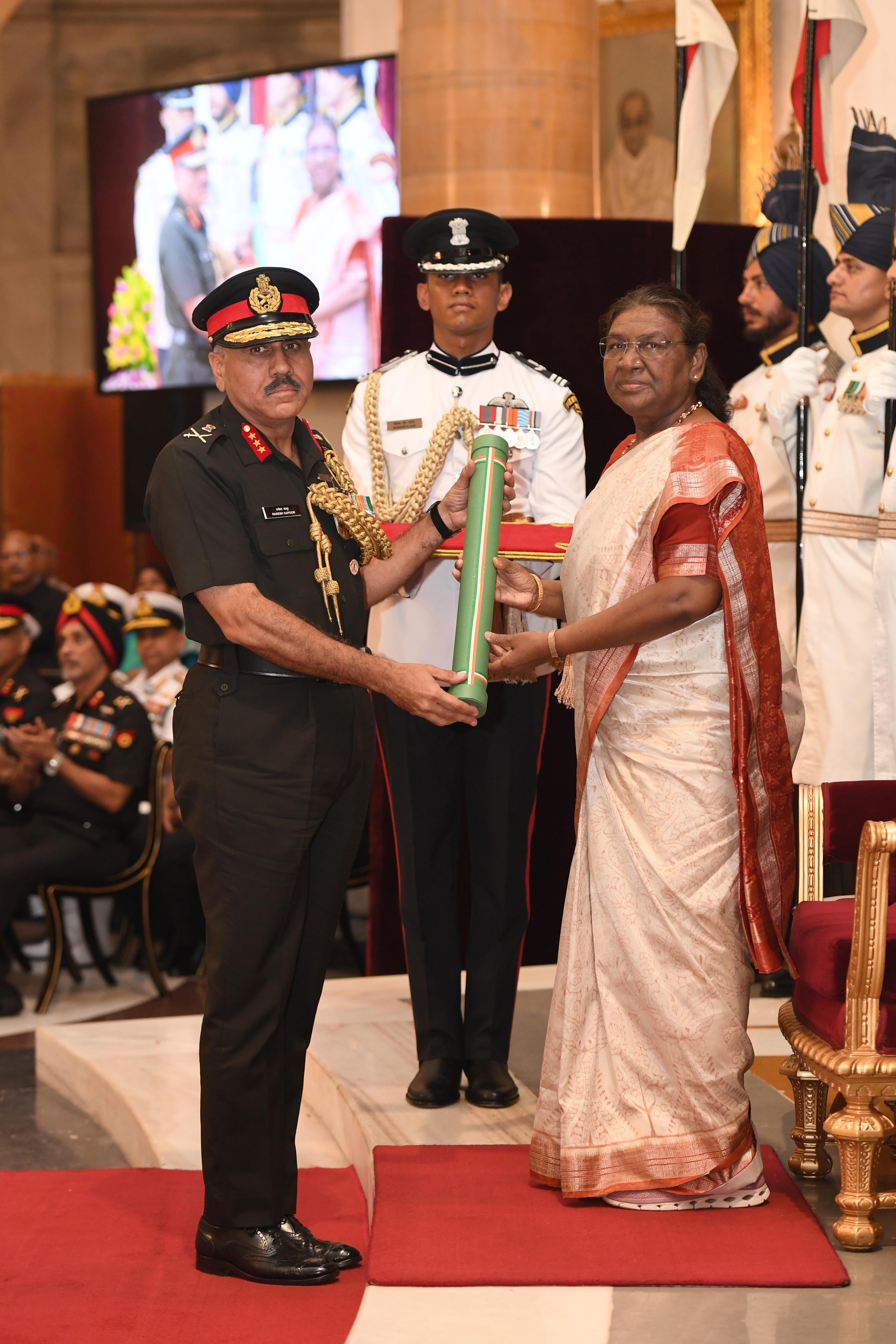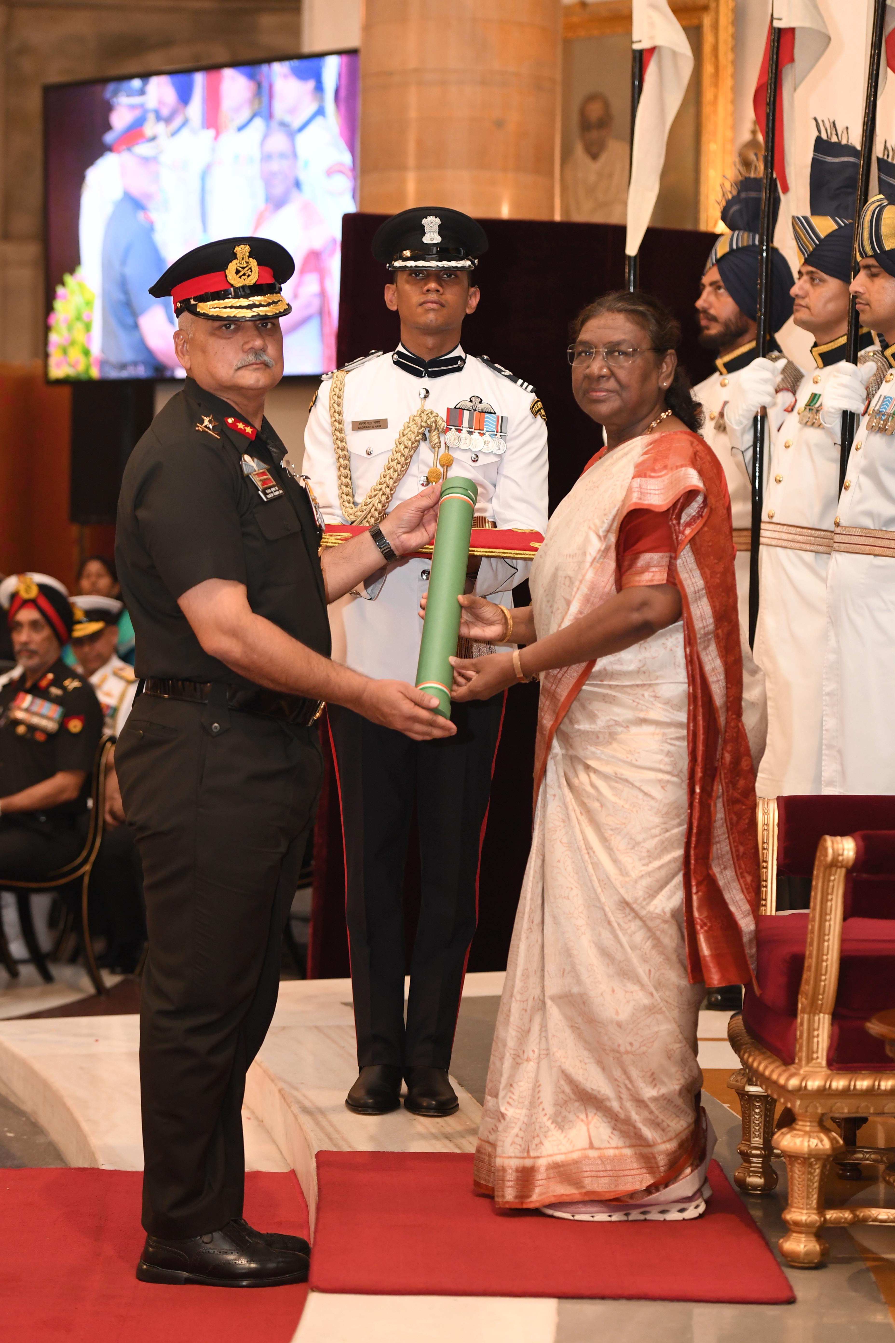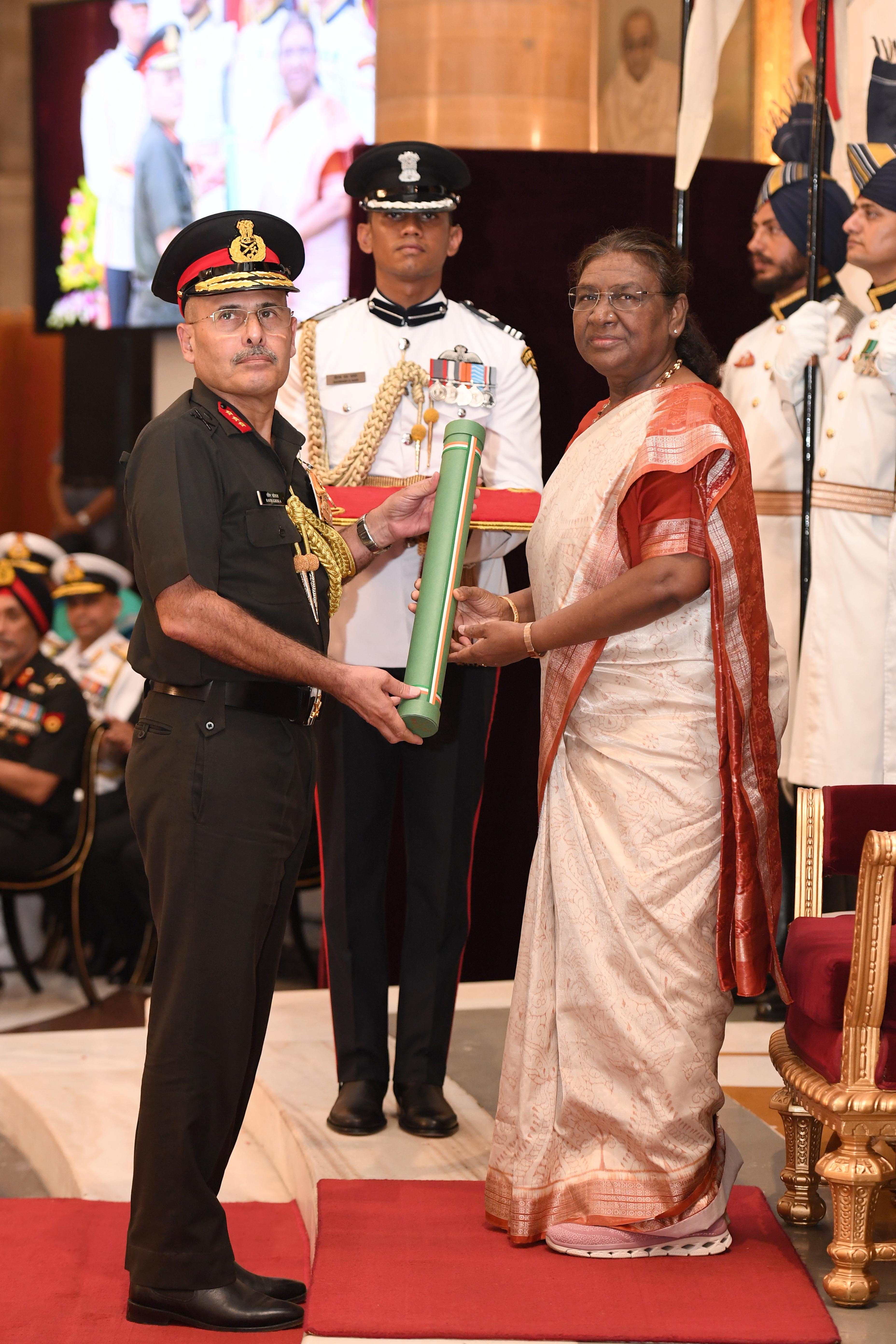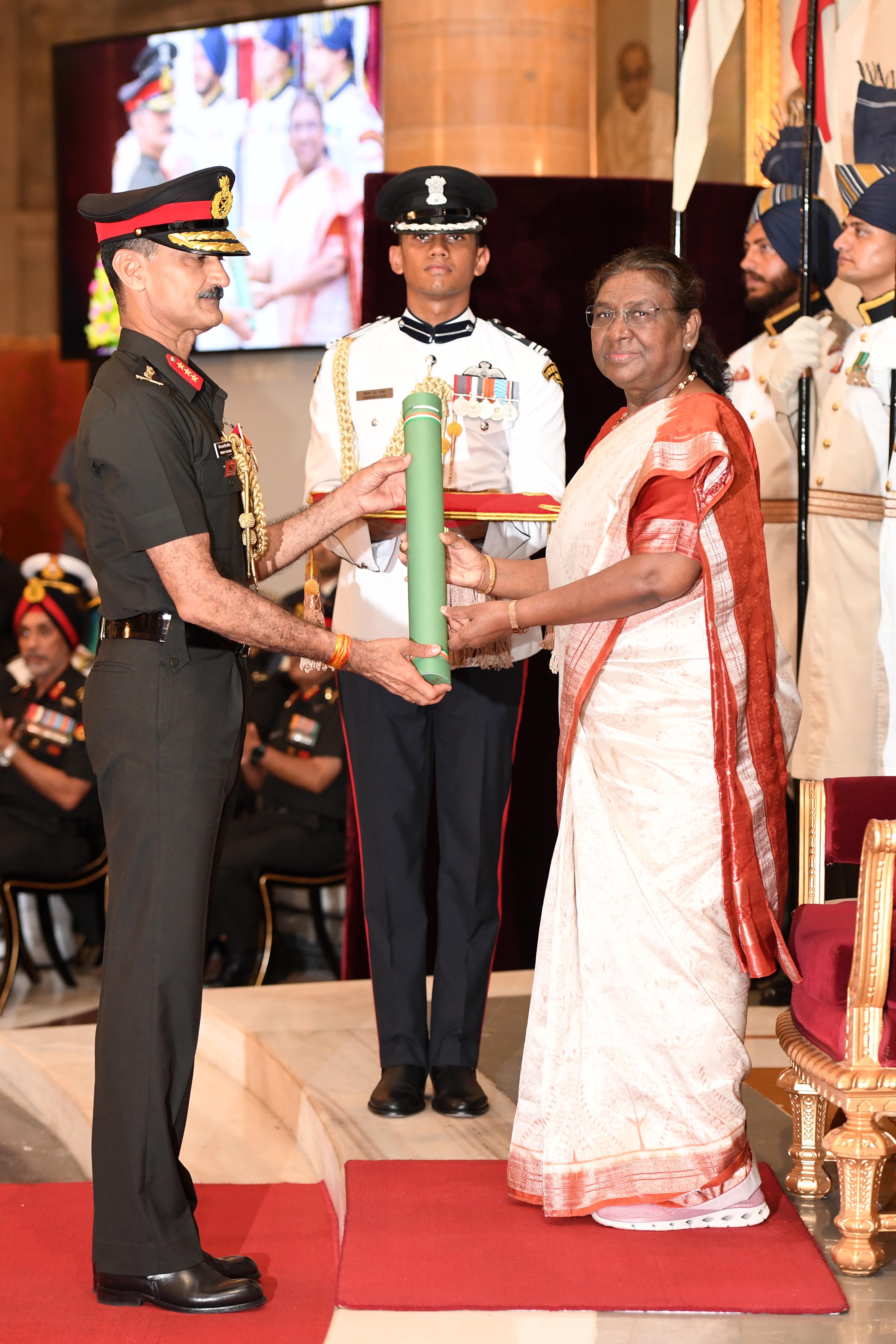 The President of India, Smt Droupadi Murmu presented Distinguished Service Awards at the Defence Investiture Ceremony-2024 (Phase-II) held at Rashtrapati Bhavan on July 19, 2024.