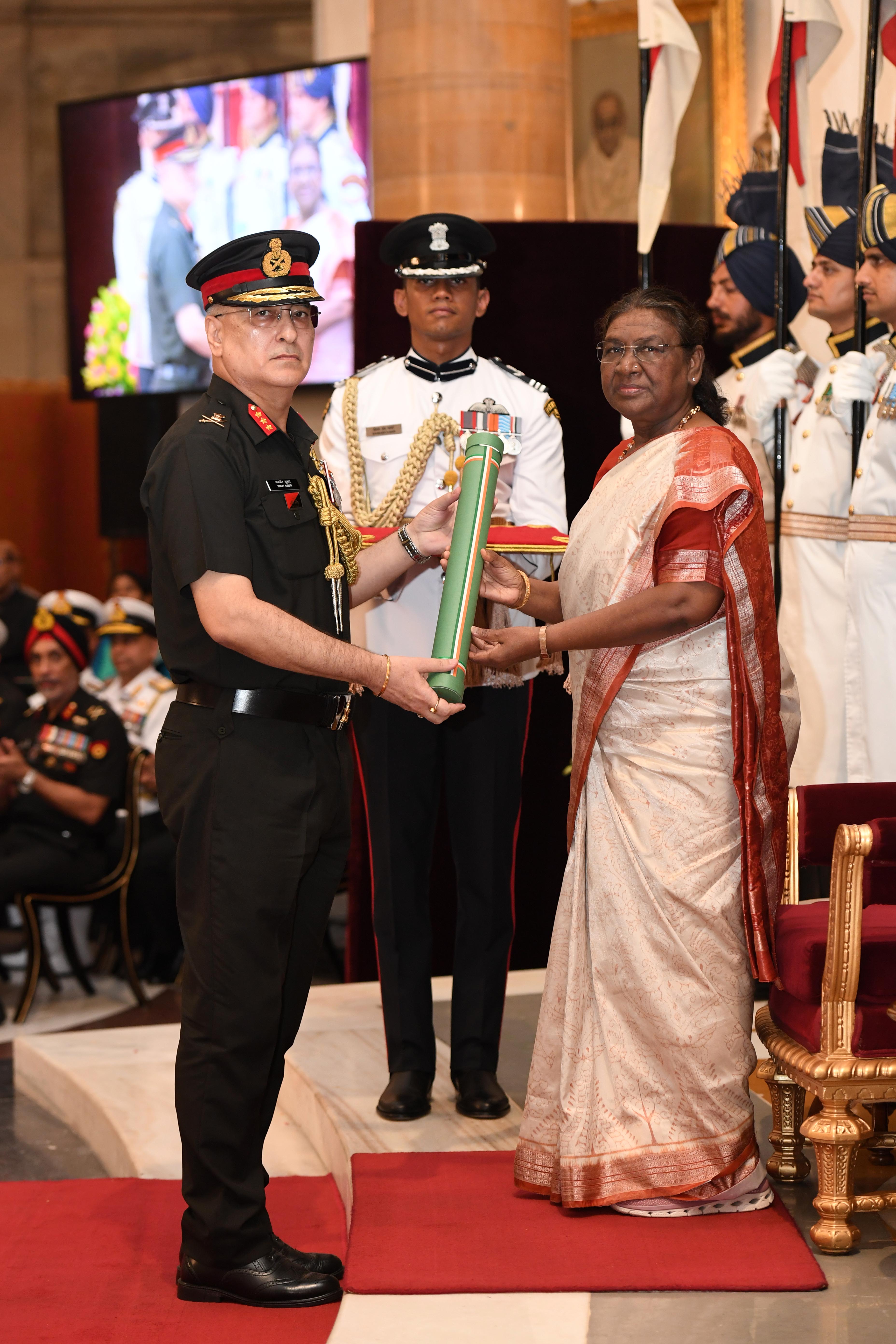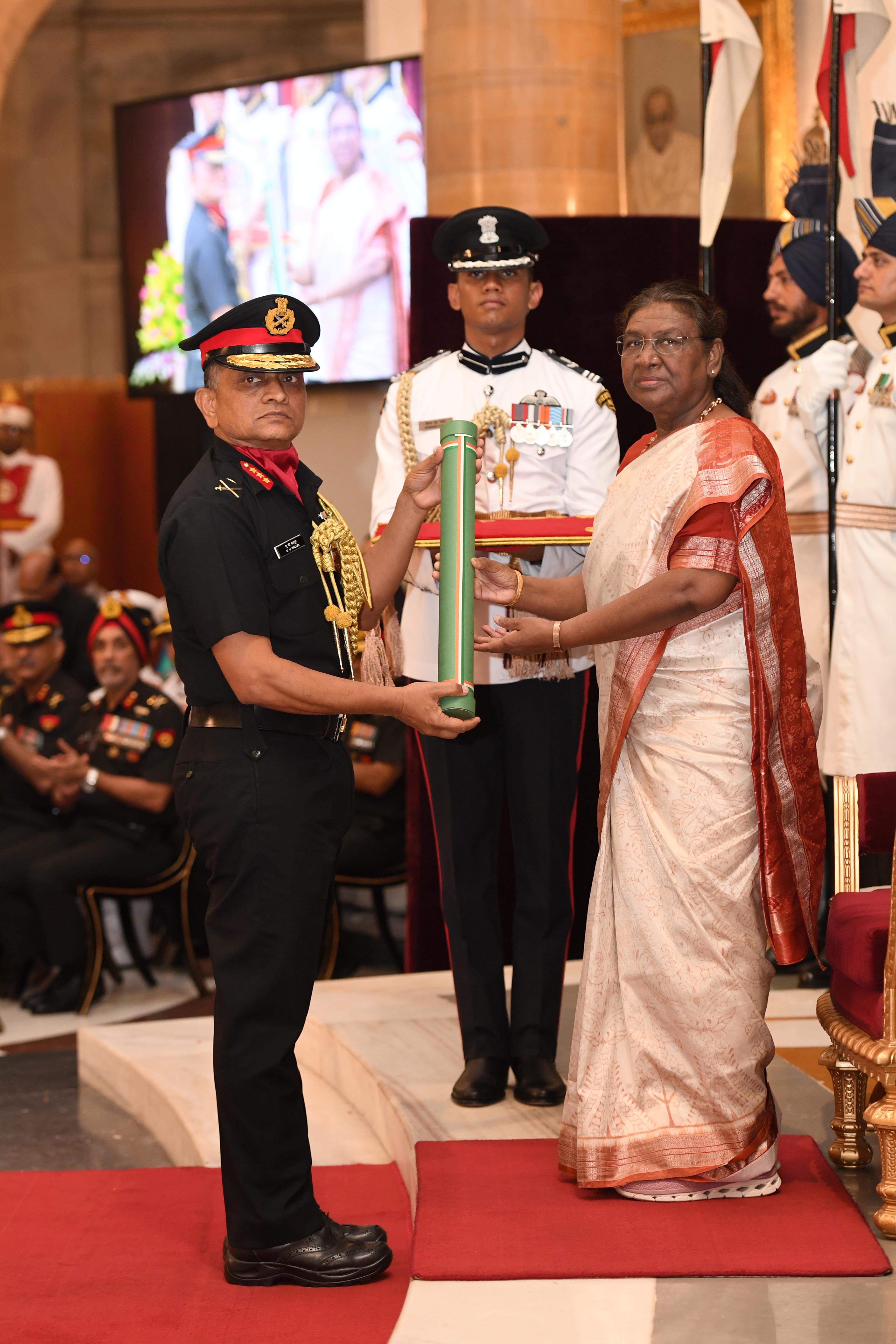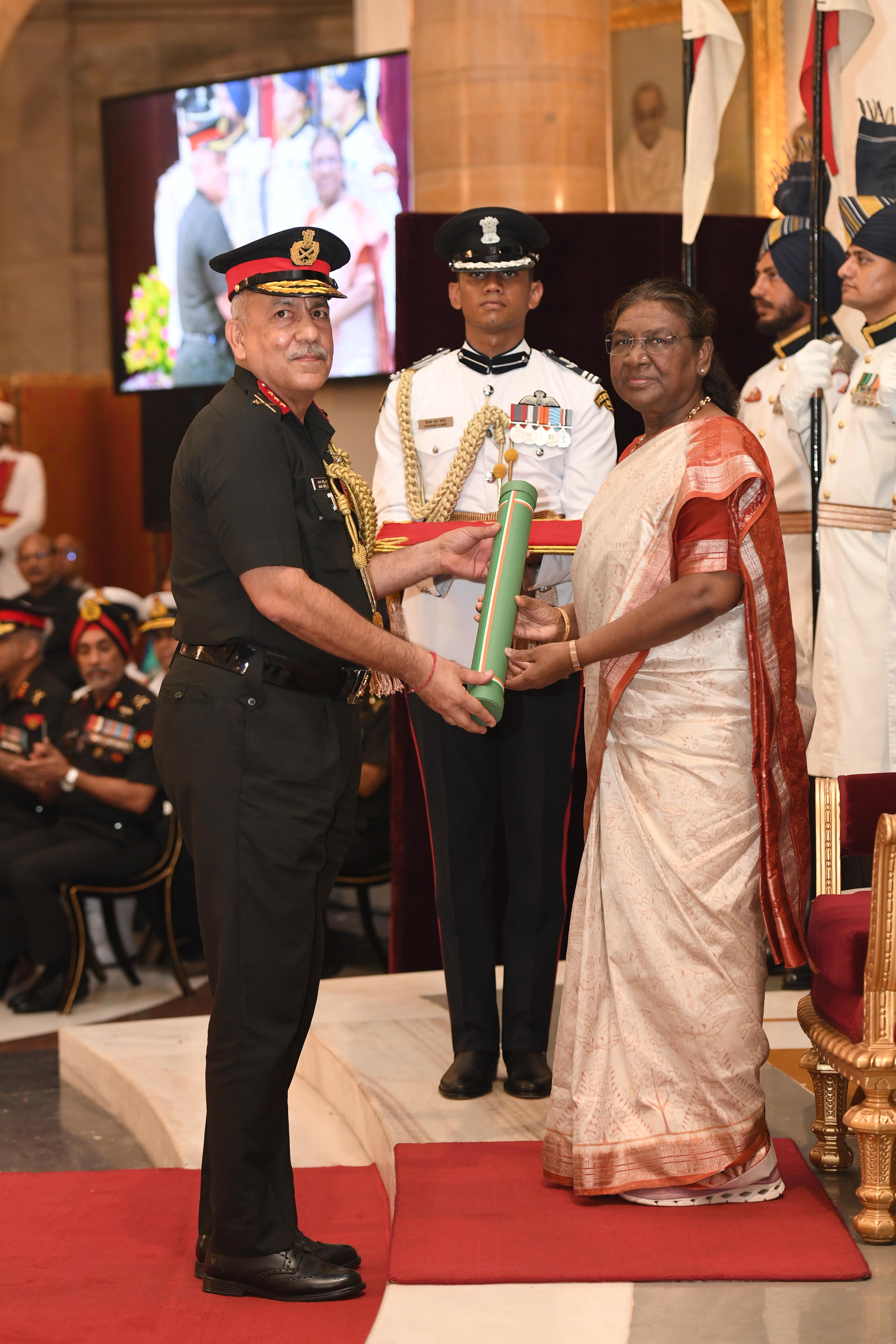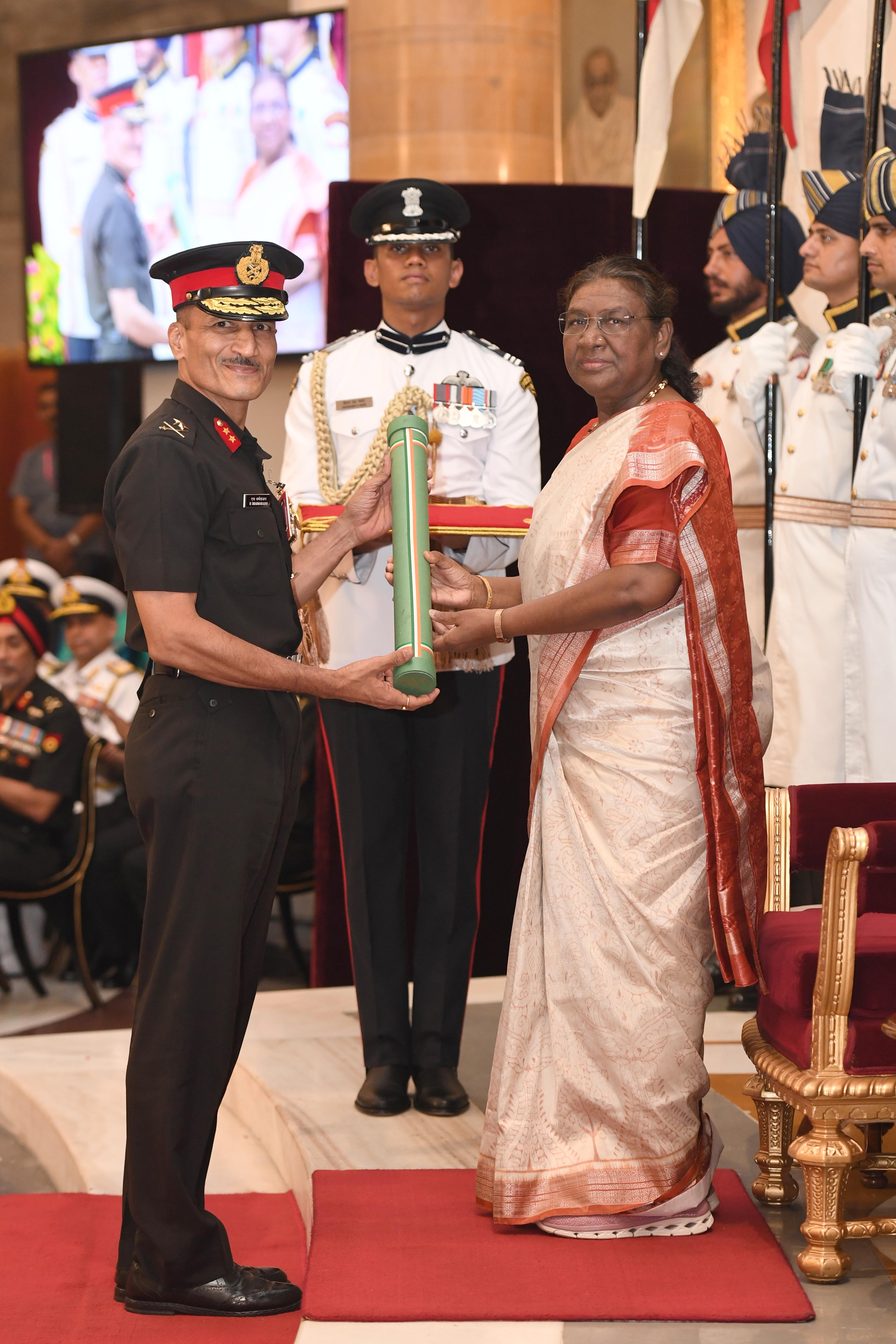 The President of India, Smt Droupadi Murmu presented Distinguished Service Awards at the Defence Investiture Ceremony-2024 (Phase-II) held at Rashtrapati Bhavan on July 19, 2024.