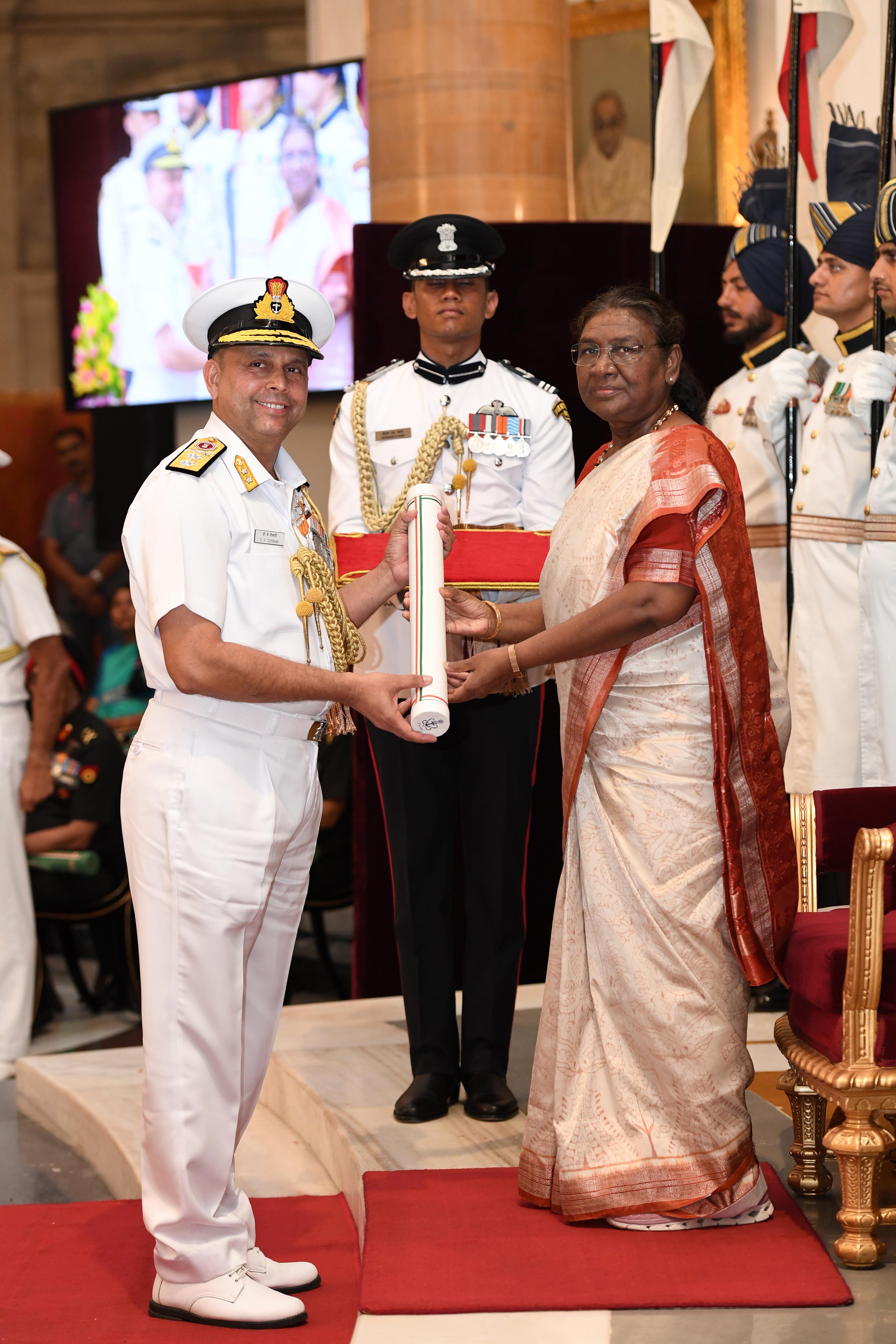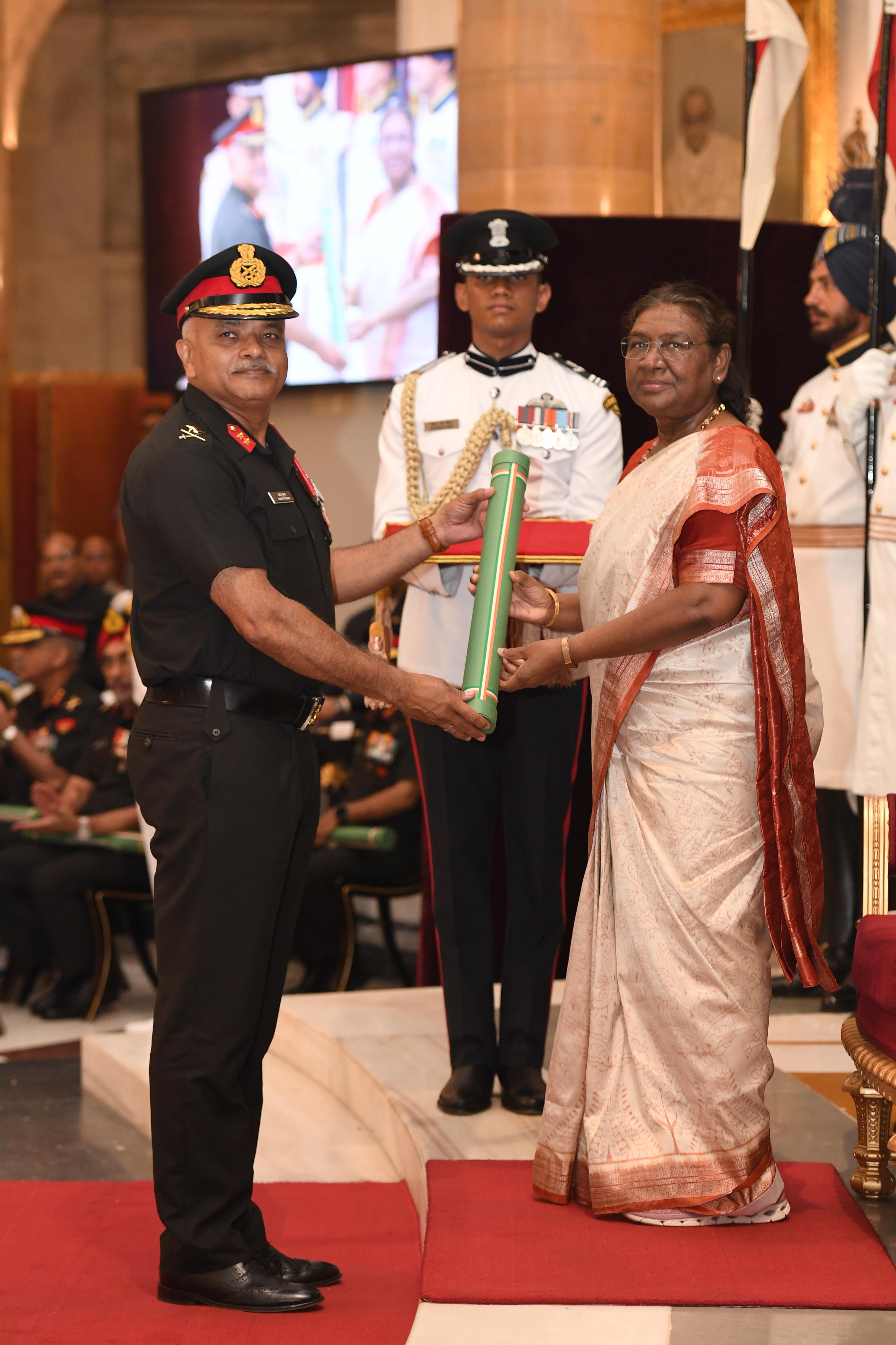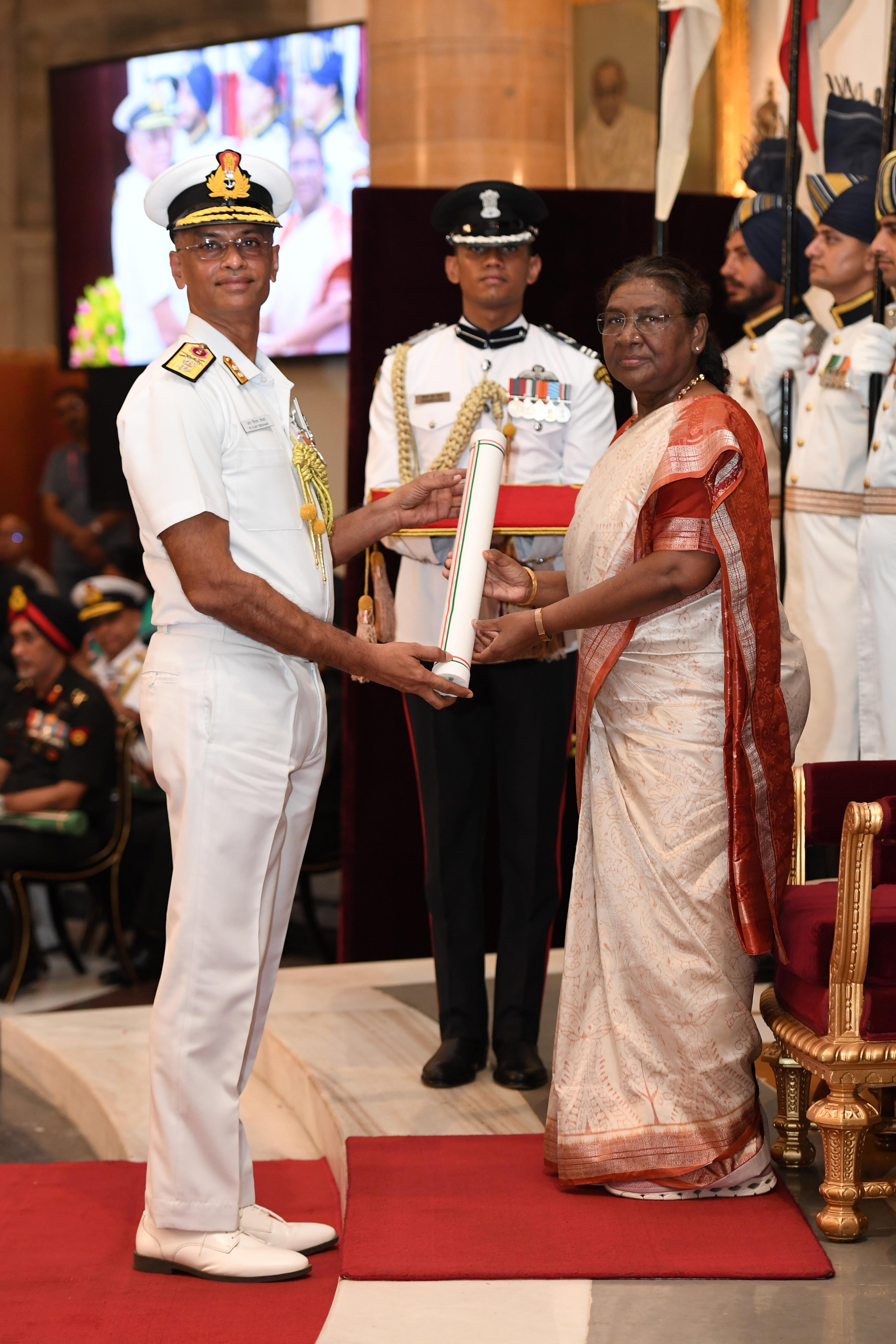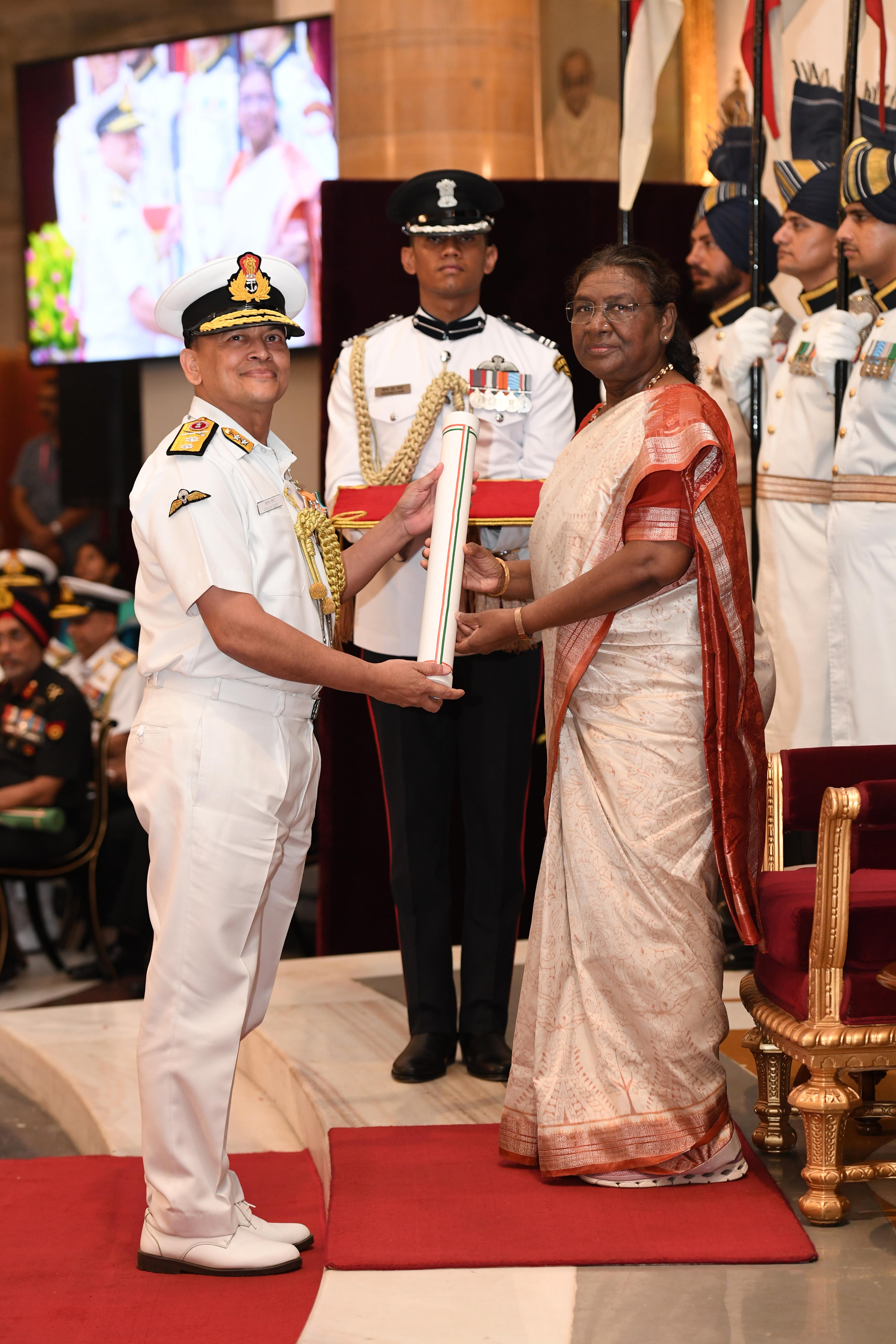 The President of India, Smt Droupadi Murmu presented Distinguished Service Awards at the Defence Investiture Ceremony-2024 (Phase-II) held at Rashtrapati Bhavan on July 19, 2024.