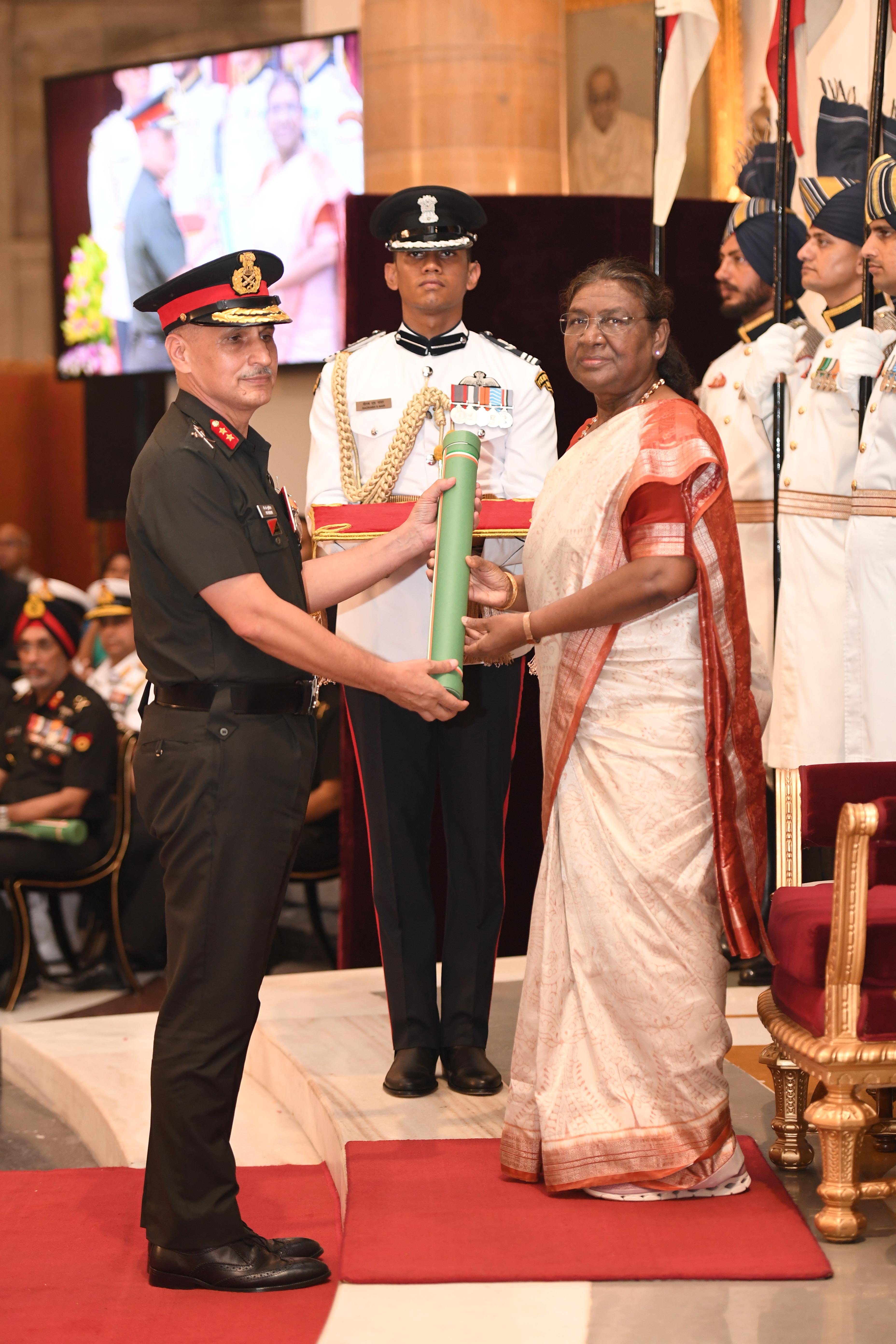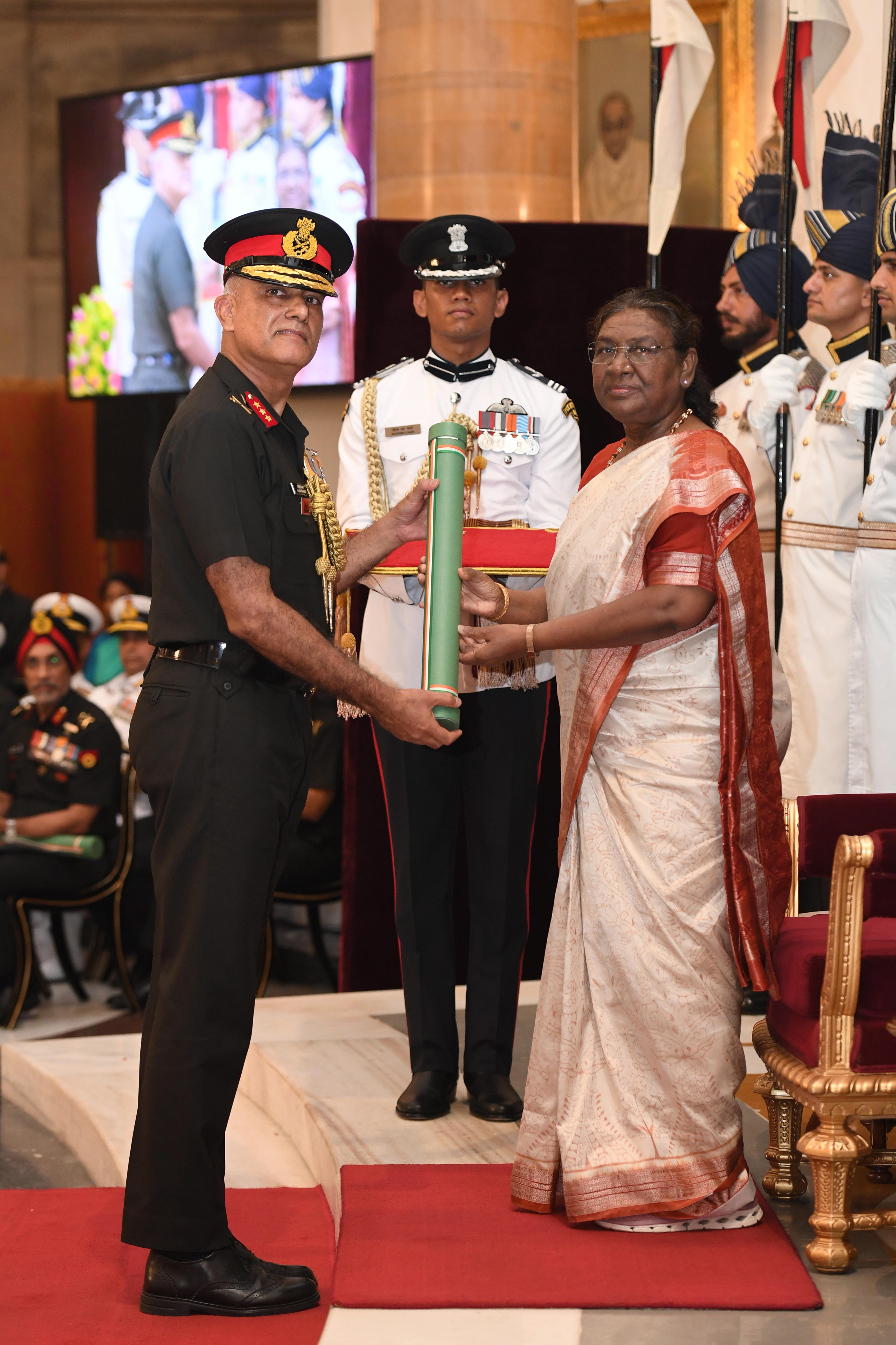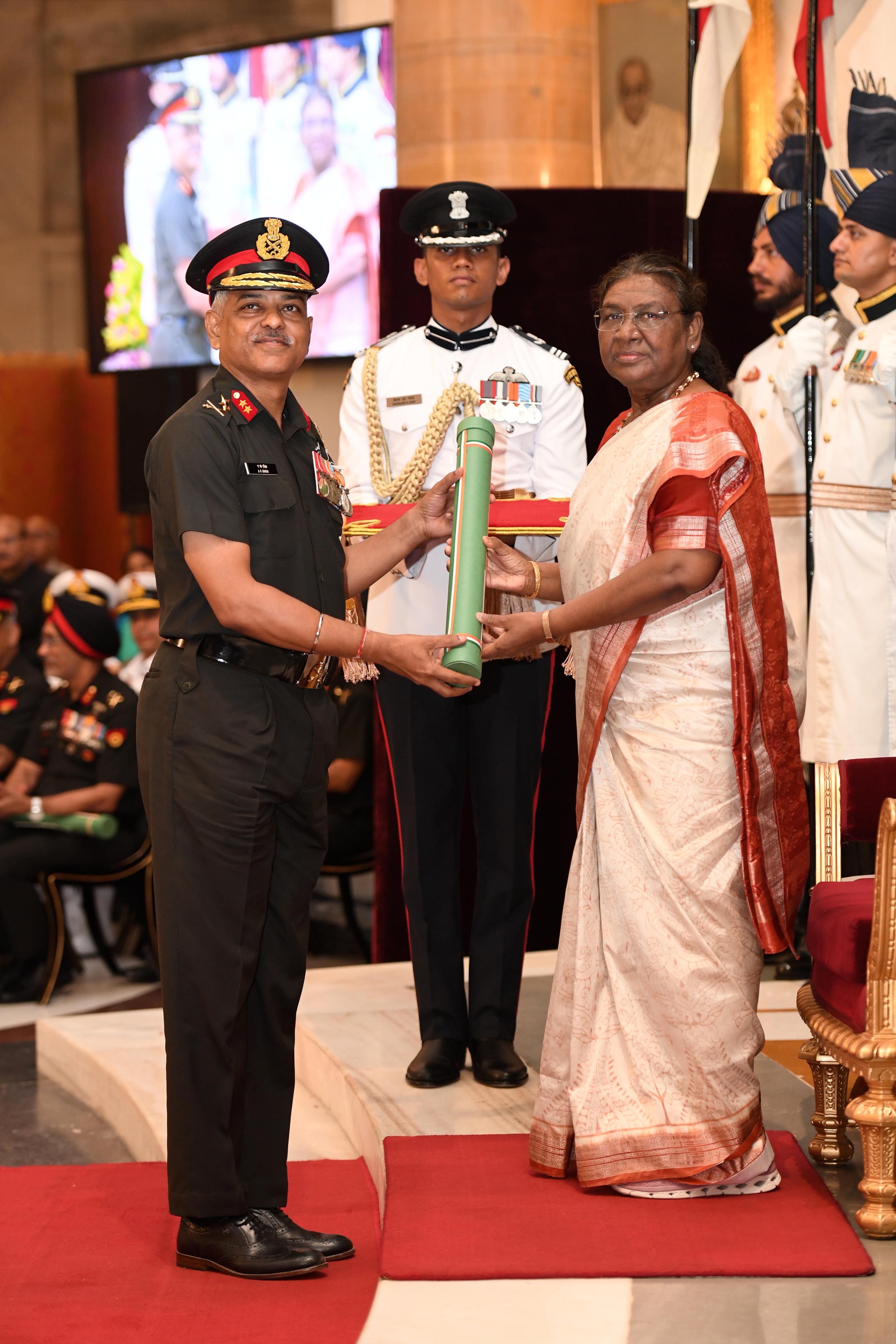 The President of India, Smt Droupadi Murmu presented Distinguished Service Awards at the Defence Investiture Ceremony-2024 (Phase-II) held at Rashtrapati Bhavan on July 19, 2024.