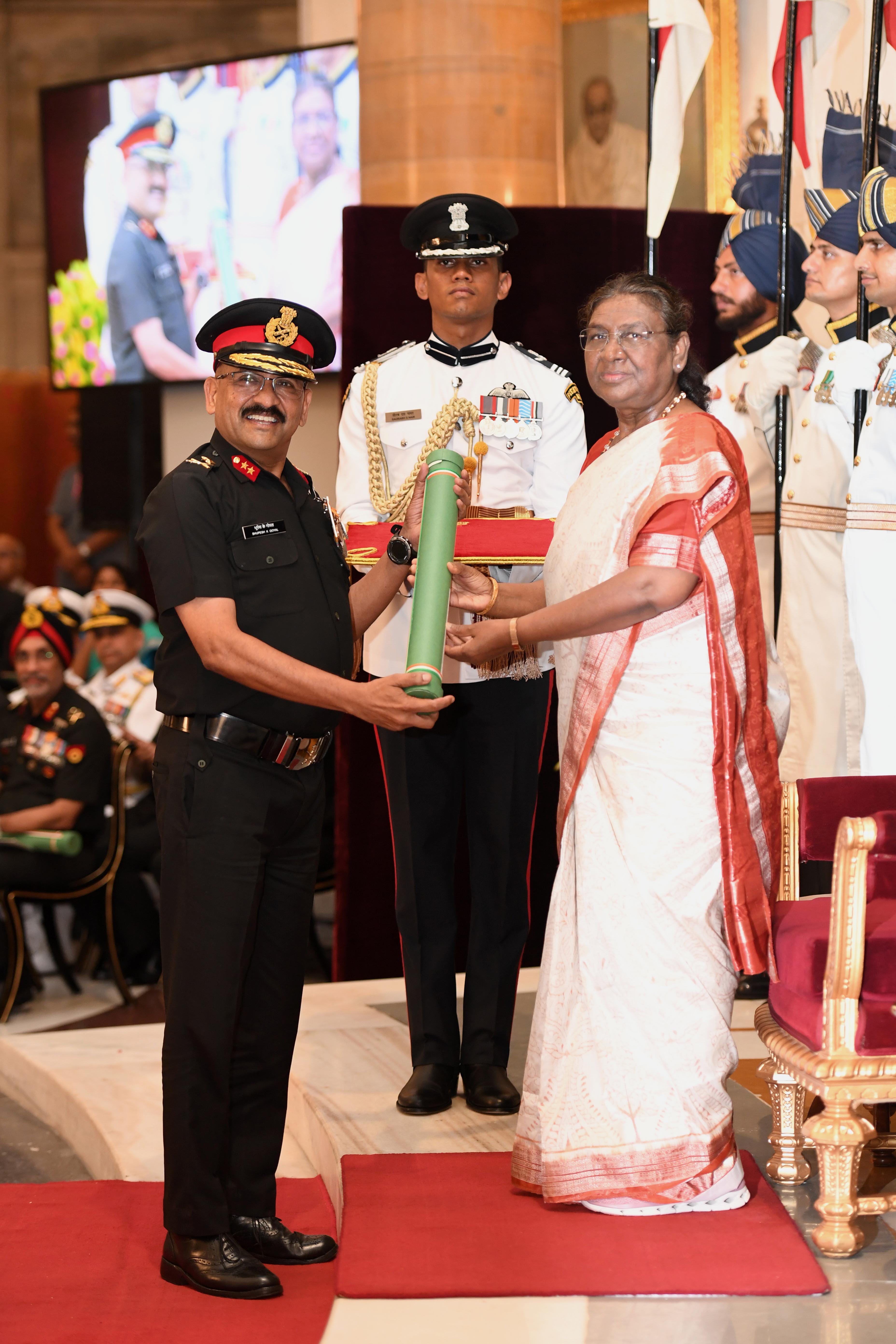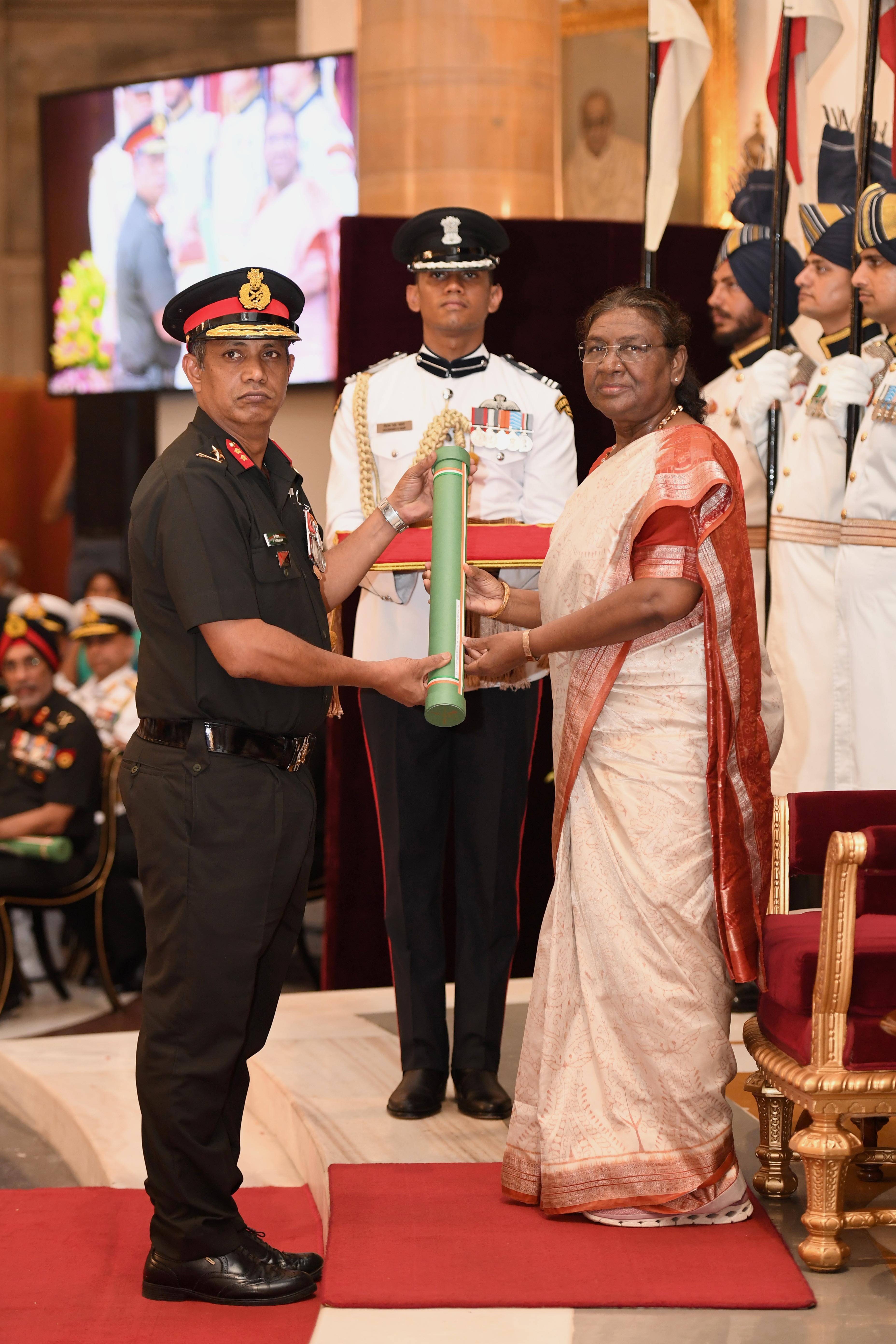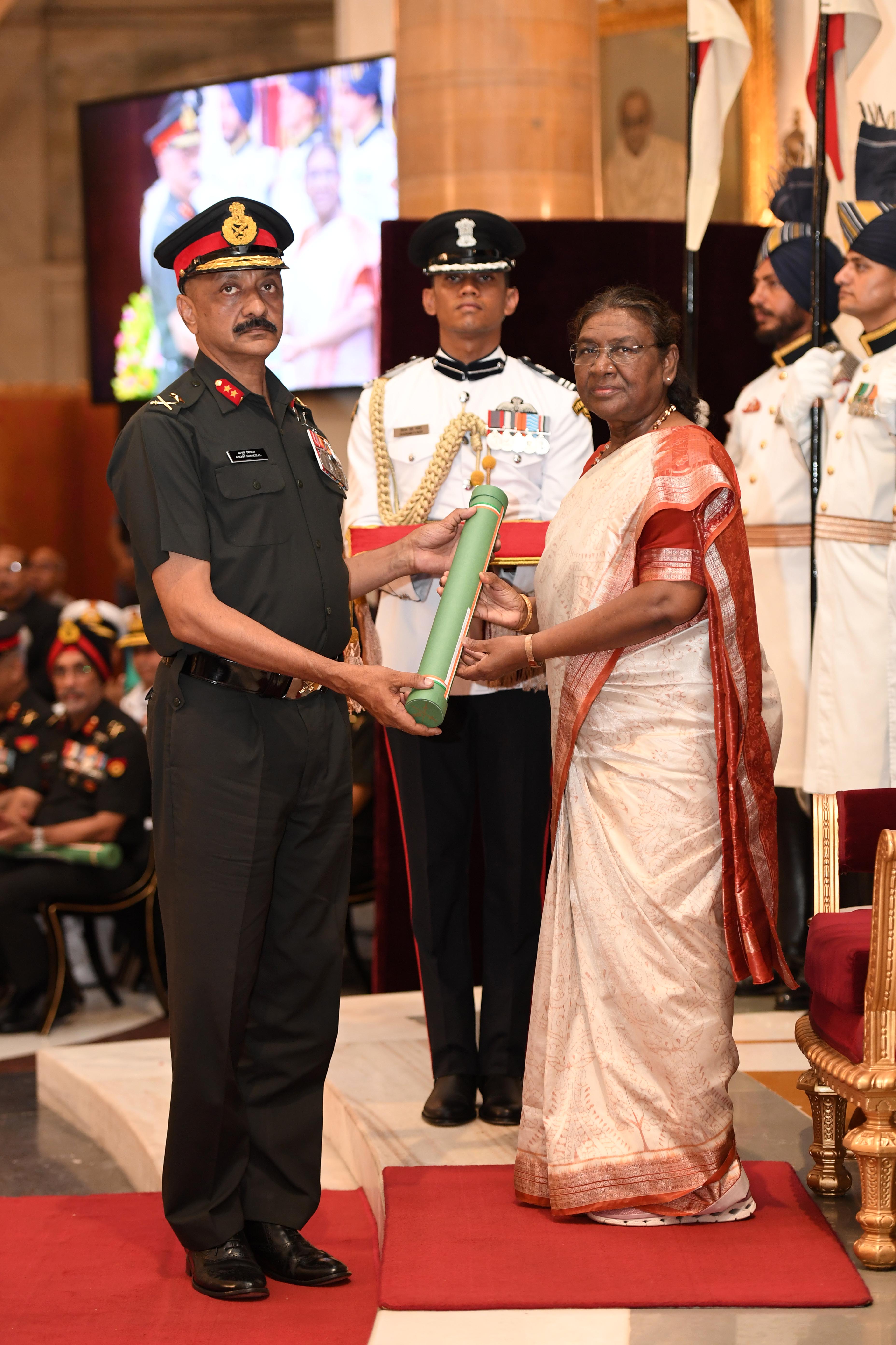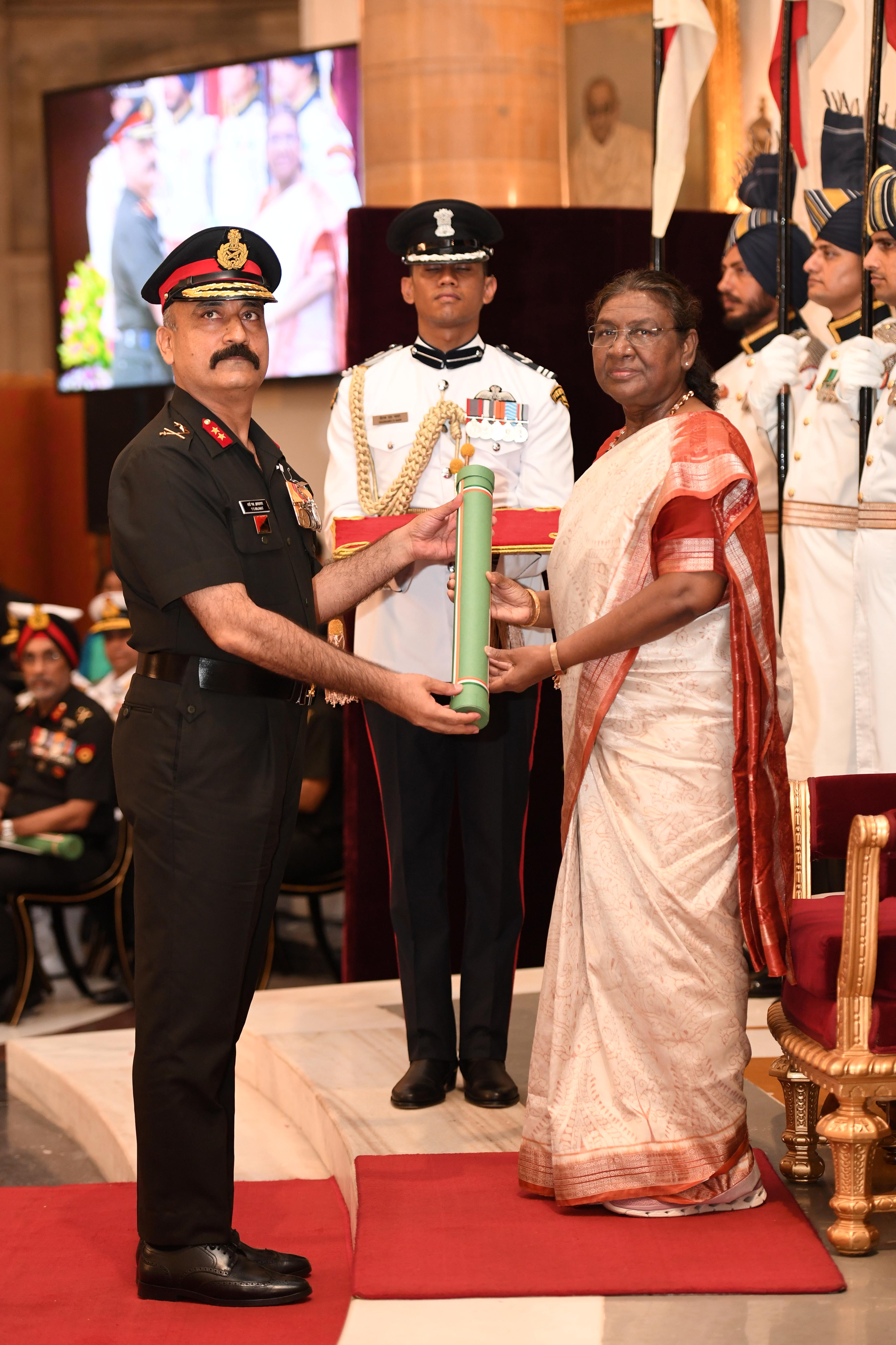 The President of India, Smt Droupadi Murmu presented Distinguished Service Awards at the Defence Investiture Ceremony-2024 (Phase-II) held at Rashtrapati Bhavan on July 19, 2024.