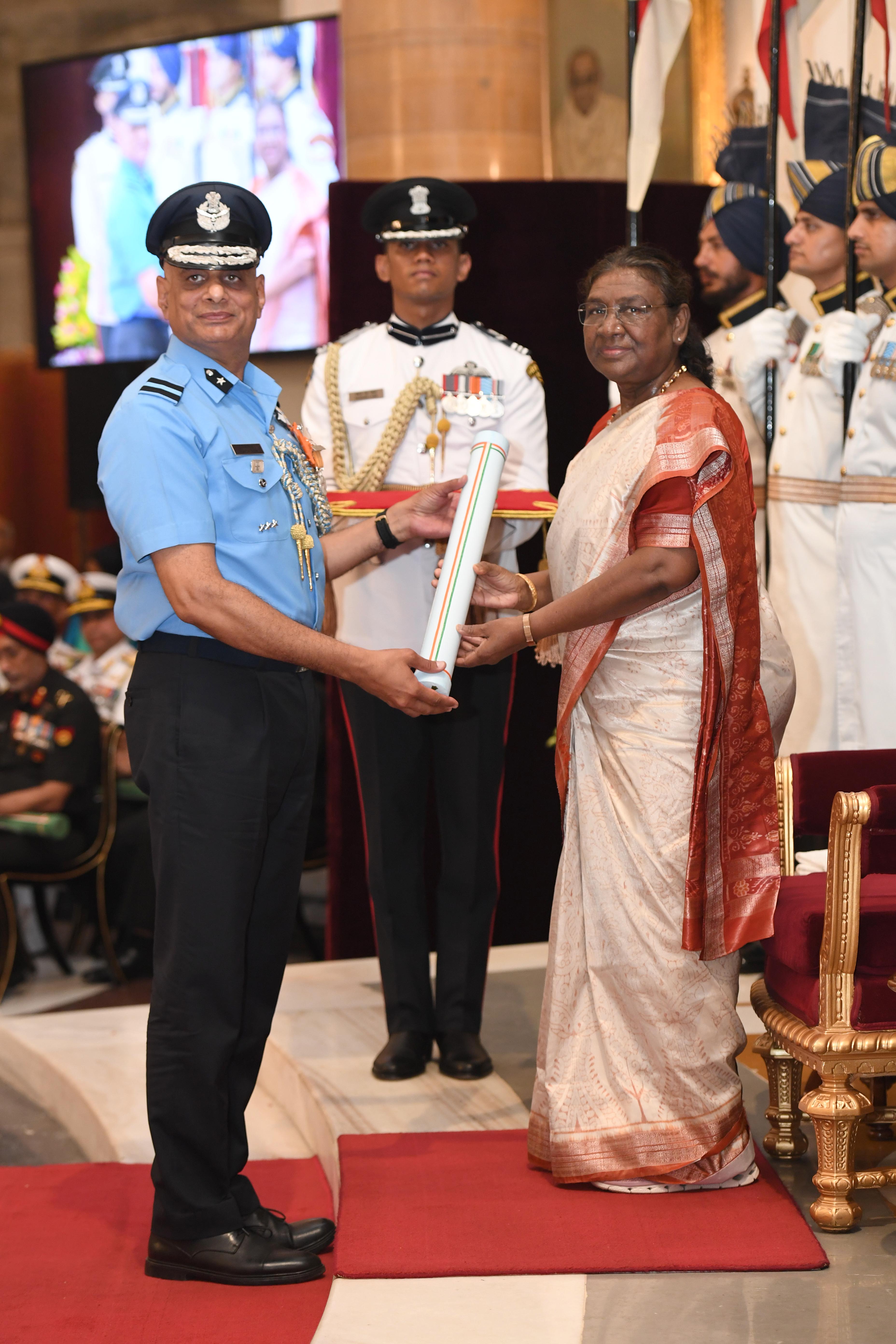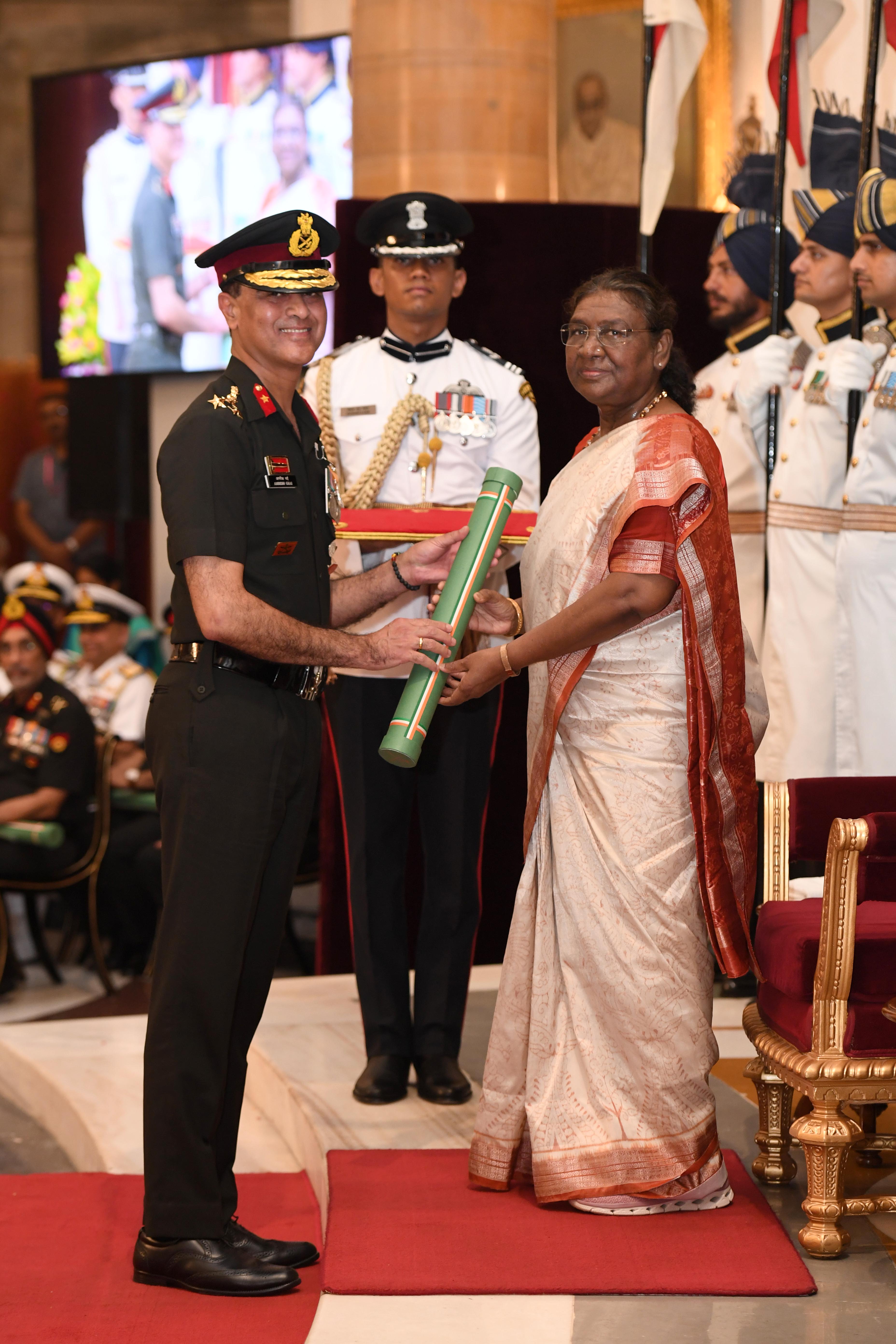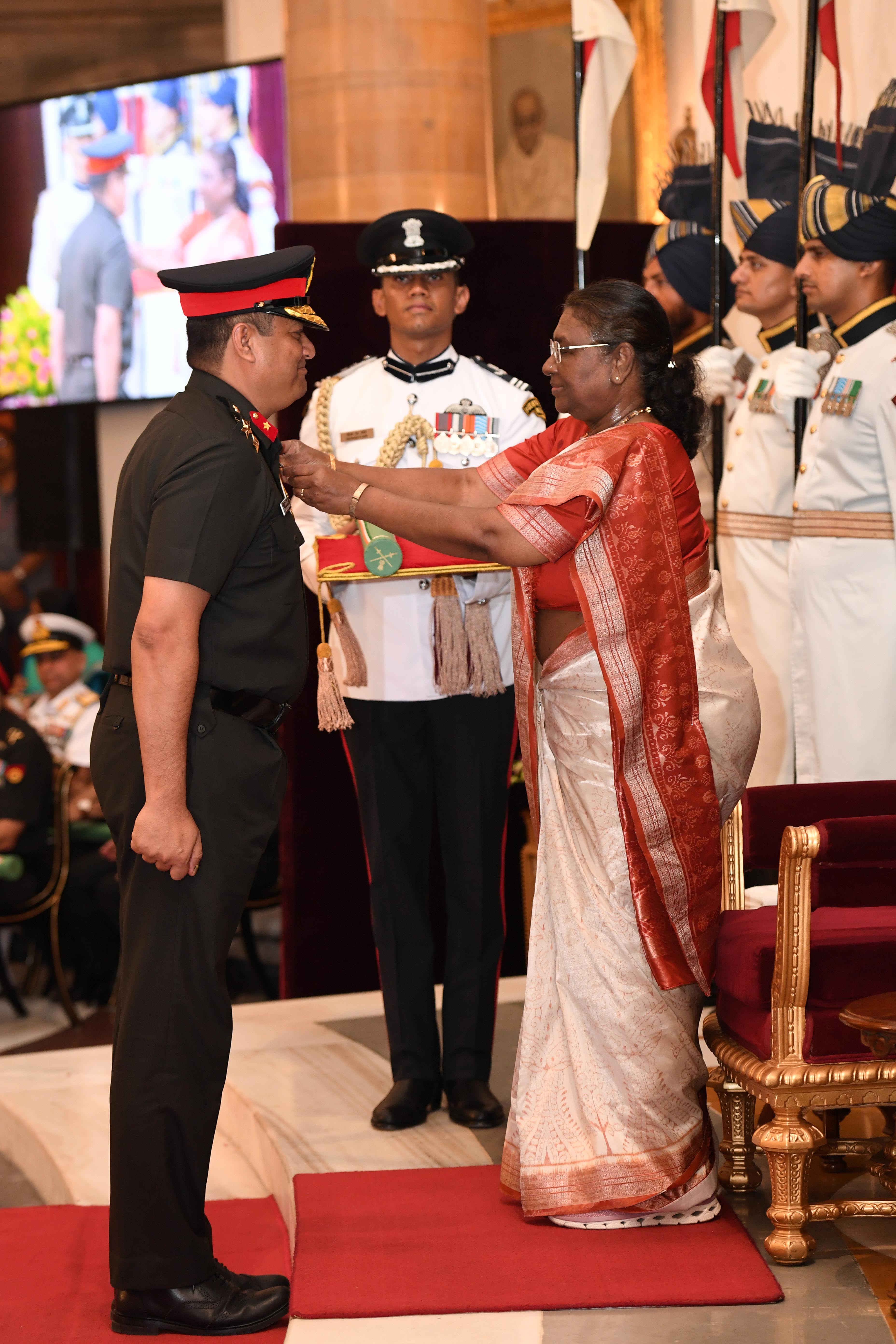 The President of India, Smt Droupadi Murmu presented Distinguished Service Awards at the Defence Investiture Ceremony-2024 (Phase-II) held at Rashtrapati Bhavan on July 19, 2024.