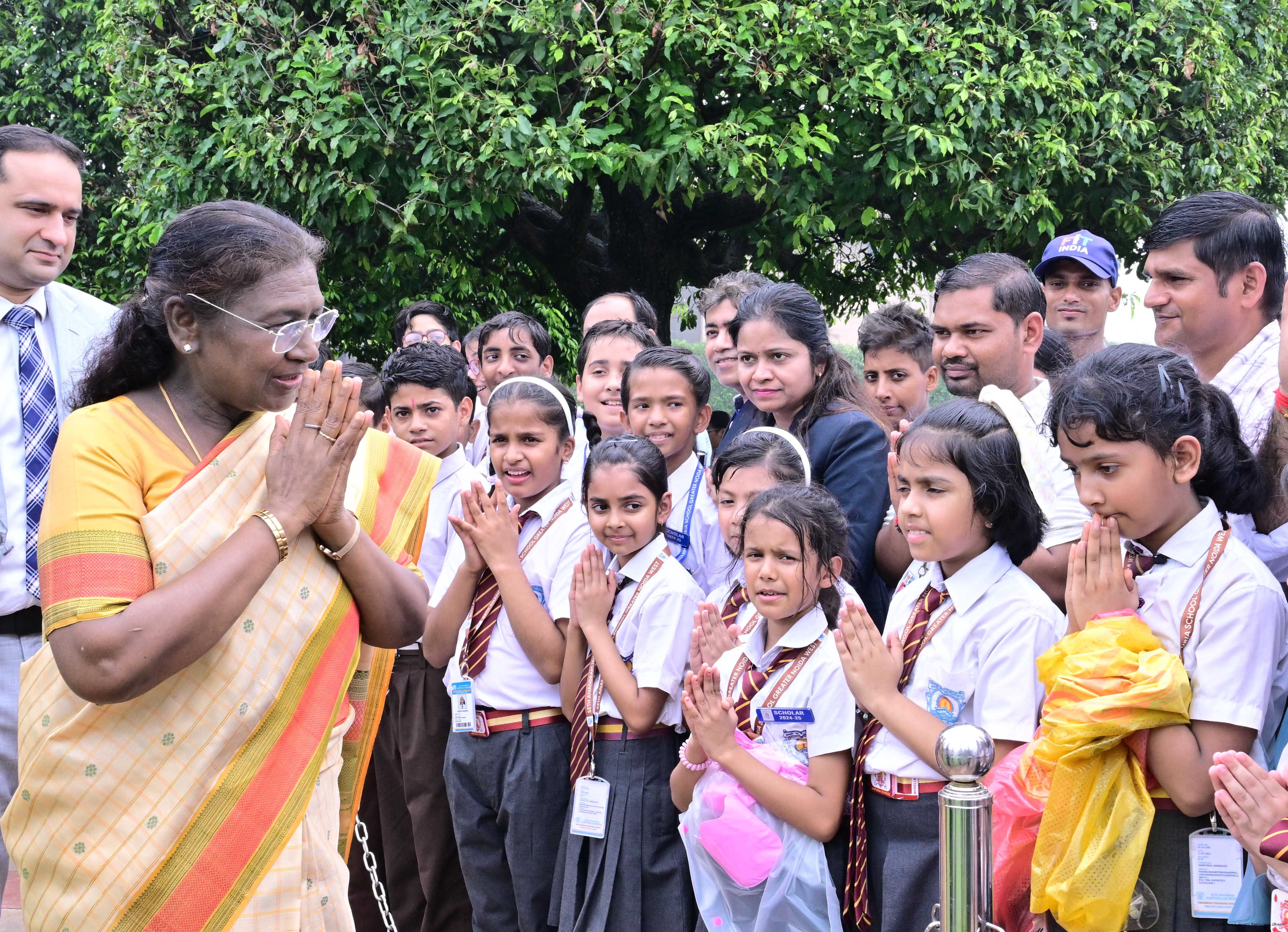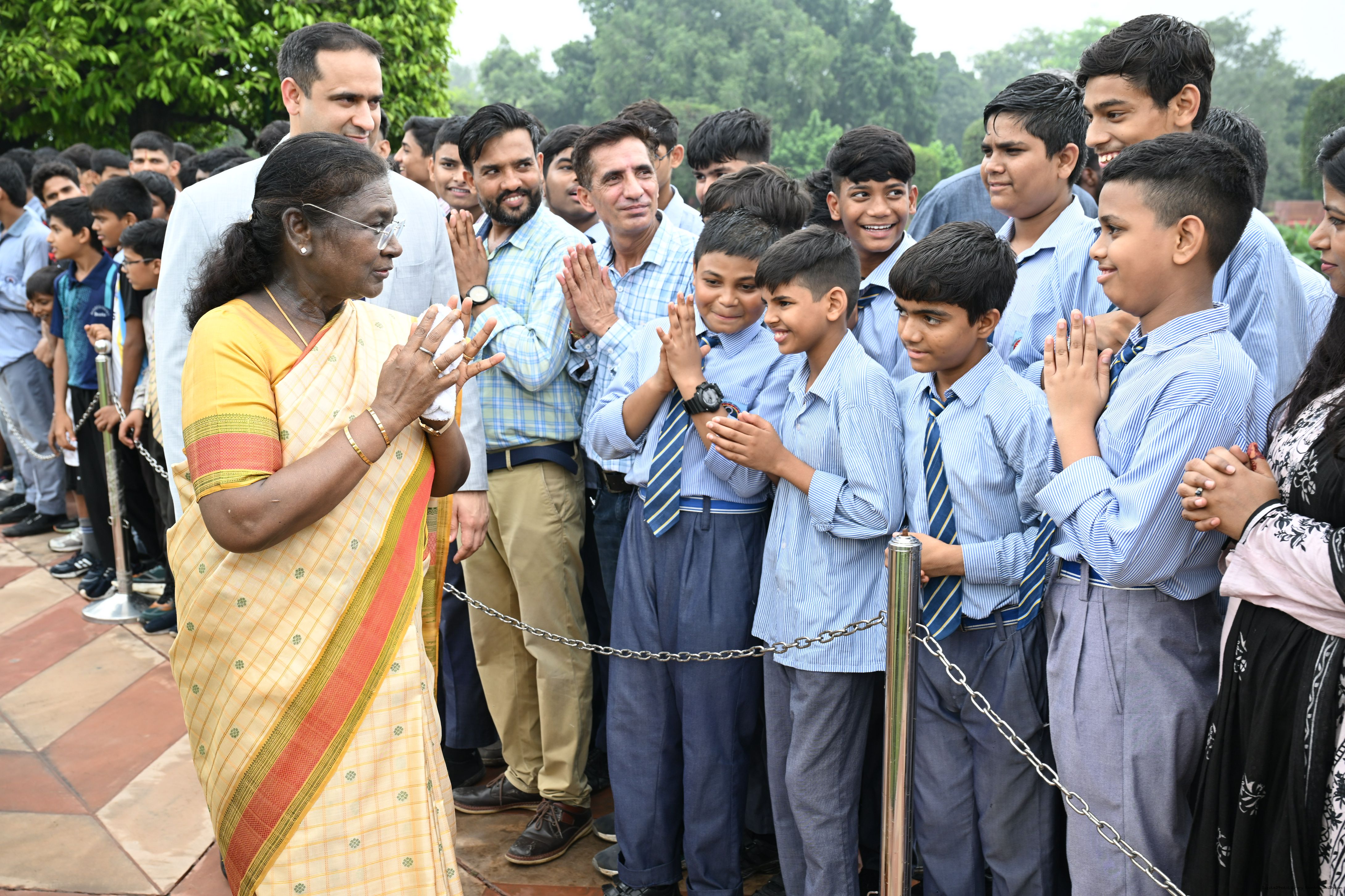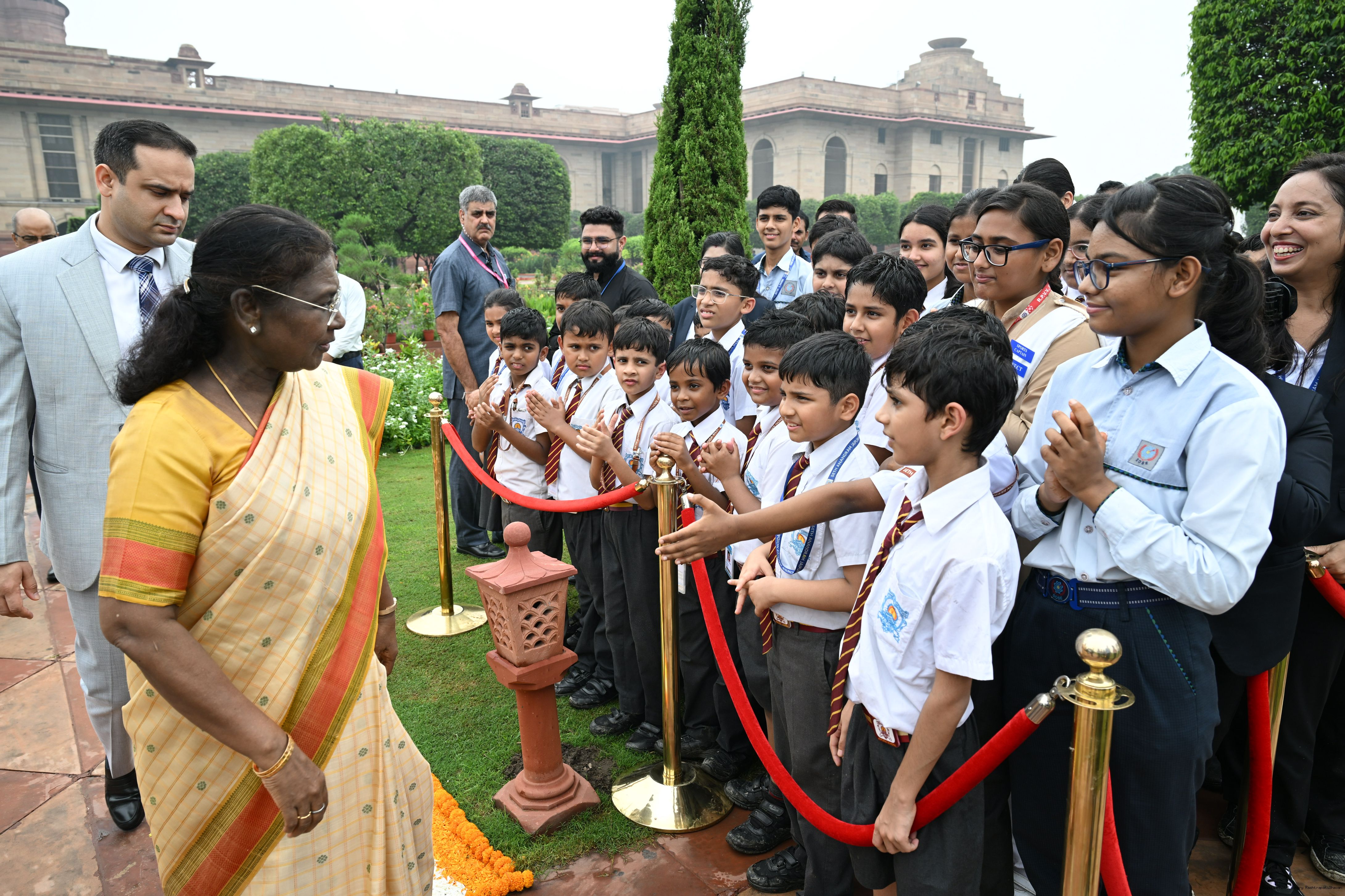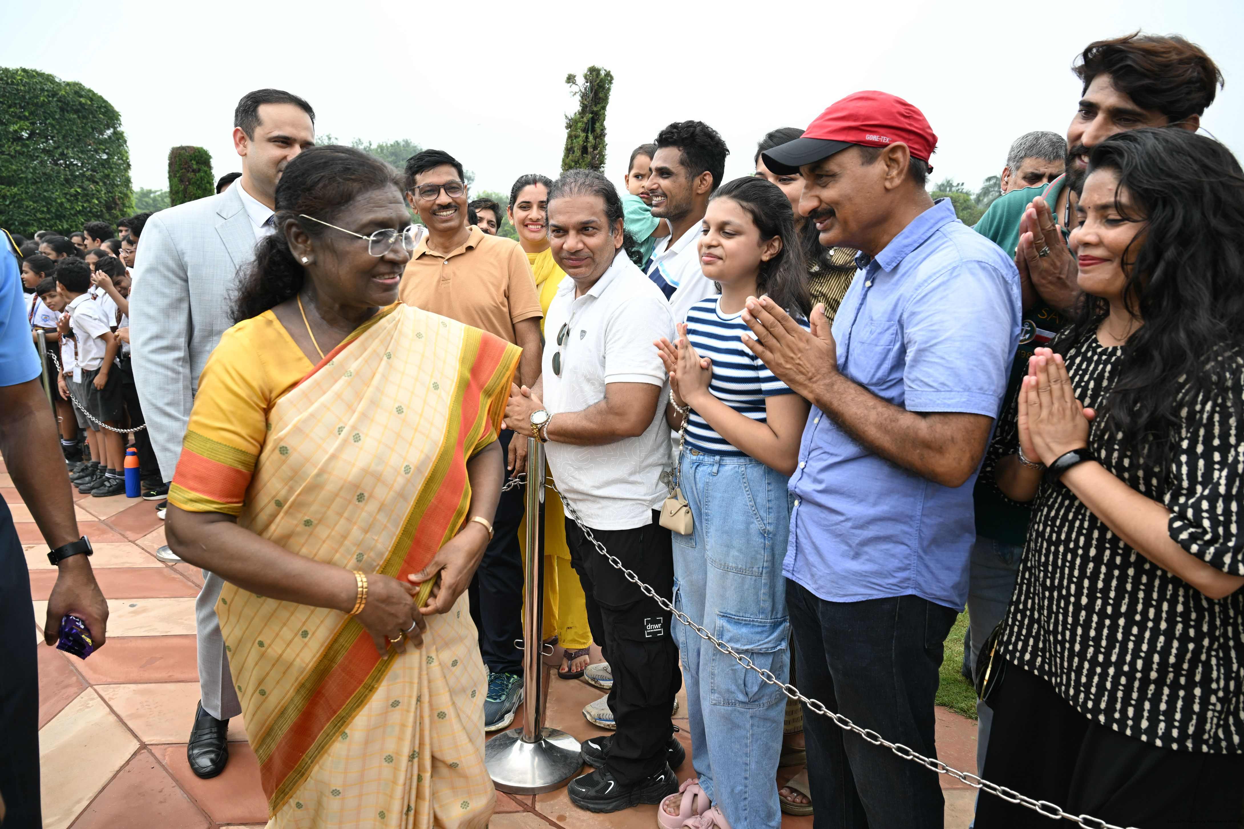 The President of India, Smt Droupadi Murmu interacted with sportspersons who visited Amrit Udyan on National Sports Day at Rashtrapati Bhavan on August 29, 2025.