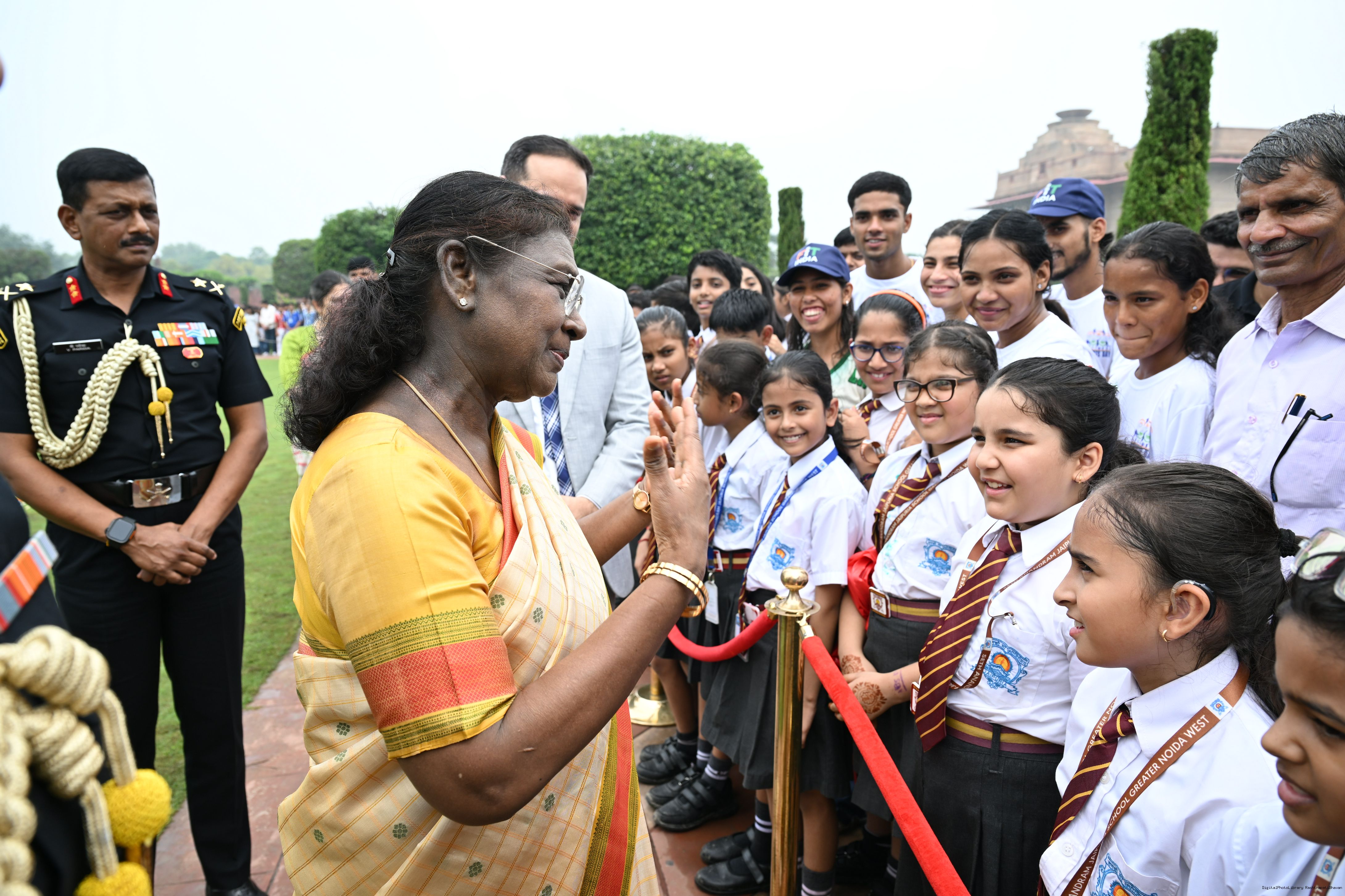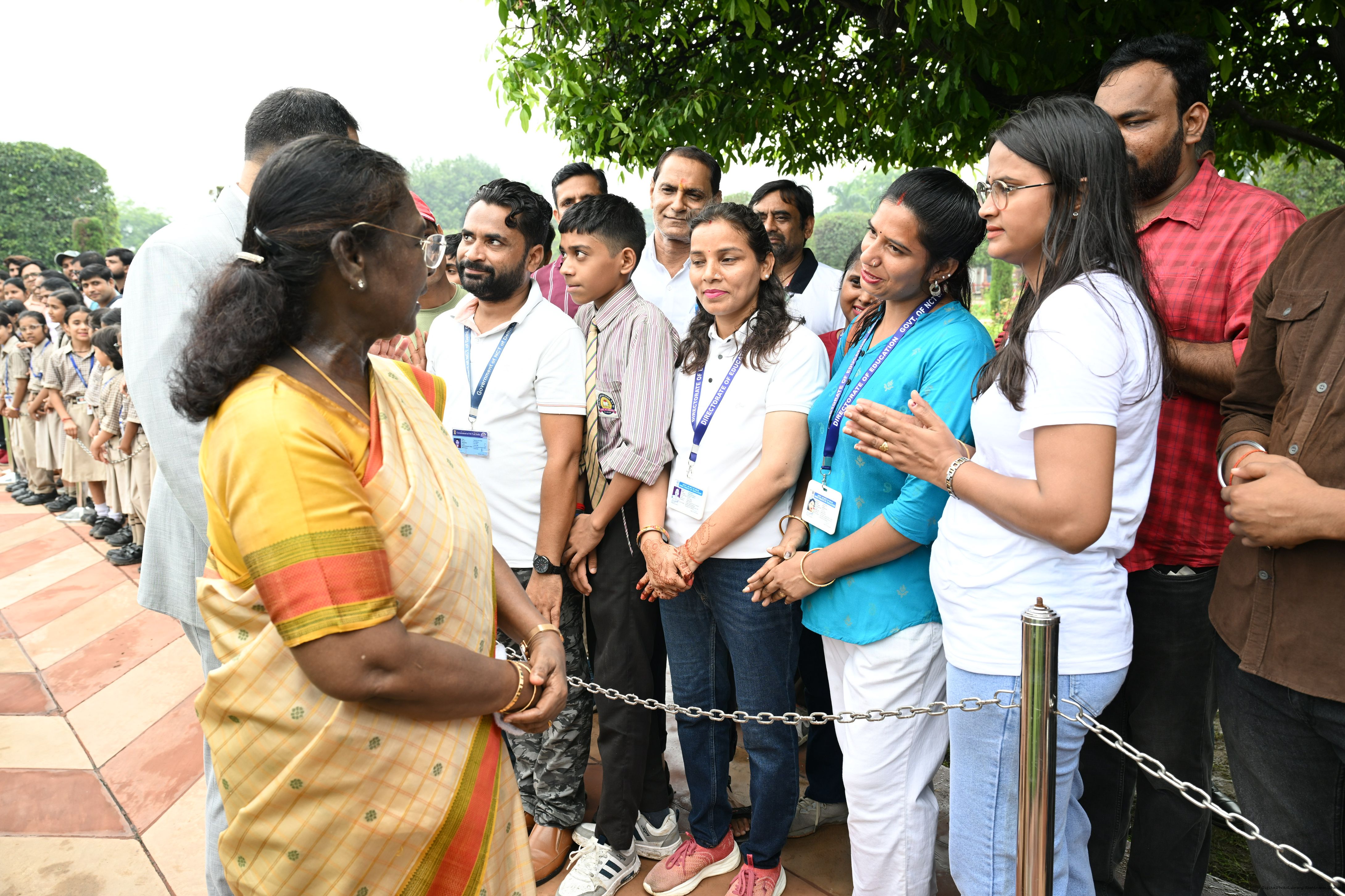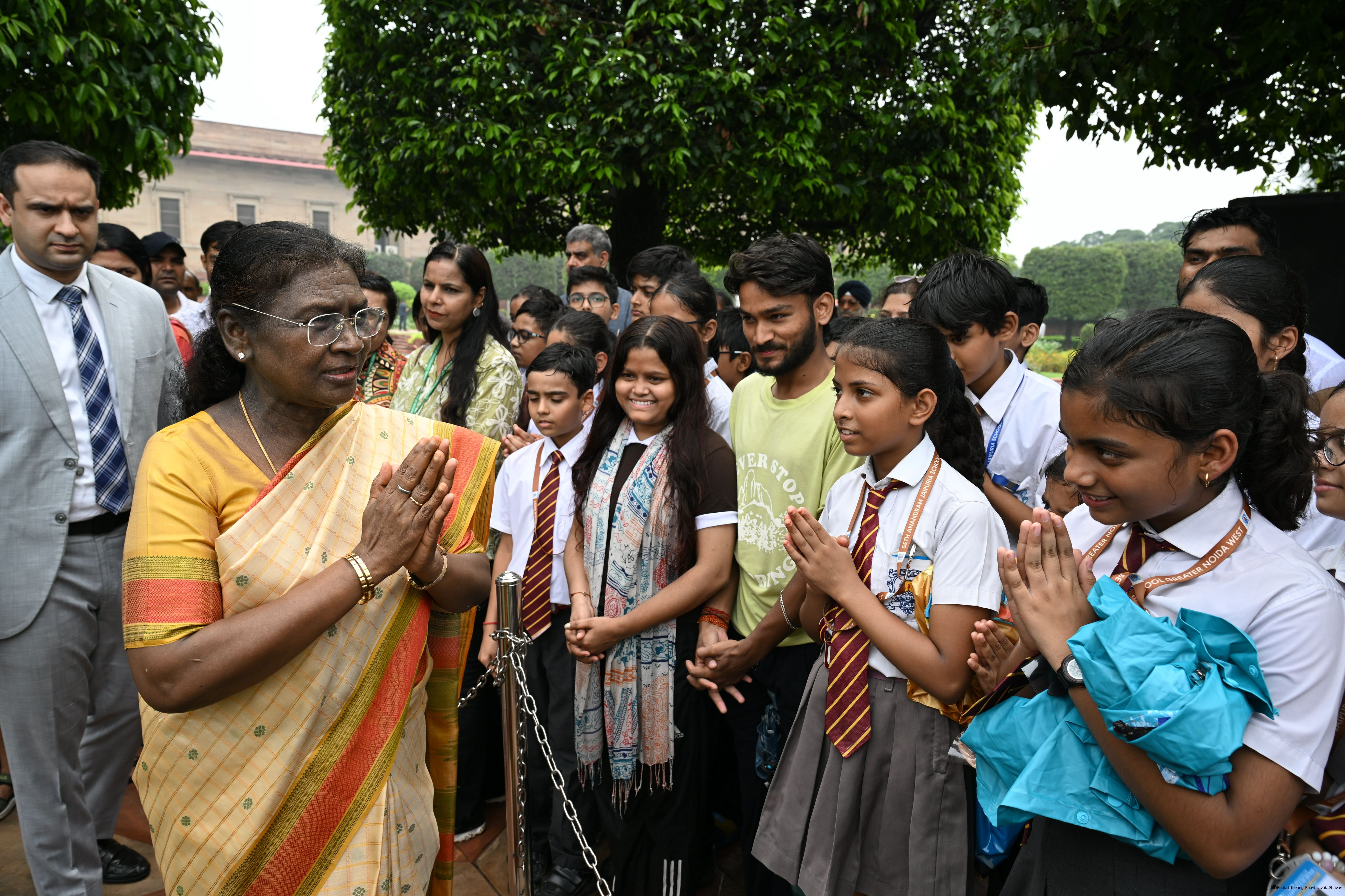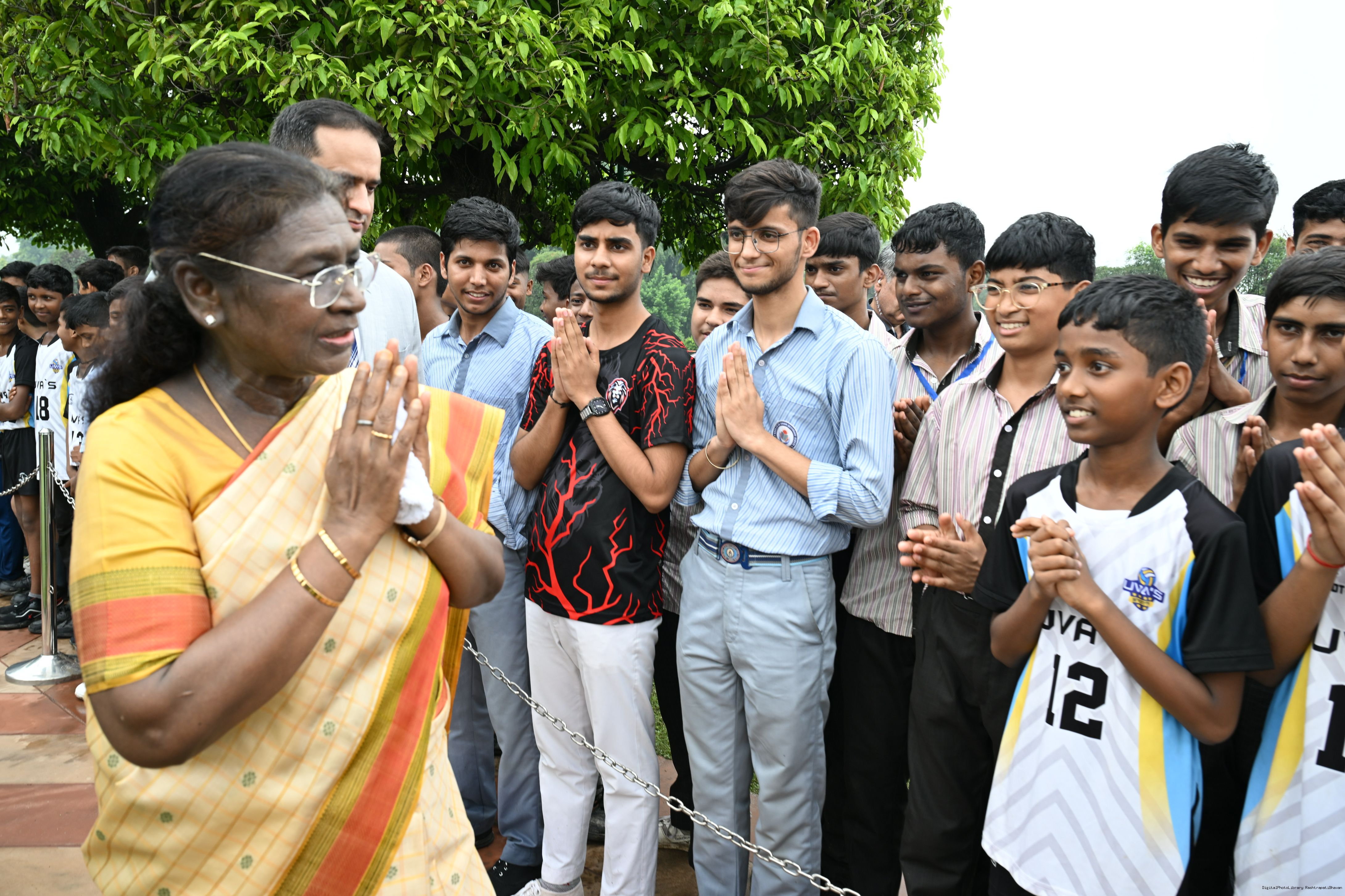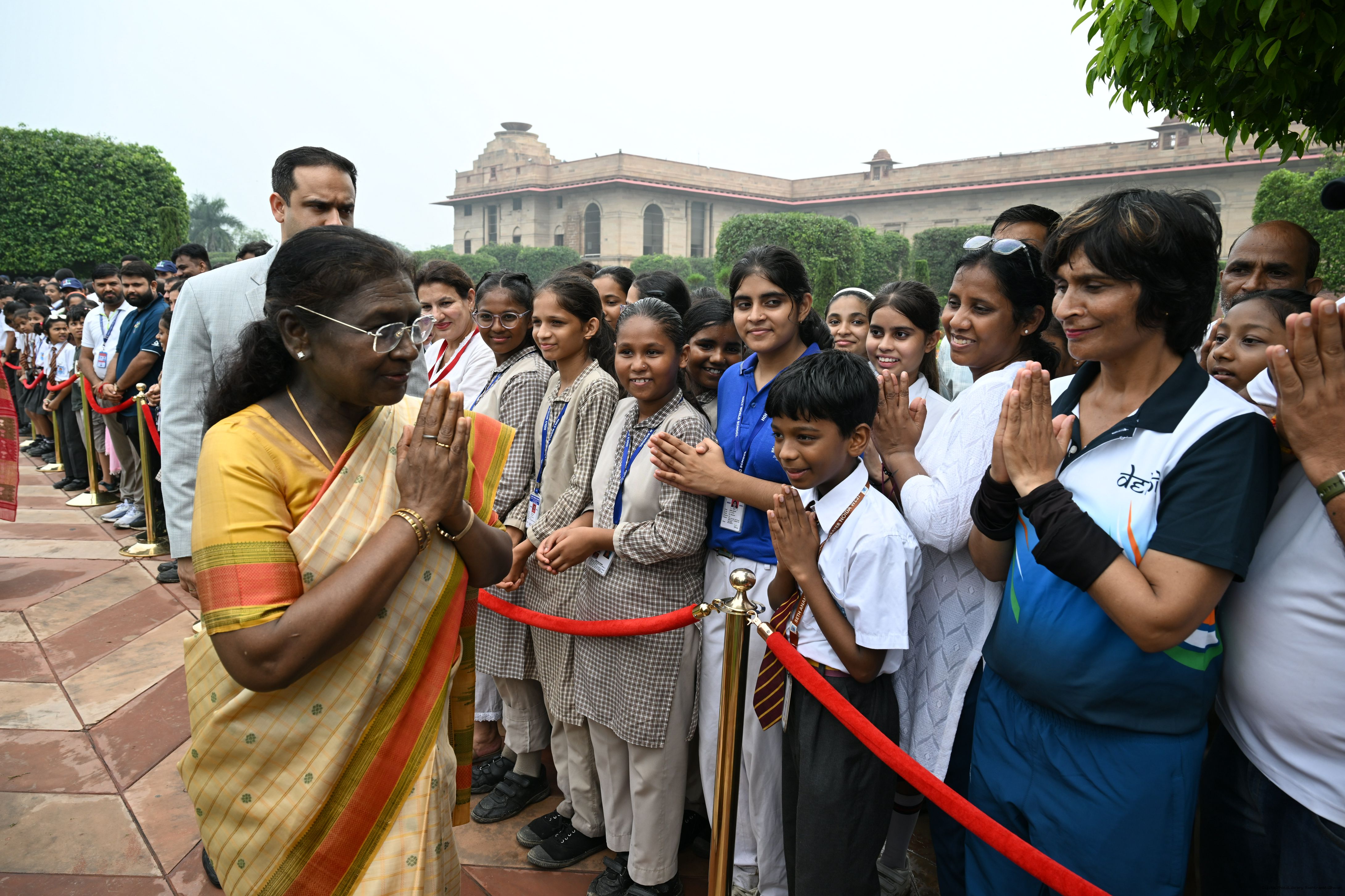 The President of India, Smt Droupadi Murmu interacted with sportspersons who visited Amrit Udyan on National Sports Day at Rashtrapati Bhavan on August 29, 2025.