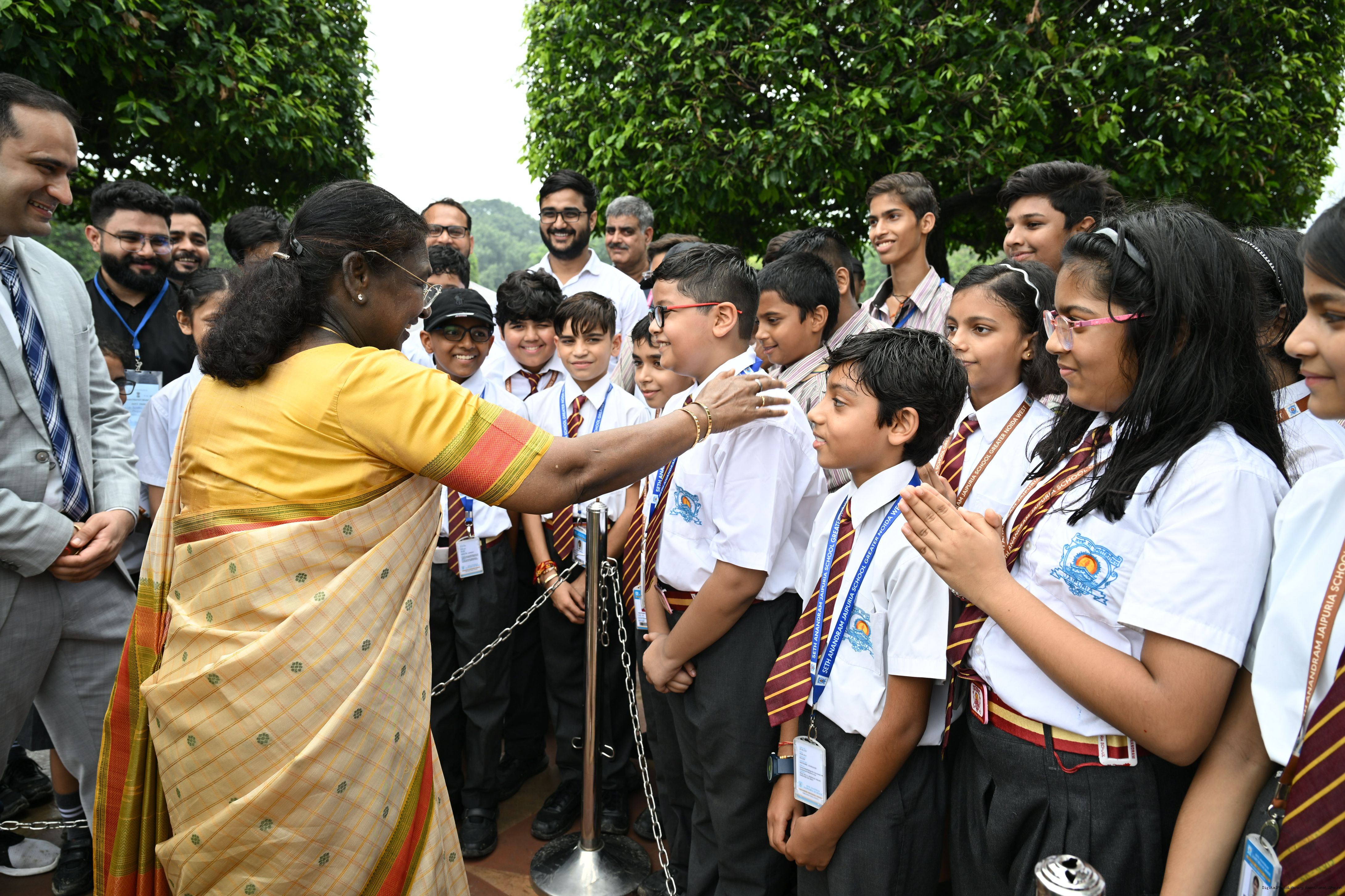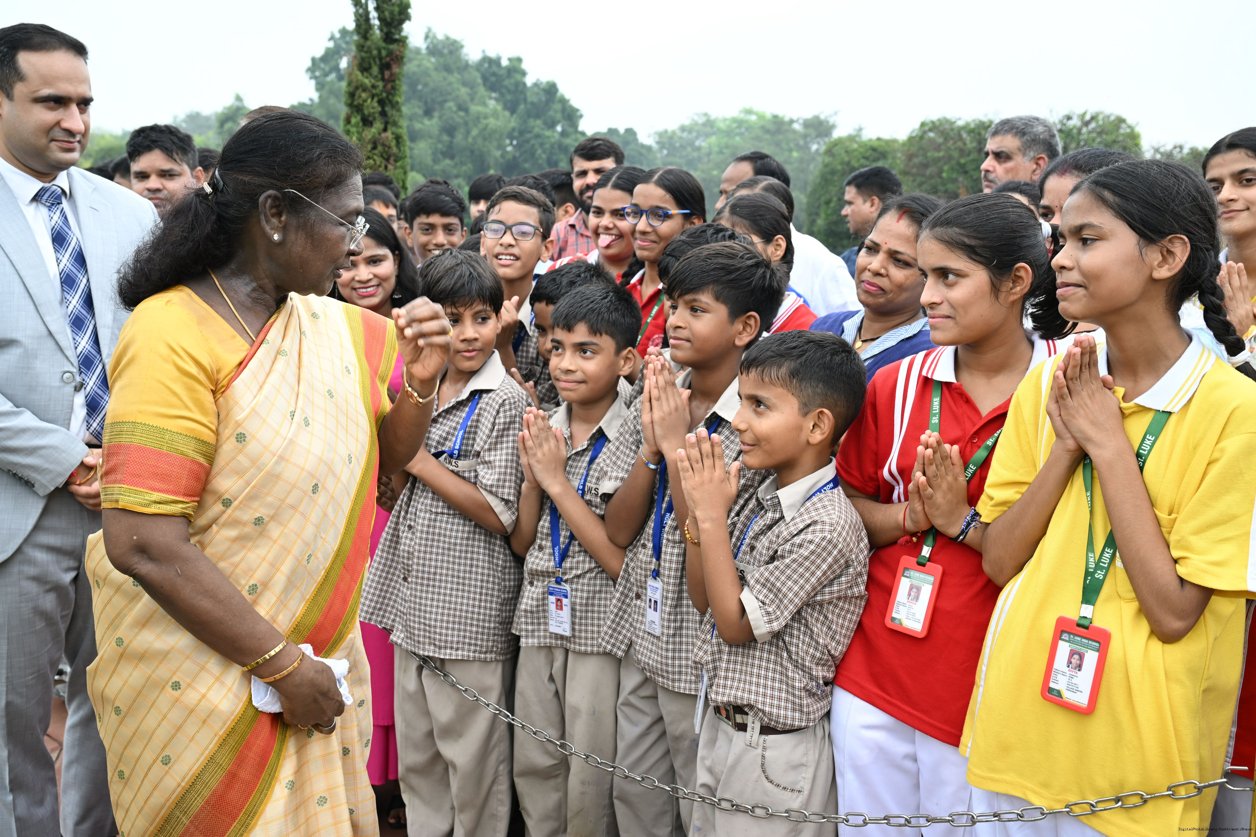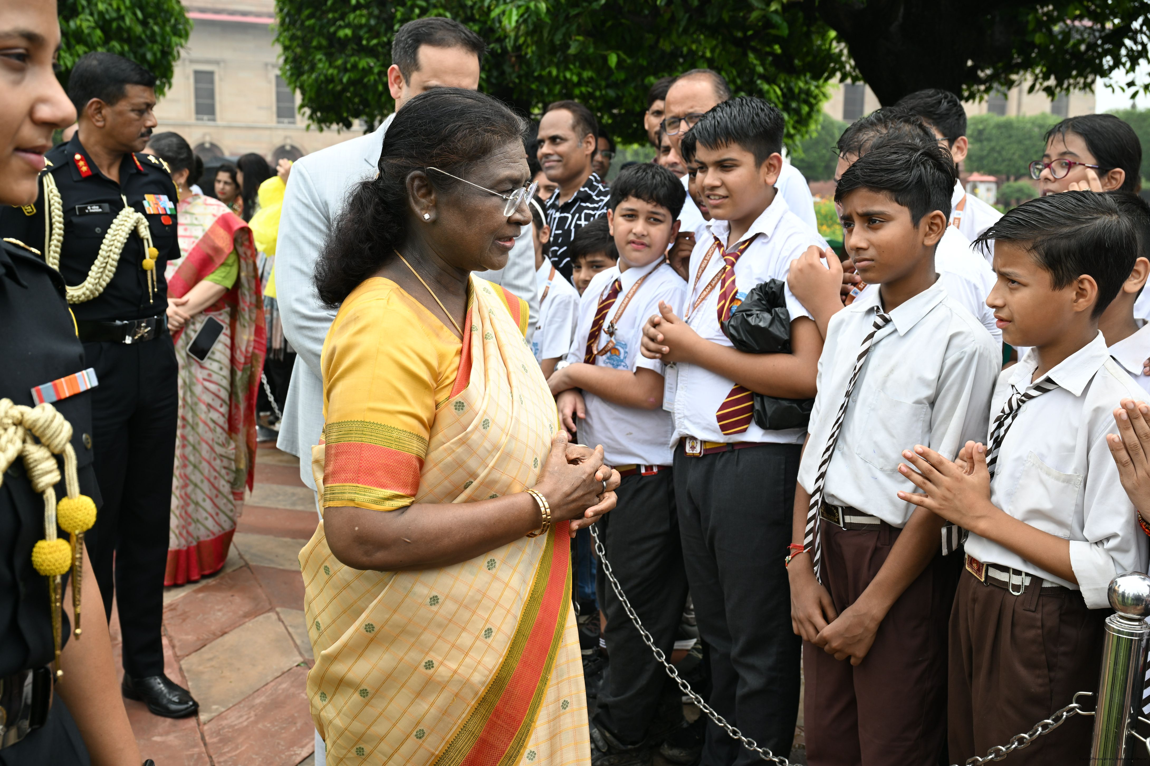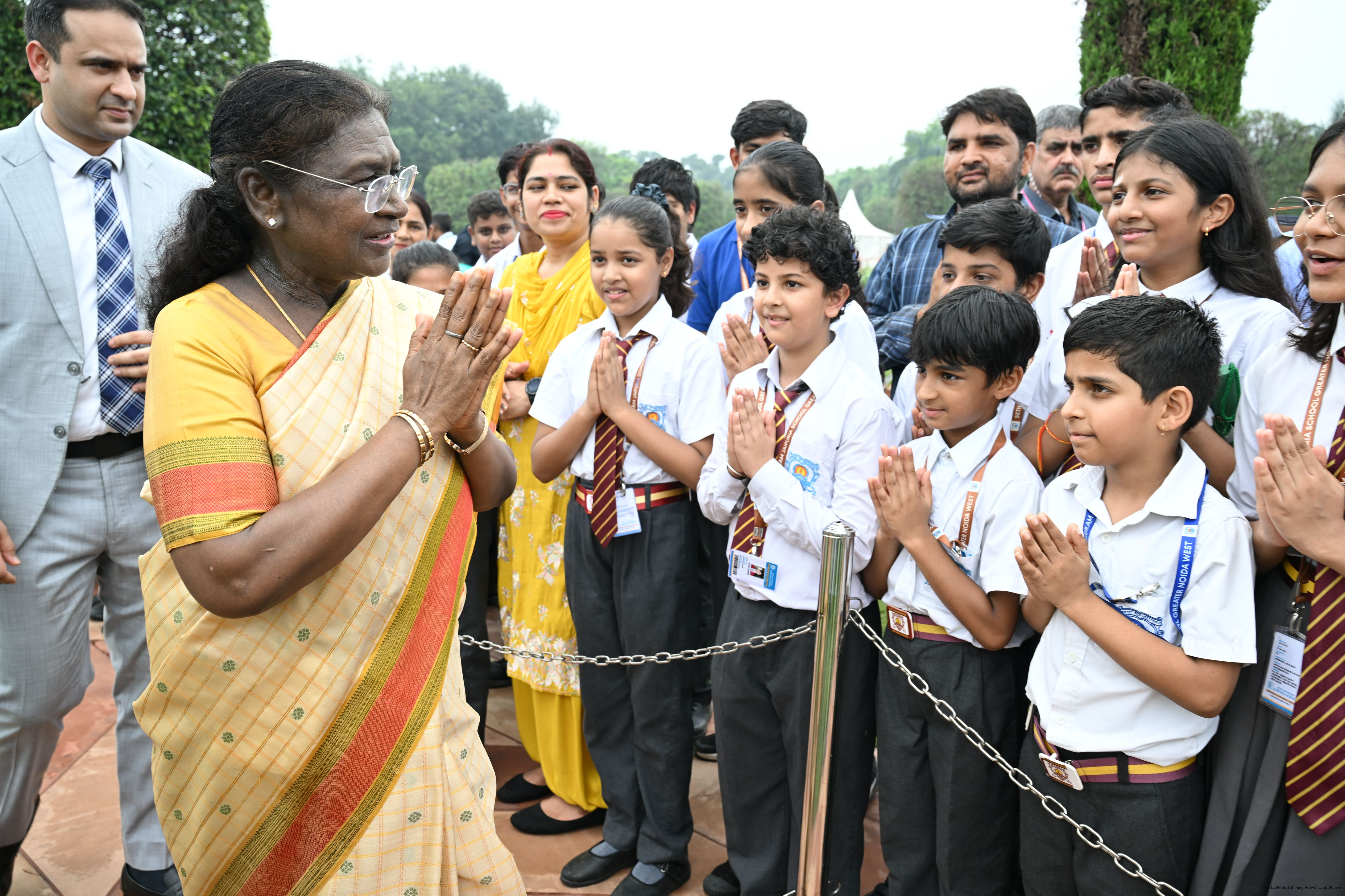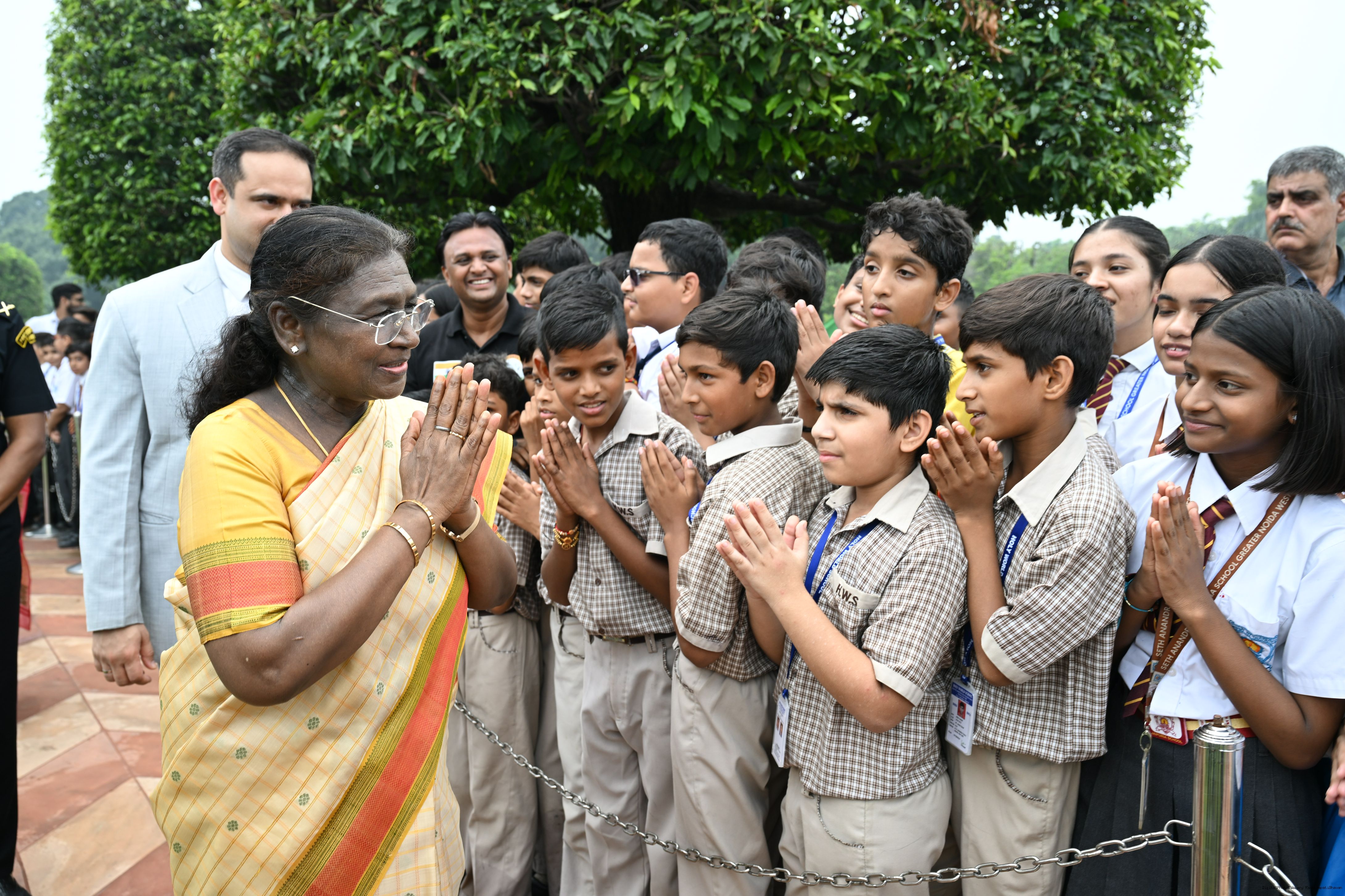 The President of India, Smt Droupadi Murmu interacted with sportspersons who visited Amrit Udyan on National Sports Day at Rashtrapati Bhavan on August 29, 2025.