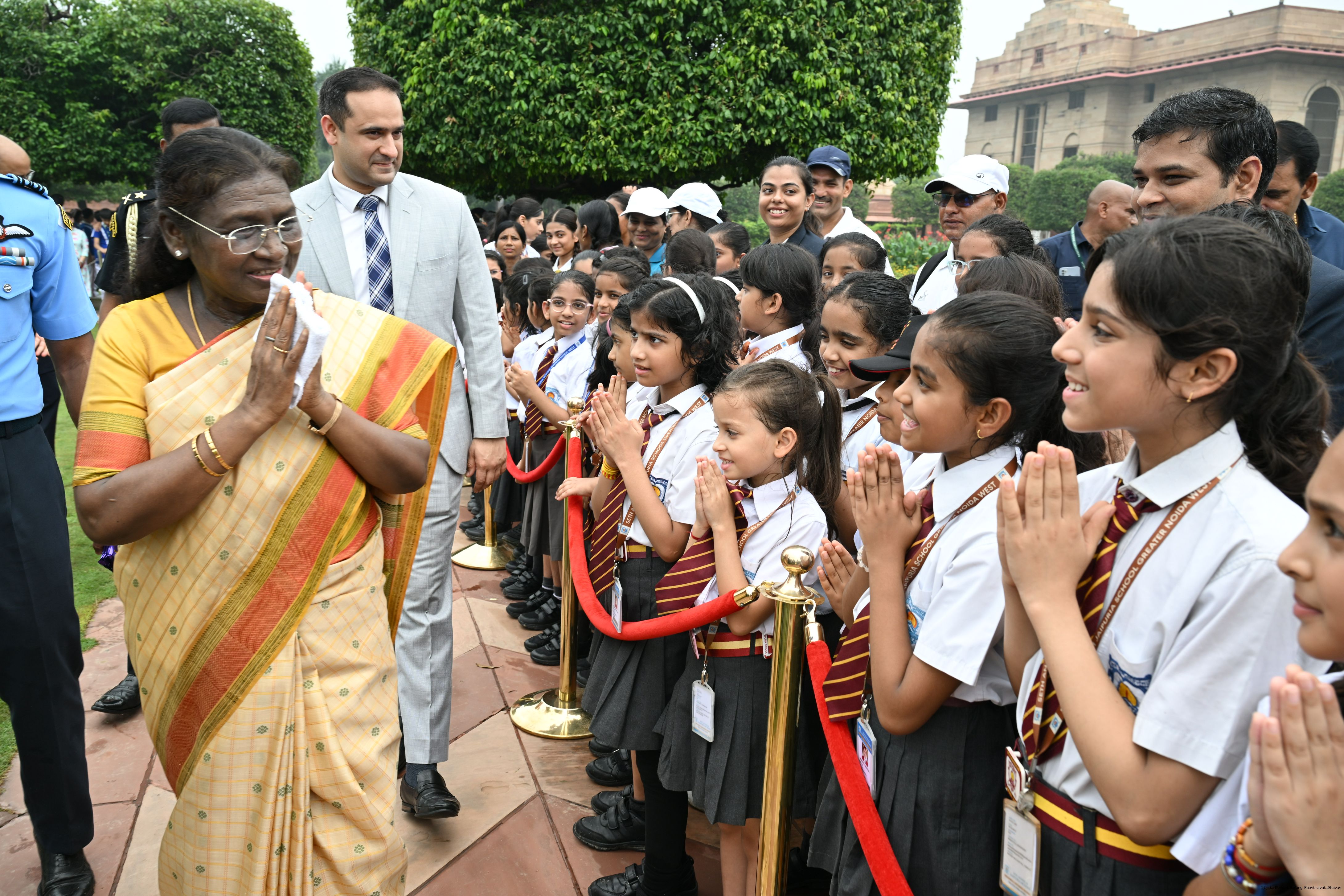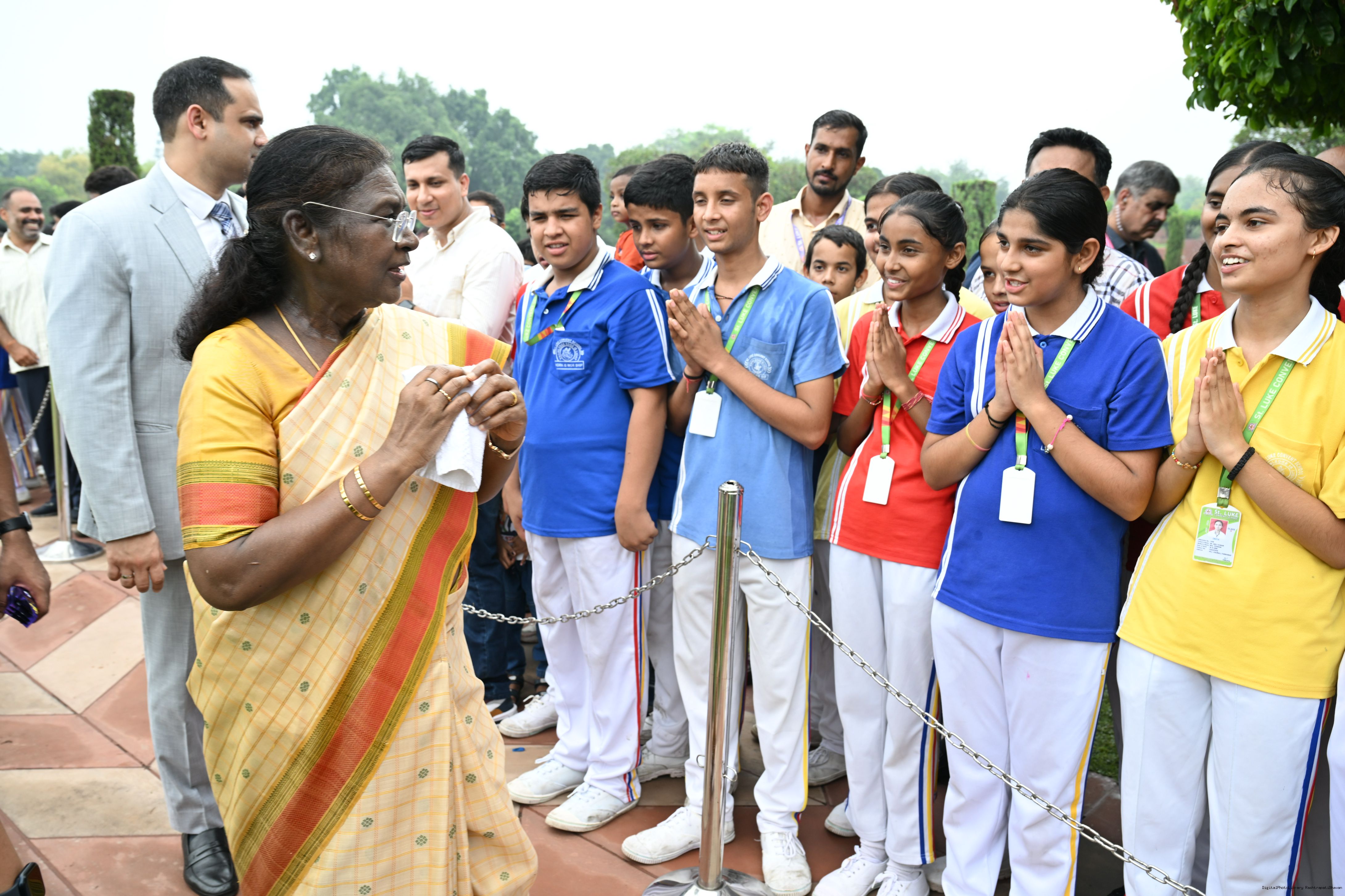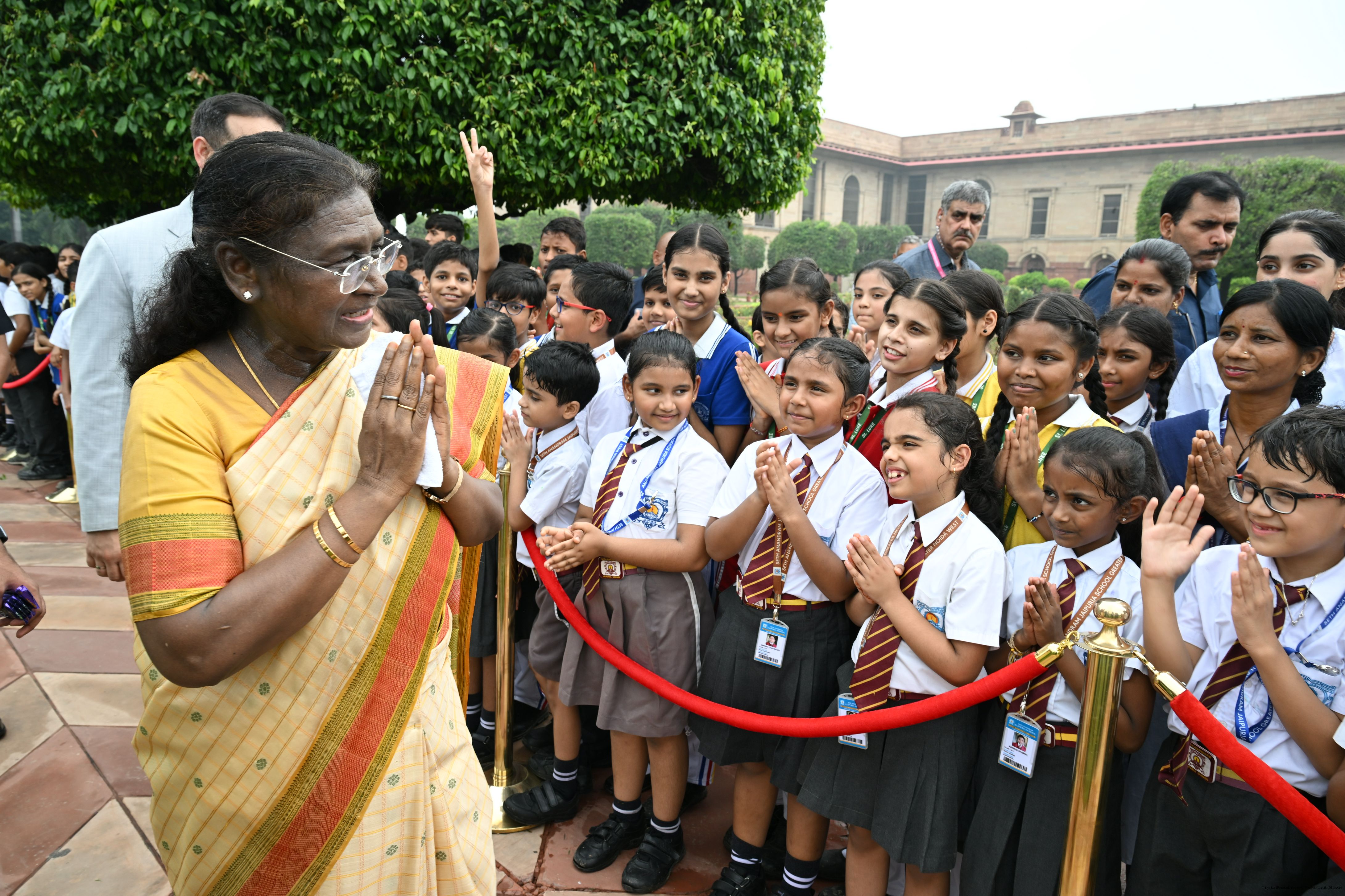 The President of India, Smt Droupadi Murmu interacted with sportspersons who visited Amrit Udyan on National Sports Day at Rashtrapati Bhavan on August 29, 2025.