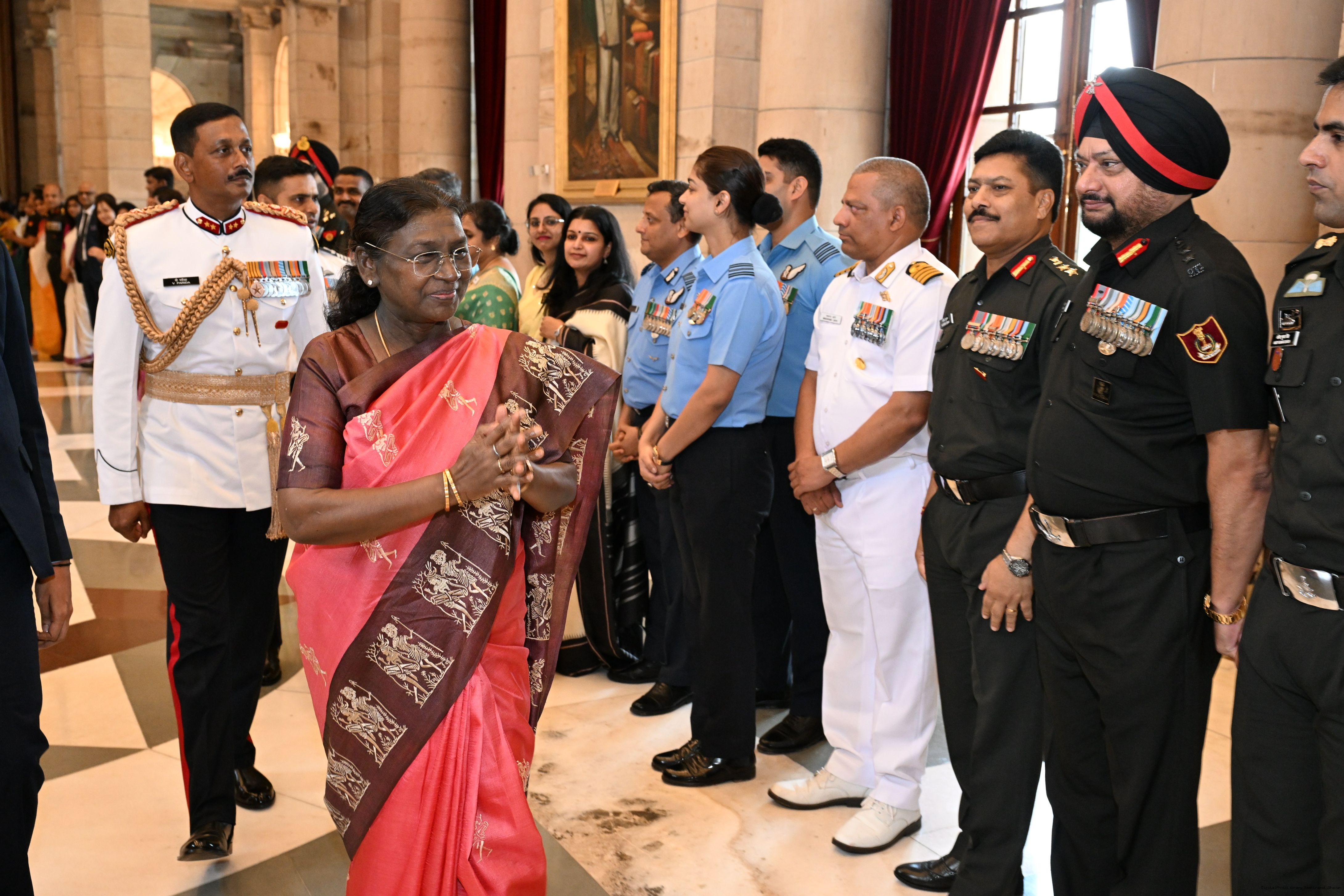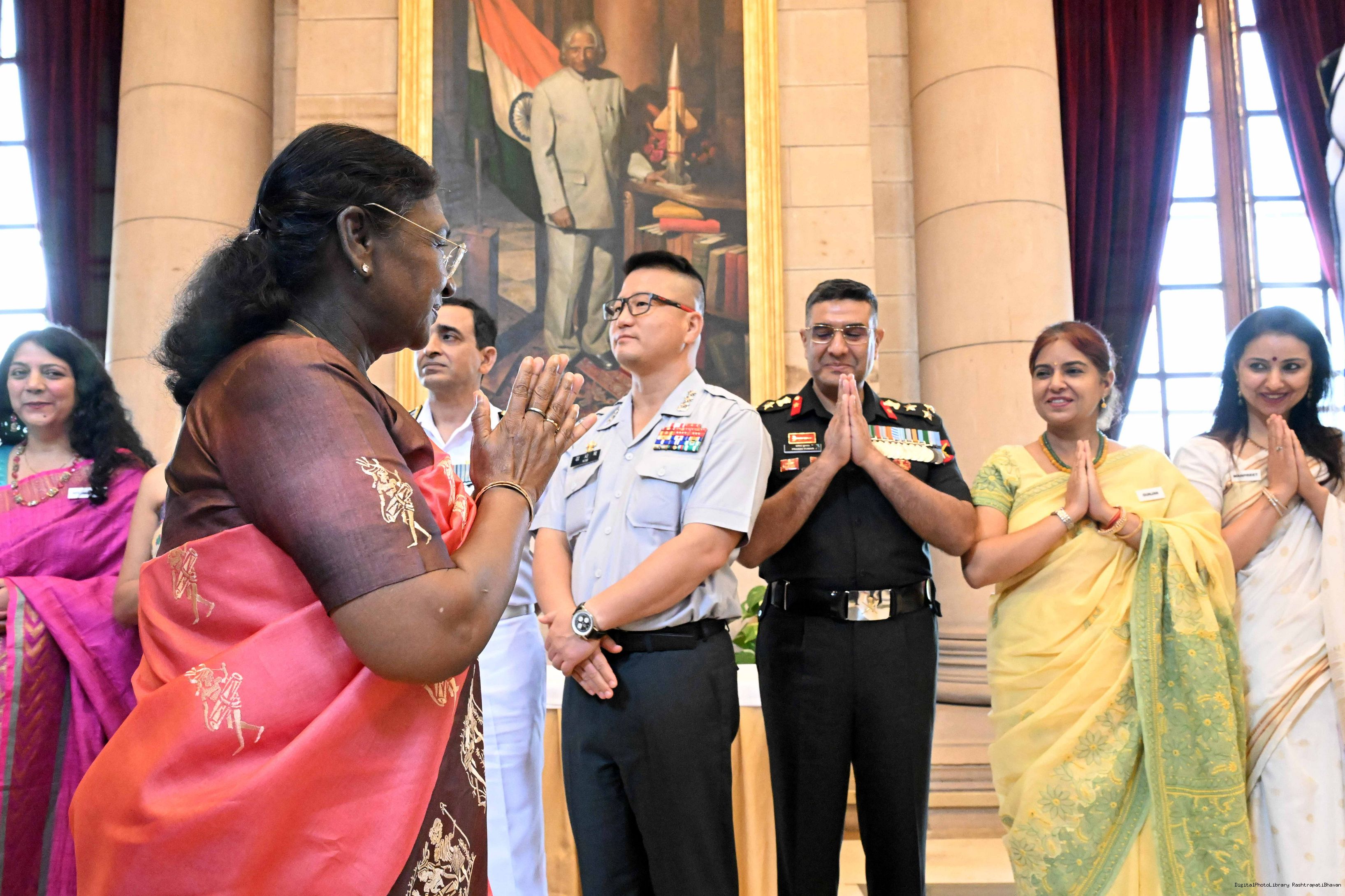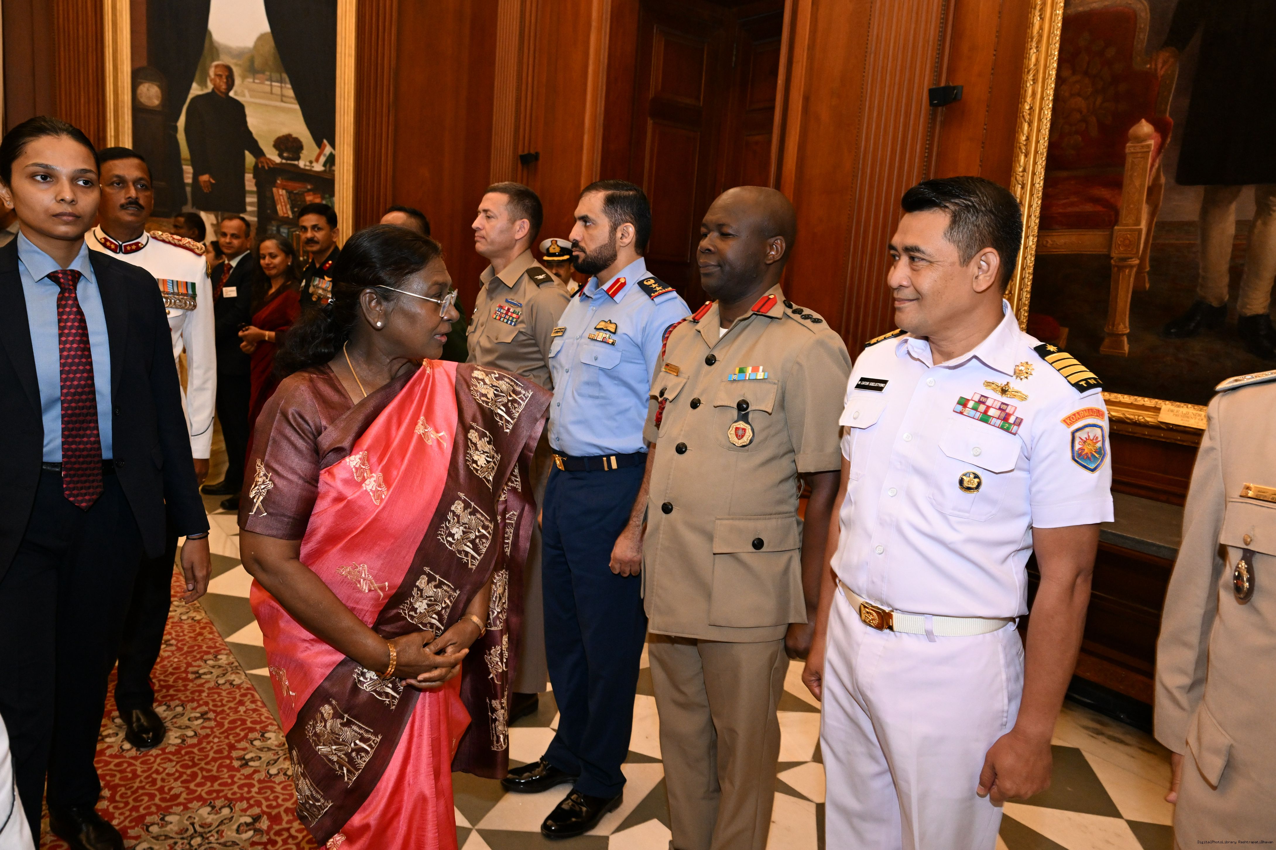 The faculty and course members of the 65th National Defence College Course called on the President of India, Smt Droupadi Murmu, at Rashtrapati Bhavan on October 7, 2025.