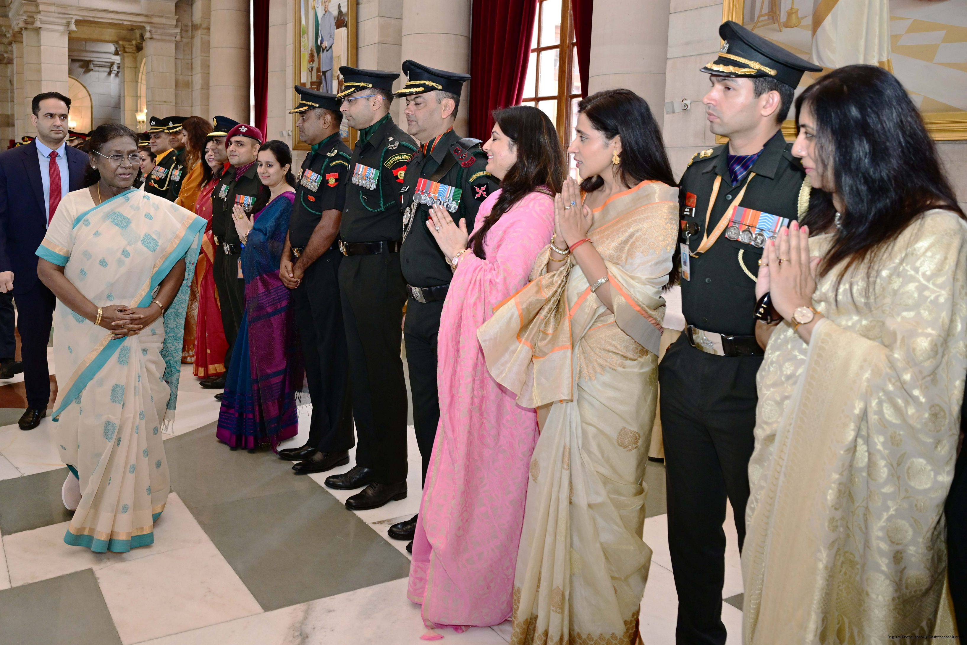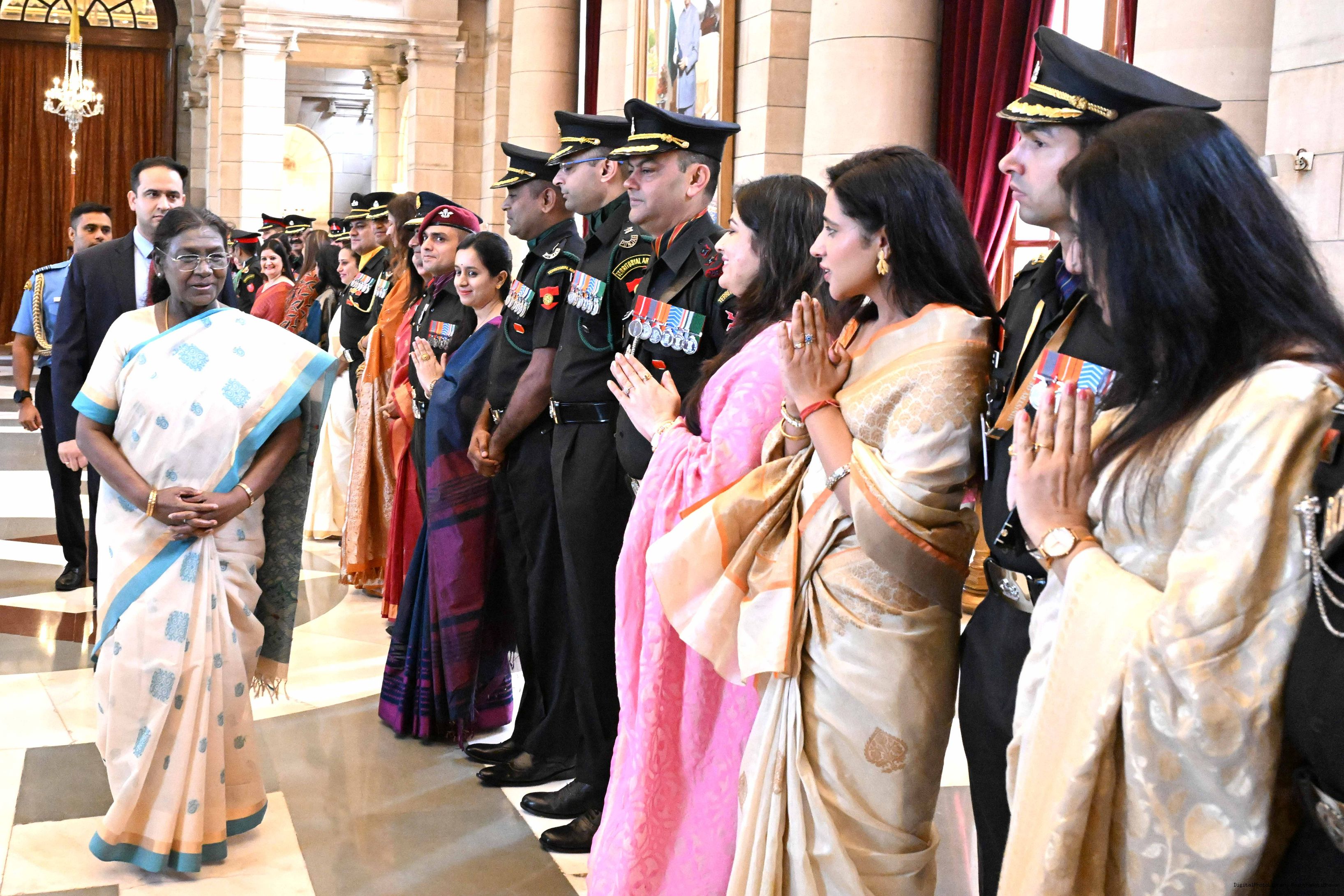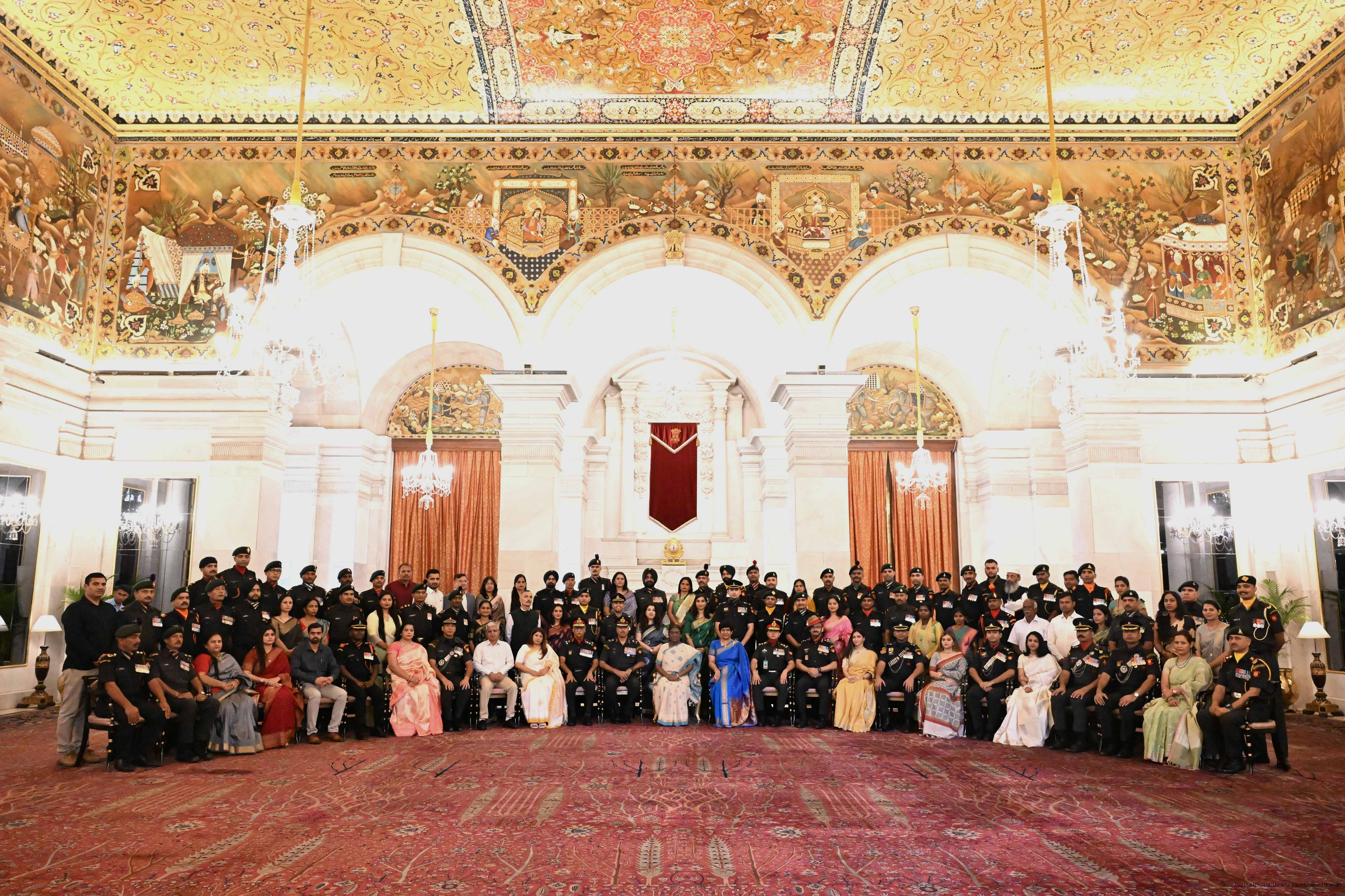 The President of India, Smt. Droupadi Murmu interacted and met Territorial Army (TA) Officers, JCOs and Ors and their families with selected civilian staff of the Territorial Army Directorate at Rashtrapati Bhavan on October 8, 2025.