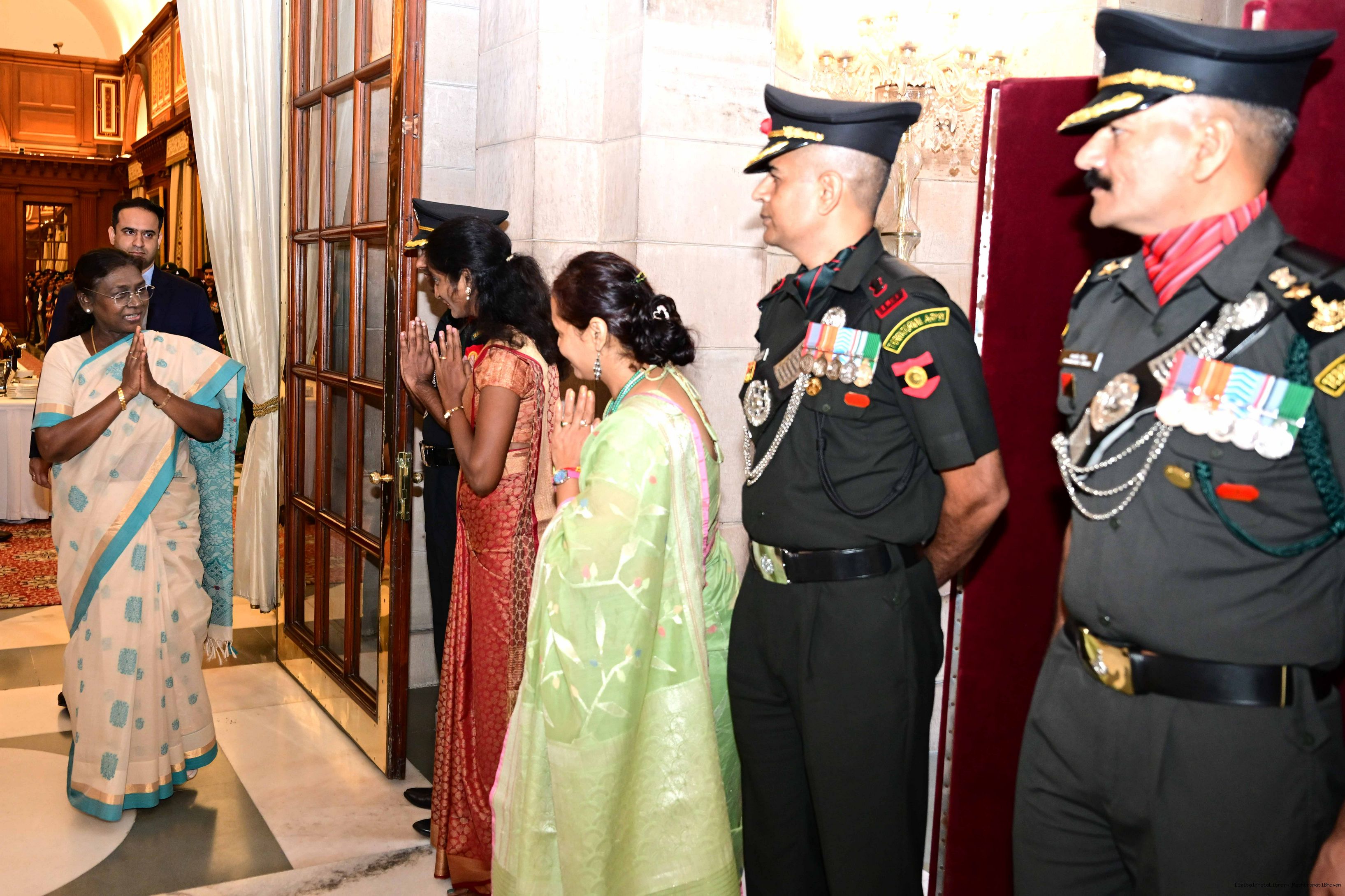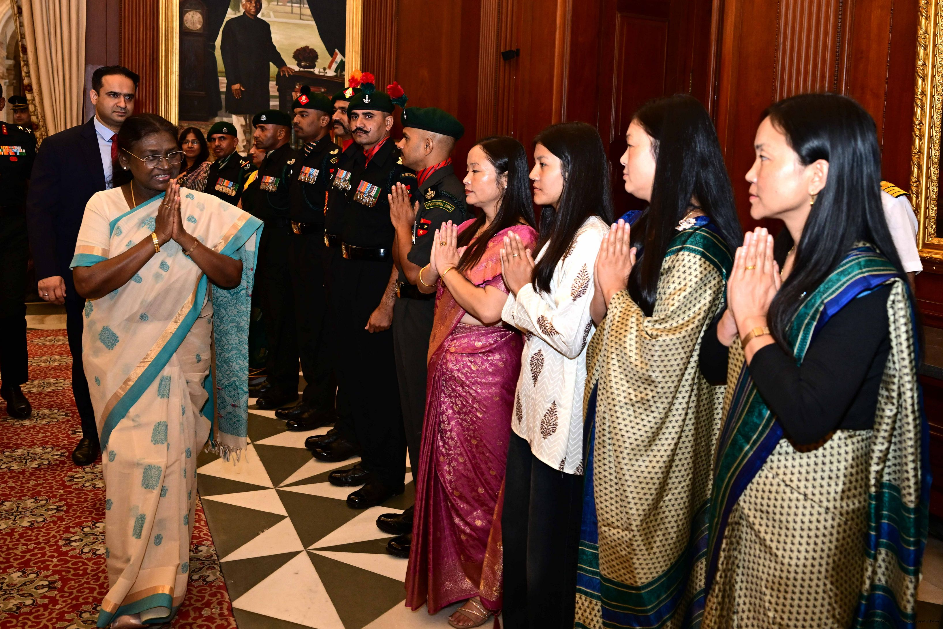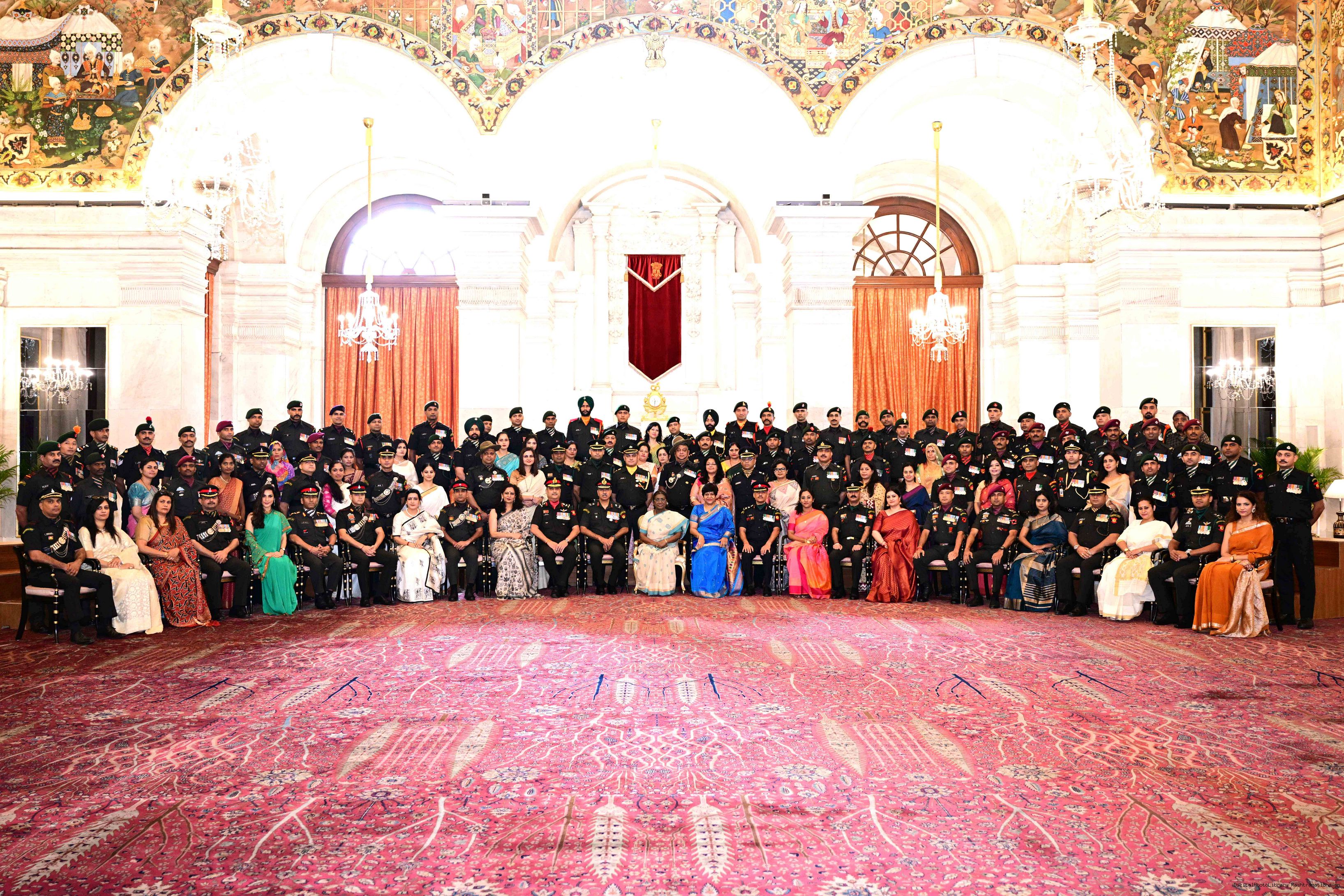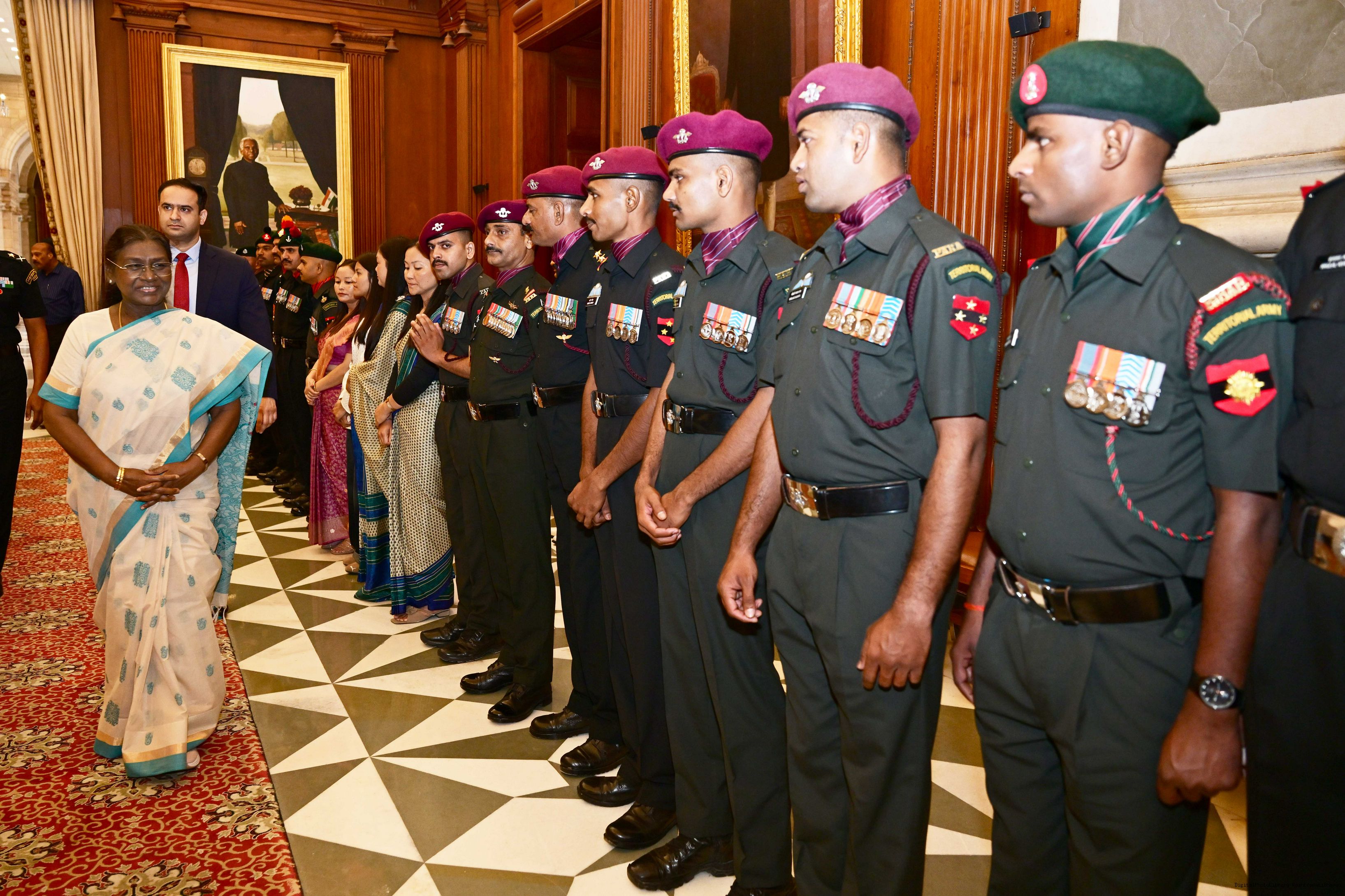 The President of India, Smt. Droupadi Murmu interacted and met Territorial Army (TA) Officers, JCOs and Ors and their families with selected civilian staff of the Territorial Army Directorate at Rashtrapati Bhavan on October 8, 2025.