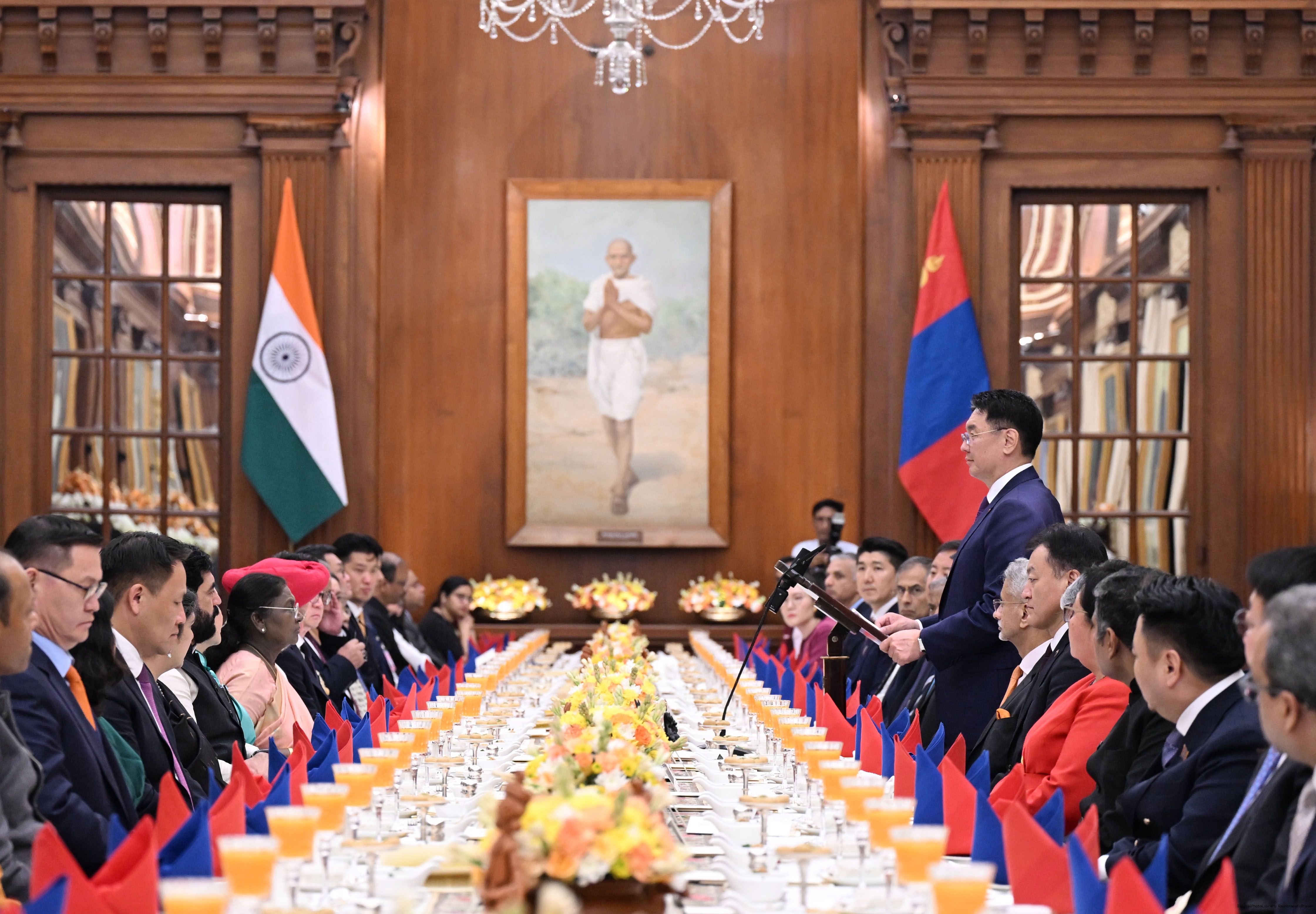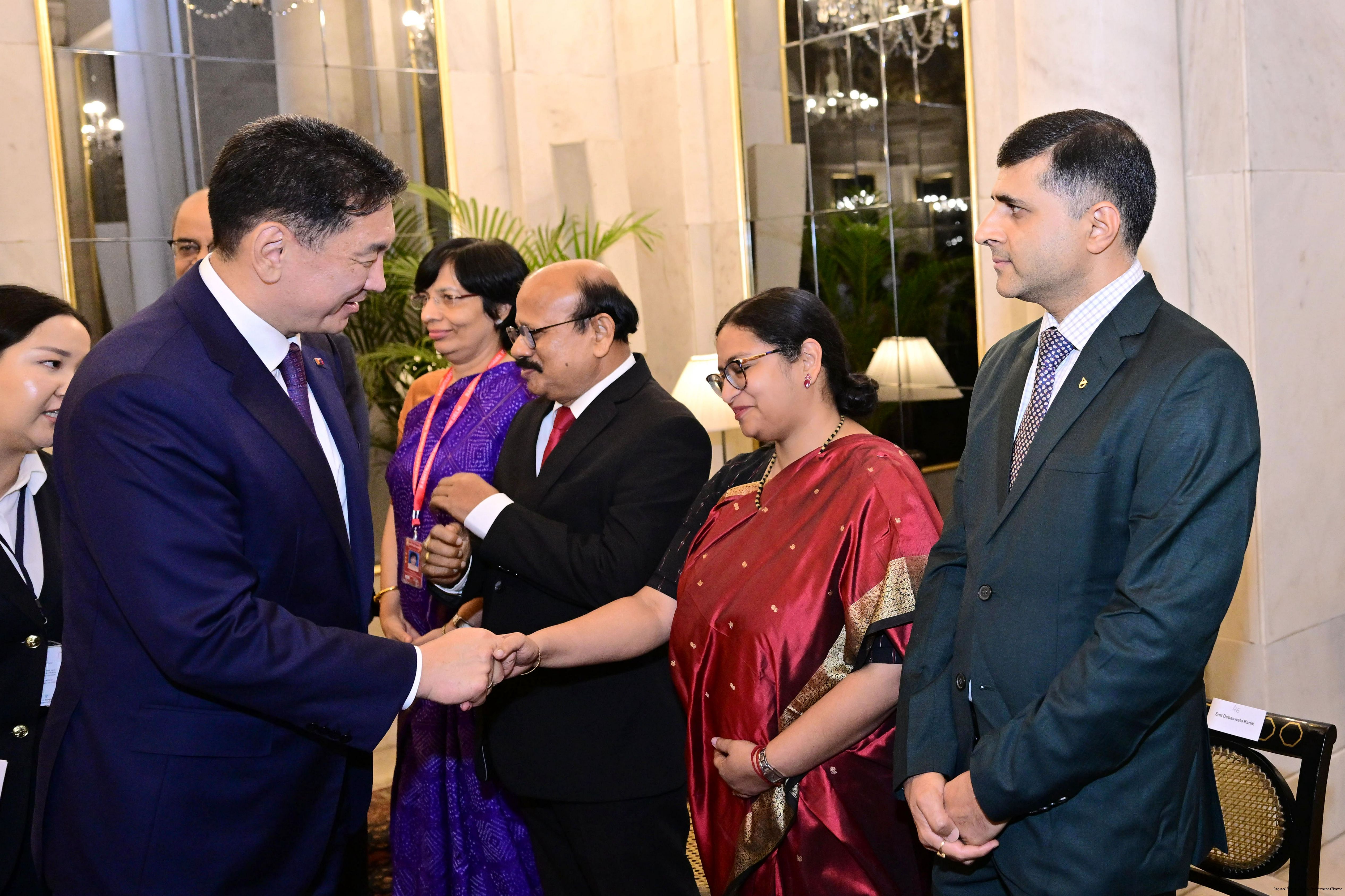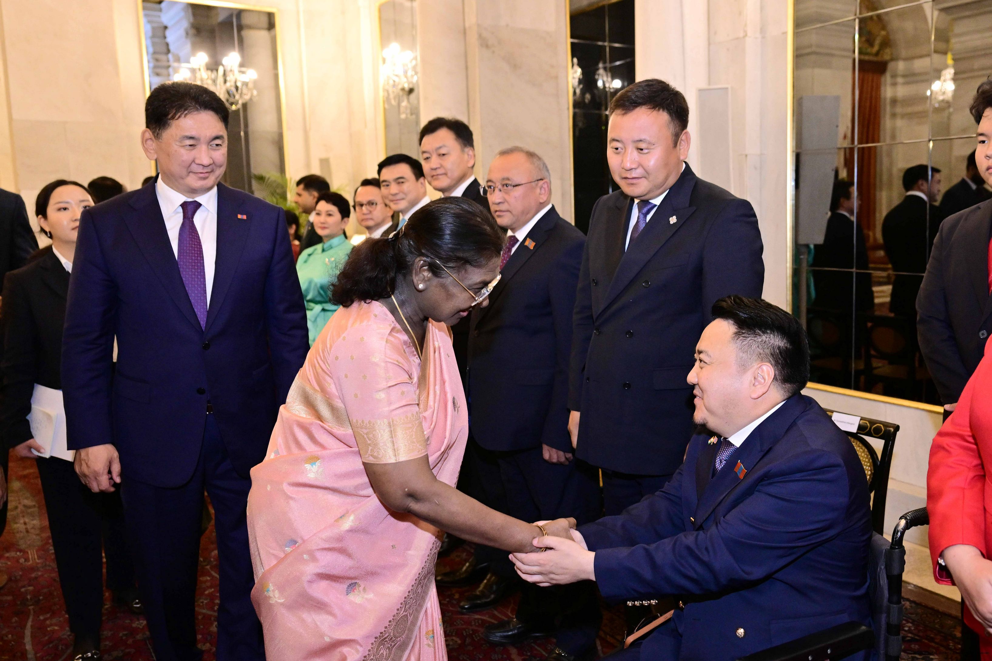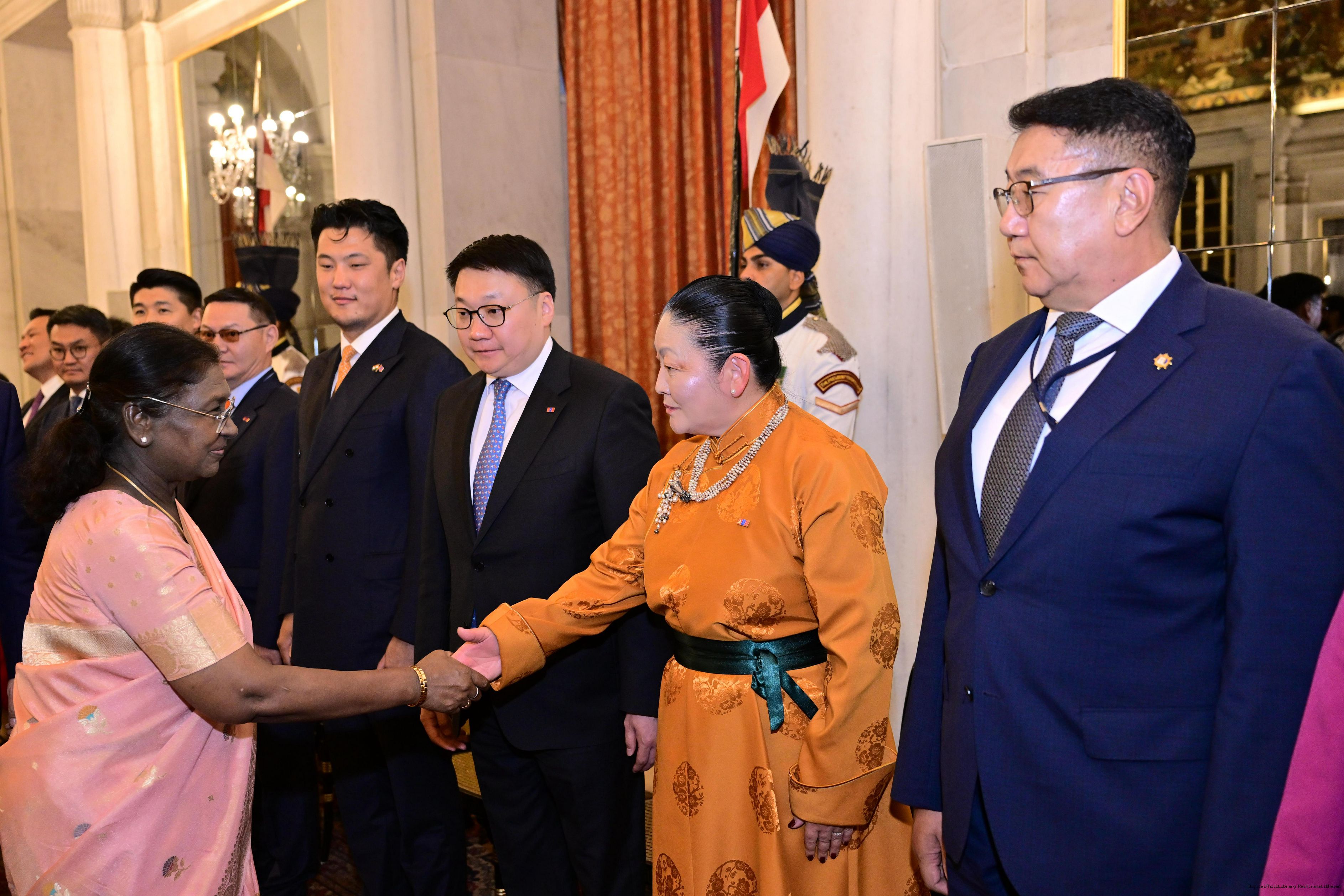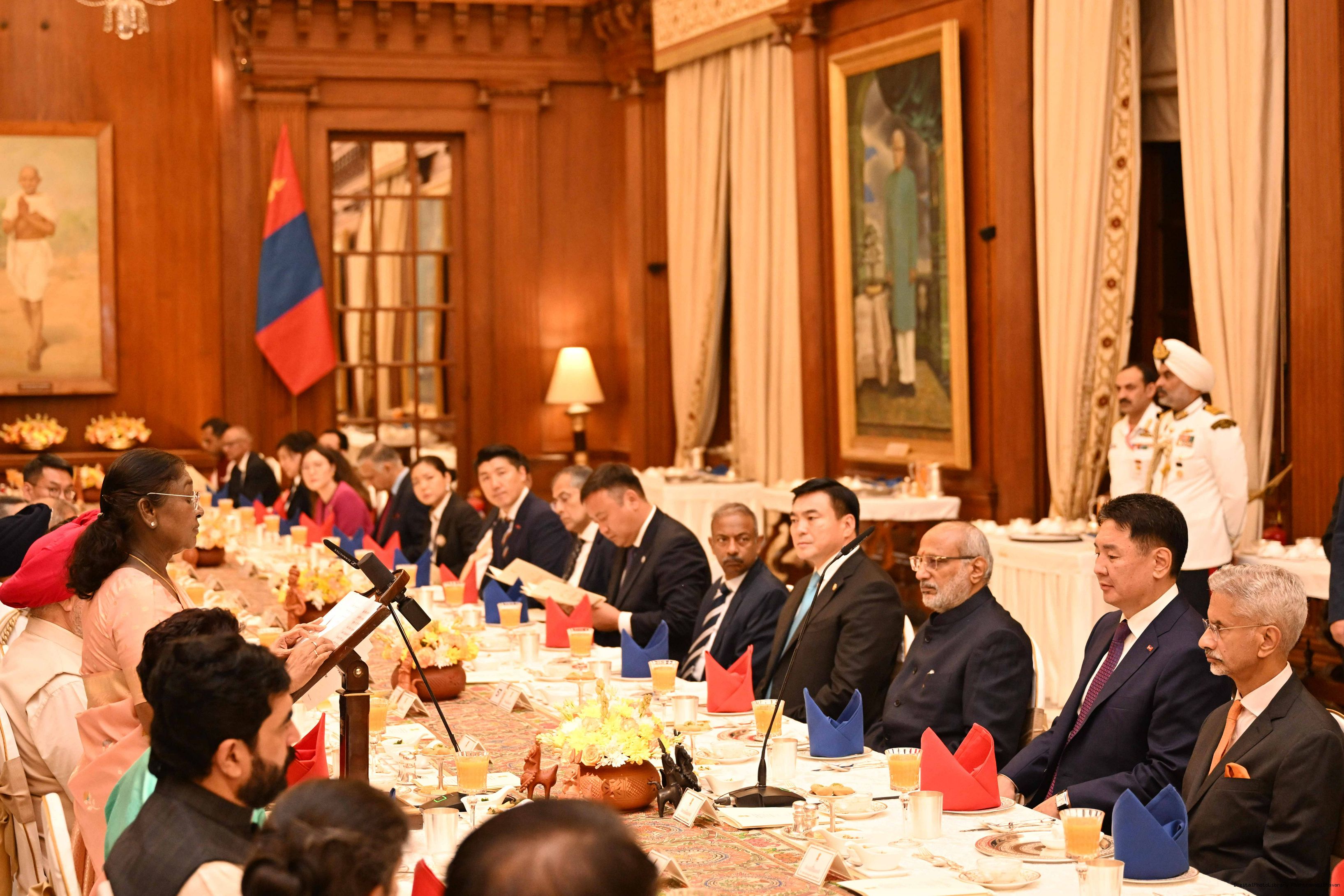 The President of India, Smt Droupadi Murmu hosted a banquet in the honour to H.E. Mr Khurelsukh Ukhnaa, President of Mongolia at Rashtrapati Bhavan on October 14, 2025.