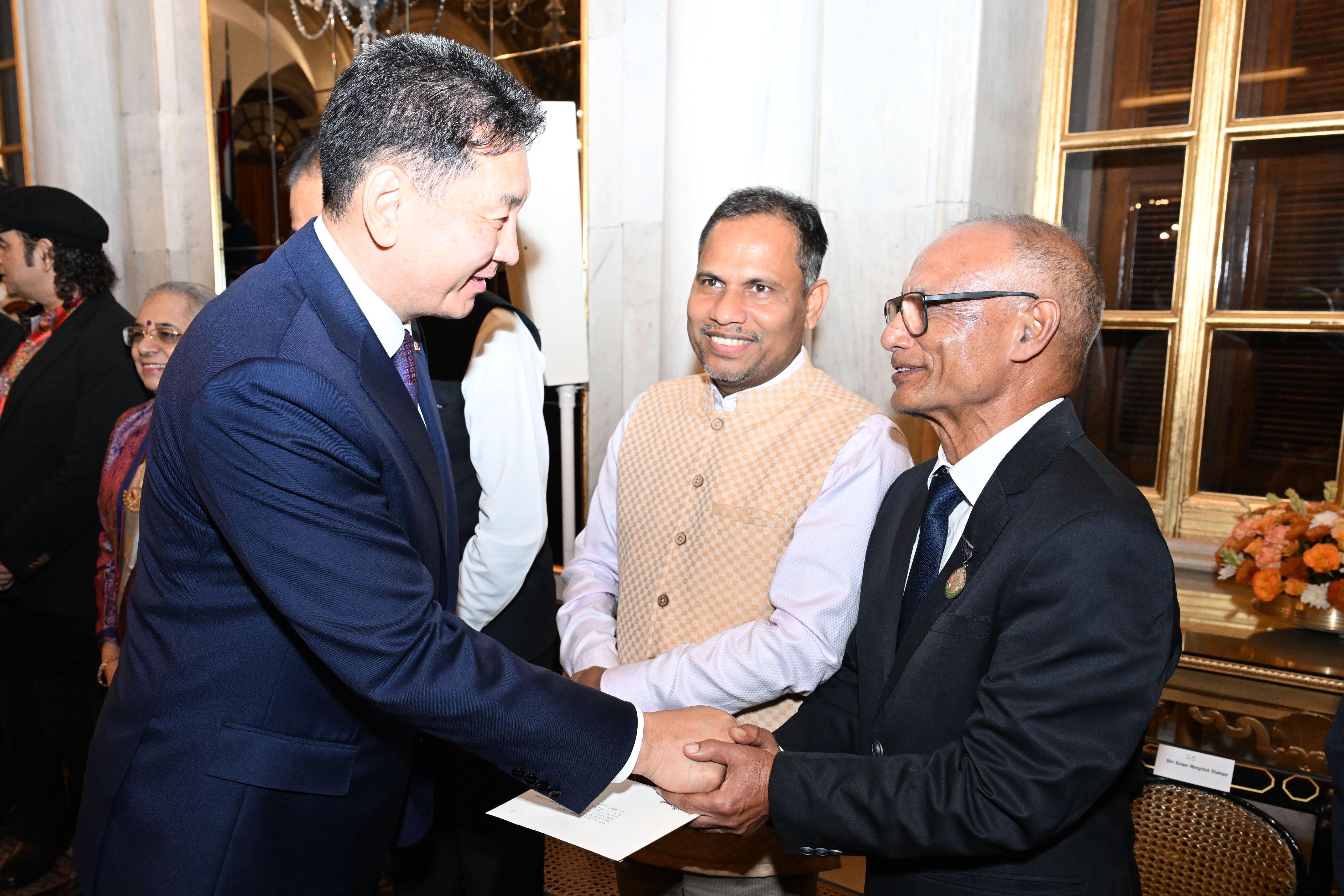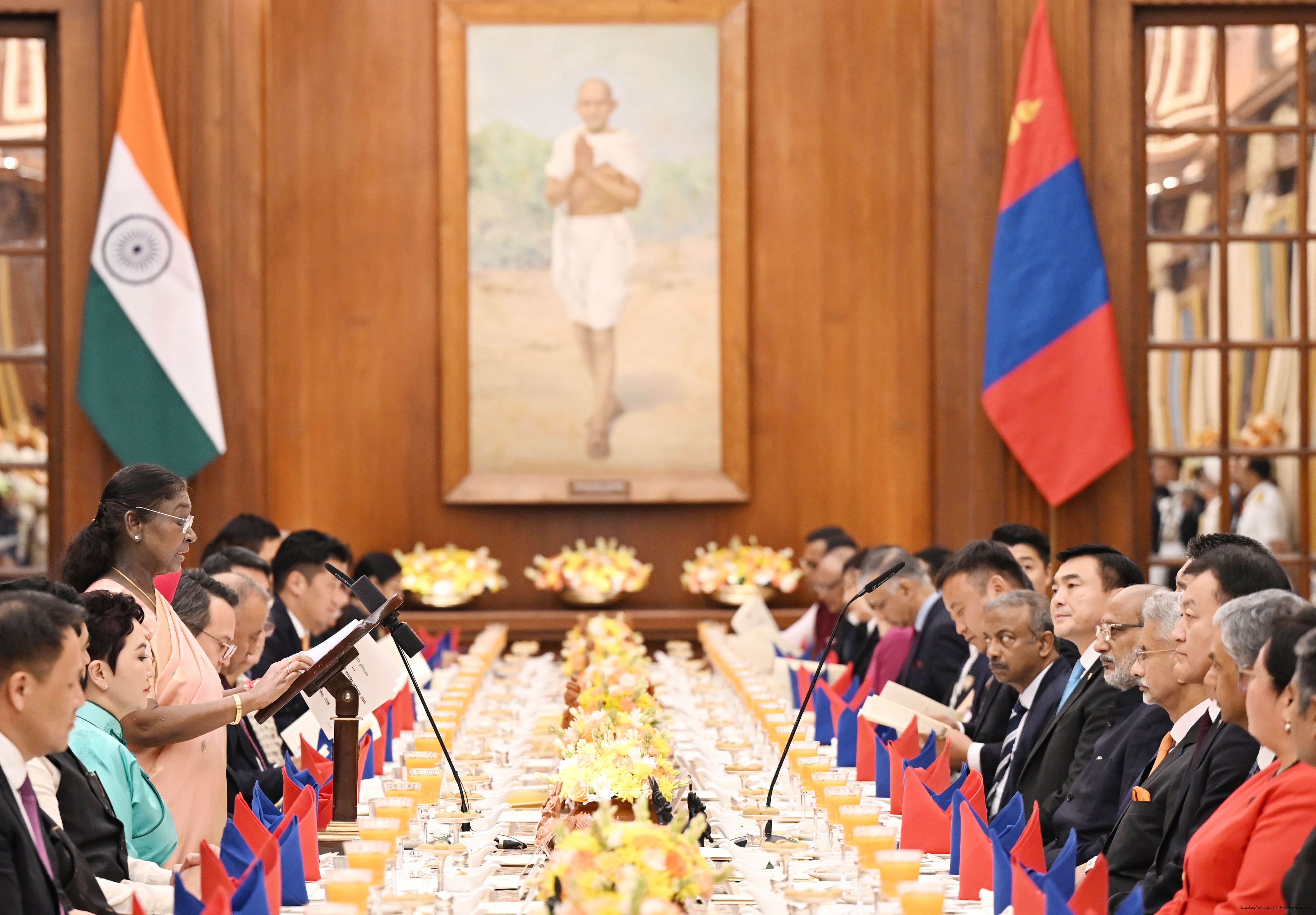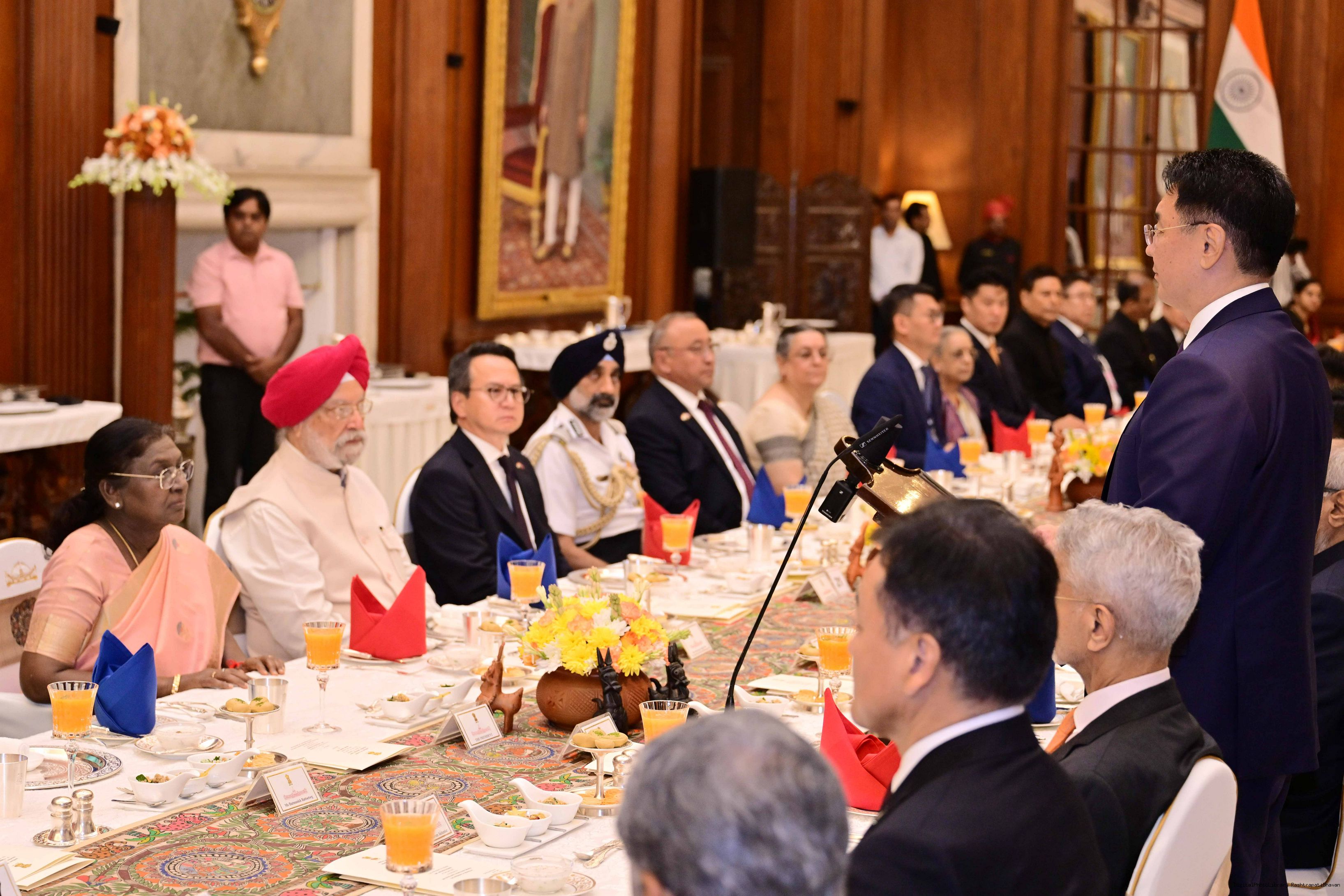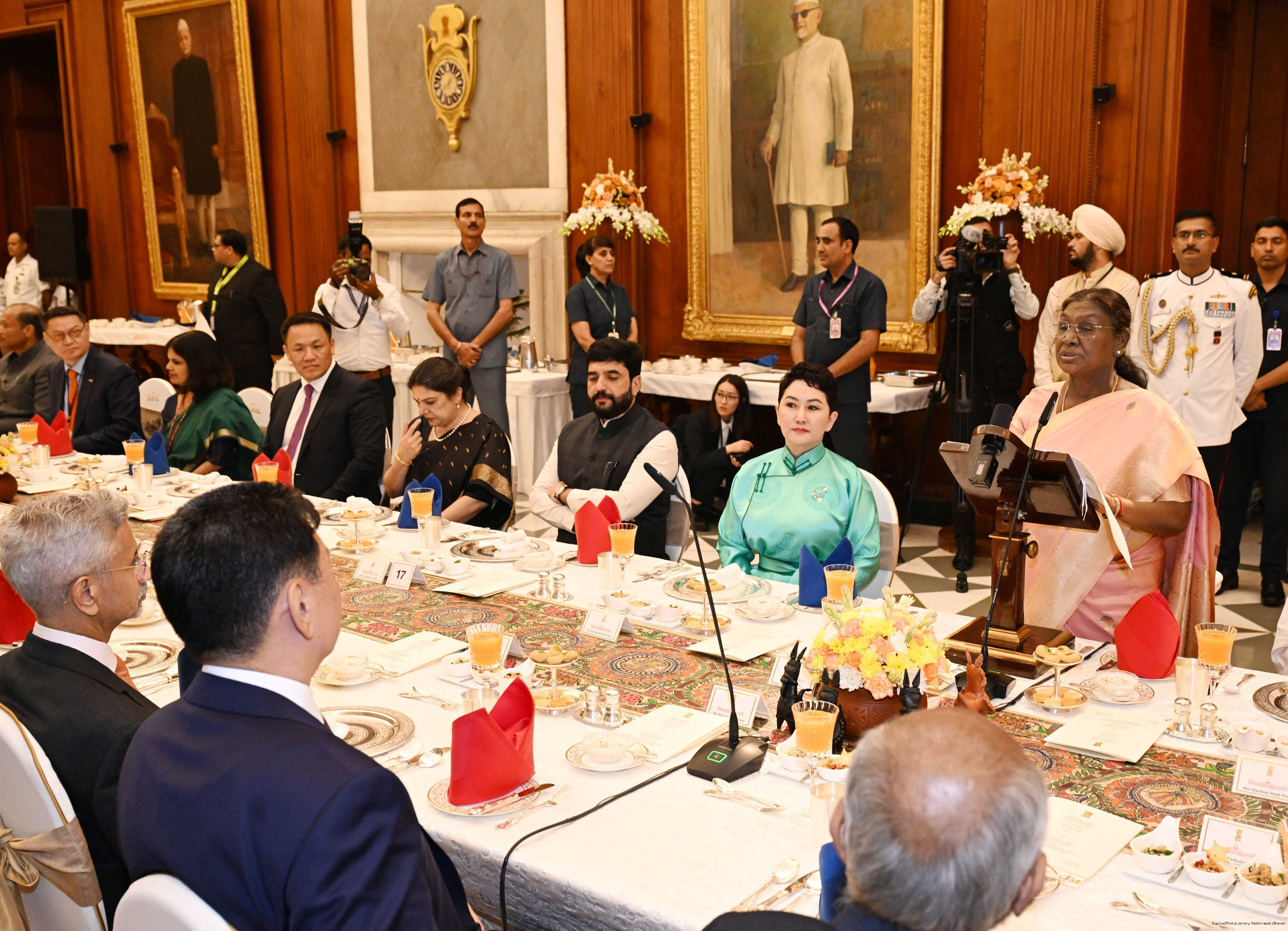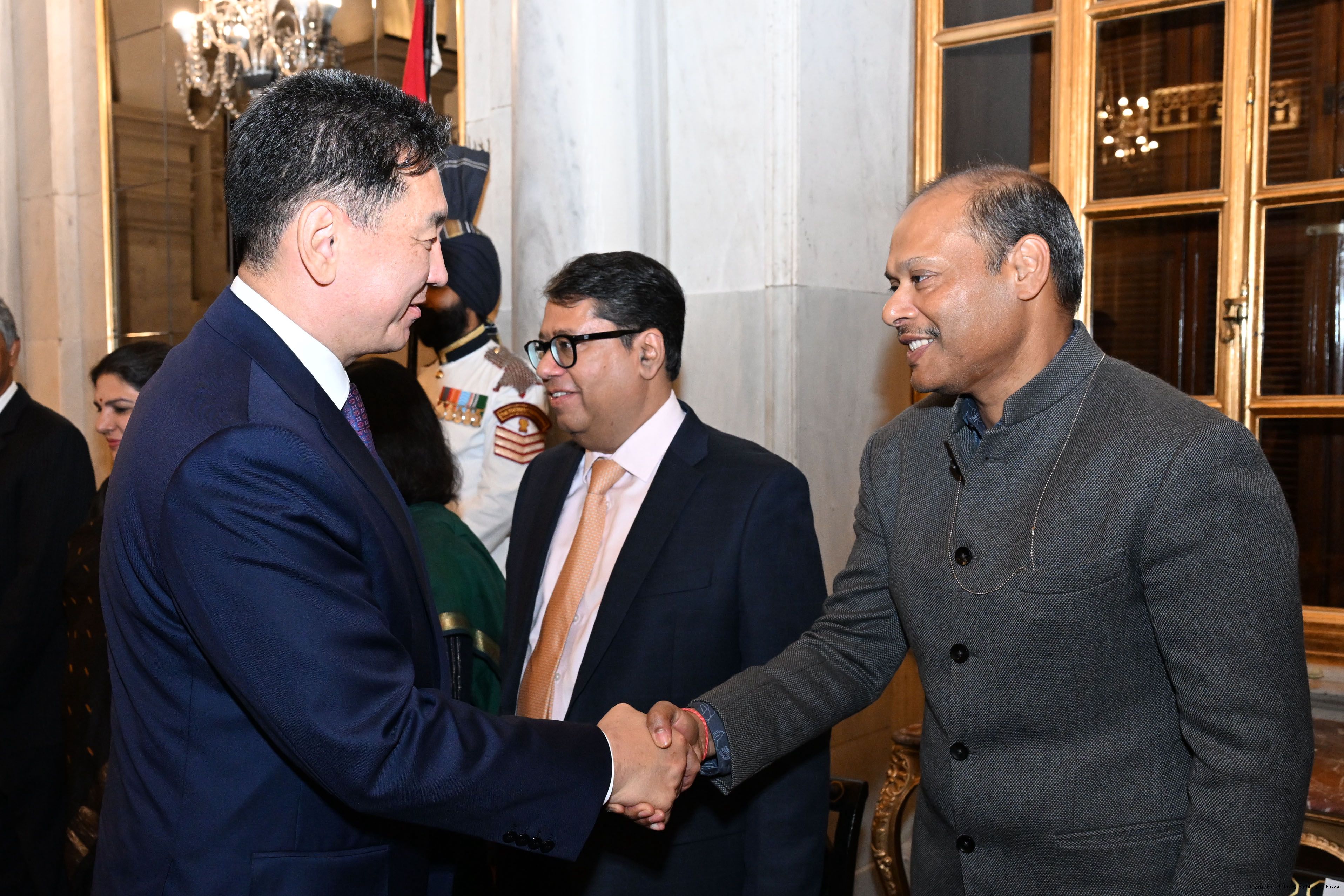 The President of India, Smt Droupadi Murmu hosted a banquet in the honour to H.E. Mr Khurelsukh Ukhnaa, President of Mongolia at Rashtrapati Bhavan on October 14, 2025.