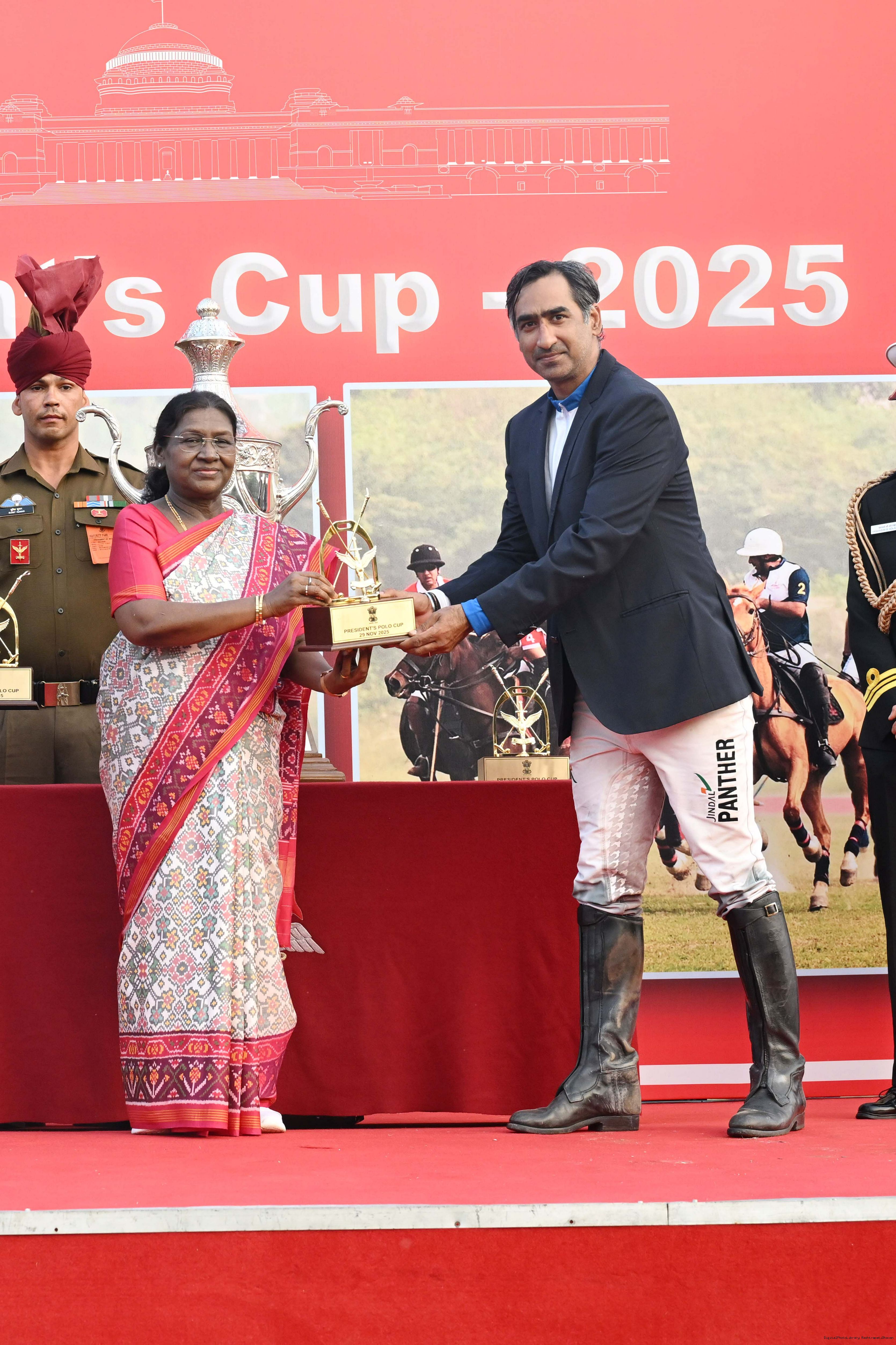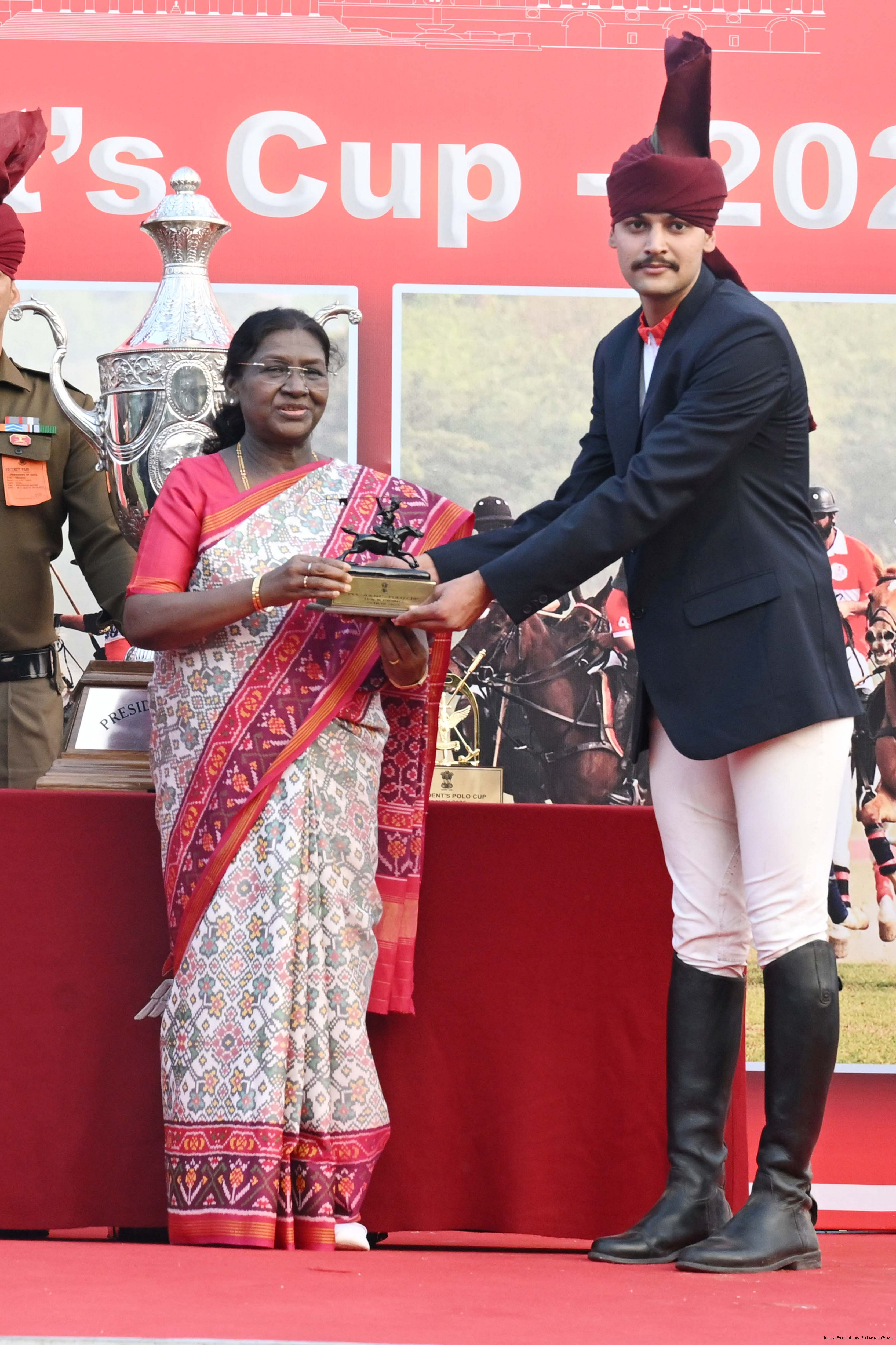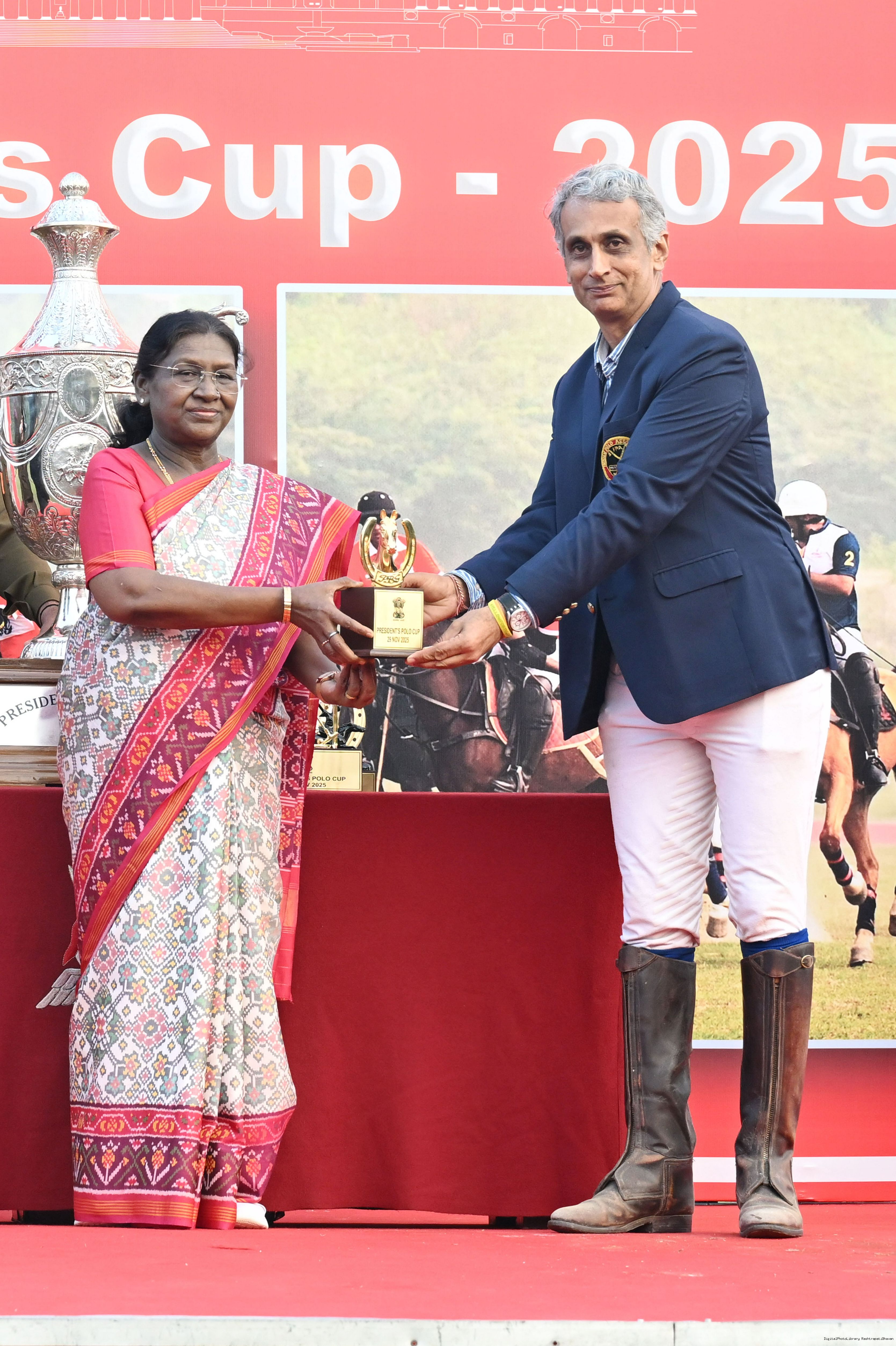 The President of India, Smt. Droupadi Murmu witnessed the President's Polo Cup Exhibition Match at PBG Parade Ground (Polo Field), in New Delhi on November 29, 2029.
