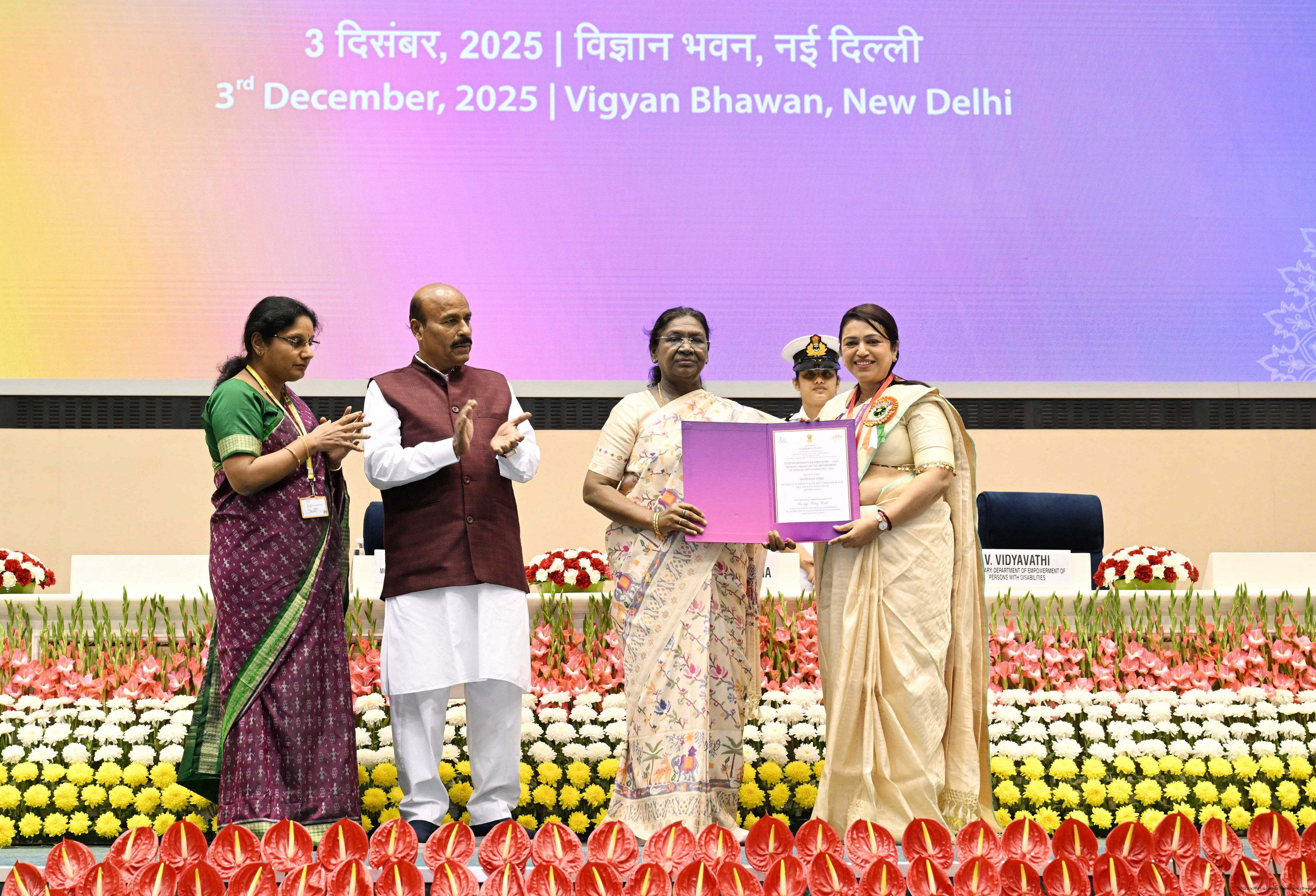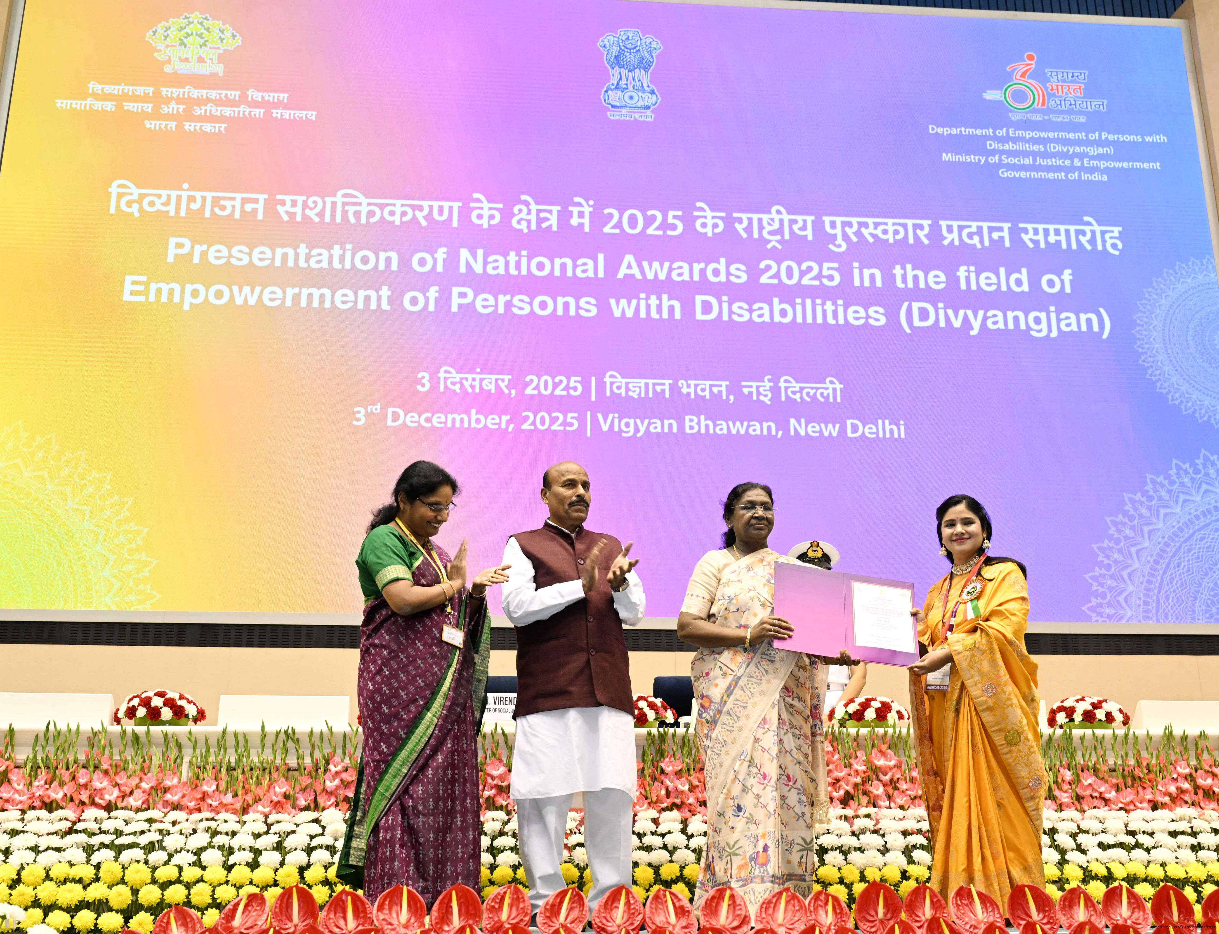 The President of India, Smt Droupadi Murmu, presented the National Awards for the Empowerment of Persons with Disabilities for the year 2025 in New Delhi on December 3, 2025 on the occasion of the International Day of Persons with Disabilities.