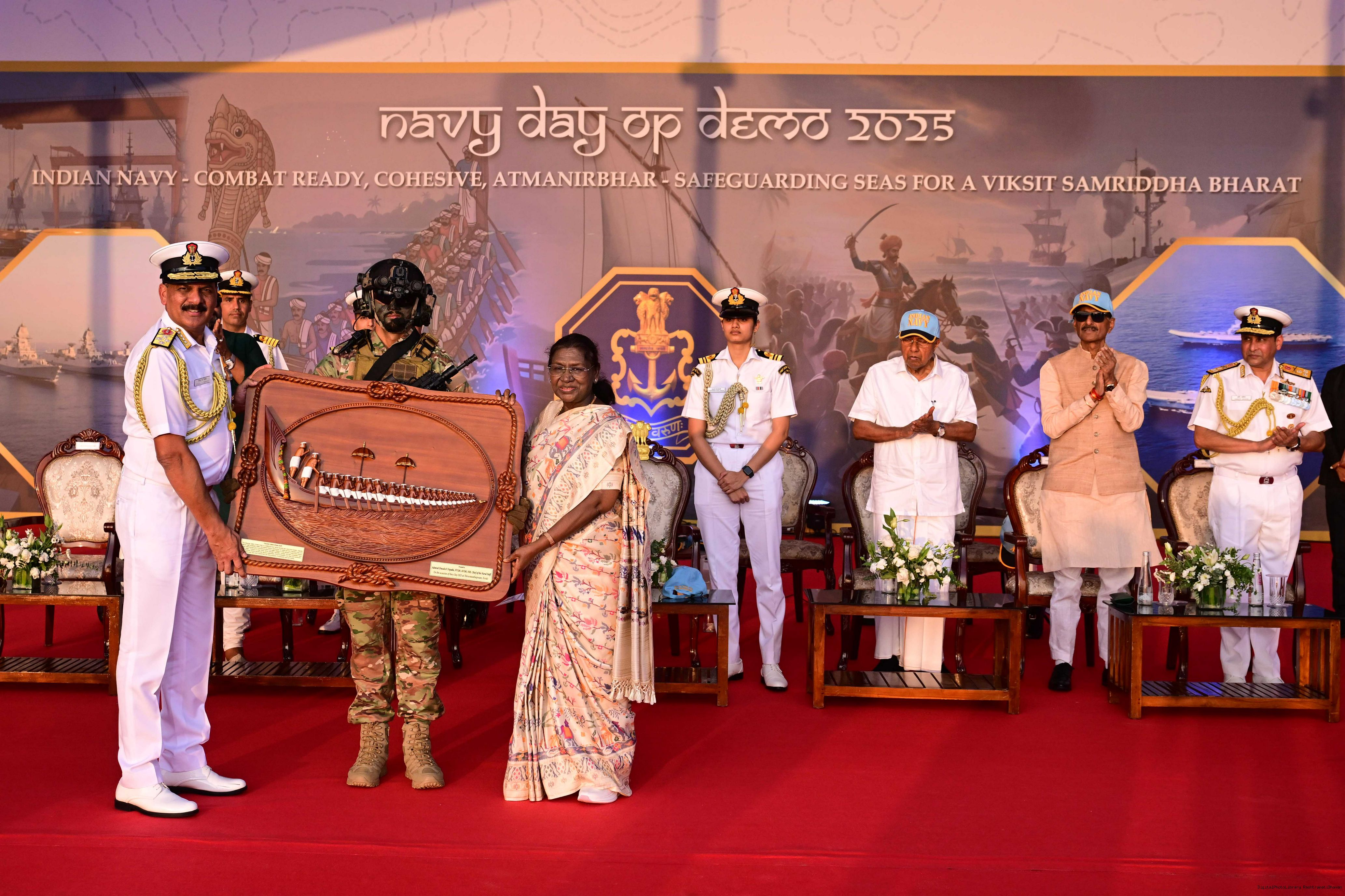 The President of India, Smt Droupadi Murmu, graced the Navy Day-2025 celebrations and witnessed the operational demonstration by the Indian Navy at Thiruvananthapuram, Kerala, on December 3, 2025.