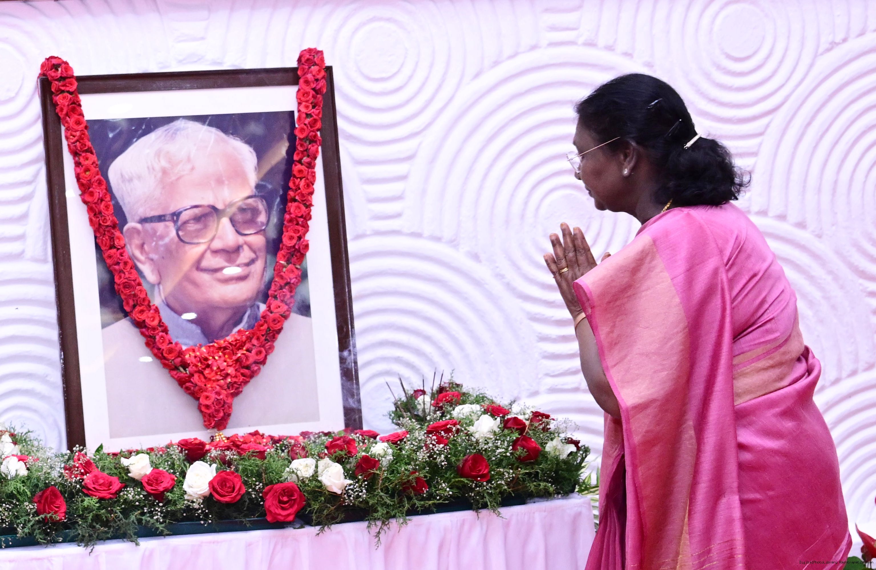 The President of India, Smt Droupadi Murmu paid floral tributes to Shri R. Venkataraman, former President of India, on his birth anniversary at Lok Bhavan, Thiruvananthapuram on December 4, 2025.