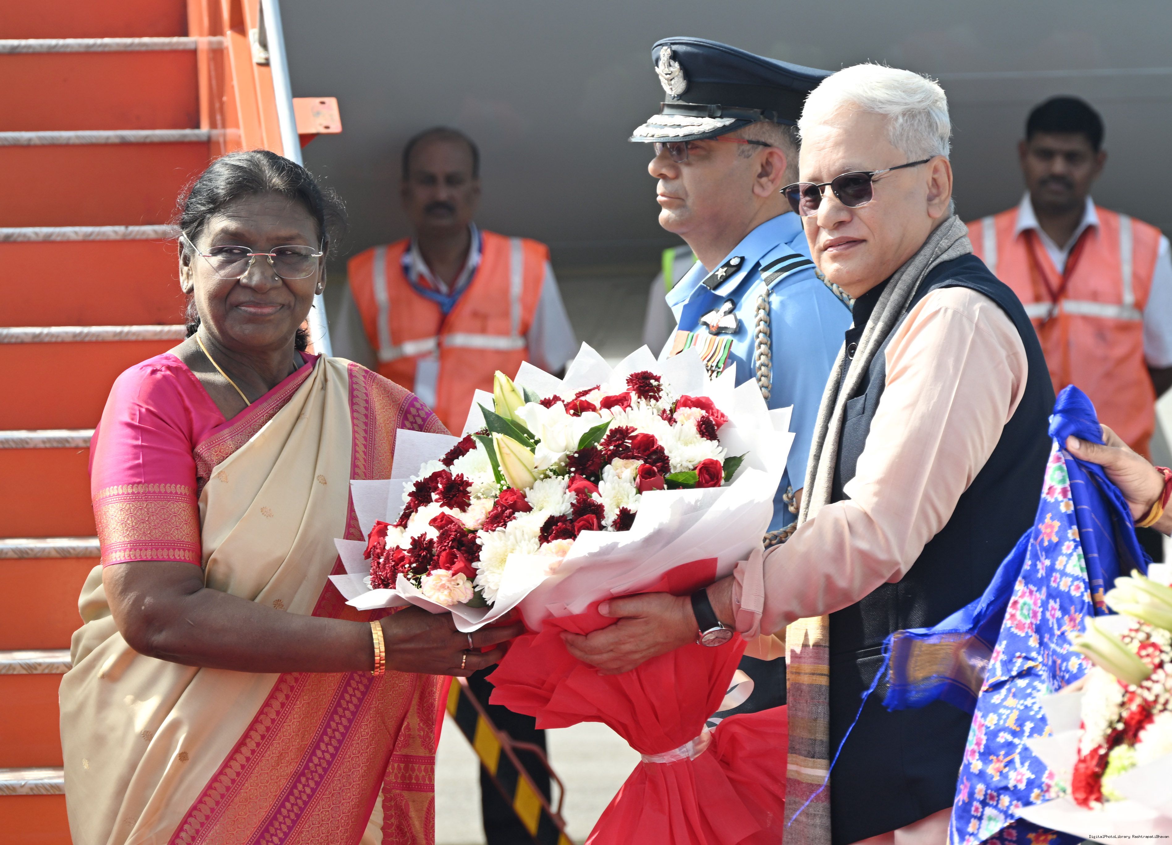 The Governor of Chhattisgarh, Shri Ramen Deka and Chief Minister, Shri Vishnu Deo Sai received the President of India, Smt. Droupadi Murmu on her arrival at Ambikapur, Chhattisgarh on November 20, 2025.