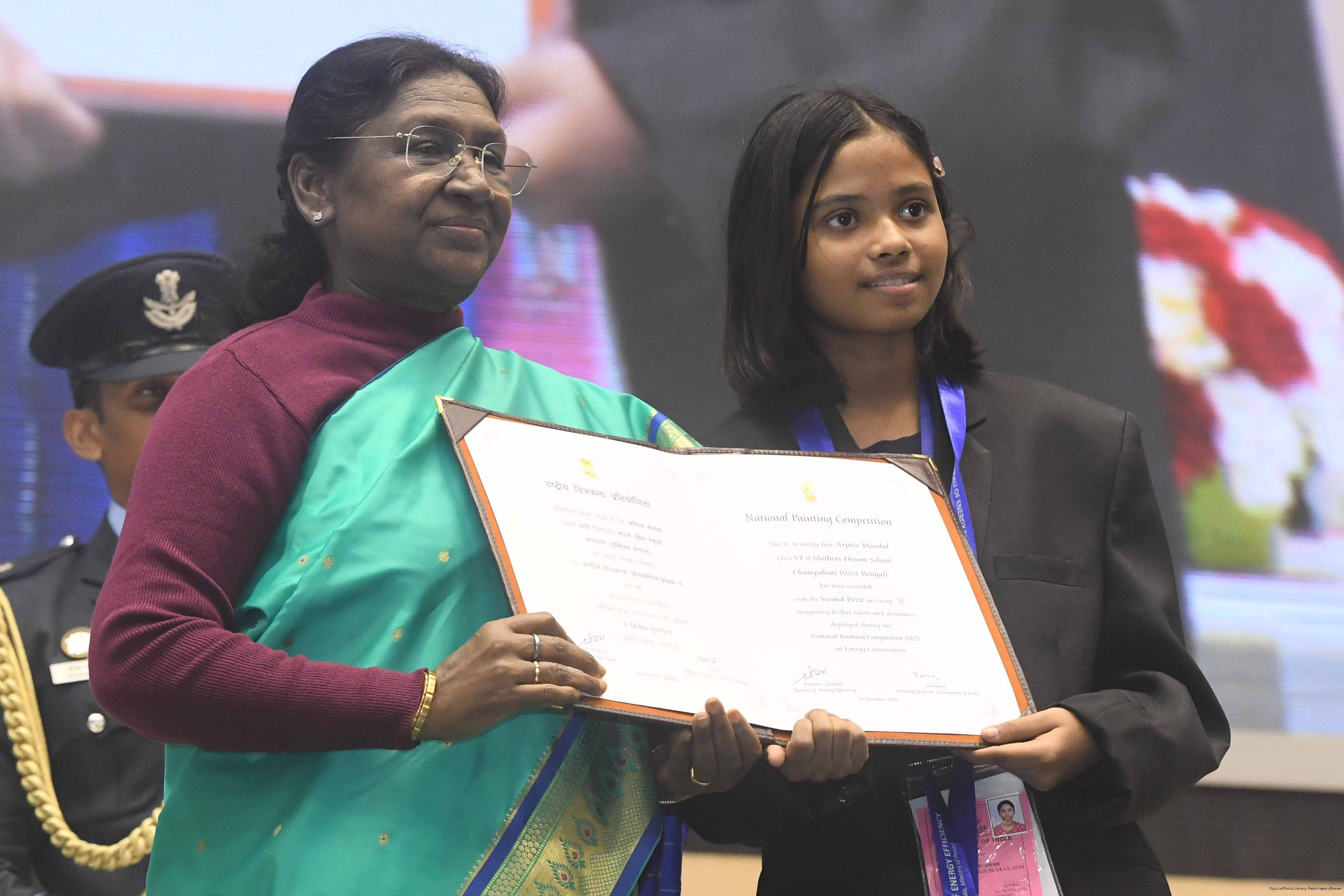 The President of India, Smt Droupadi Murmu, presented the National Energy Conservation Awards 2025 and National Painting Competition on Energy Conservation prizes in New Delhi on December 14, 2025.