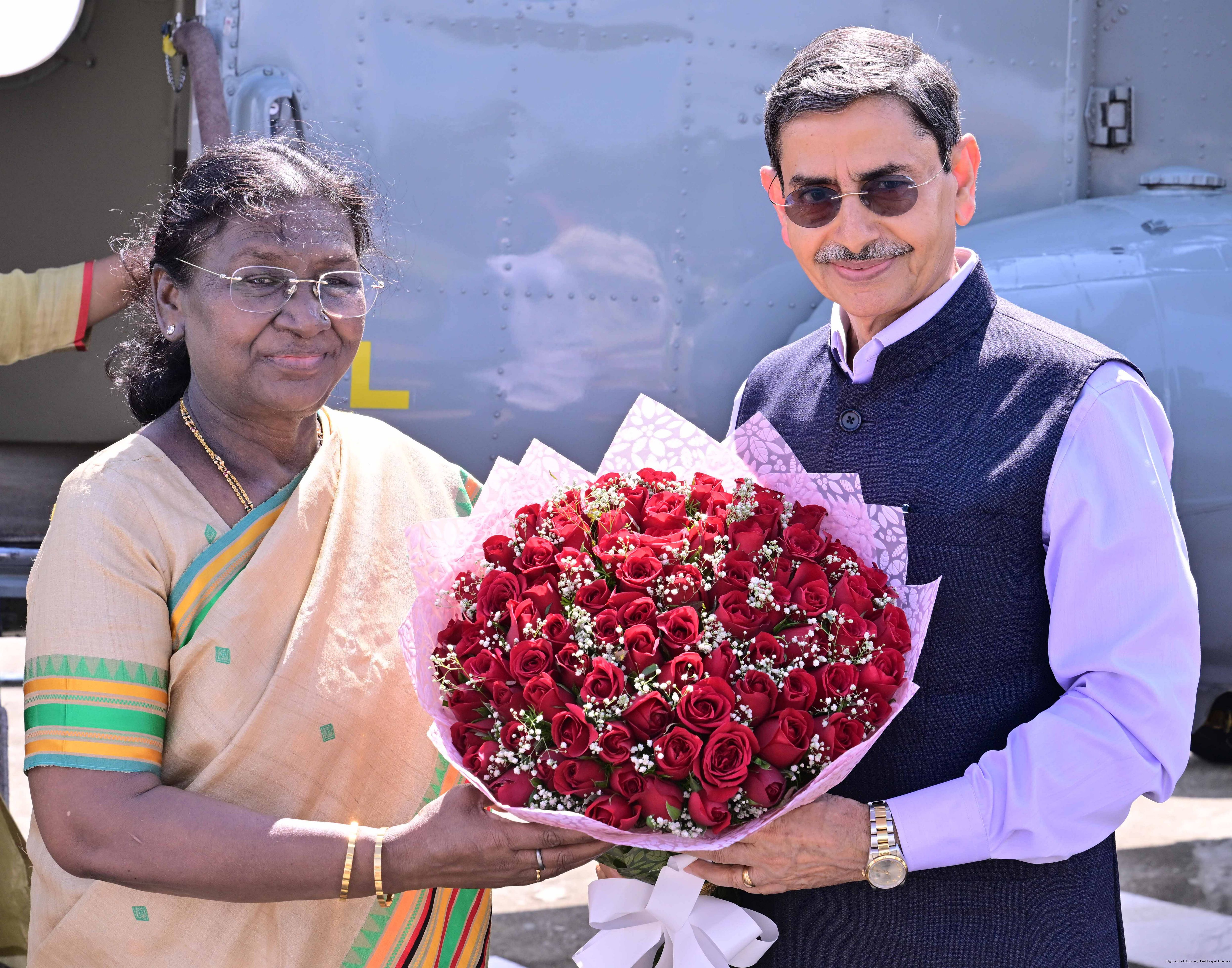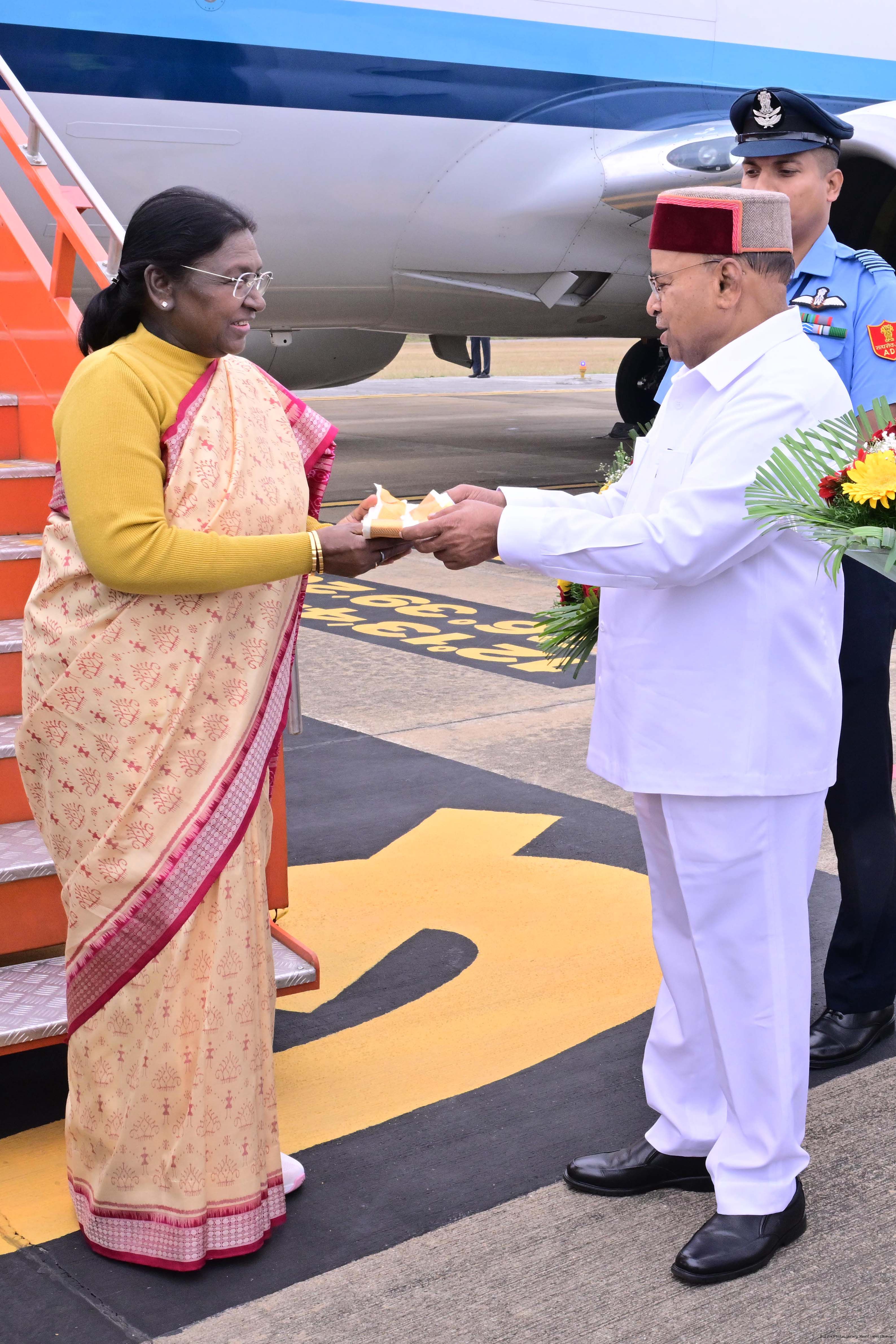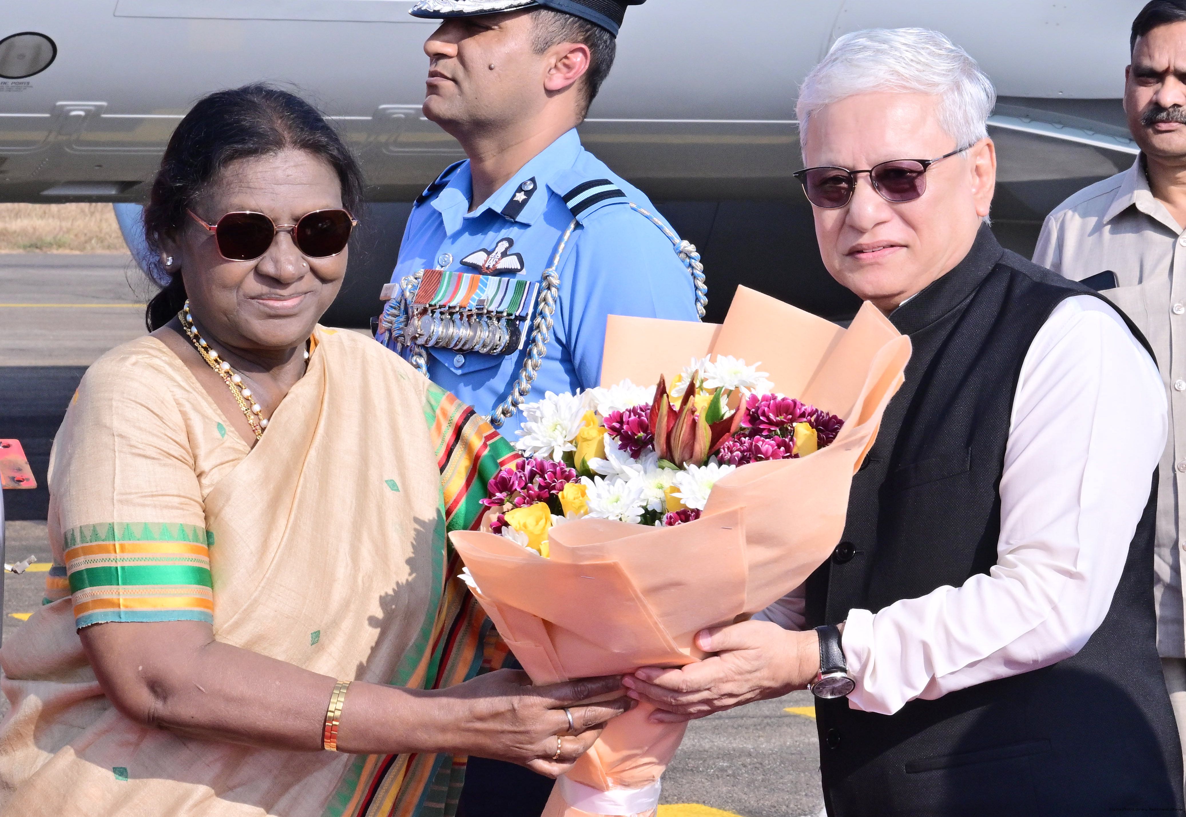 The Governor of Telangana, Shri Jishnu Dev Varma and Deputy Chief Minister Shri Bhatti Vikramarka Mallu received the President of India, Smt. Droupadi Murmu on her arrival at Hyderabad on December 17, 2025.