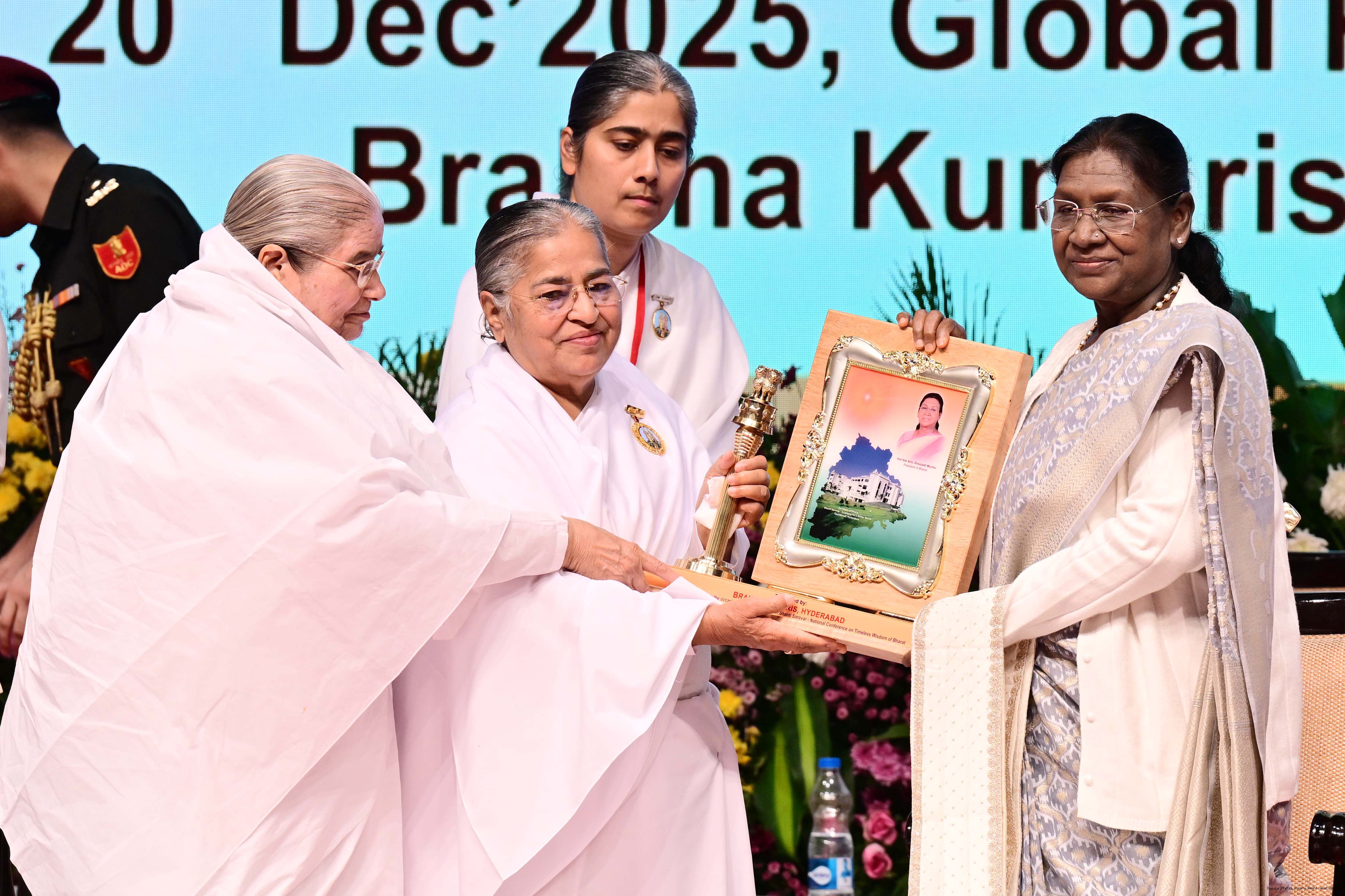 The President of India, Smt Droupadi Murmu, addressed the conference on ‘Timeless Wisdom of Bharat: Pathways of Peace and Progress’, being organised by Brahma Kumaris Shanti Sarovar to mark its 21st Anniversary at Hyderabad December 20, 2025.