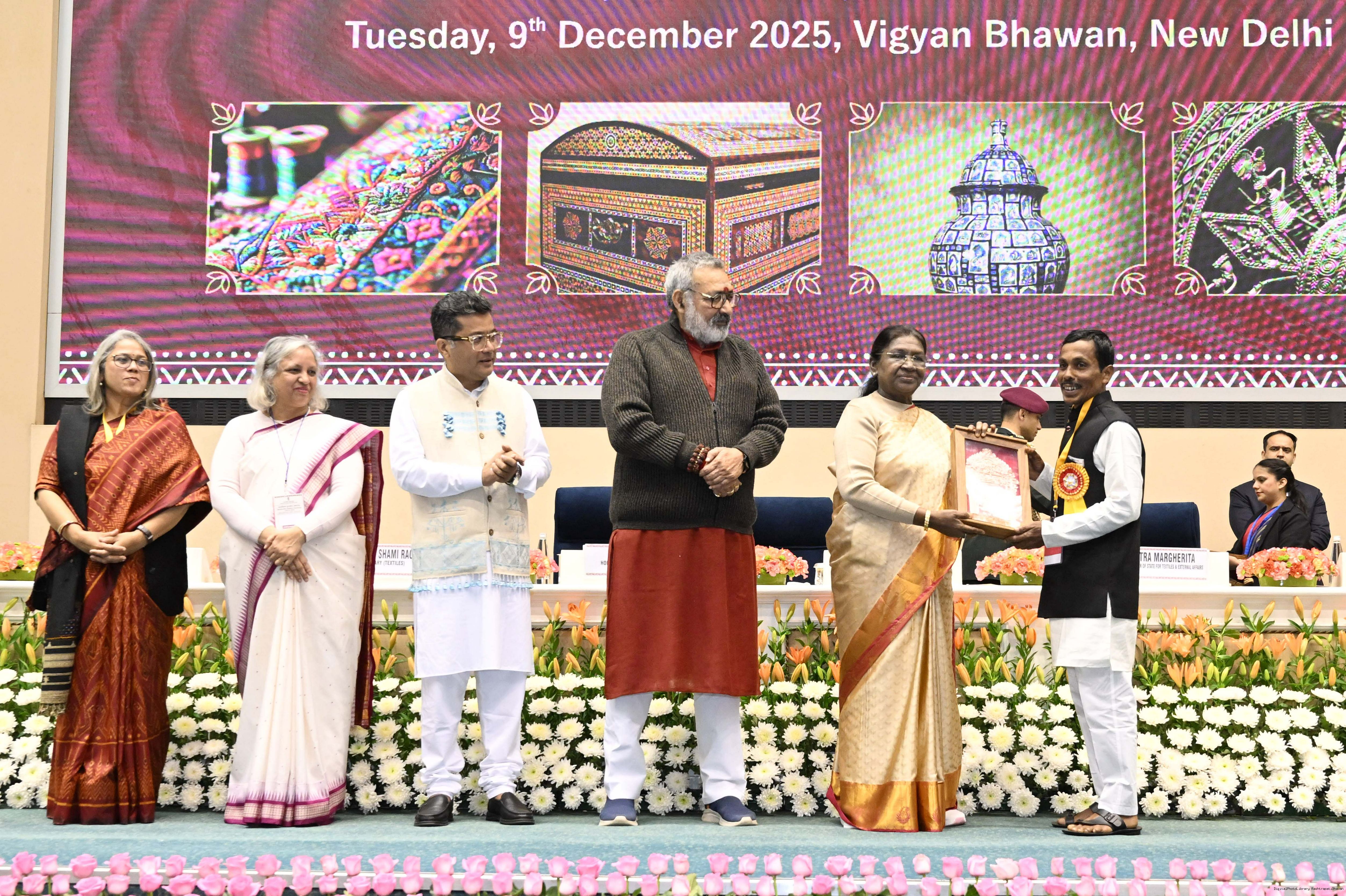 The President of India, Smt Droupadi Murmu, presented National Handicrafts Awards for the years 2023 and 2024 in New Delhi on December 9, 2025.