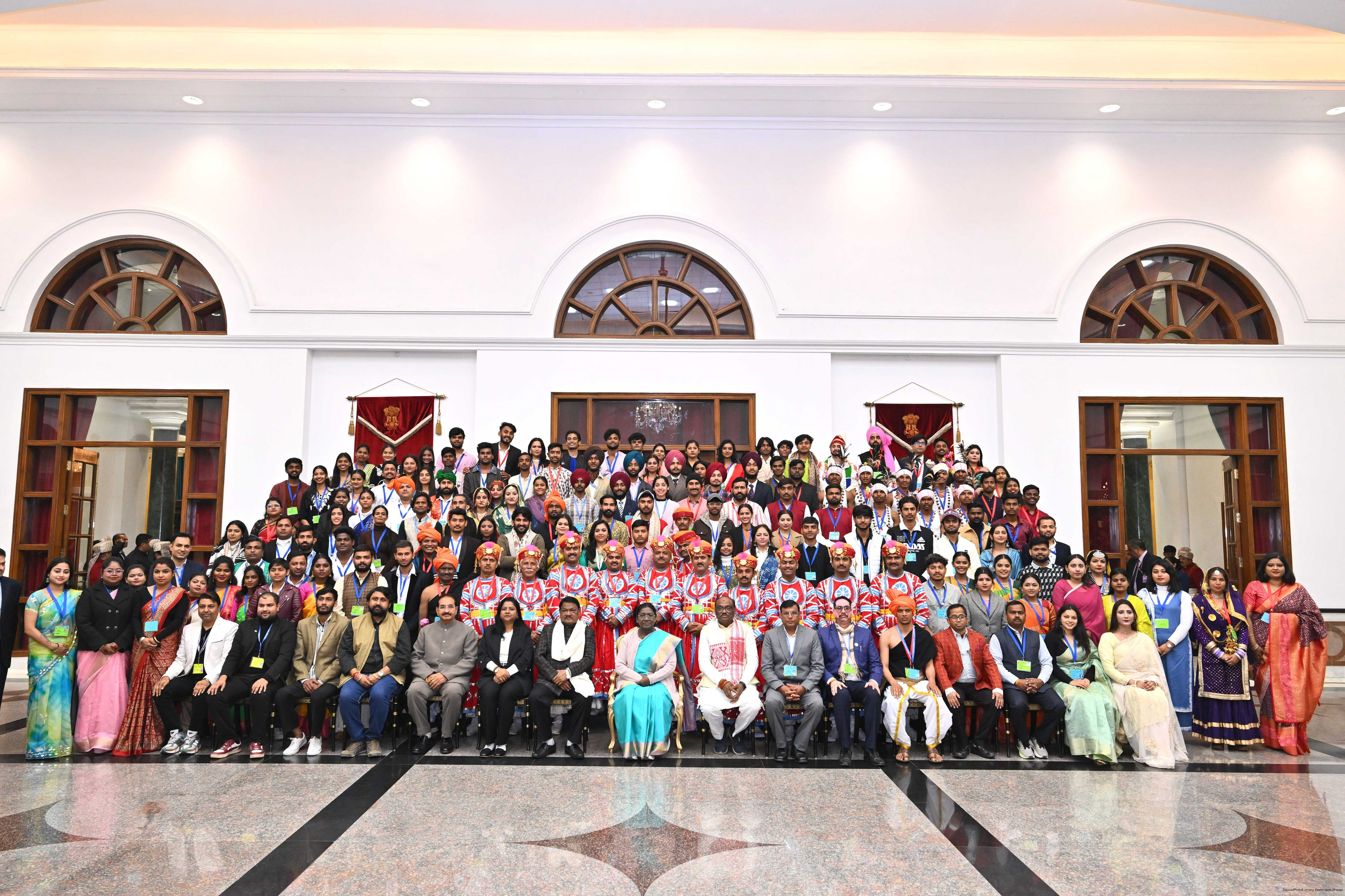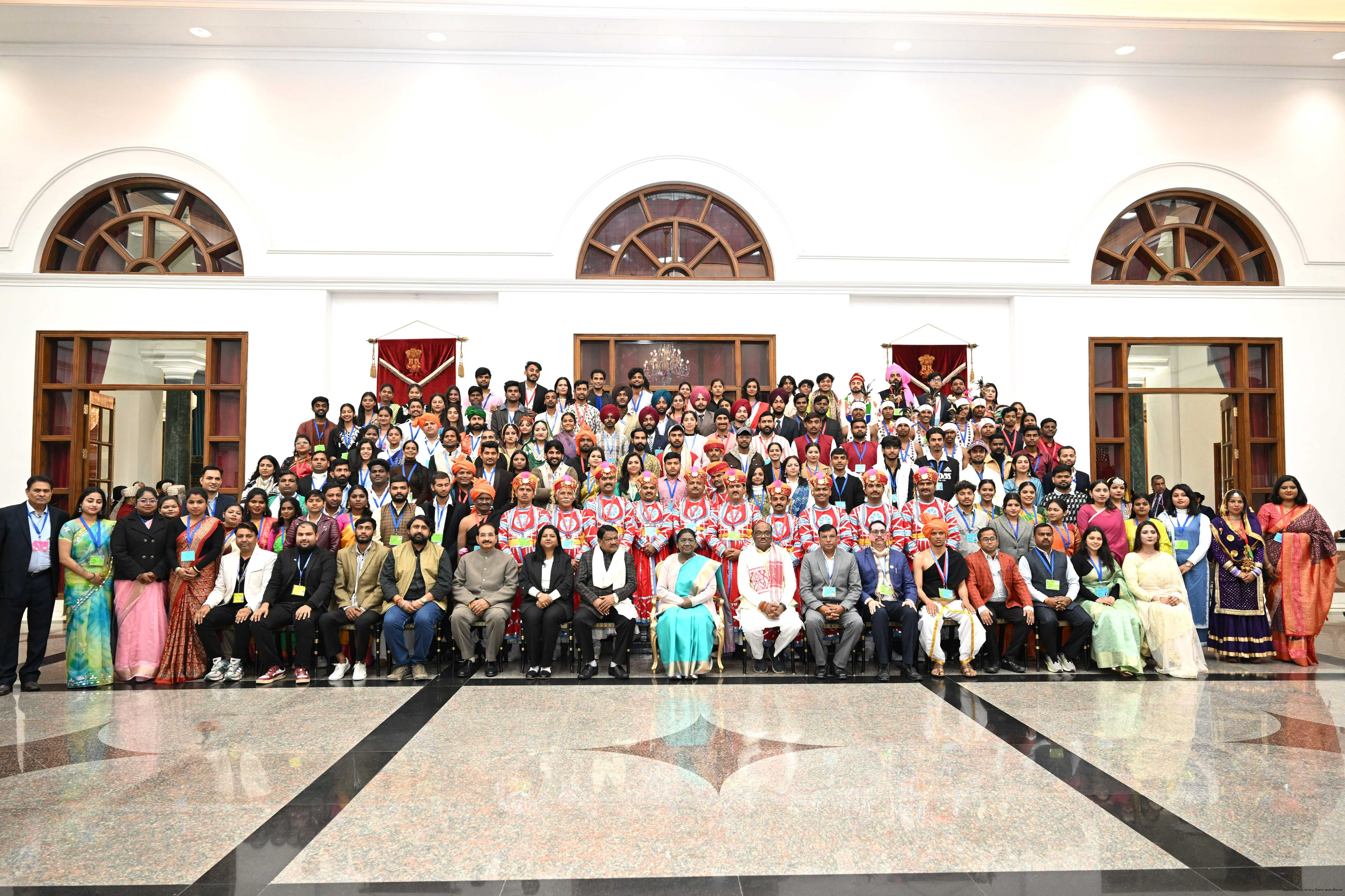 The President of India, Smt Droupadi Murmu met guests from tribal communities, tableaux artists and tractor drivers, NSS volunteers and NCC cadets, officials and other participants of the Republic Day Parade 2026 at Rashtrapati Bhavan on January 27, 2026.
