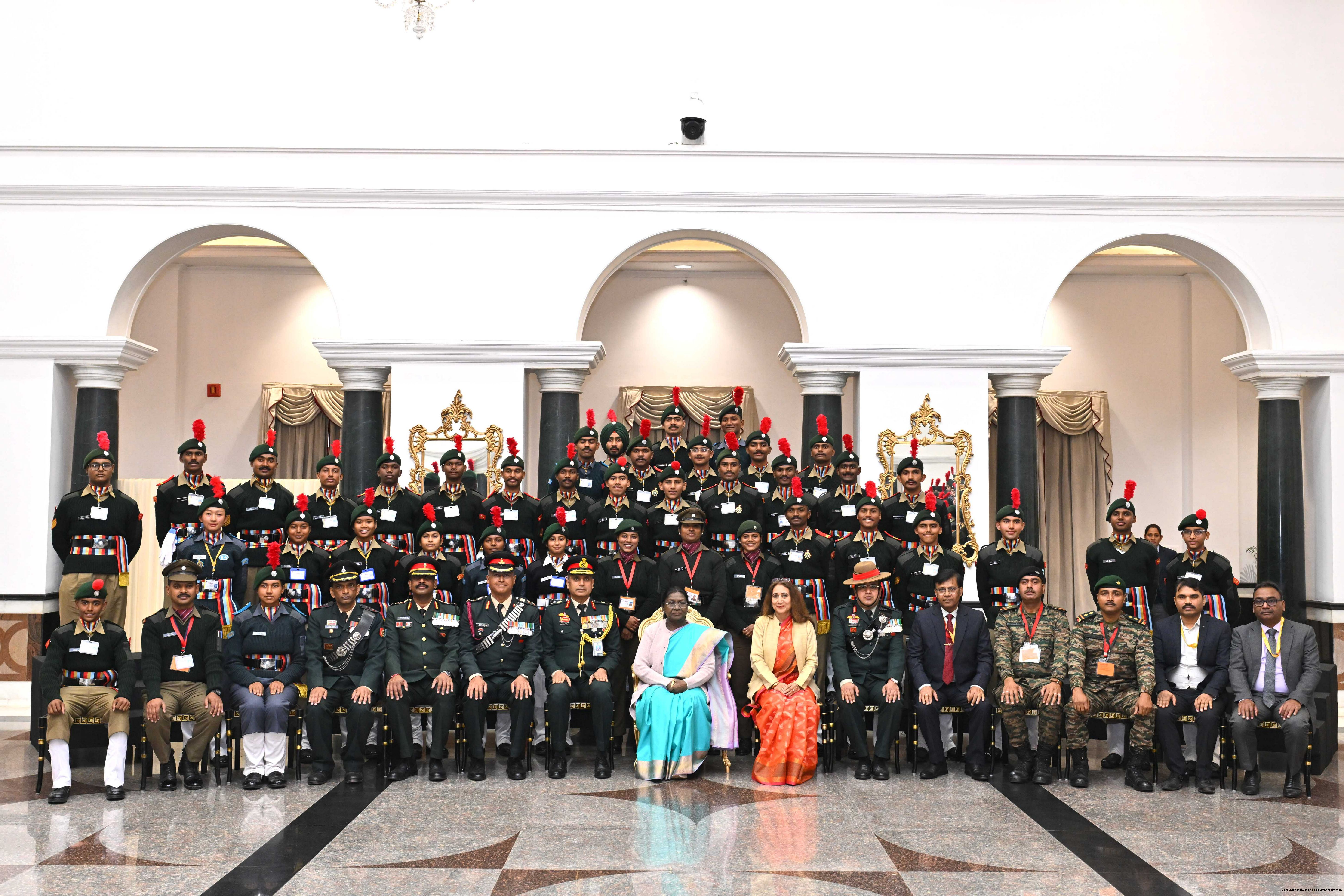 The President met guests from tribal communities, tableaux artists and tractor drivers, NSS volunteers and NCC cadets on January 27, 2026.