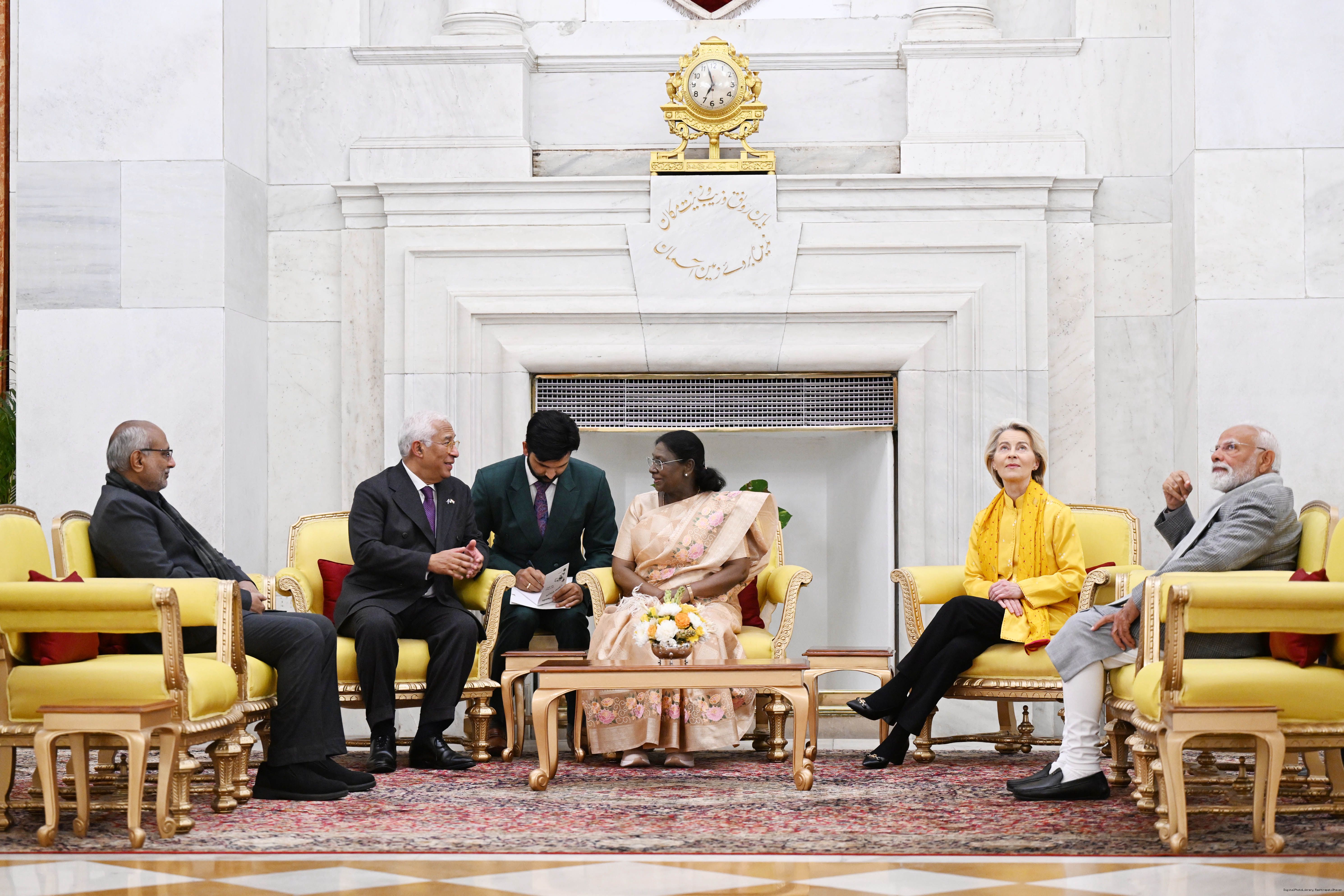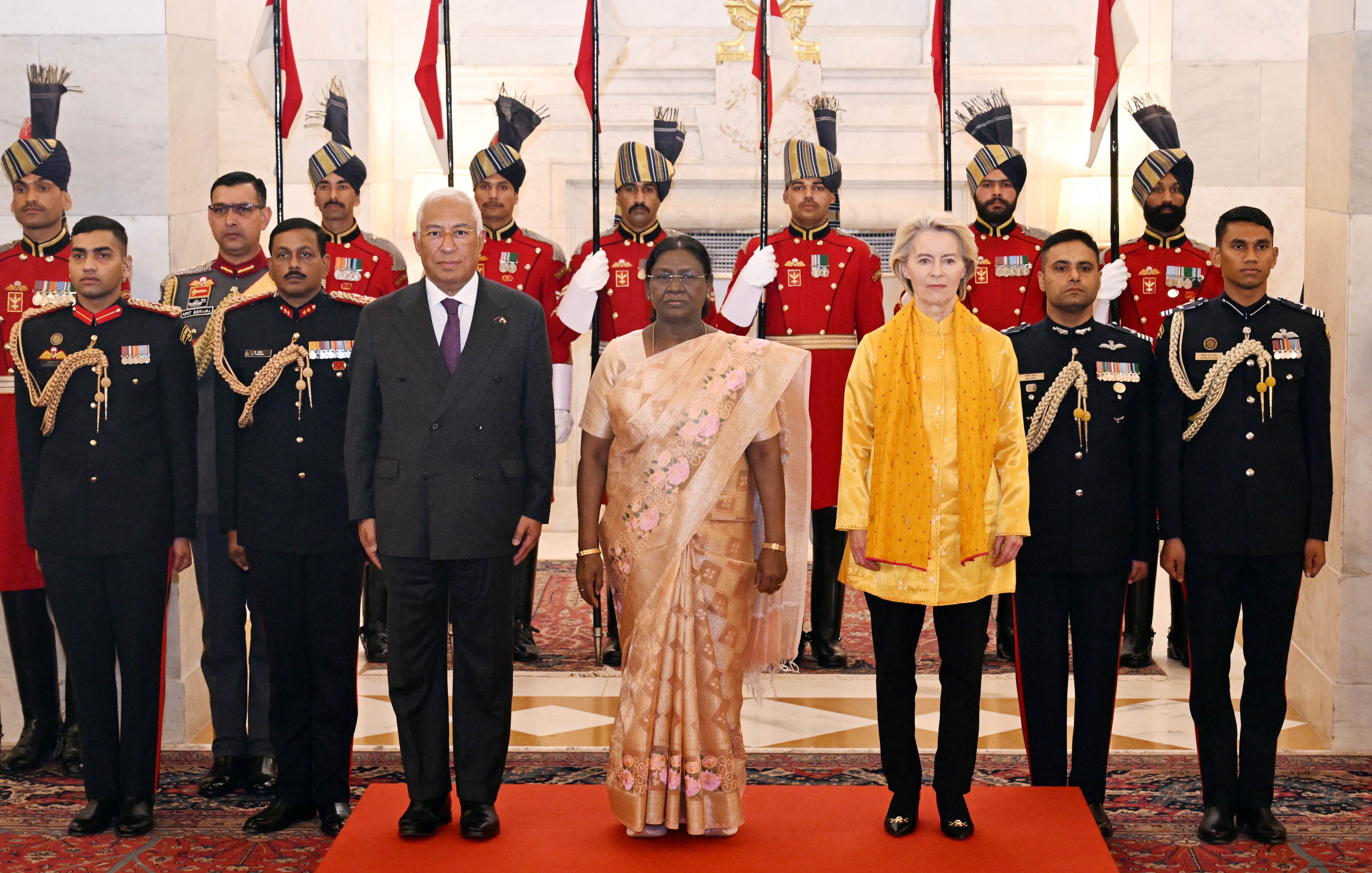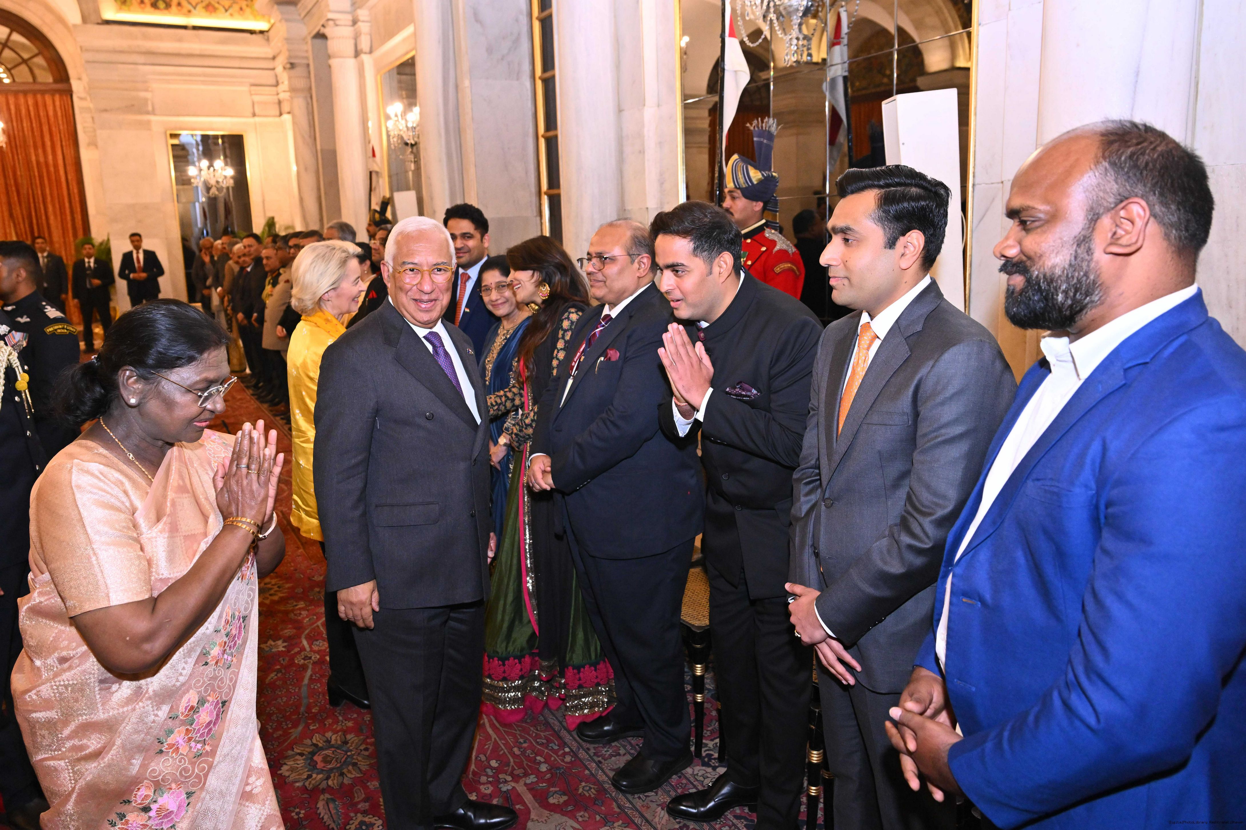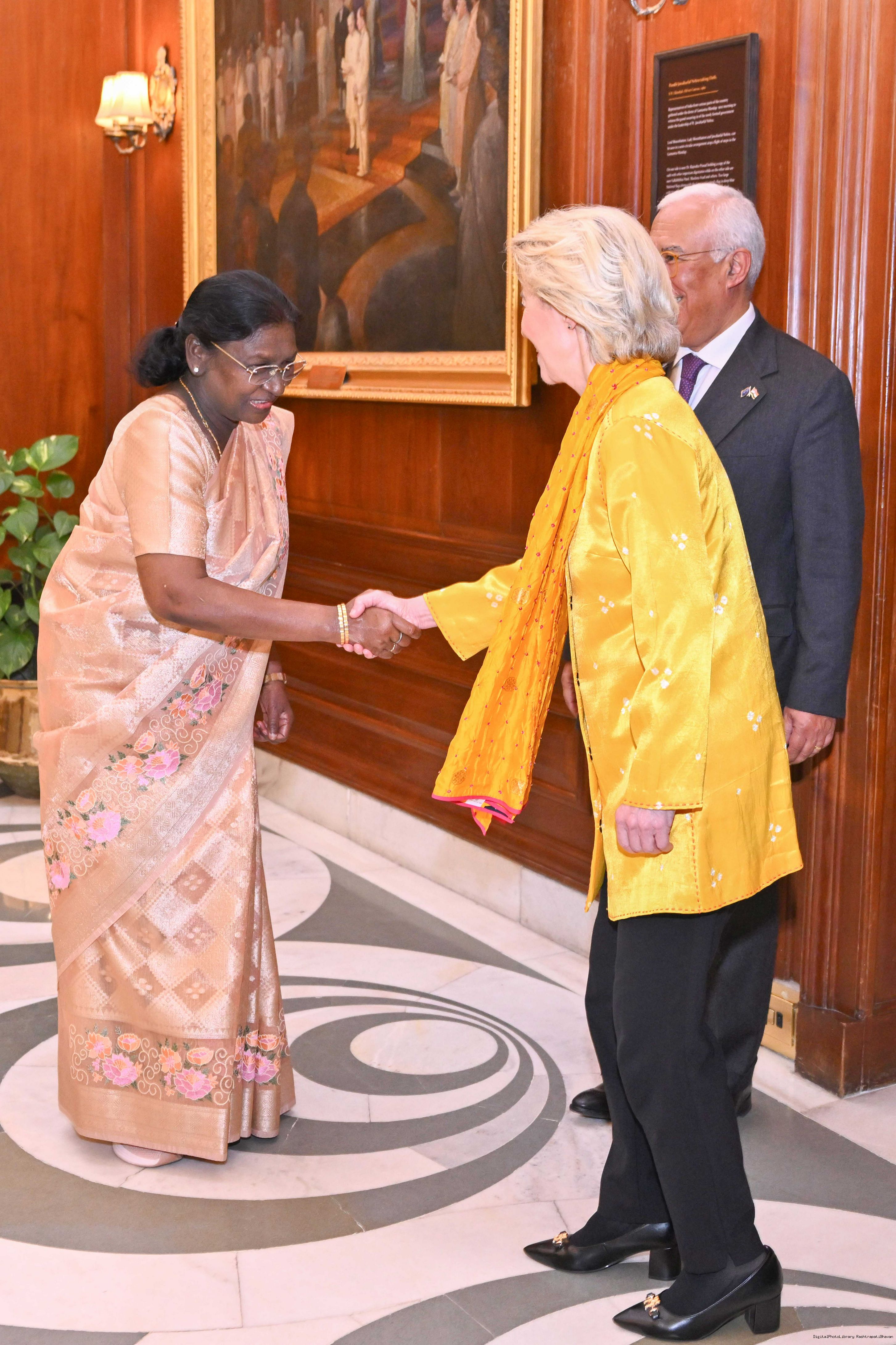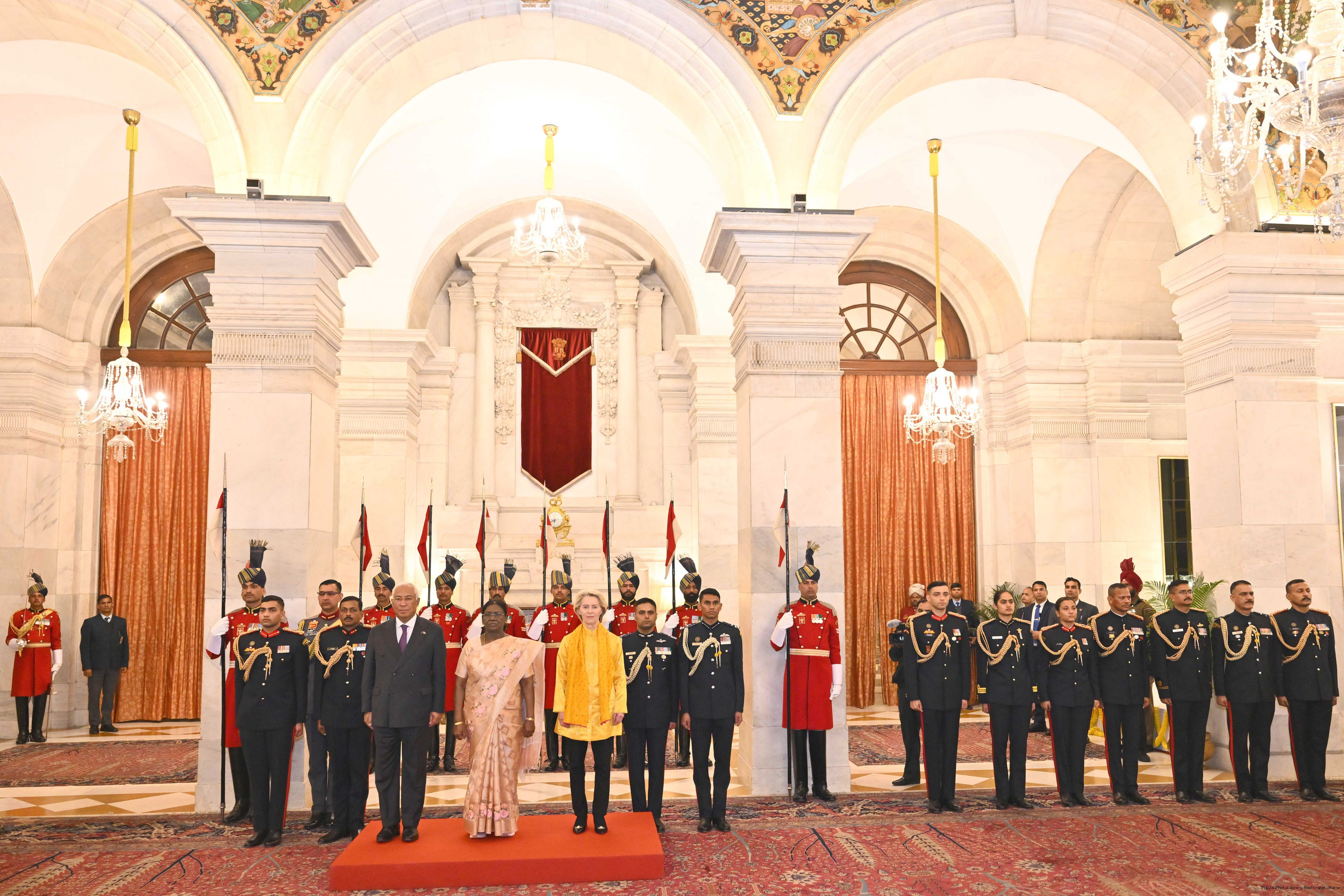 The President of India Smt. Droupadi Murmu received the Chief Guests of the 77th Republic Day Celebrations, H. E. António Costa, President of the European Council and H. E. Ms Ursula von der Leyen, President of the European Commission at Rashtrapati Bhavan on January 27, 2026.