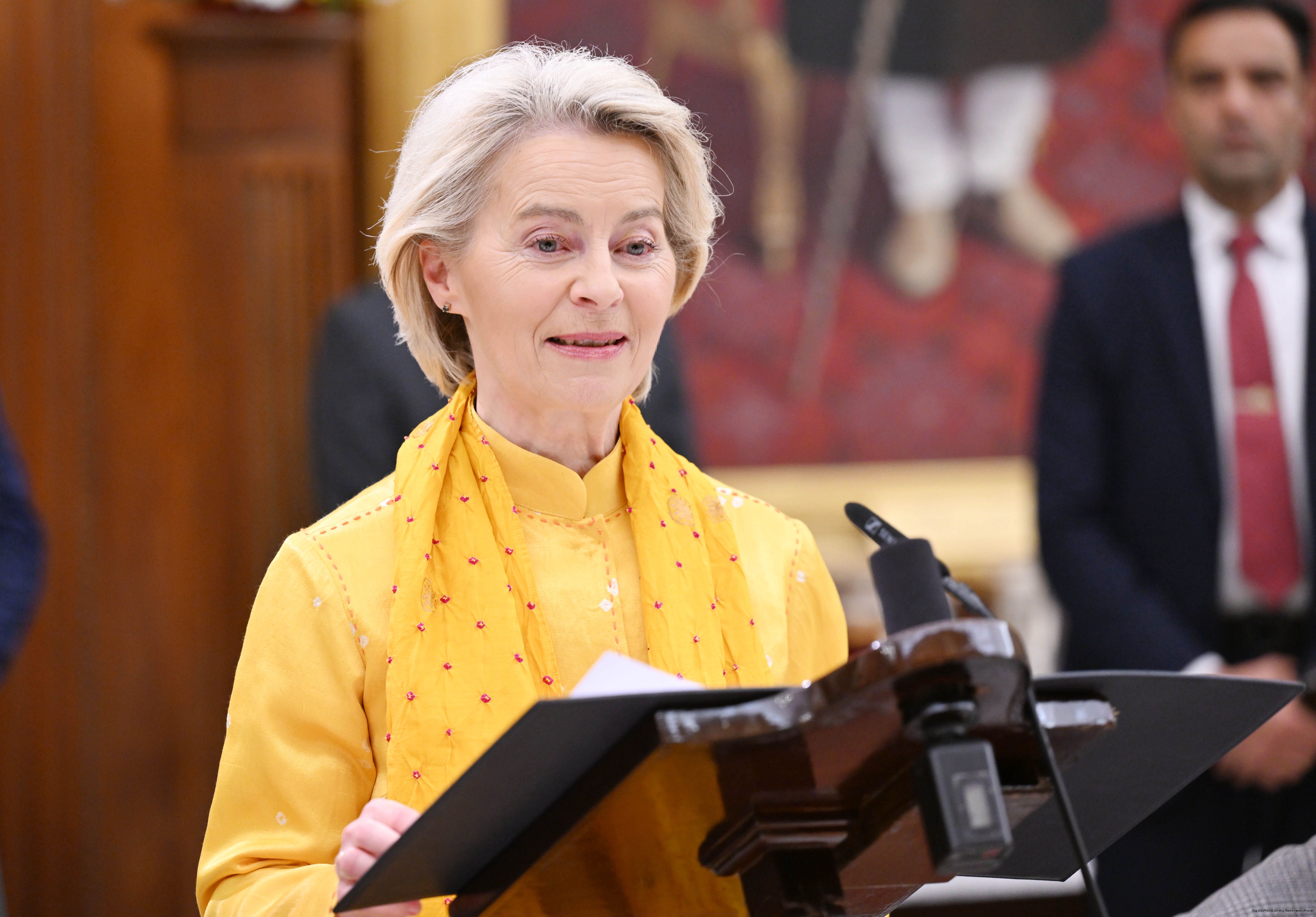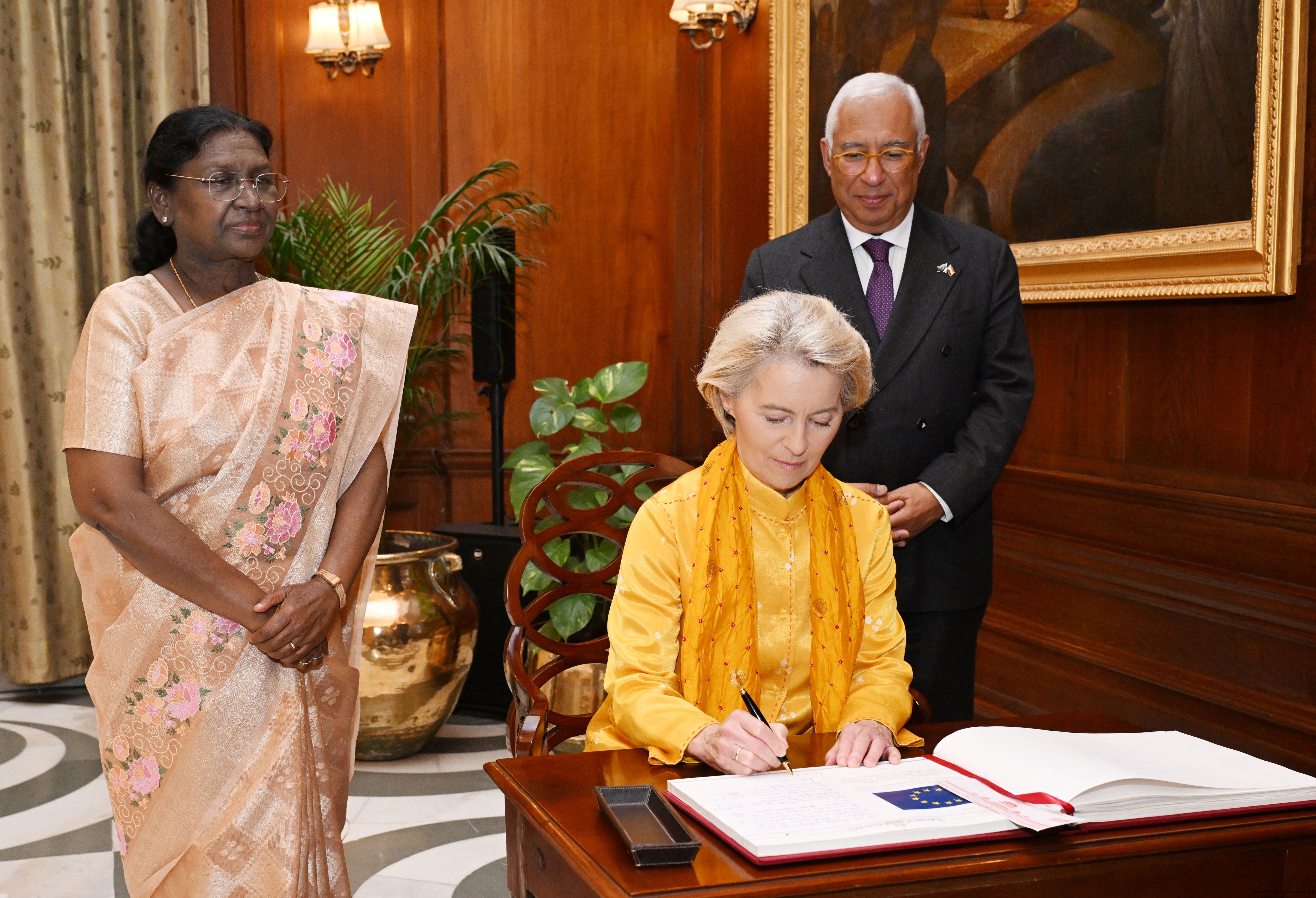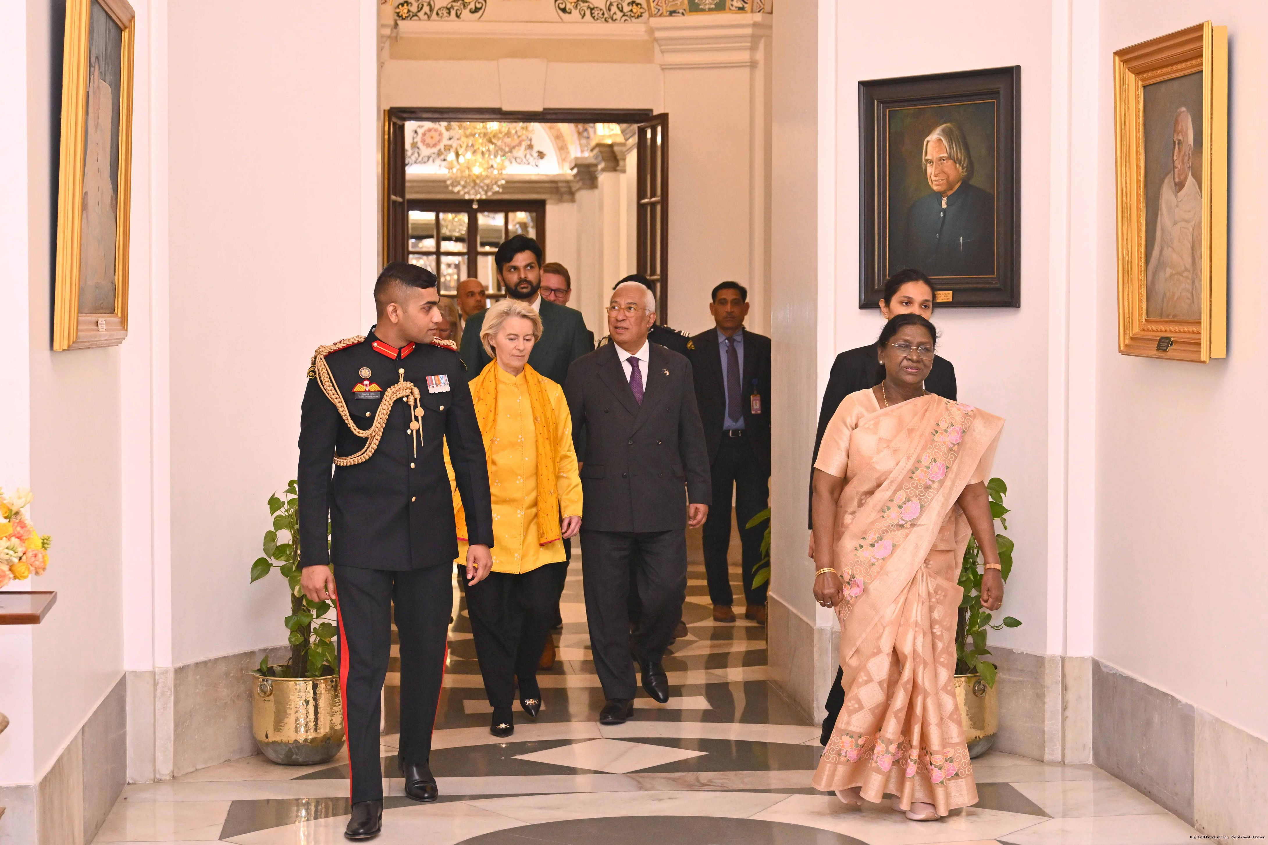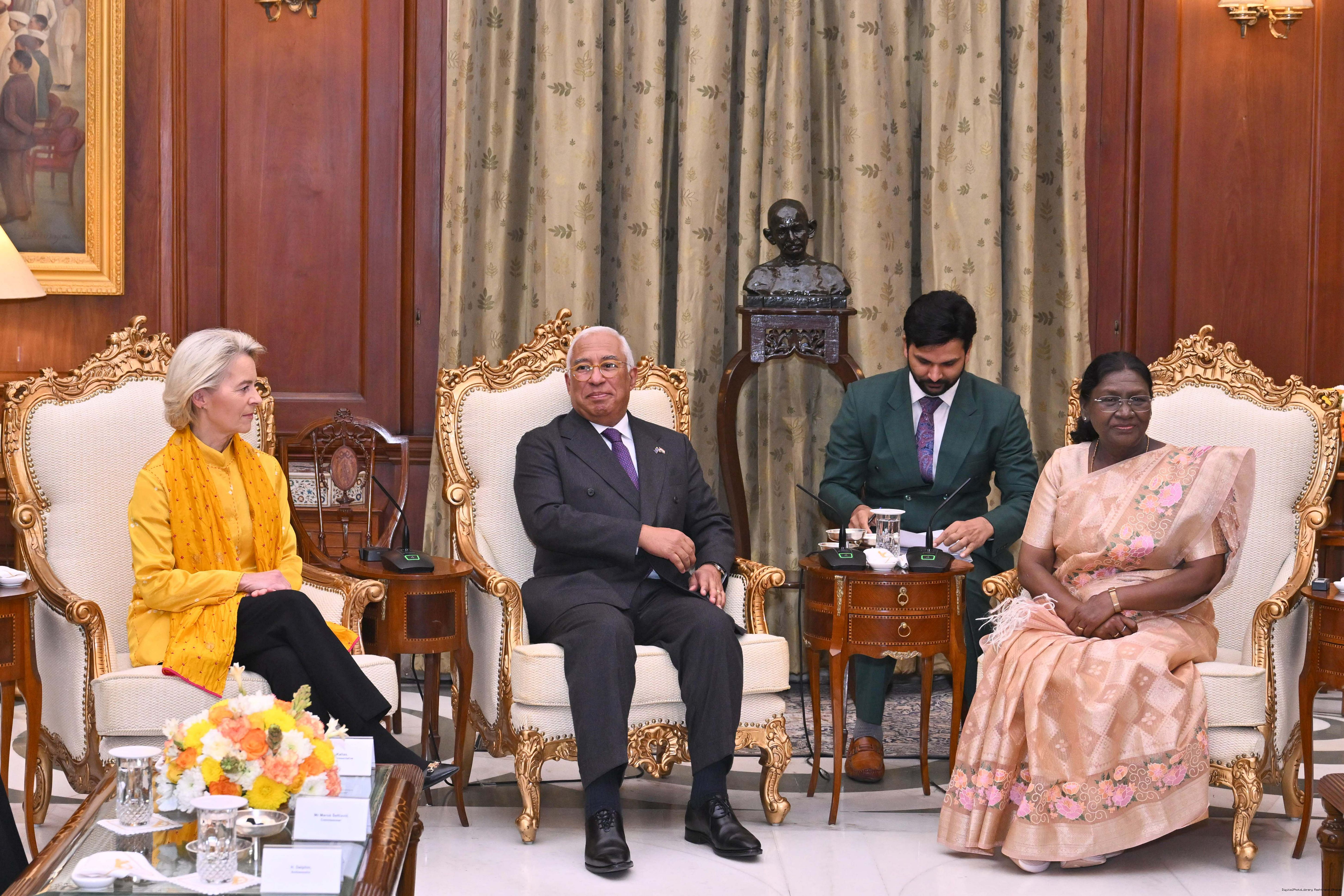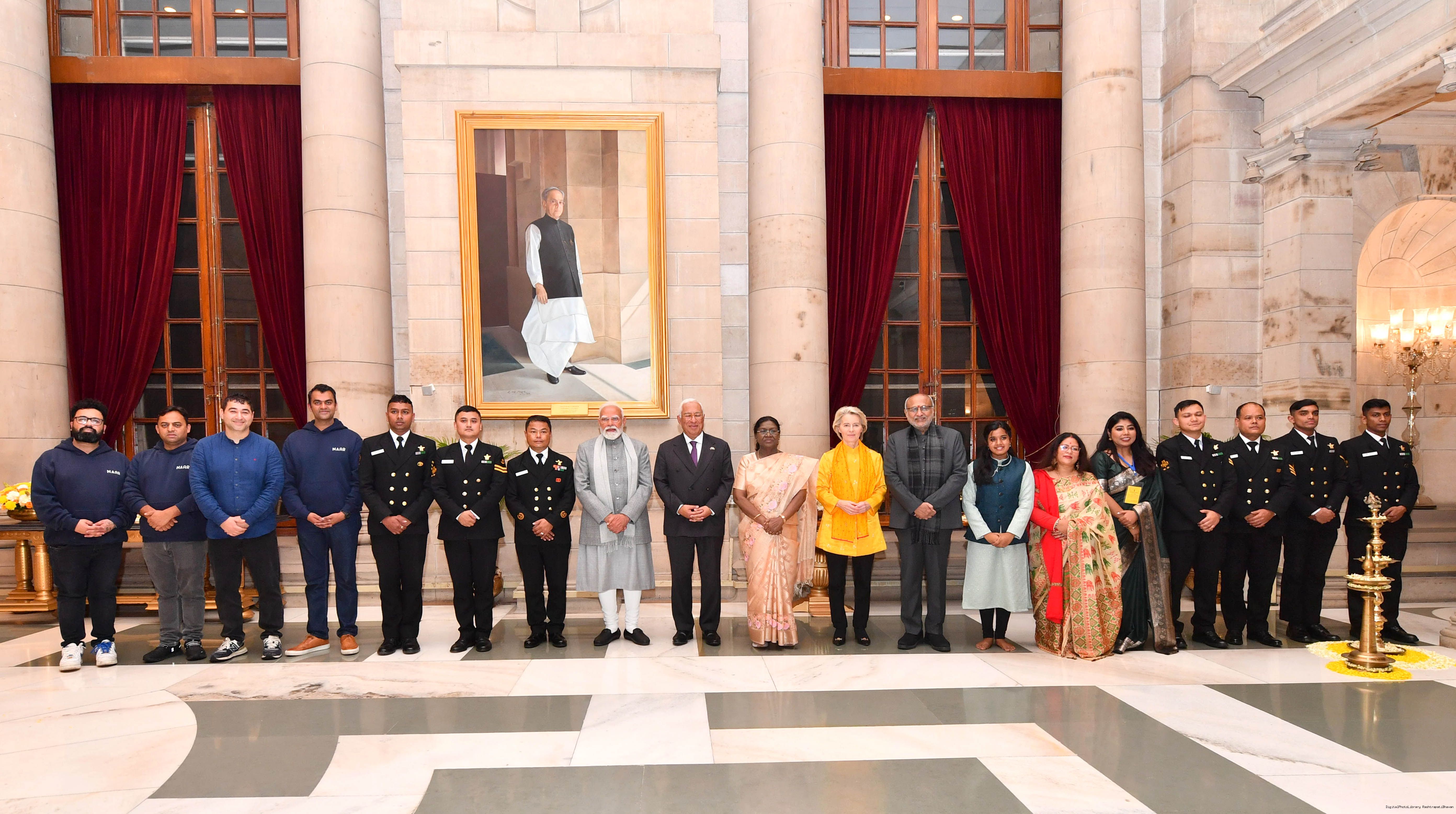The President of India Smt. Droupadi Murmu received the Chief Guests of the 77th Republic Day Celebrations, H. E. António Costa, President of the European Council and H. E. Ms Ursula von der Leyen, President of the European Commission at Rashtrapati Bhavan on January 27, 2026.