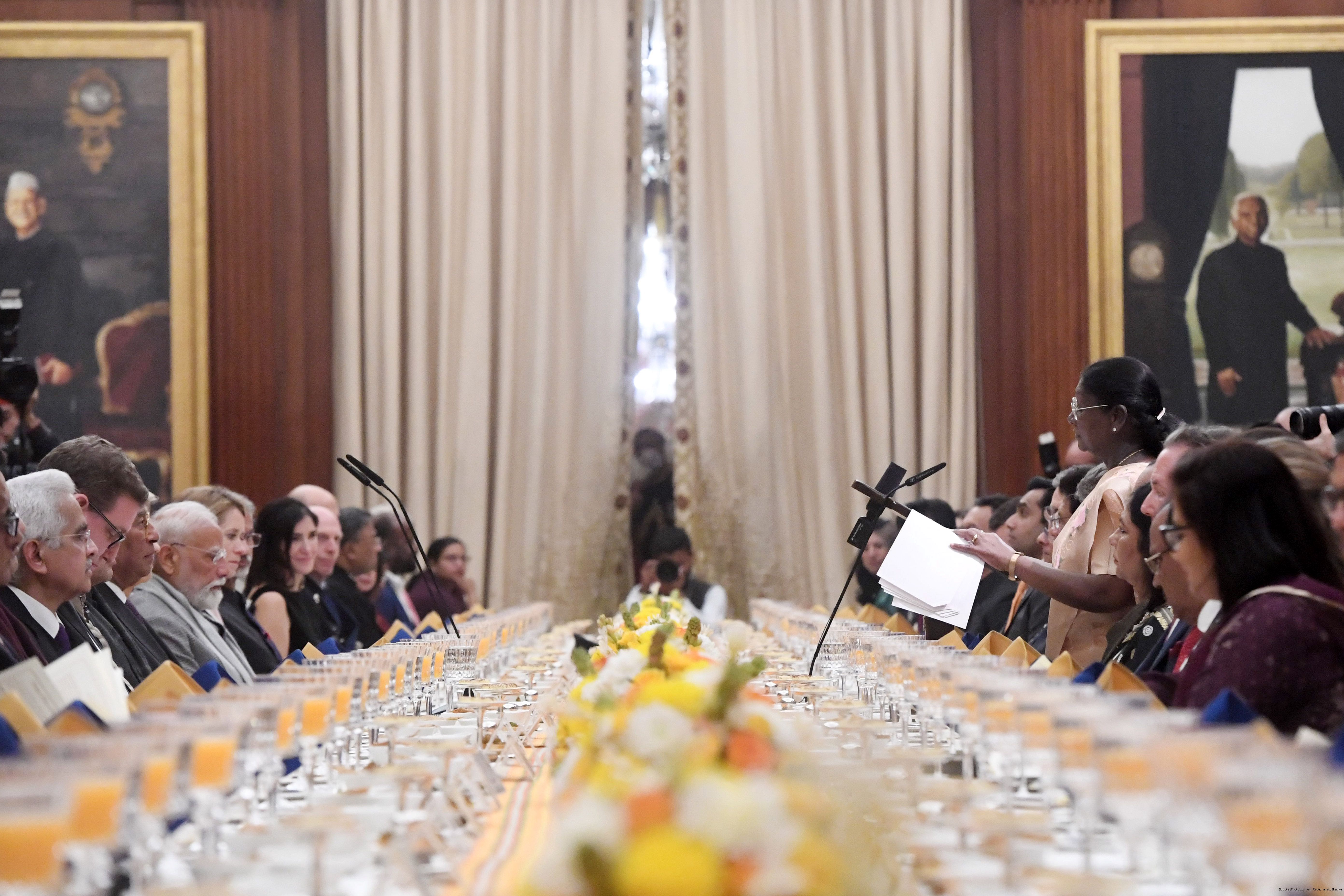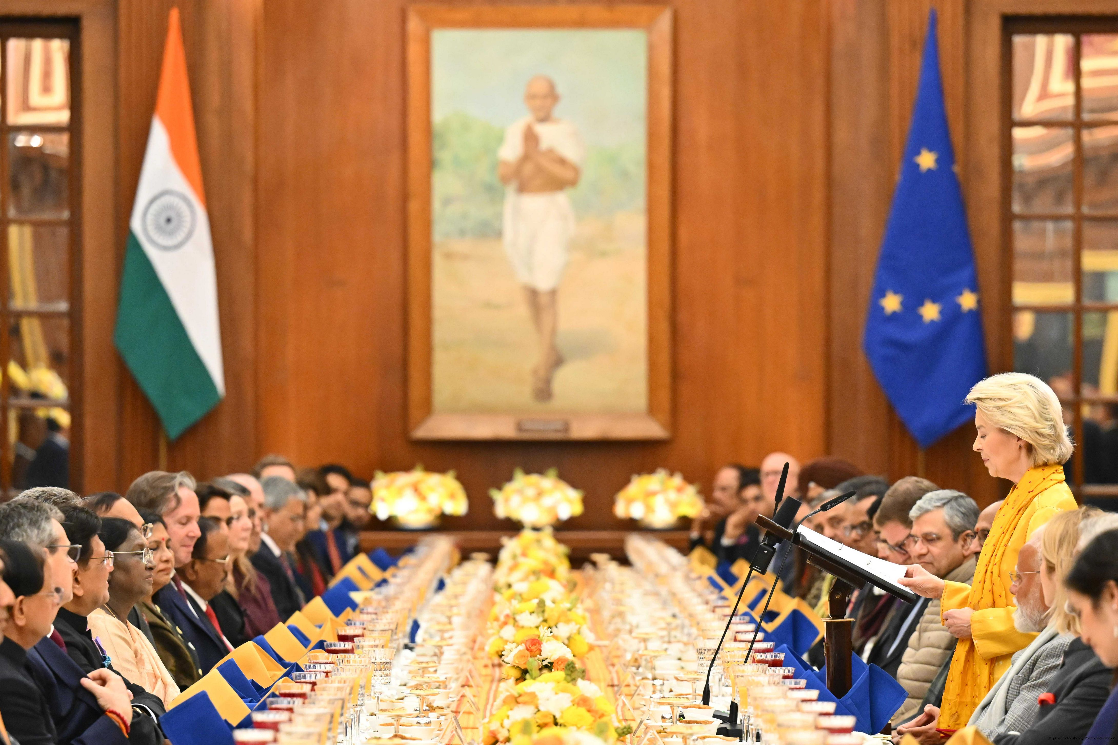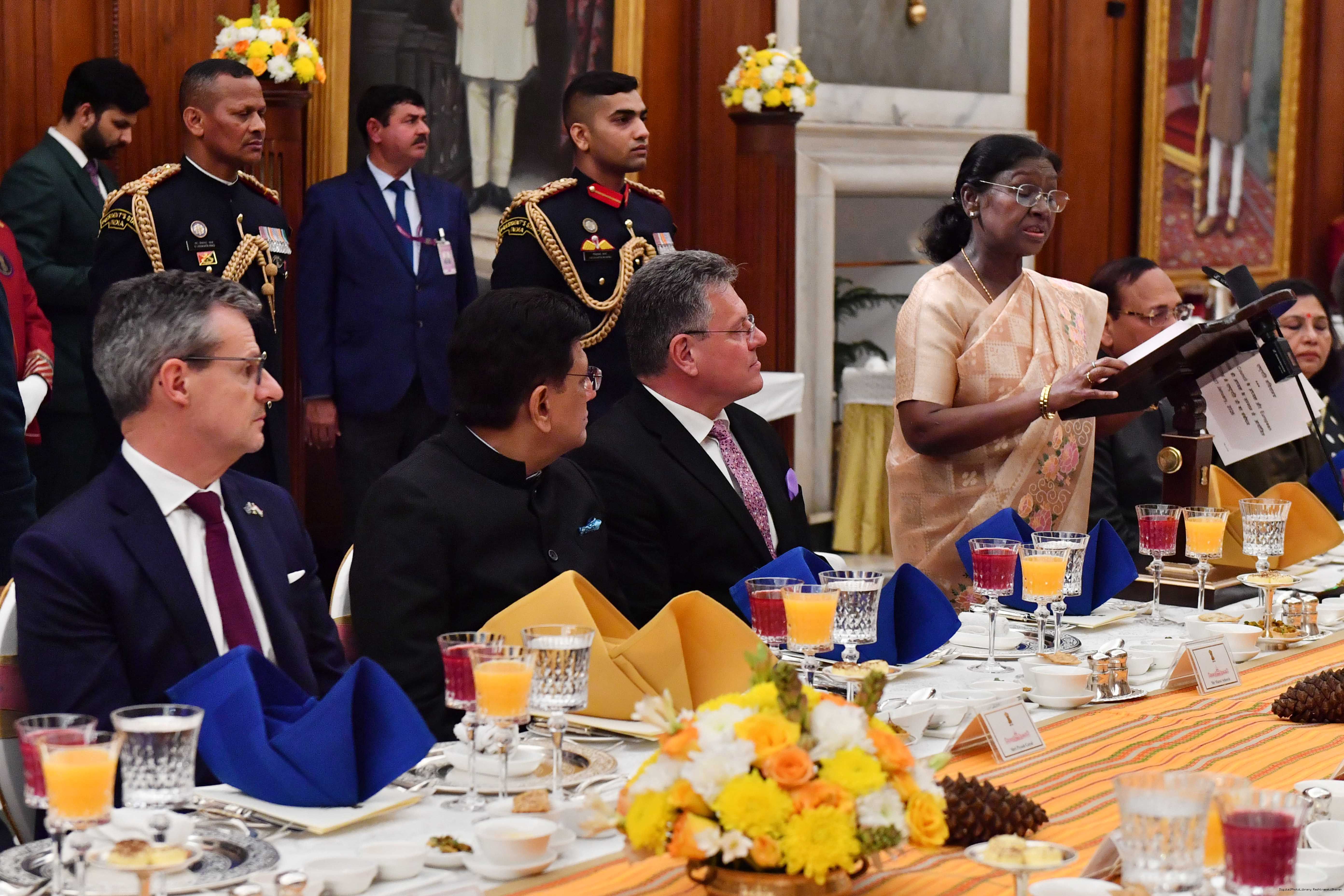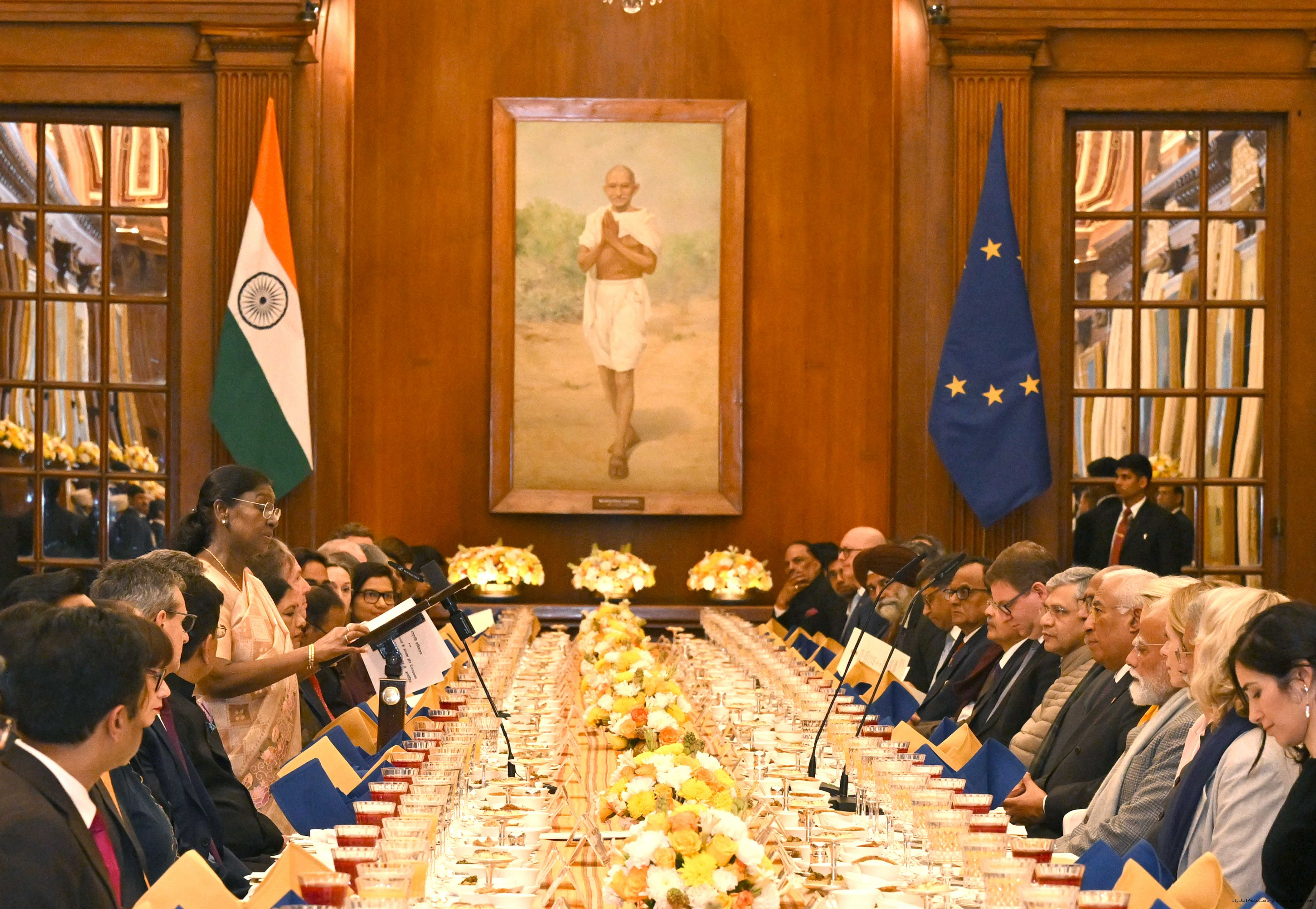 The President of India, Smt Droupadi Murmu hosted a banquet in the honour of the Chief Guests of the 77th Republic Day Celebrations, H. E. António Costa, President of the European Council and H. E. Ms Ursula von der Leyen, President of the European Commission at Rashtrapati Bhavan on January 27, 2026.