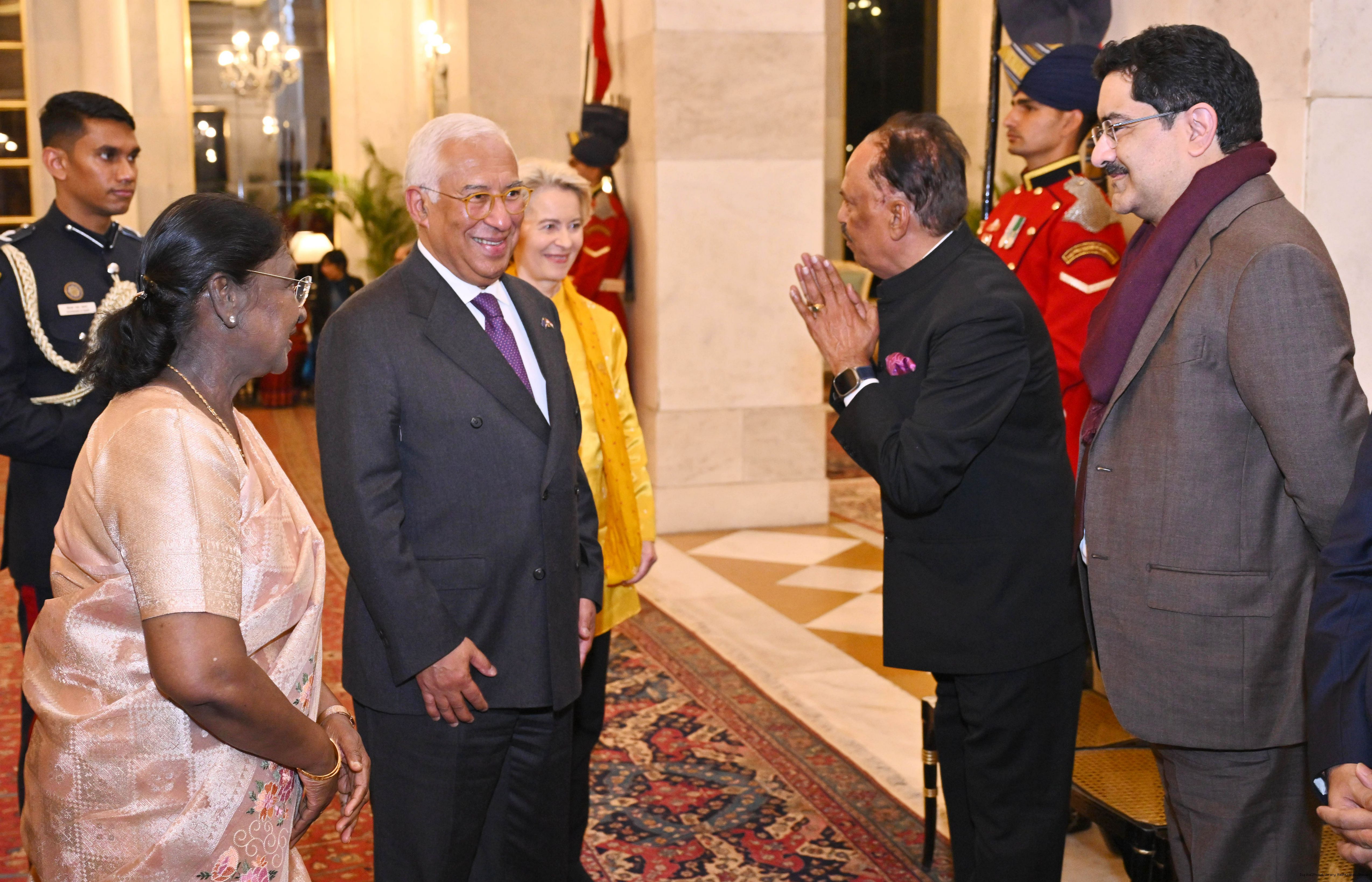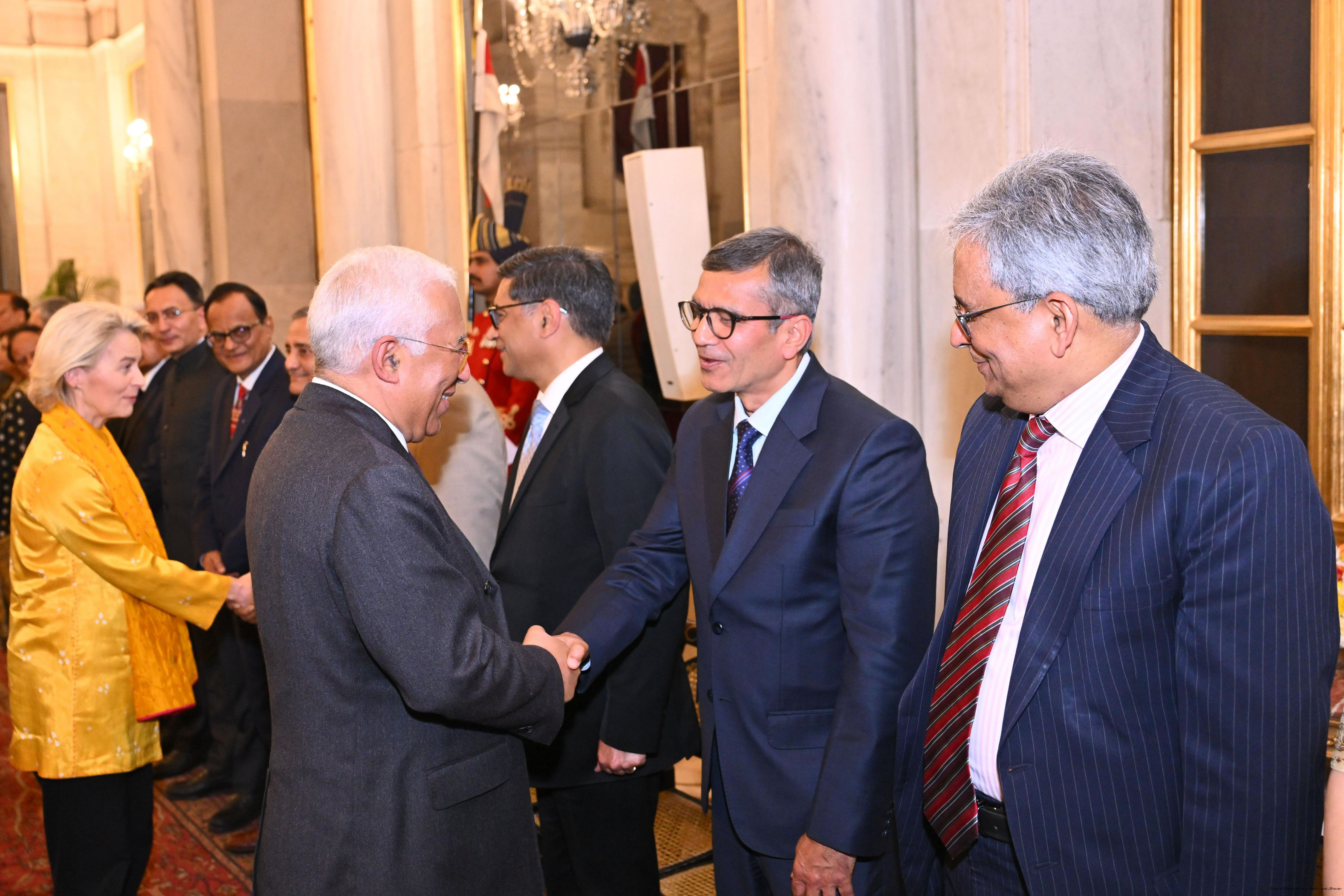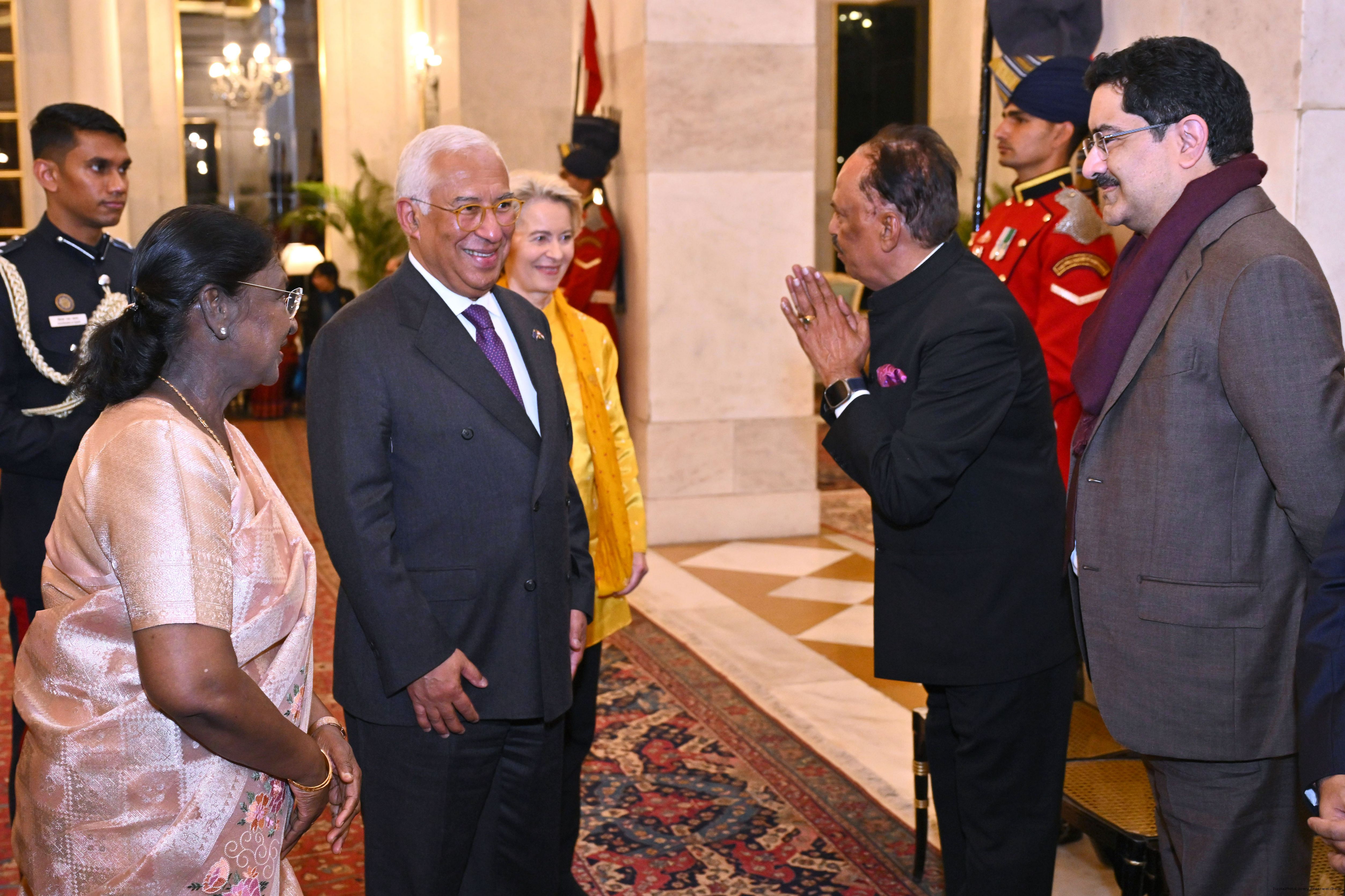 The President of India, Smt Droupadi Murmu hosted a banquet in the honour of the Chief Guests of the 77th Republic Day Celebrations, H. E. António Costa, President of the European Council and H. E. Ms Ursula von der Leyen, President of the European Commission at Rashtrapati Bhavan on January 27, 2026.