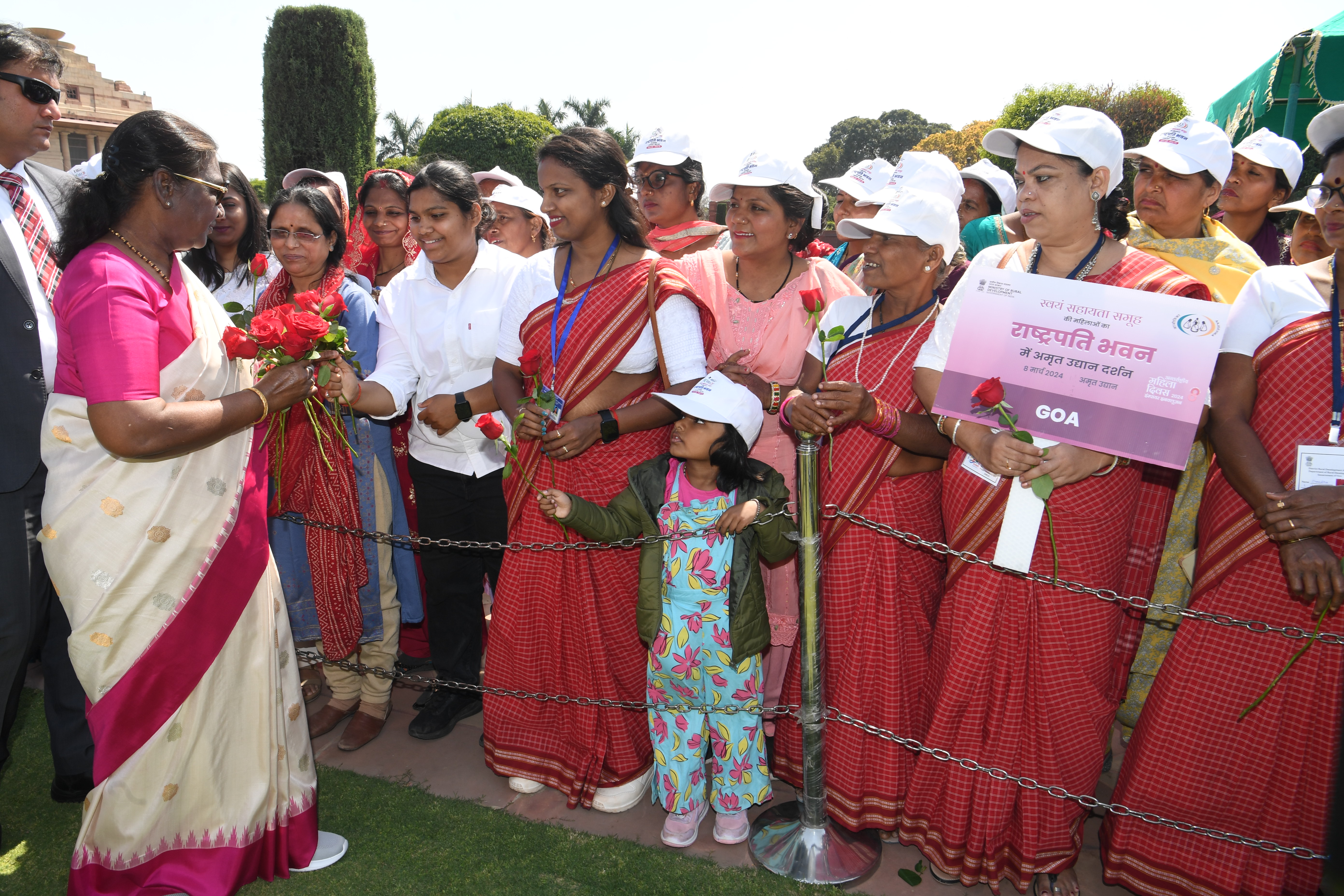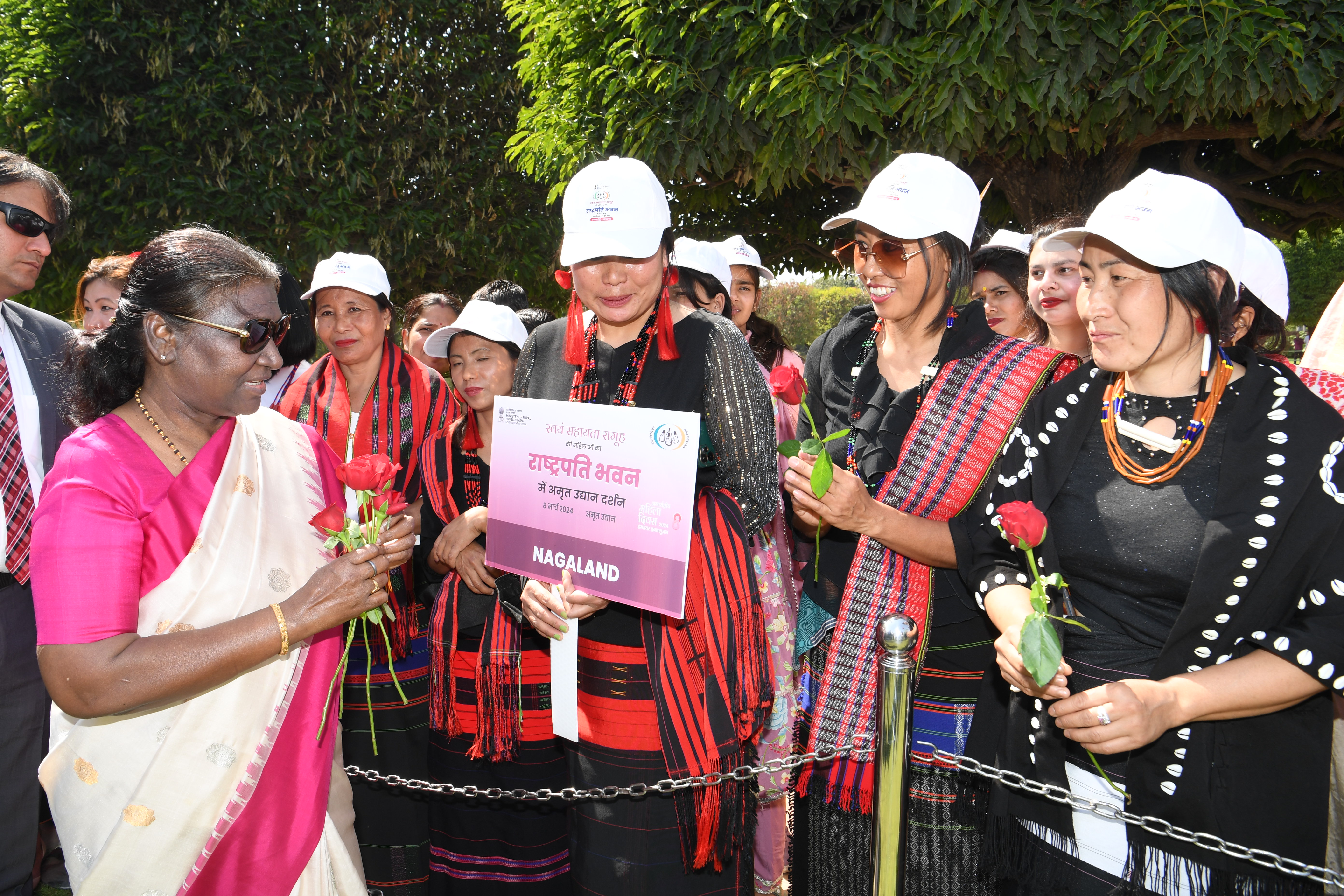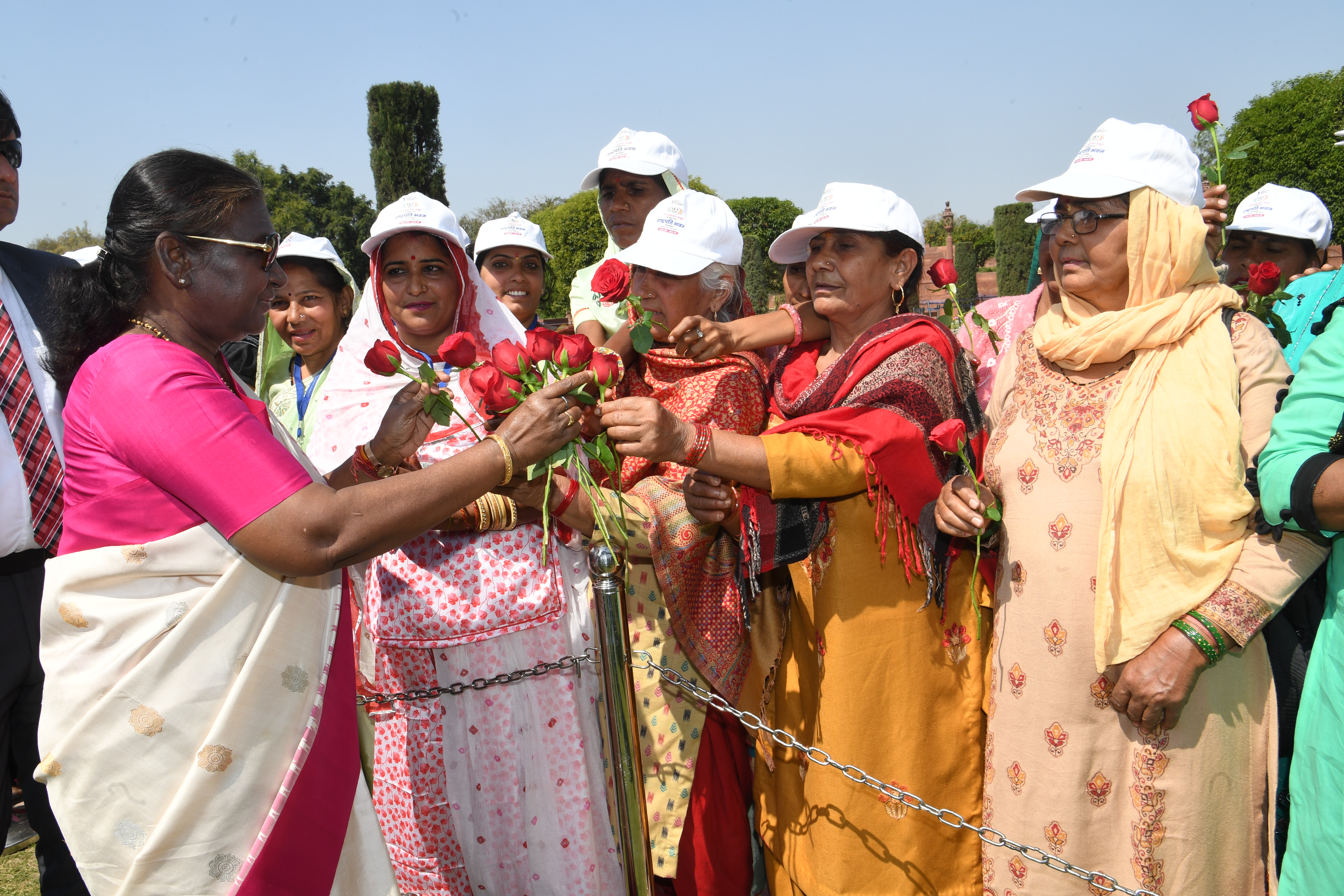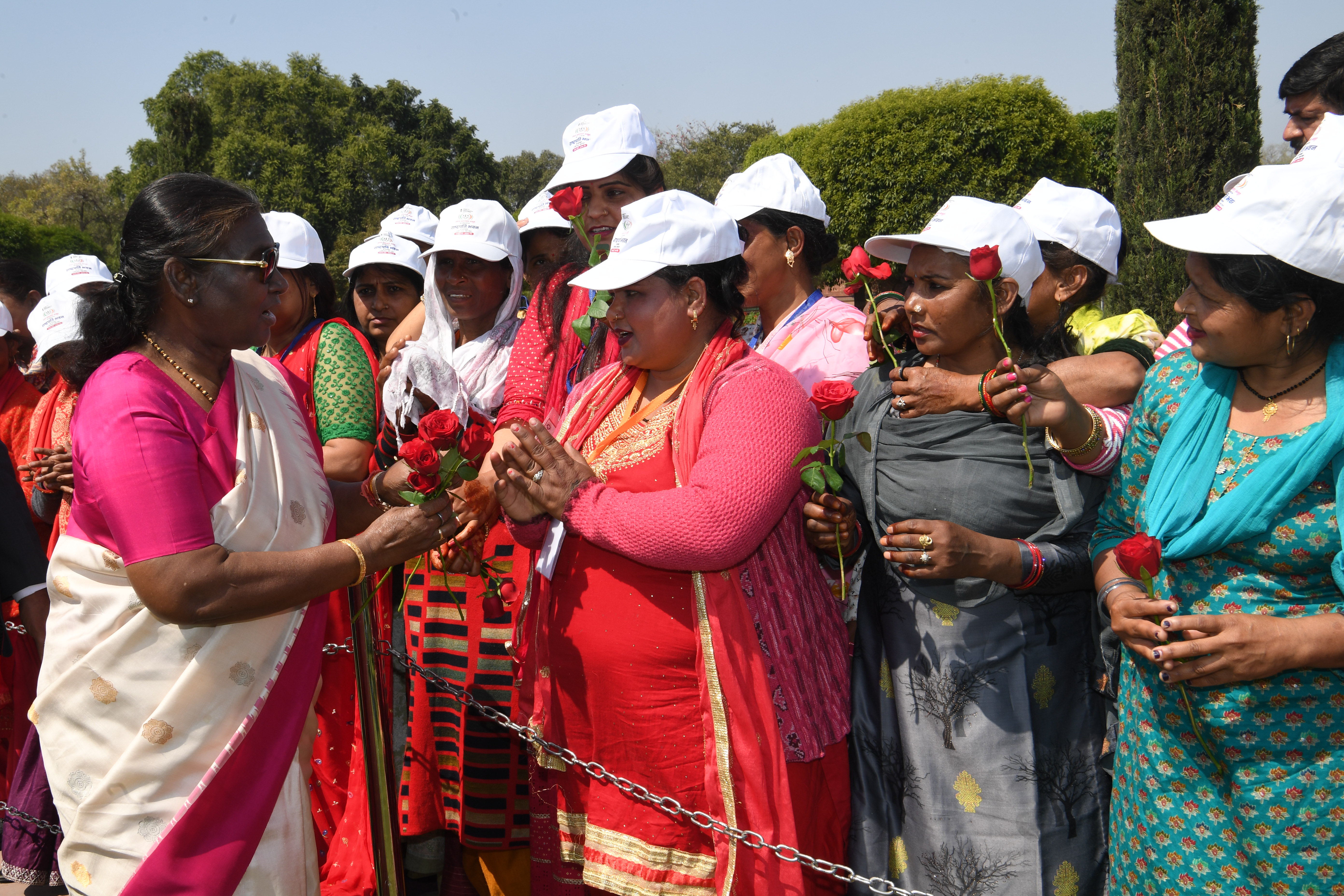 The President of India, Smt Droupadi Murmu met women visiting Amrit Udyan on the day reserved for the special category of Women Tribal Women SHGs-I 08-03-2024