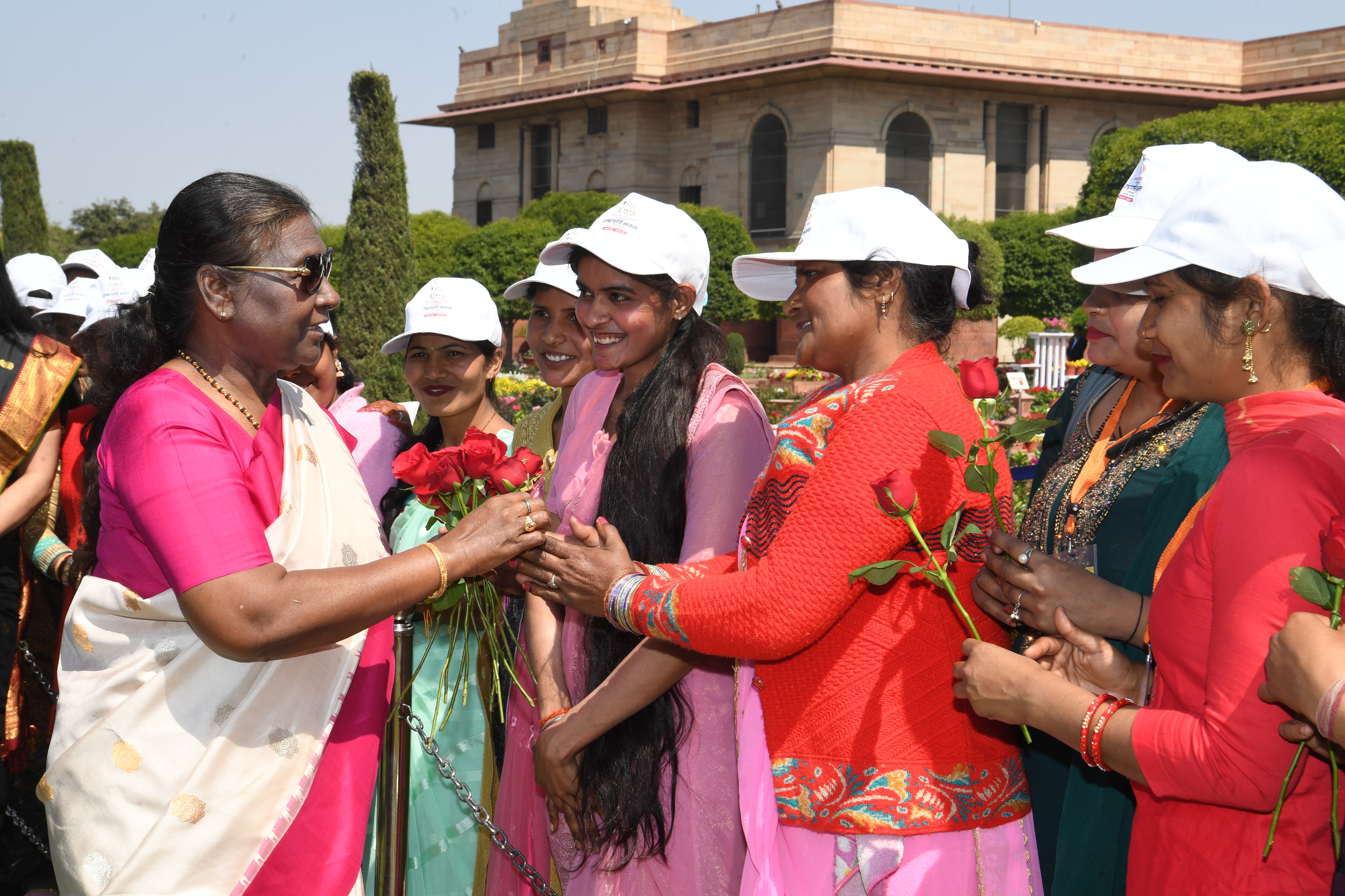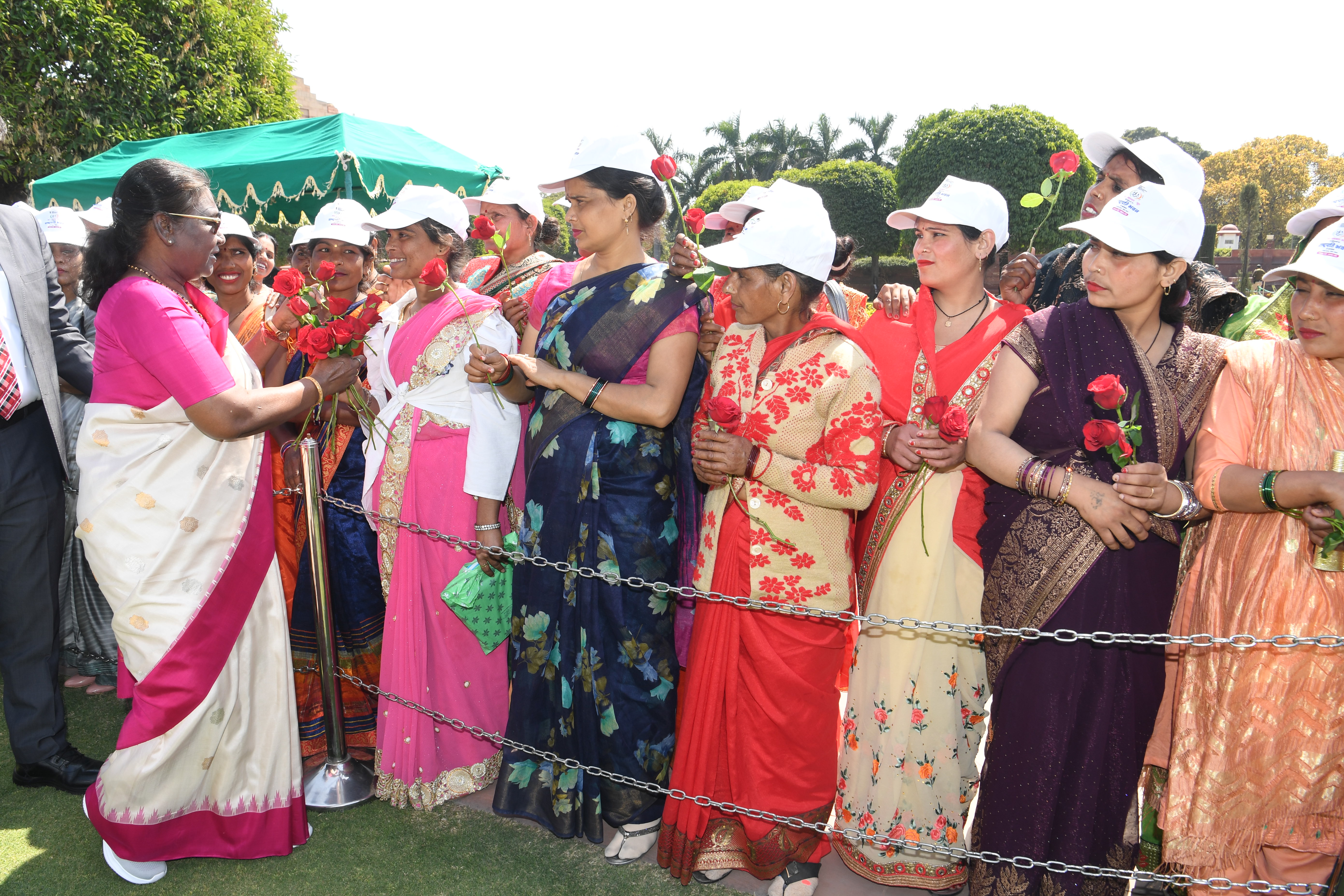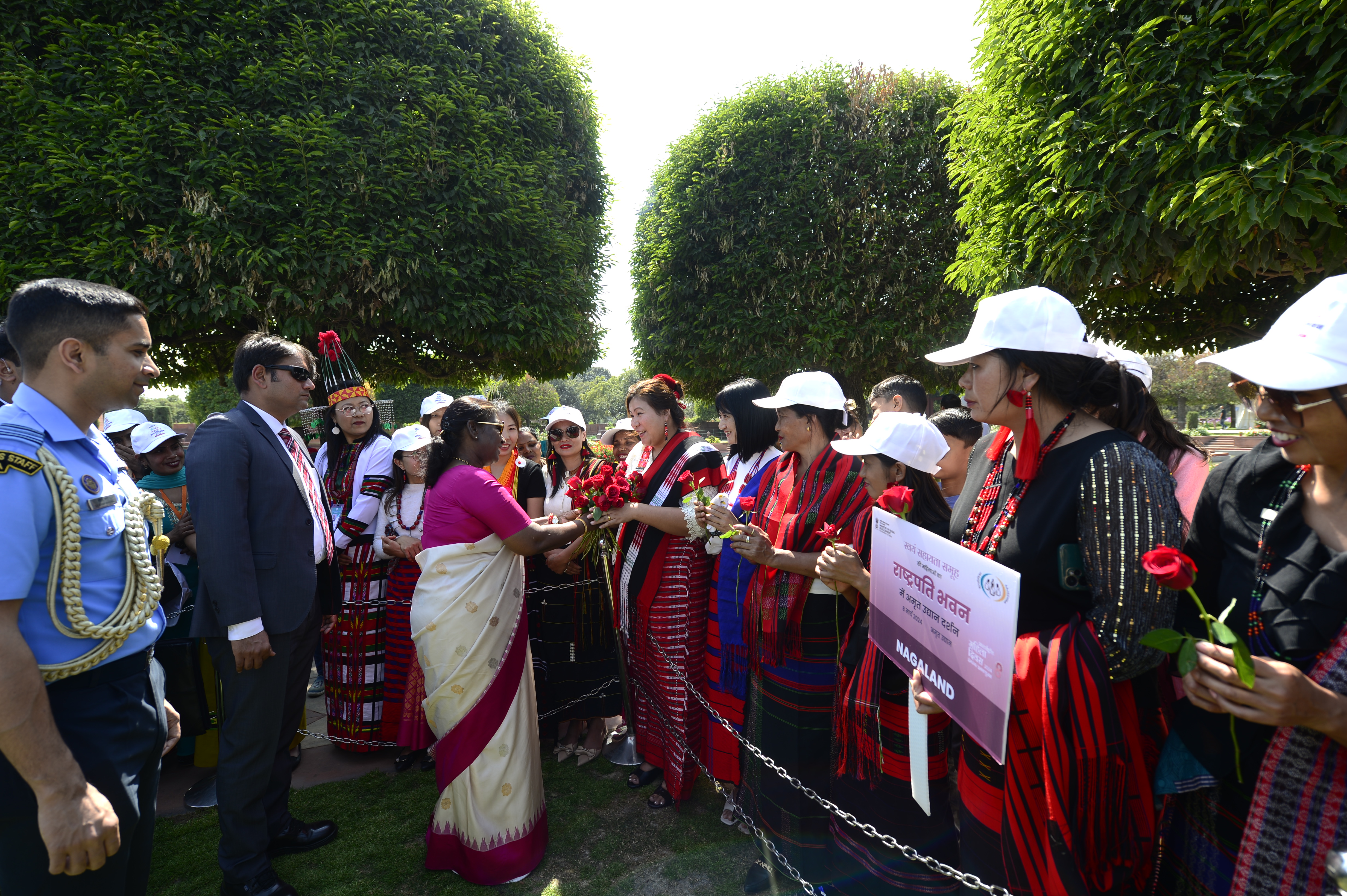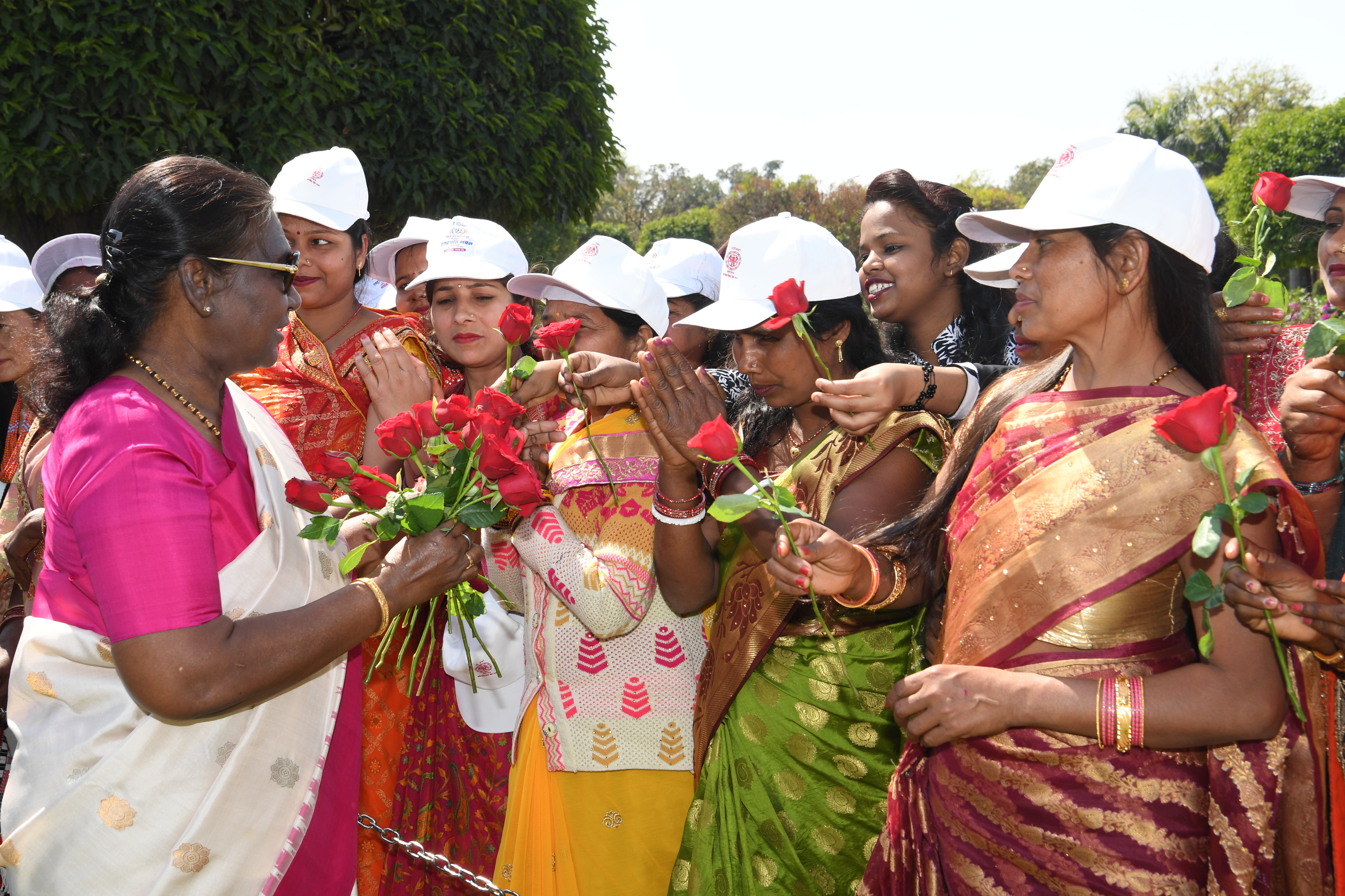 The President of India, Smt Droupadi Murmu met women visiting Amrit Udyan on the day reserved for the special category of Women Tribal Women SHGs-I 08-03-2024