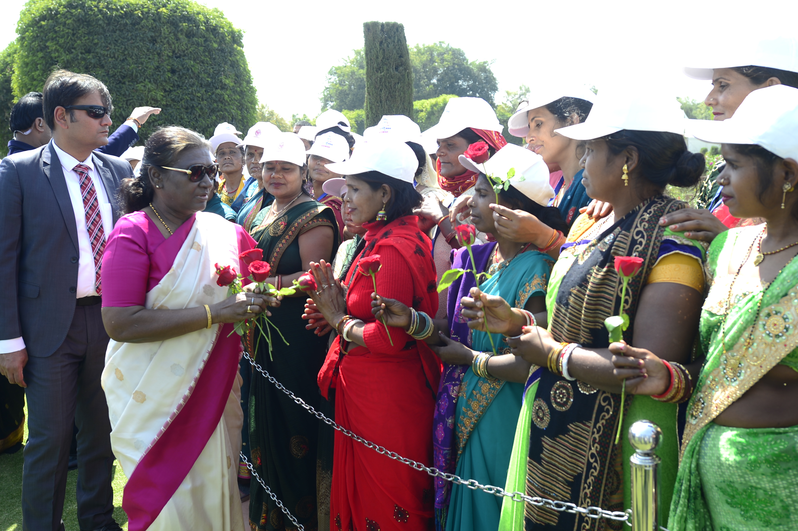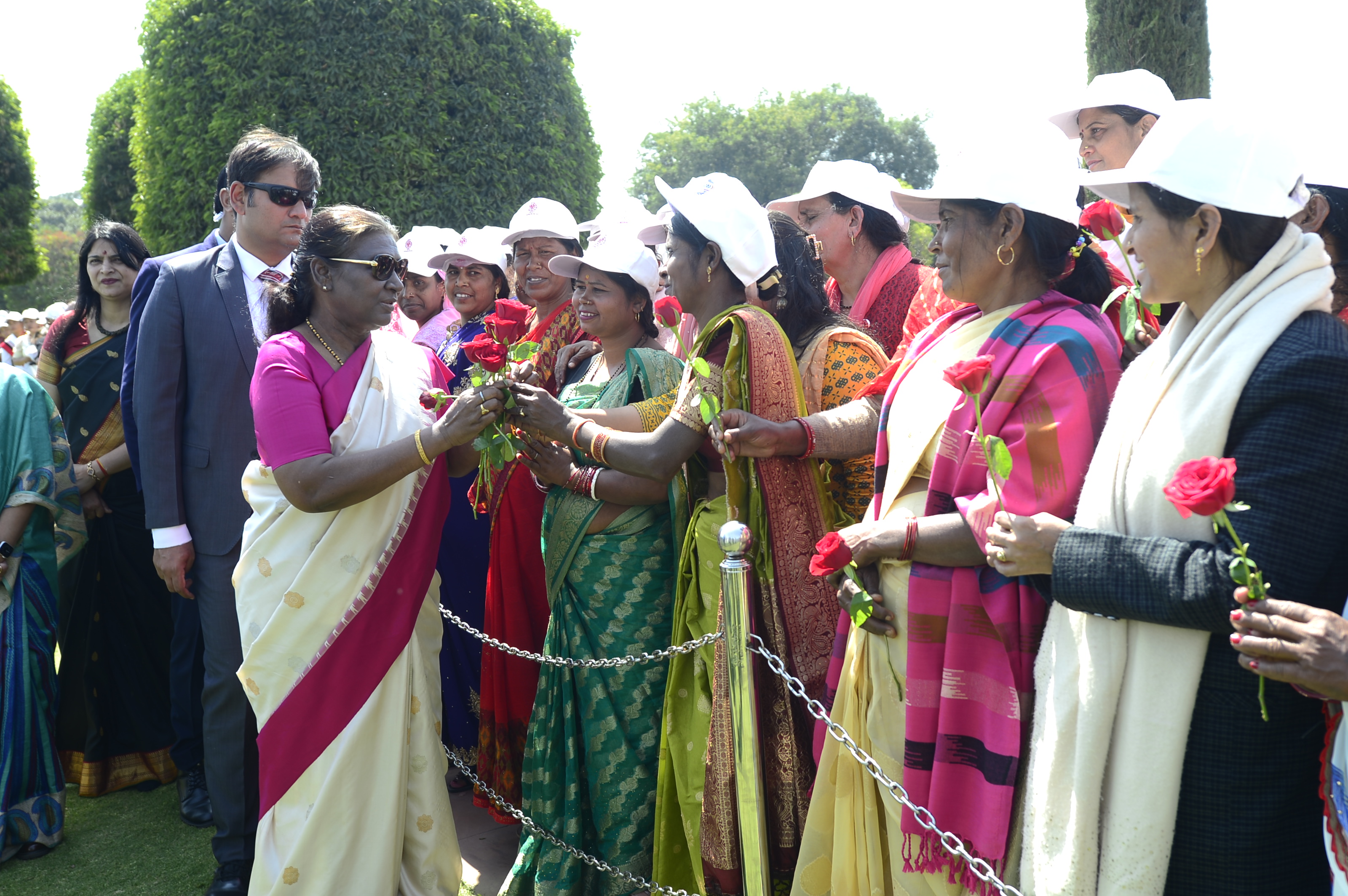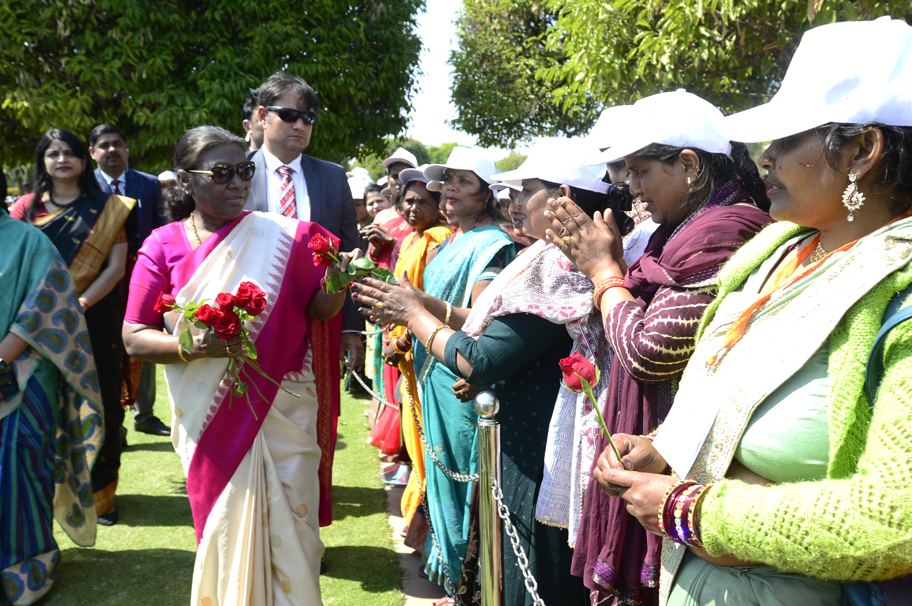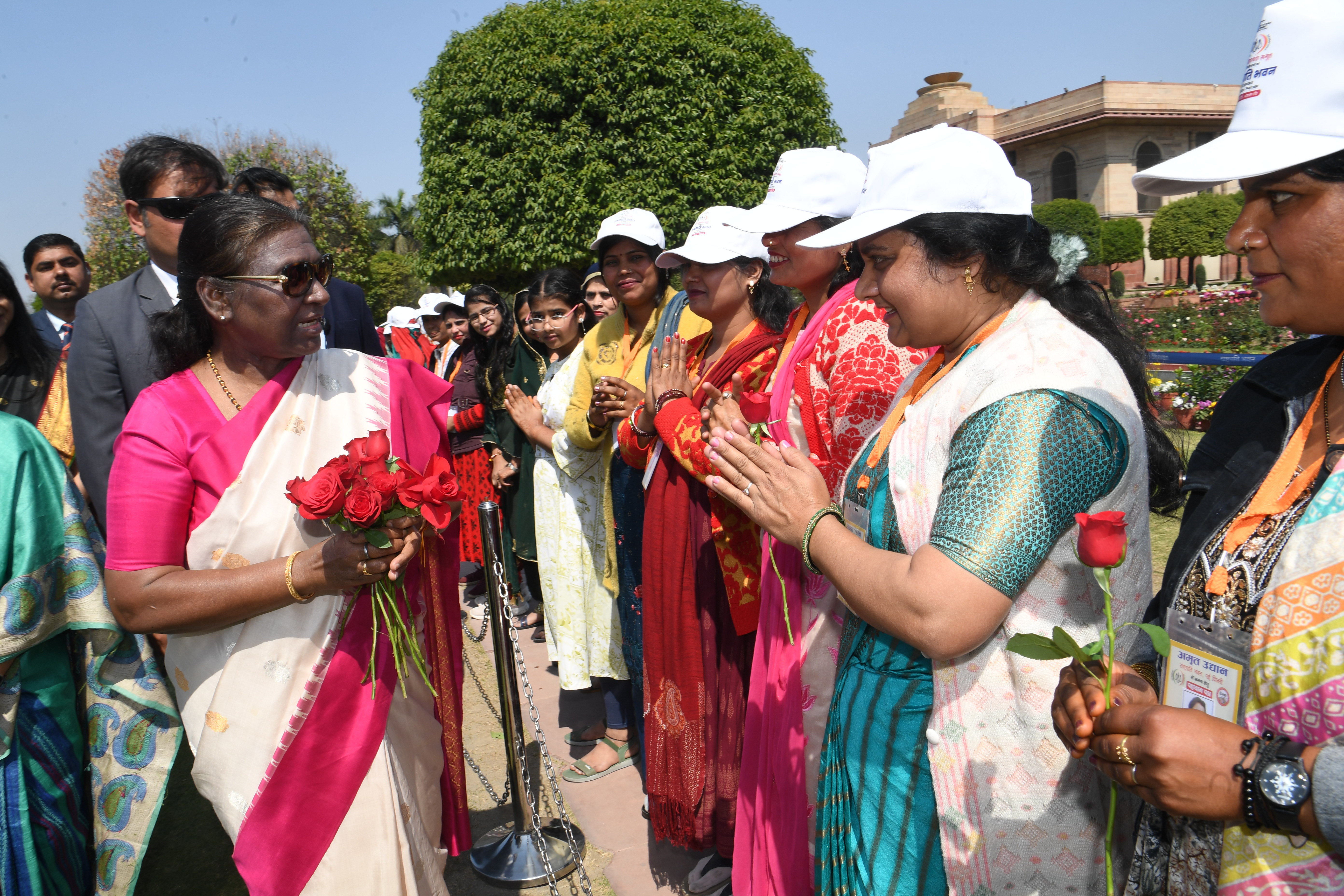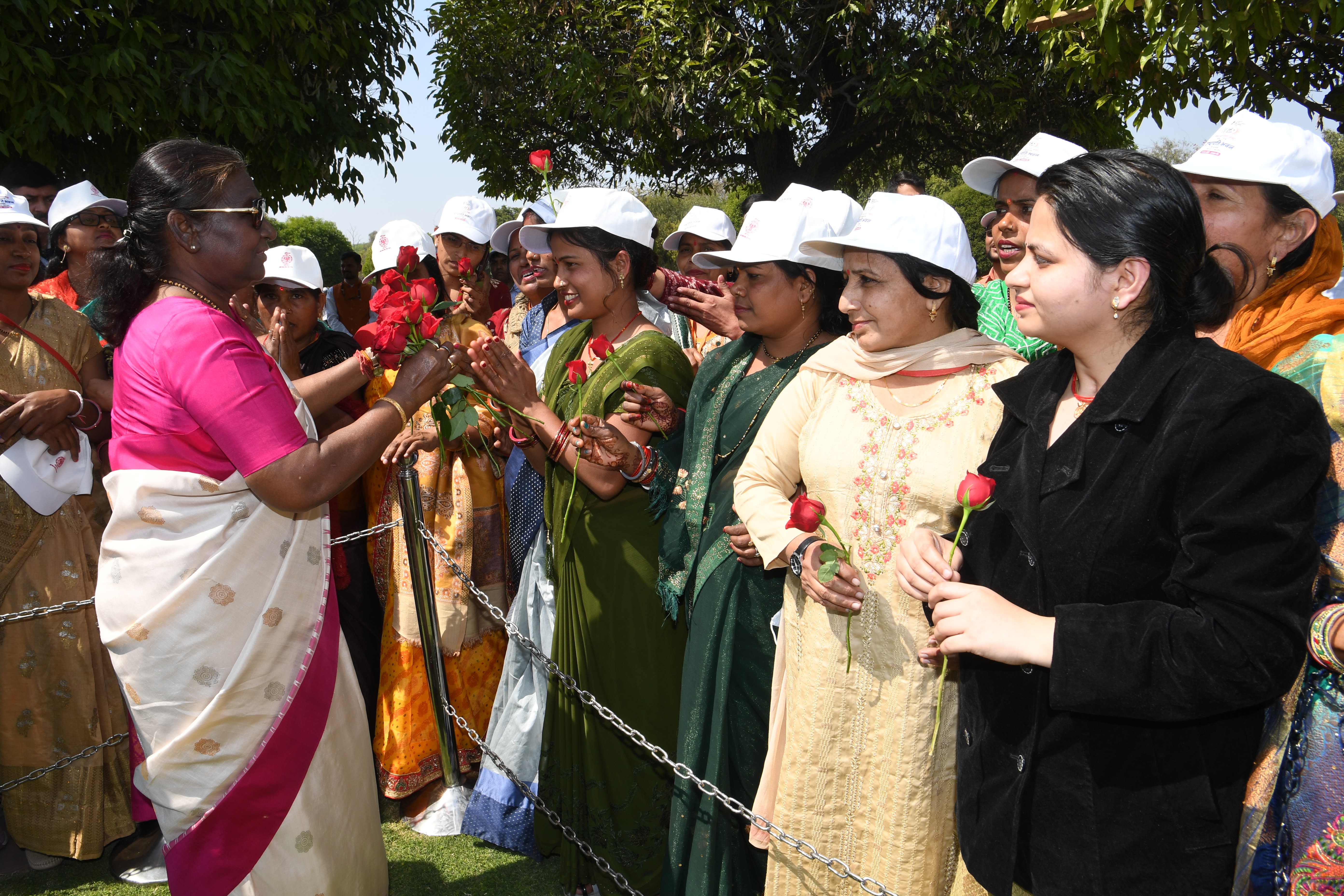 The President of India, Smt Droupadi Murmu met women visiting Amrit Udyan on the day reserved for the special category of Women Tribal Women SHGs-I 08-03-2024