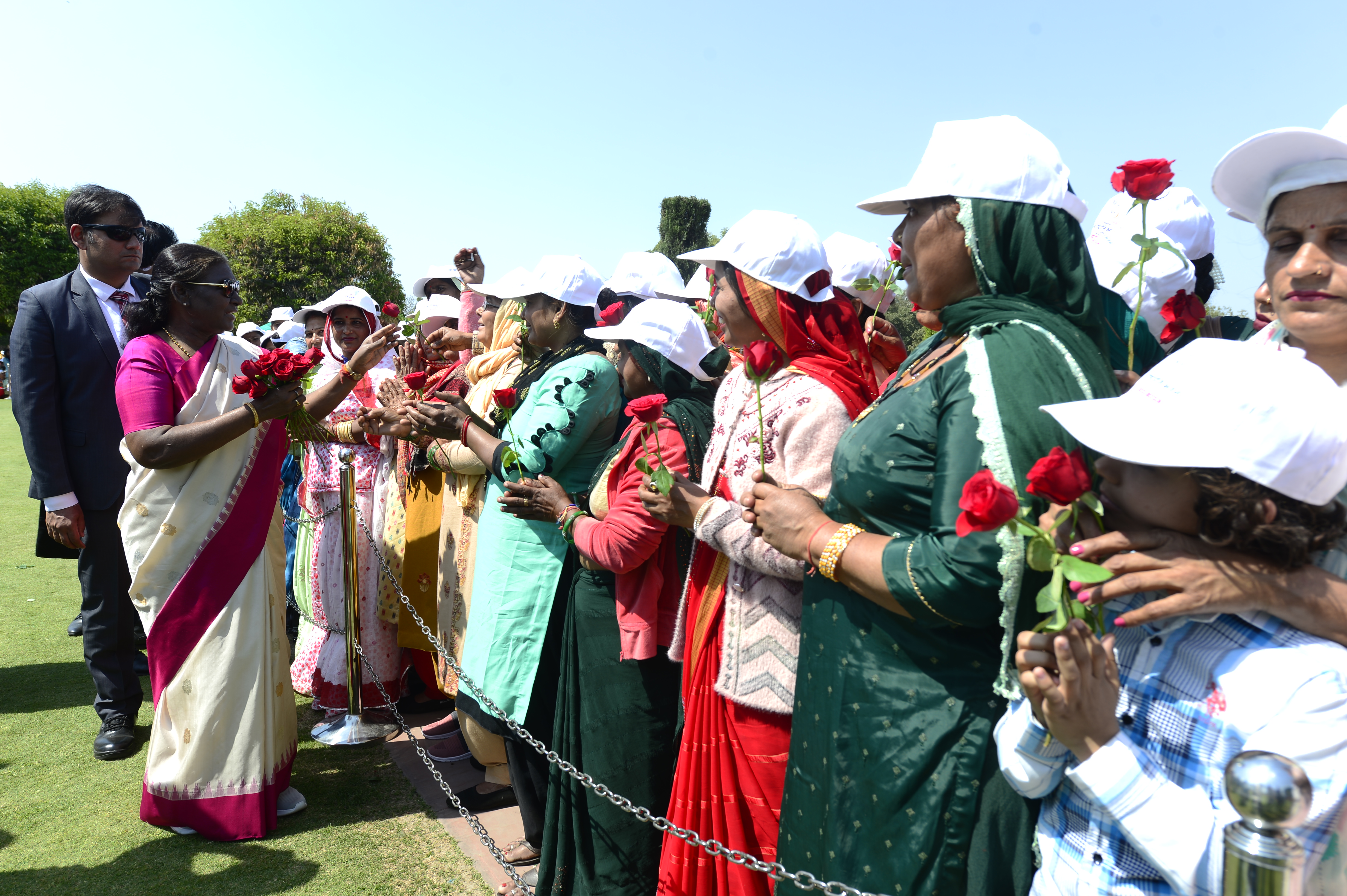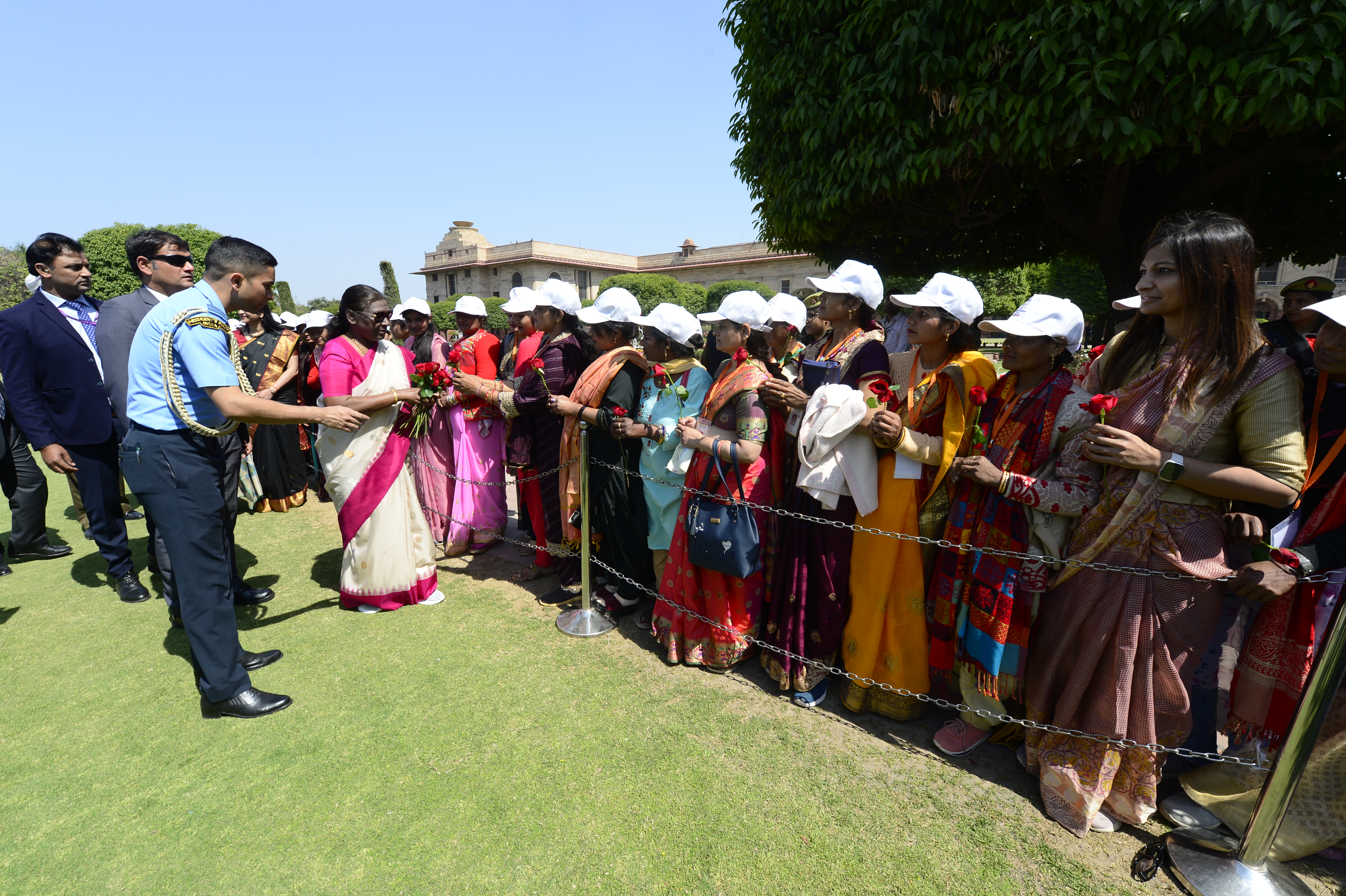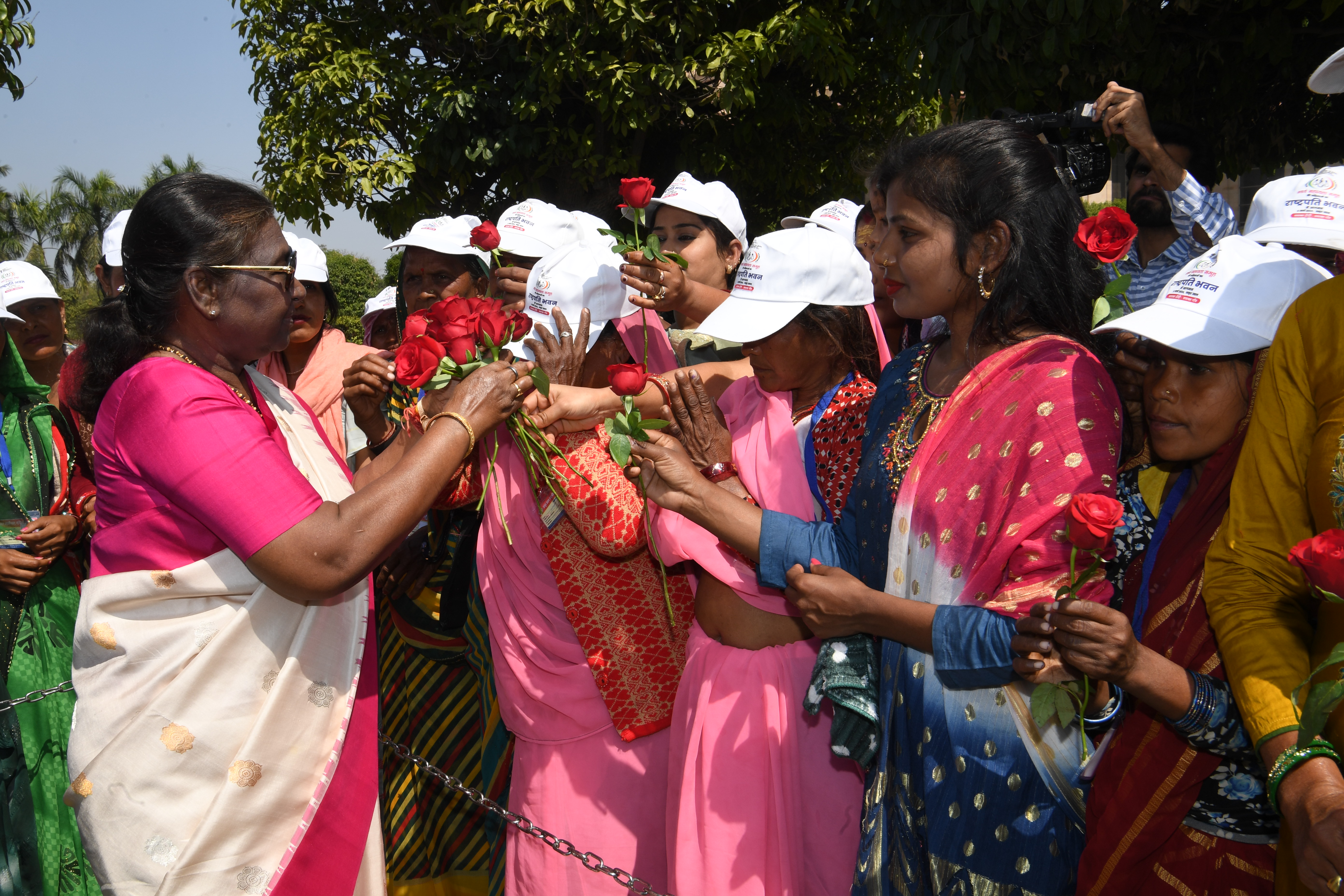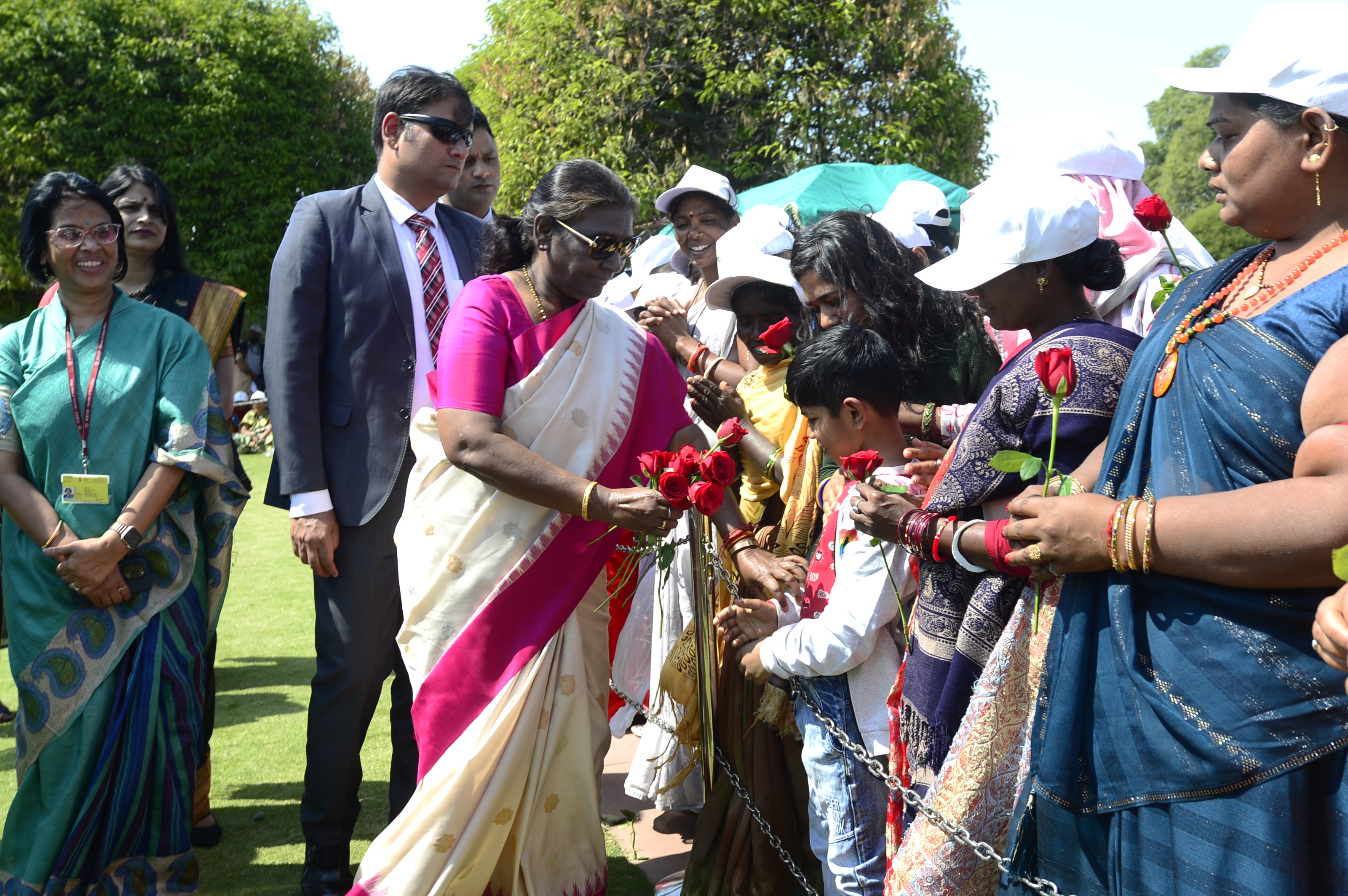 The President of India, Smt Droupadi Murmu met women visiting Amrit Udyan on the day reserved for the special category of Women Tribal Women SHGs-I 08-03-2024