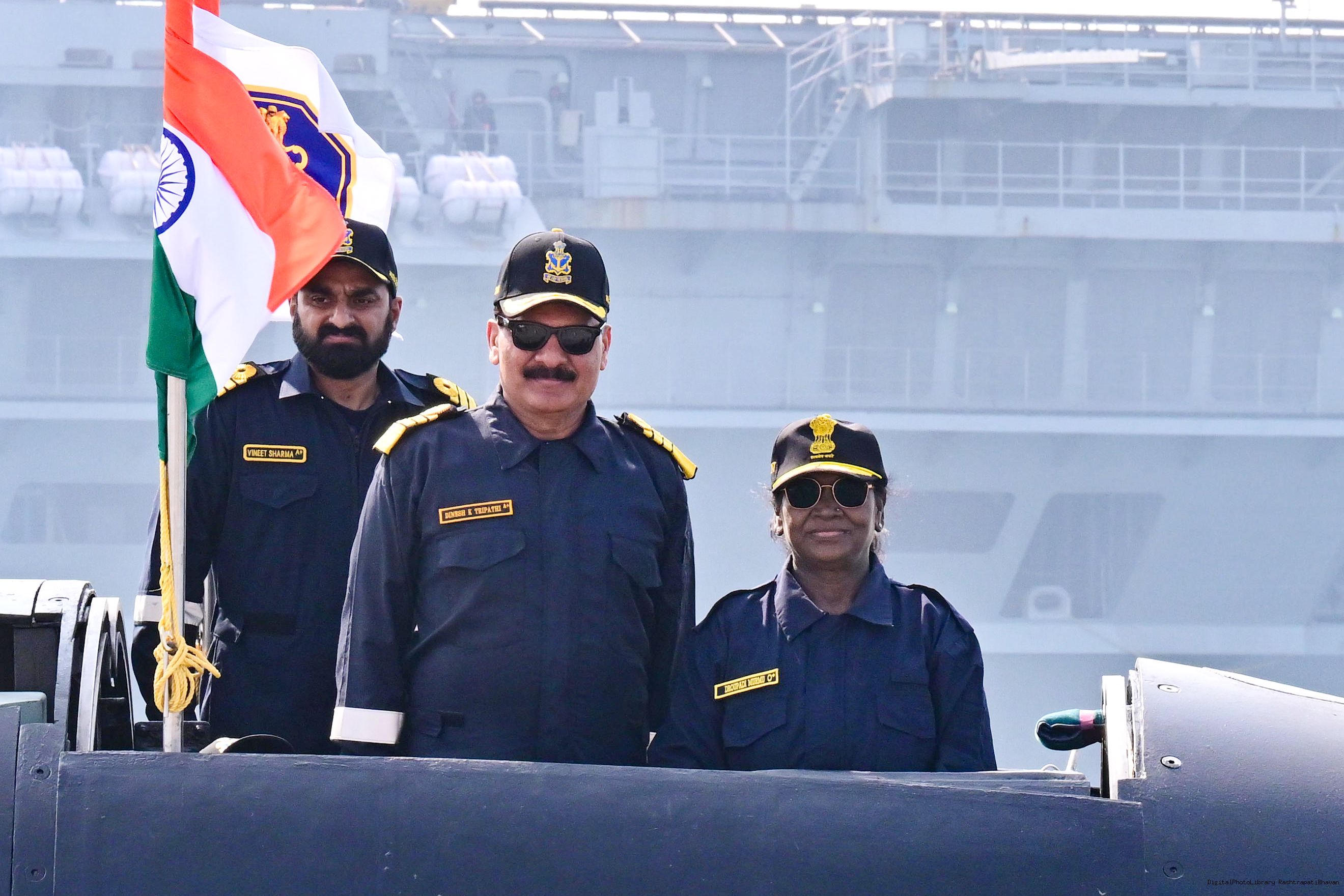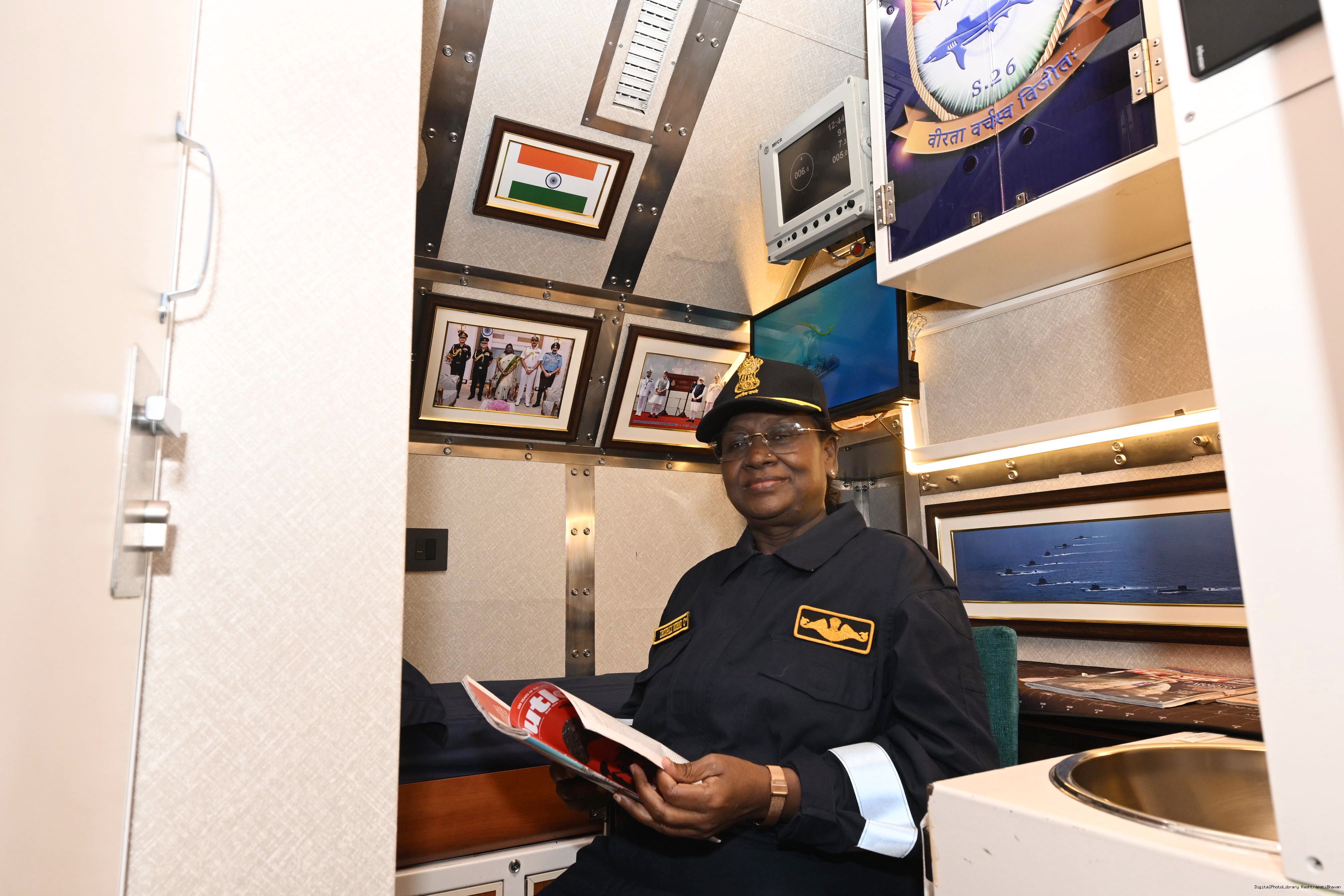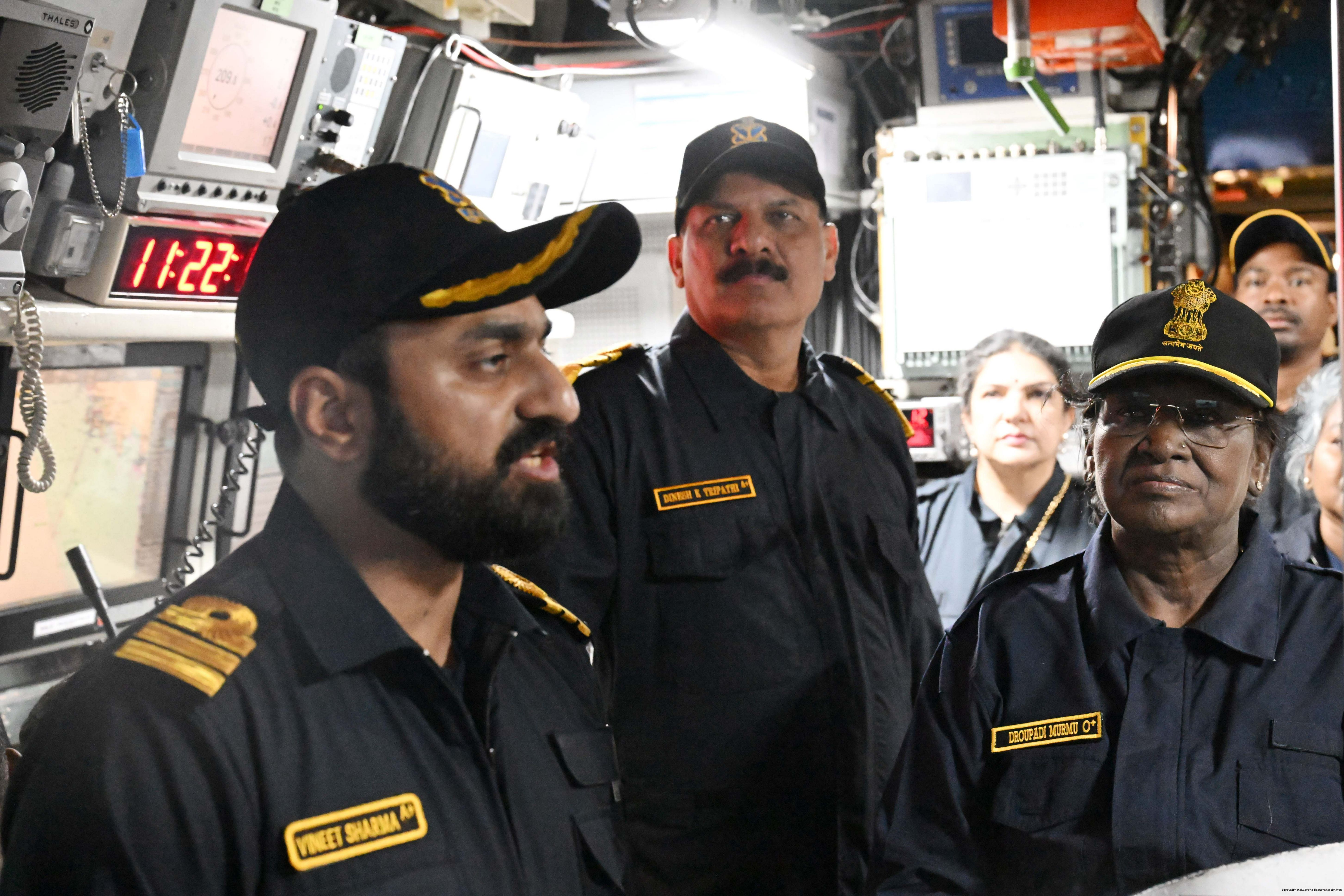 The President of India, Smt Droupadi Murmu undertook a dived sortie onboard Submarine – INS Vaghsheer on Western Seaboard at Karwar Naval Harbour, Karnataka on December 28, 2025.