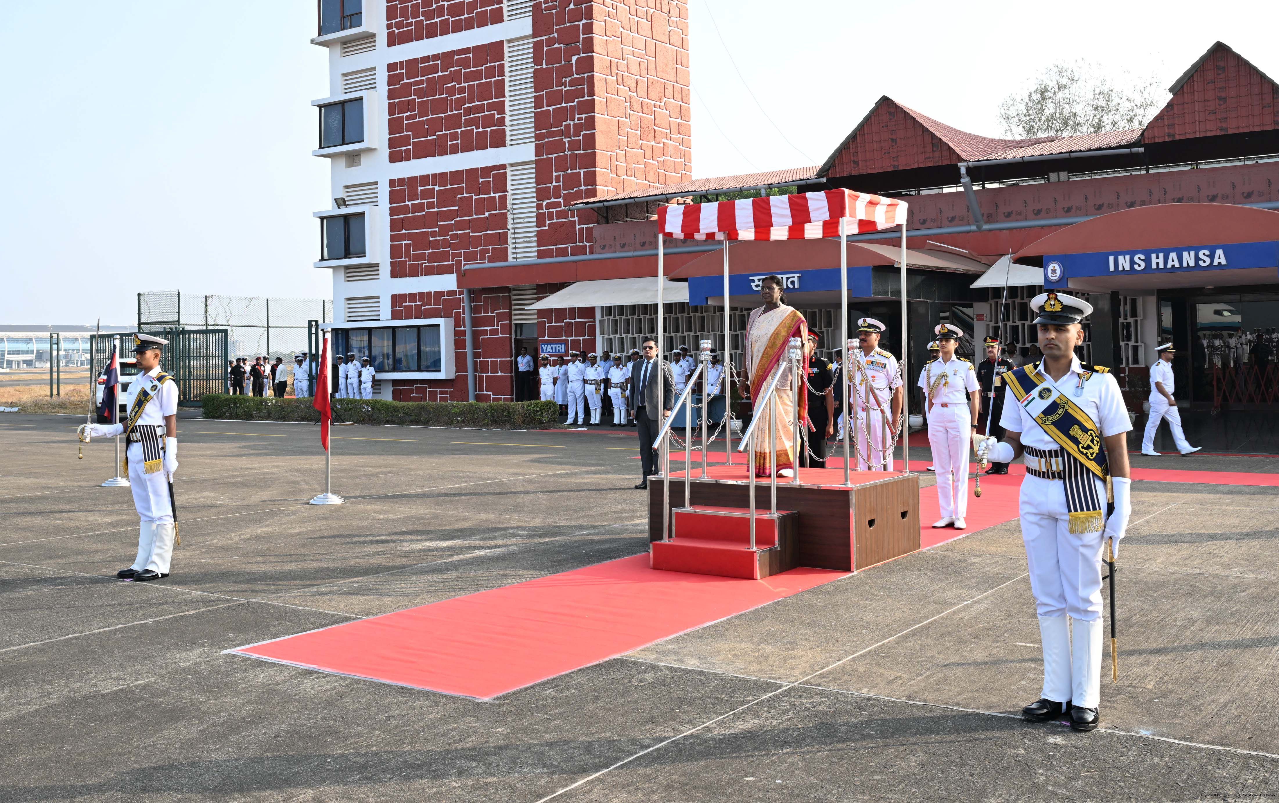 The President of India, Smt. Droupadi Murmu was accorded a guard of honour on her arrival at at Dabolim airport, Goa on December 28, 2025.