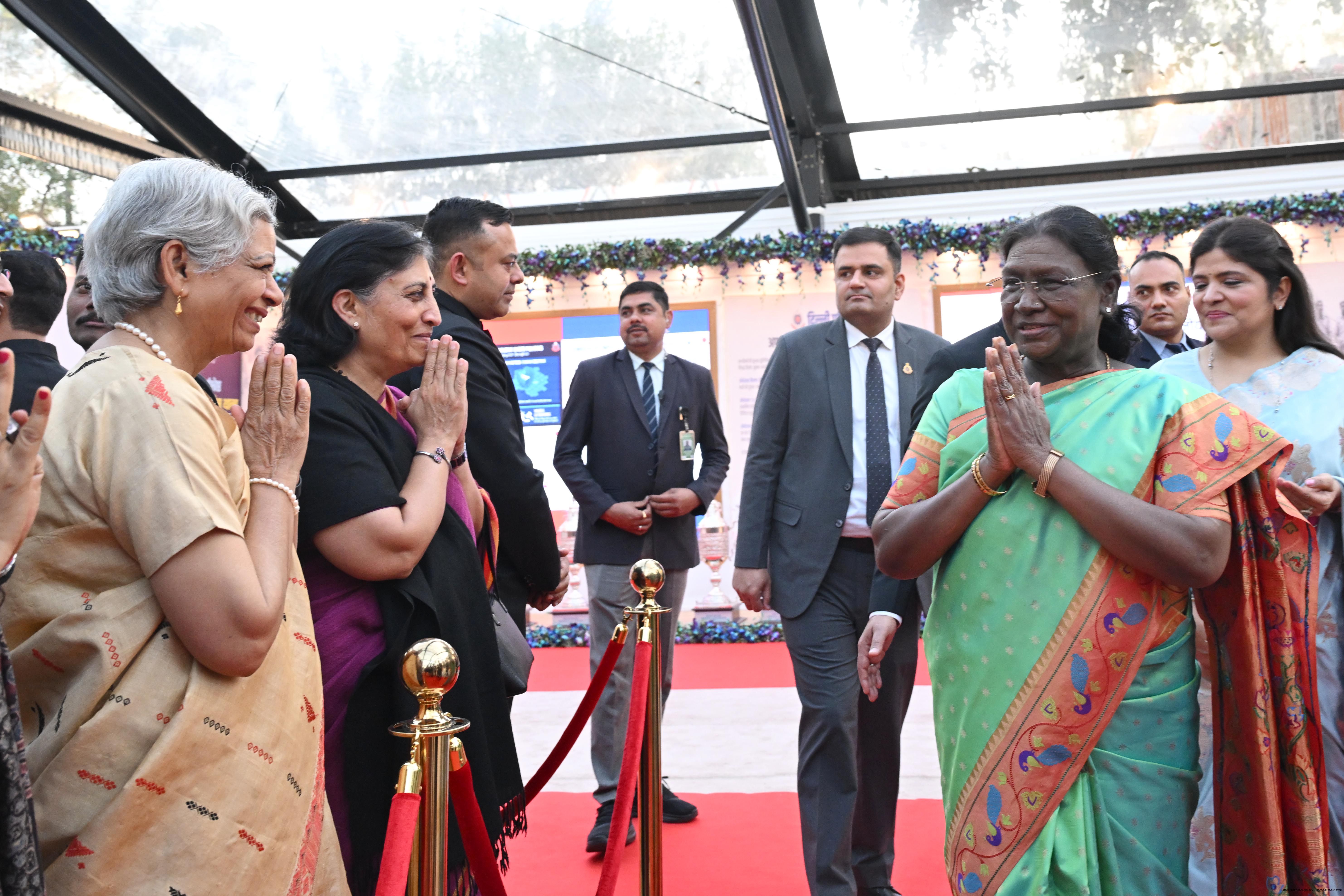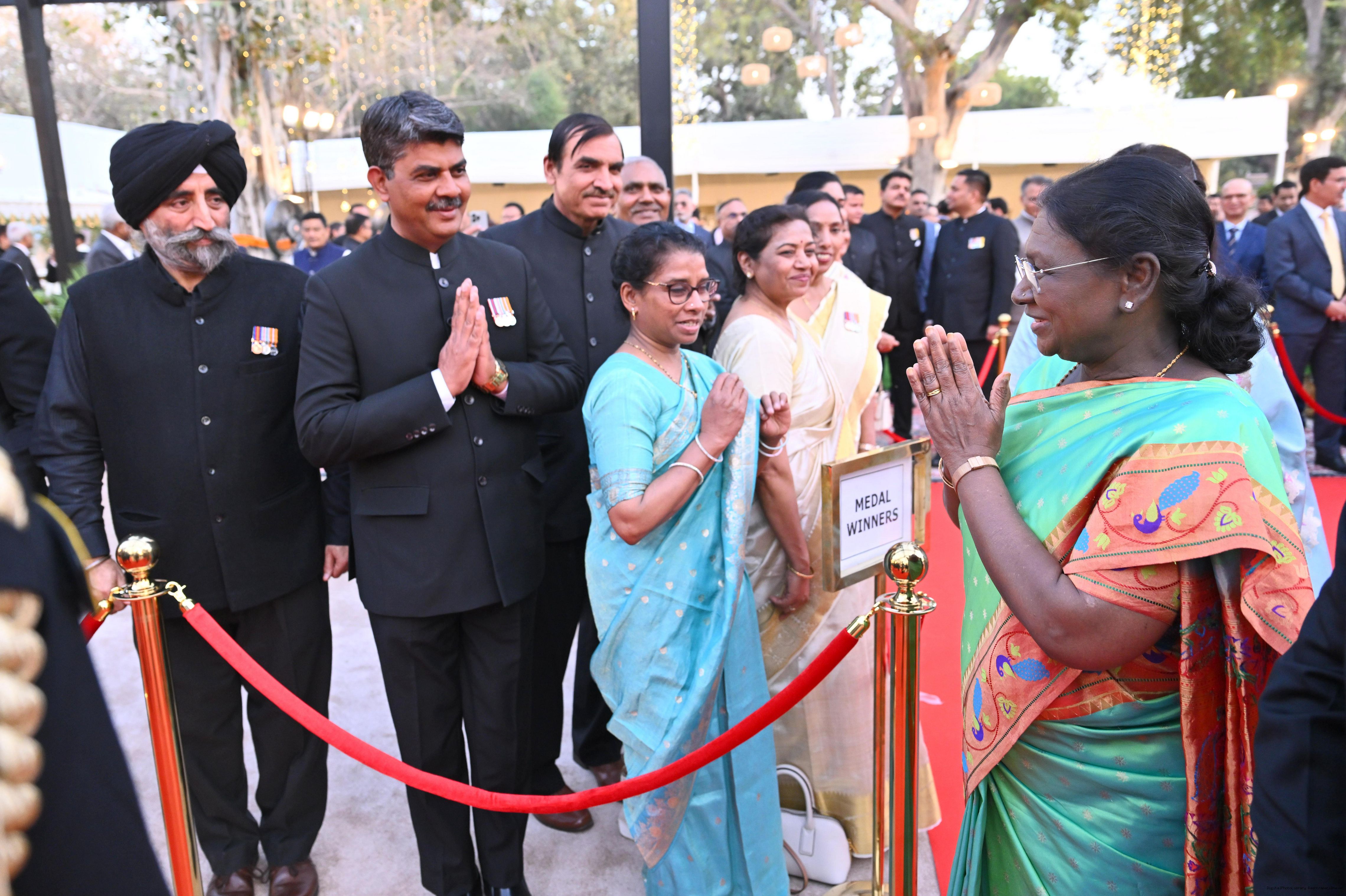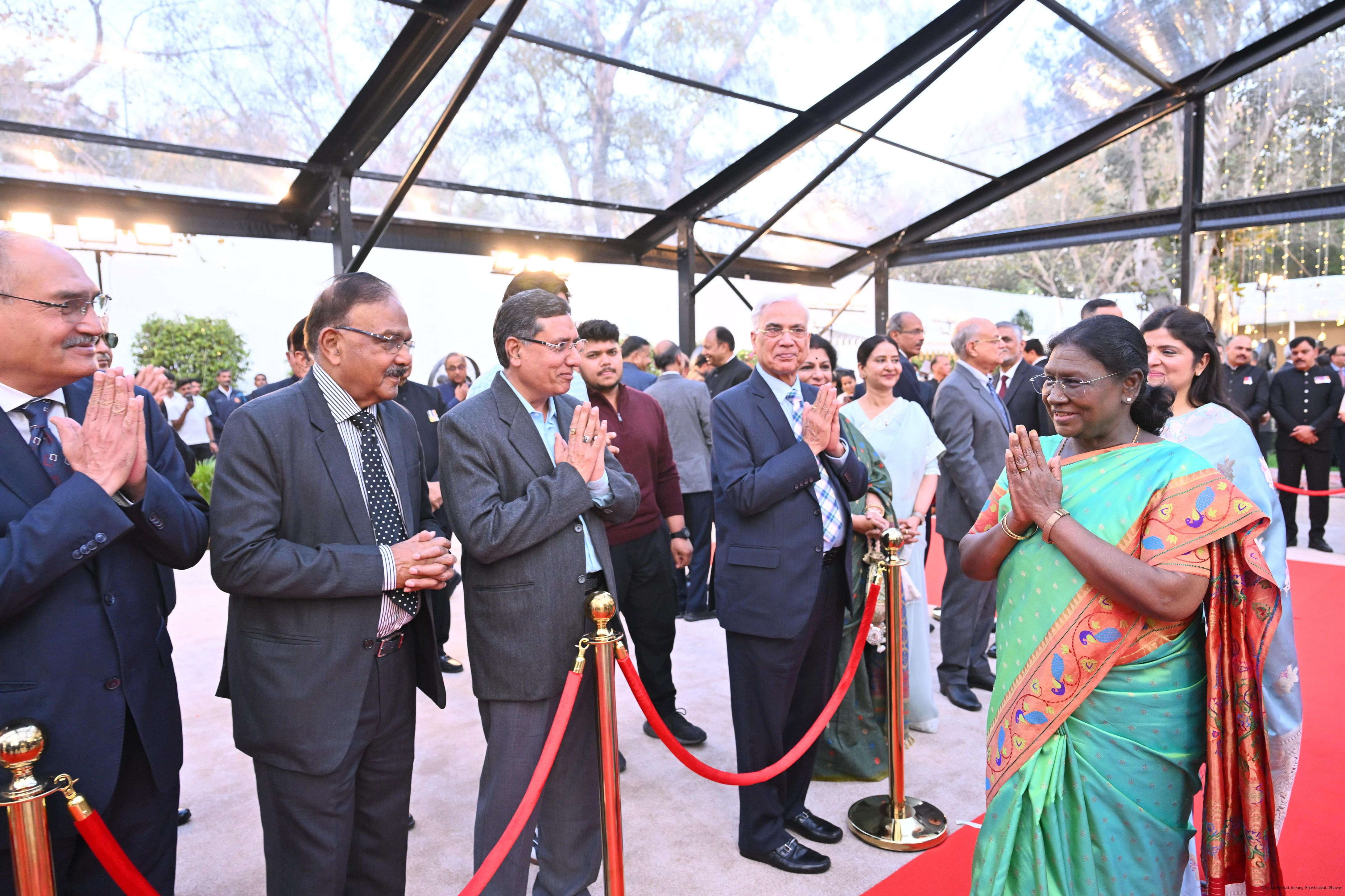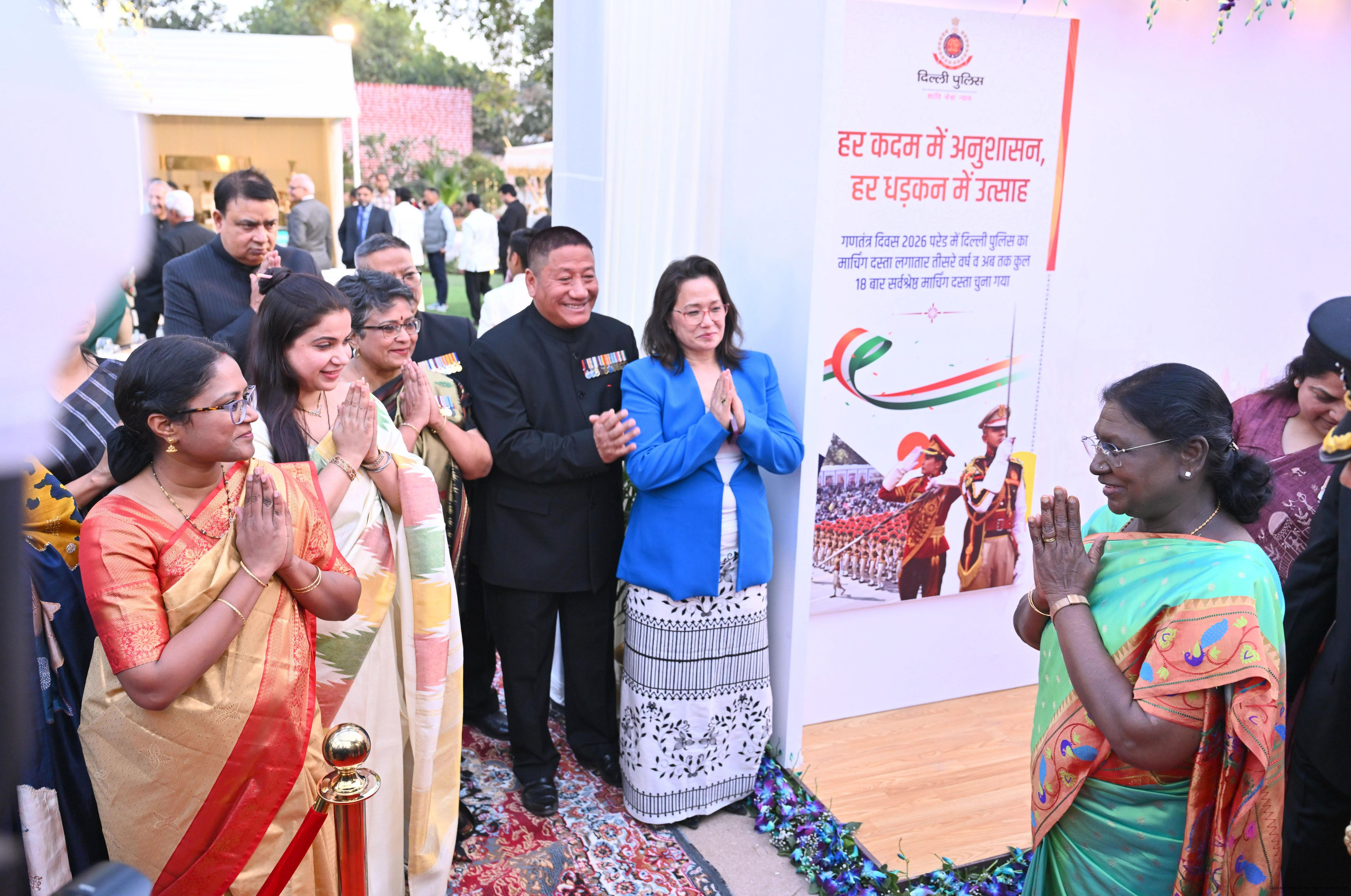 The President of India, Smt Droupadi Murmu attending 'At Home' on the occasion of Delhi Police Raising Day, in New Delhi on February 23, 2026.