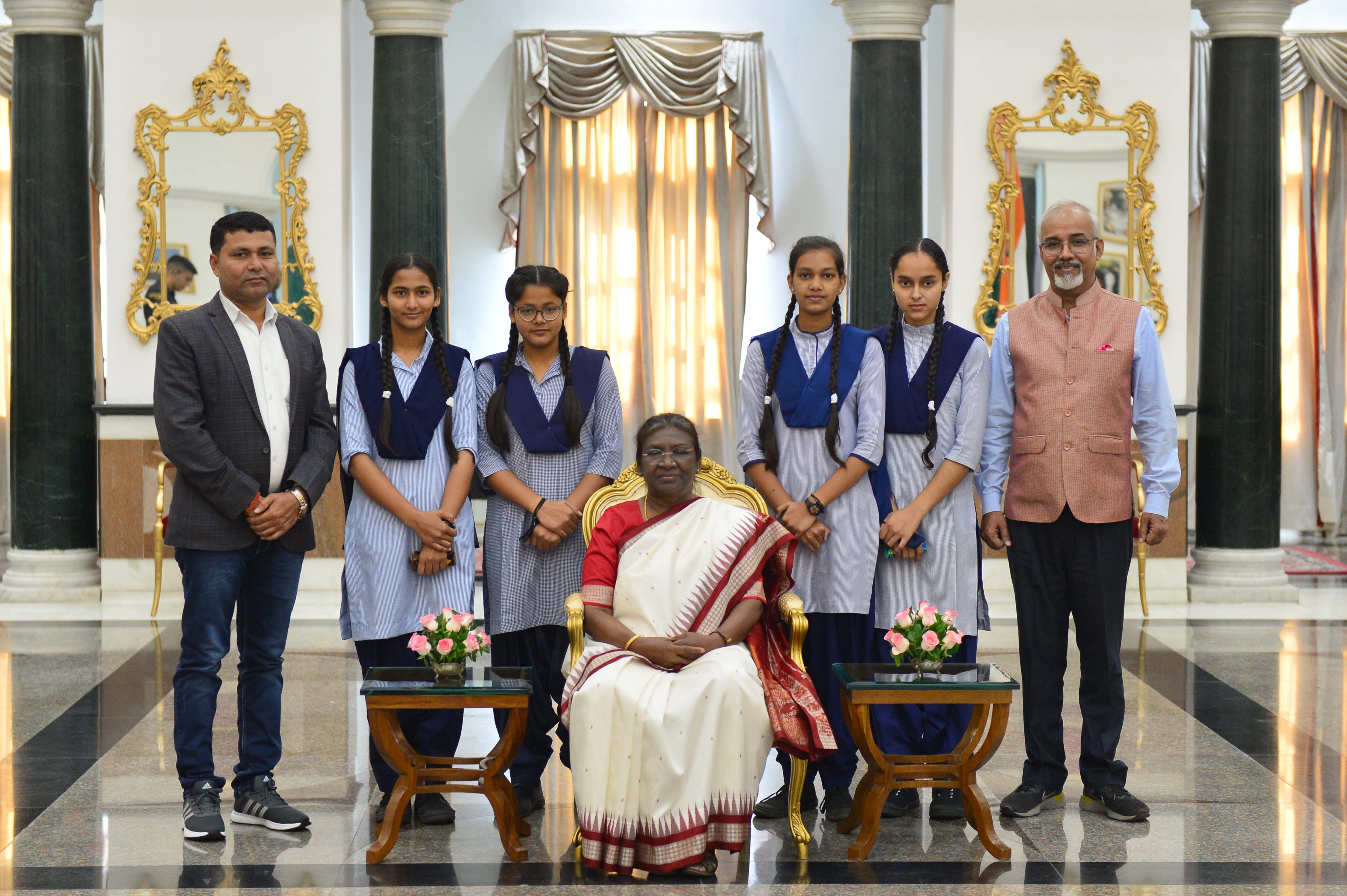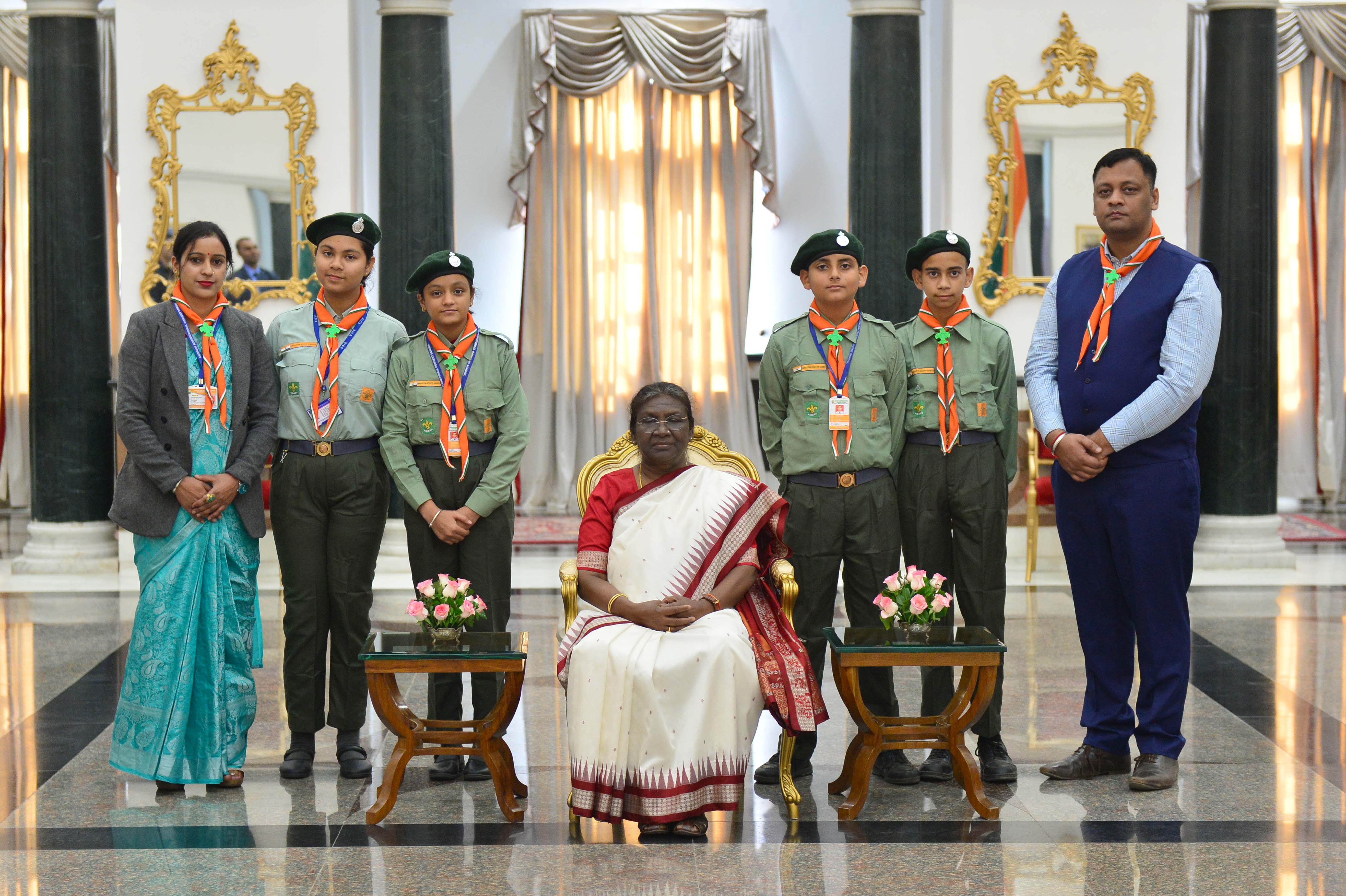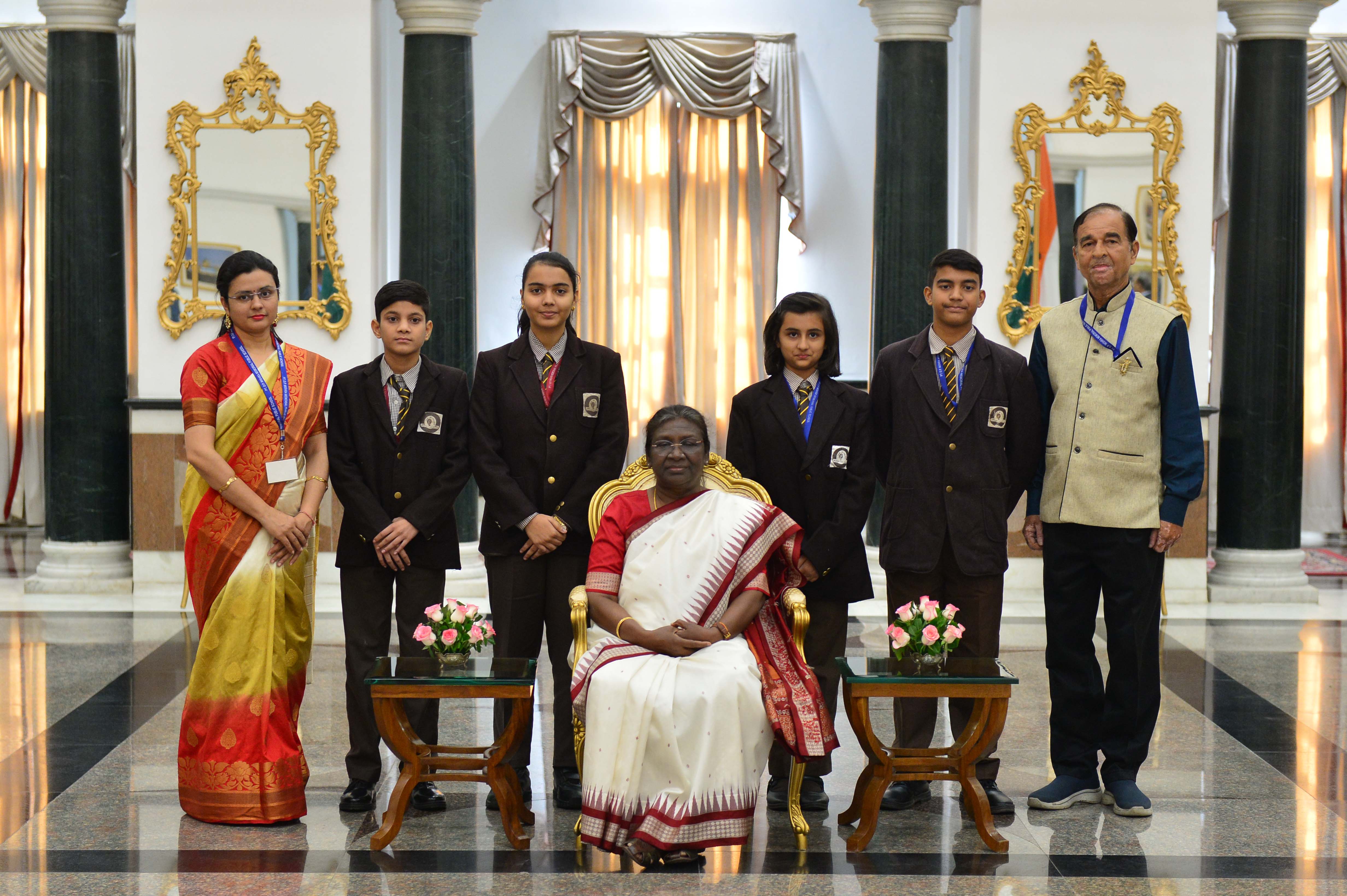The President of India, Smt. Droupadi Murmu interacting with the students from various schools/organisations at Rashtrapati Bhavan Cultural Centre (RBCC) on November 14, 2022.